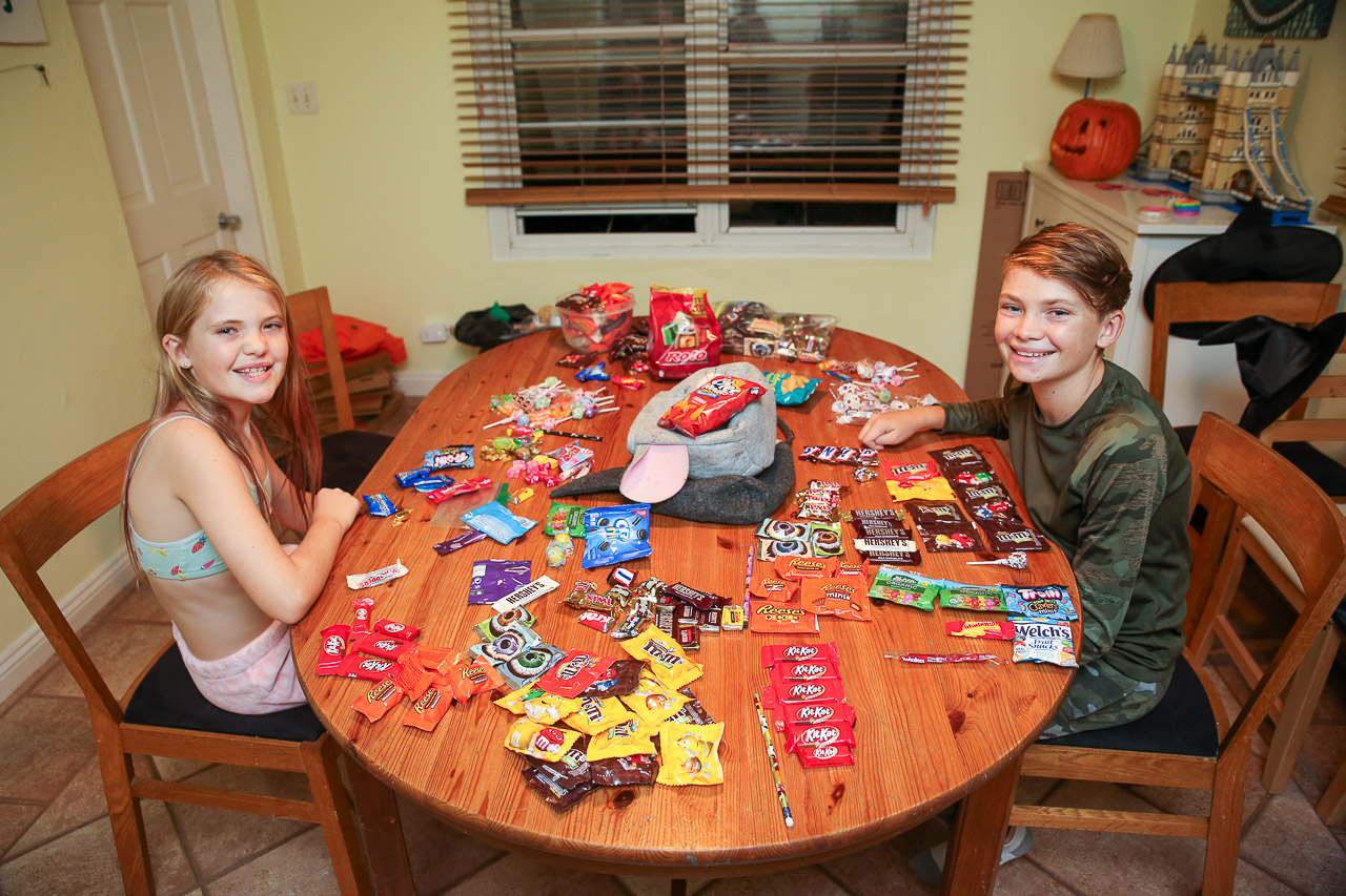We had games set up for the kids to play to ‘win’ their candy (party guests brought a game and some candy each), so between that and the limited neighborhood trick-or-treating, somehow everyone ended up with seemingly TONS of candy!