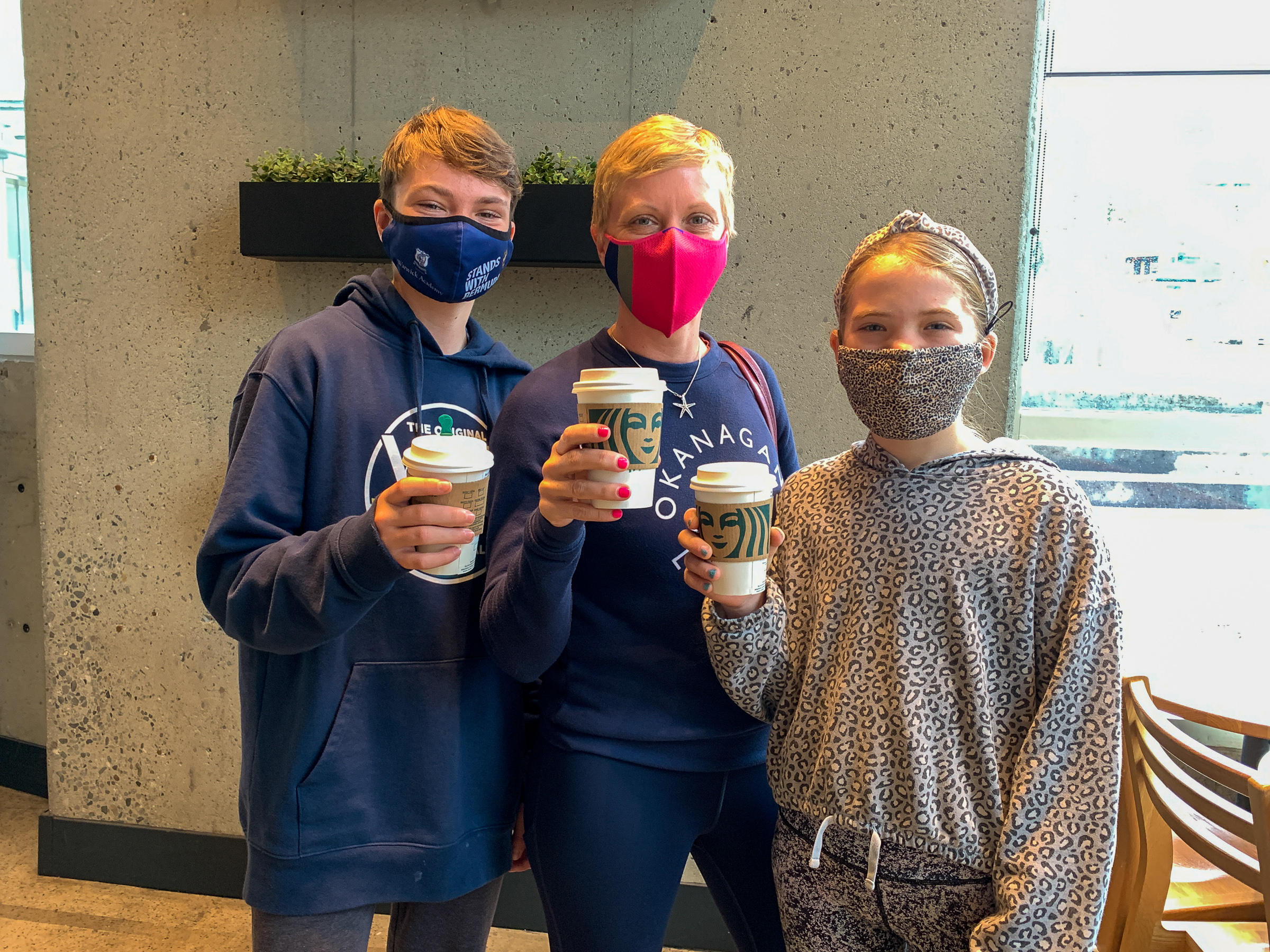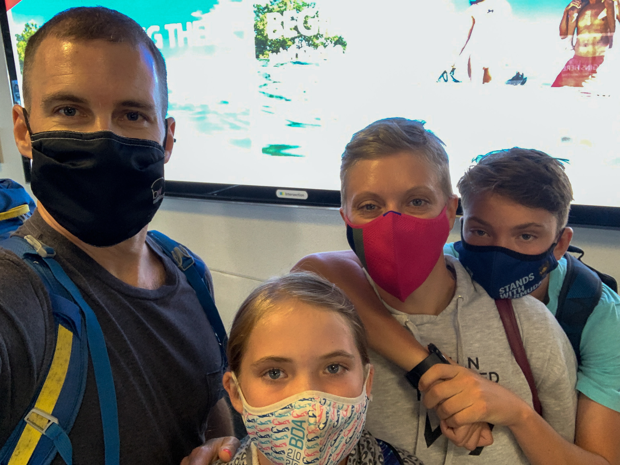 We had a bit of a rocky start – Jenn had a solo flight credit to use up from a previous Covid cancellation (again many hours on the phone with various airlines, etc), she therefore had to book seperately from the kids and I. You can see where this is going – ultimately we should have been on the same Friday flight out of Bermuda but something got messed up and Jenn ended up being booked for the day after the kids and I! It ultimately worked out, however, as she managed to get on a different flight the same day as the rest of us, though it was via a different city. We were able to meet up en route in Charlotte and all flew together the rest of the way via Toronto, overnighting and arriving in Kelowna Saturday afternoon. Whew!