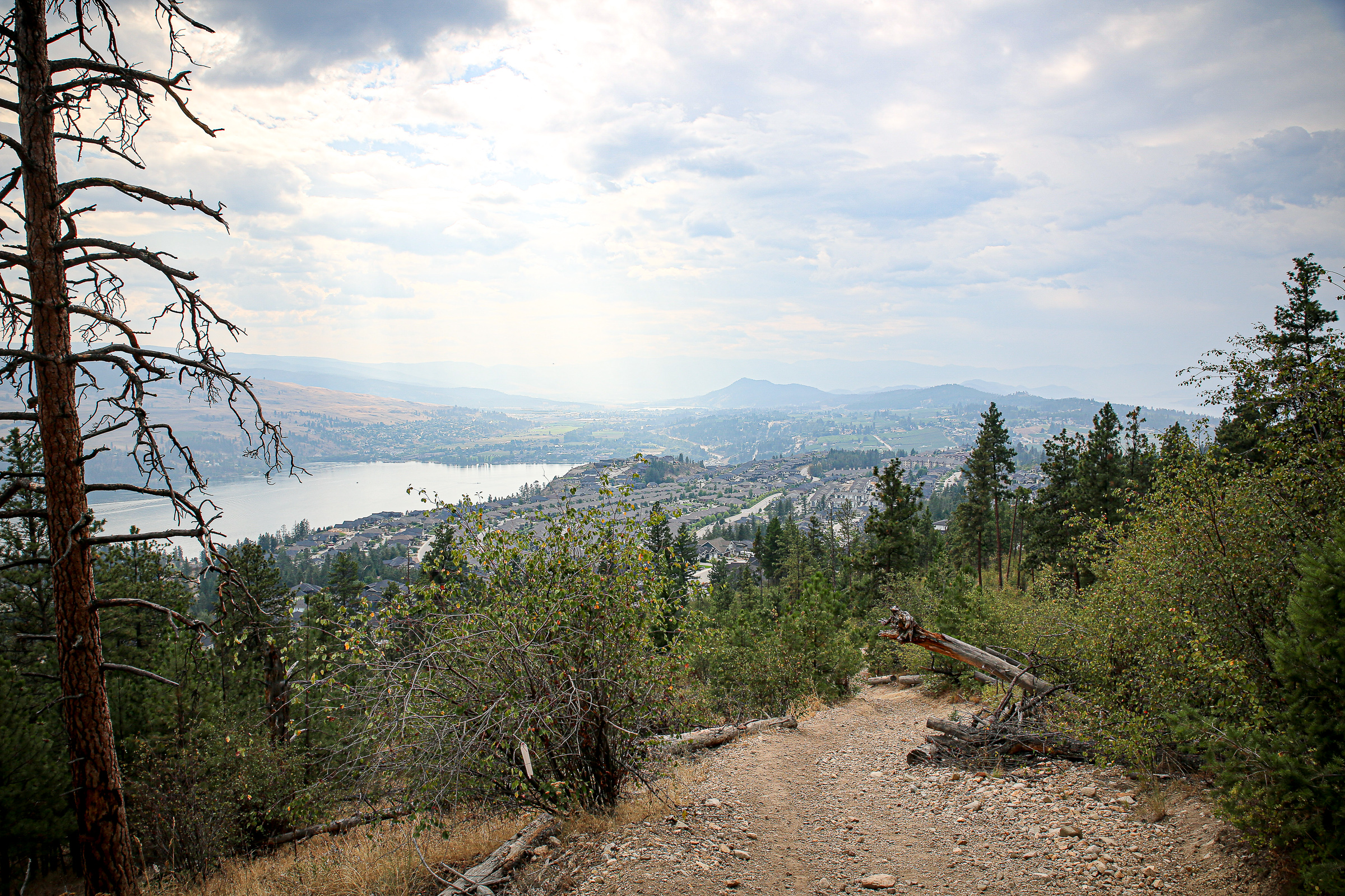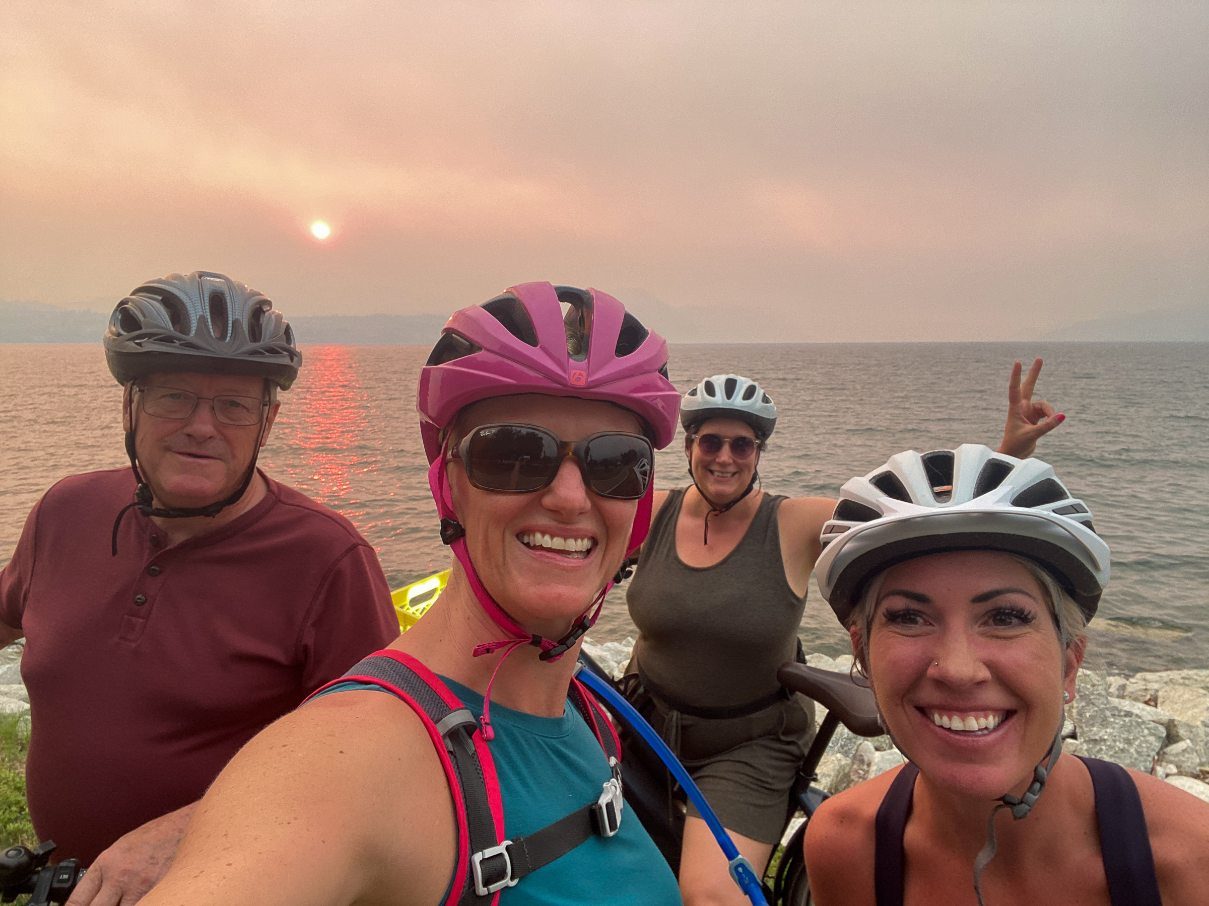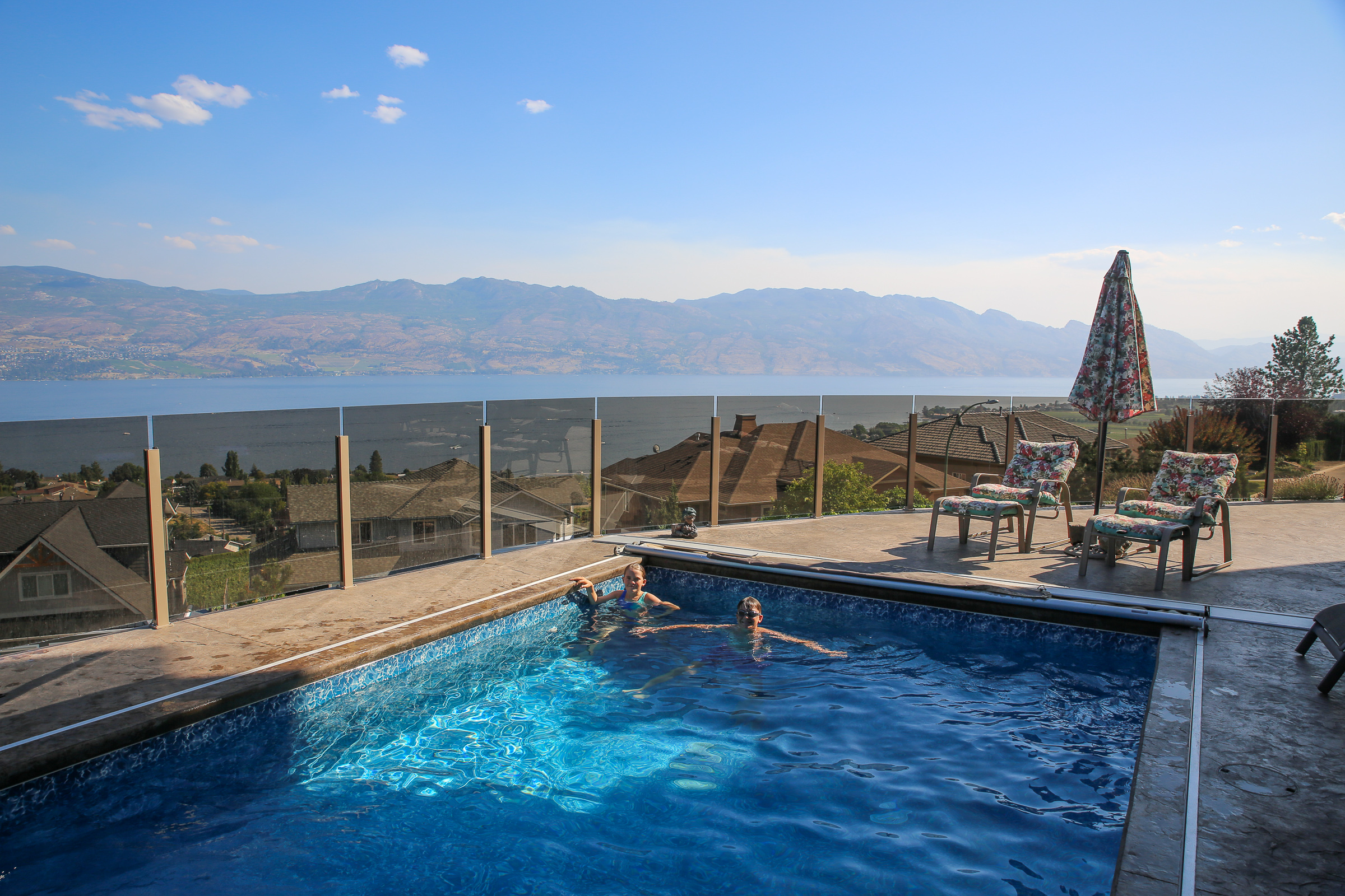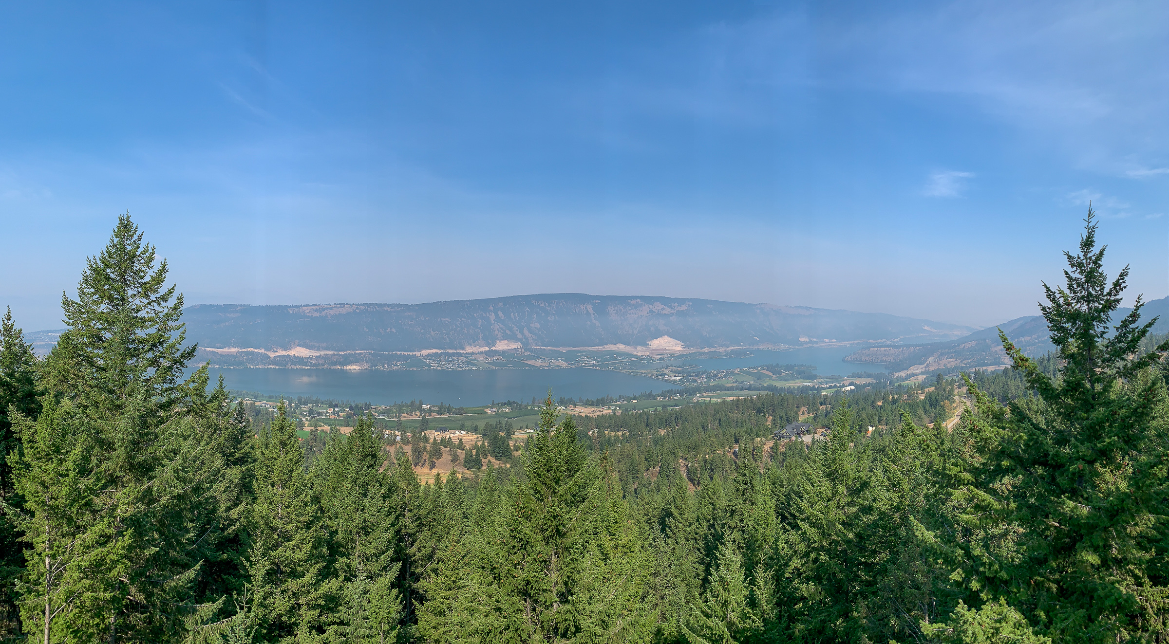 Traveling to the Okanagan during ‘fire season’ always comes with the risk of some hazy or even full-on smokey days. We were happy to find clear skies on our arrival so we could enjoy the lake views from the pool / deck; however, over our week in West Kelowna the smoke would come and go, though by Tuesday it seemed to settle in to block our views! To escape the smoke, Jenn and I each took a turn taking Josh up to Big White for some downhill mountain biking – it was much less smoky up there – which was awesome (Ryley wasn’t keen on biking so didn’t feel like she was missing out…)!