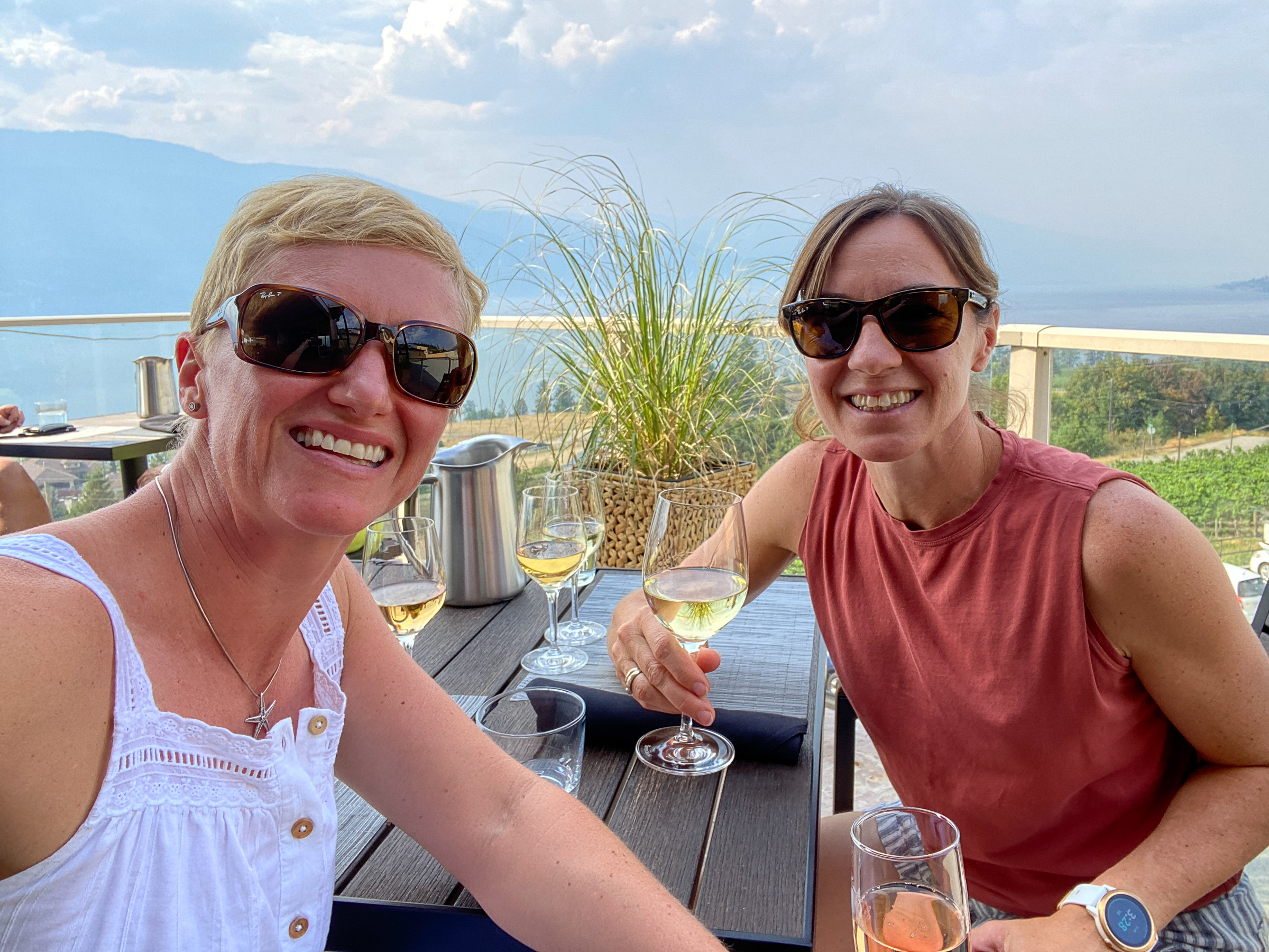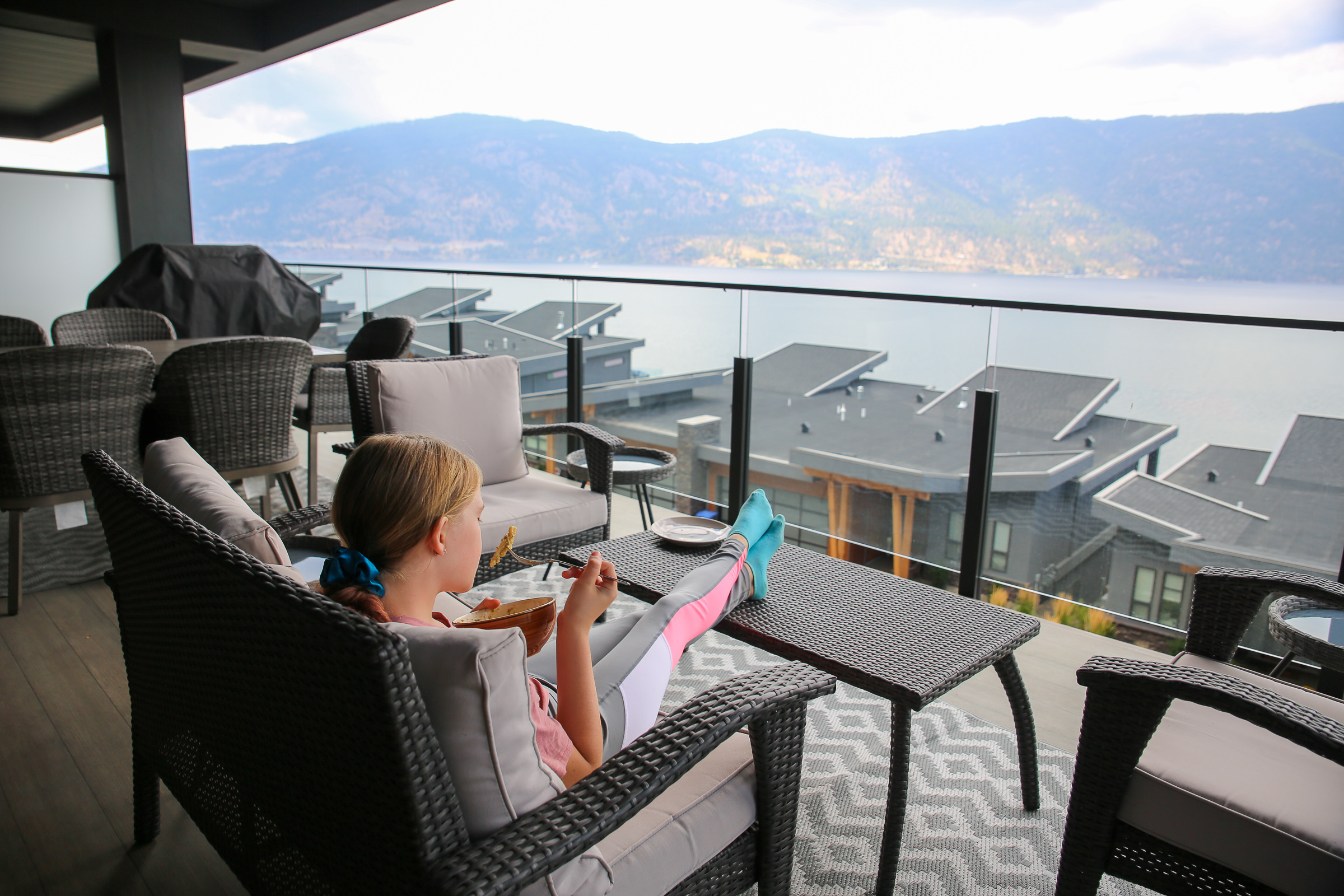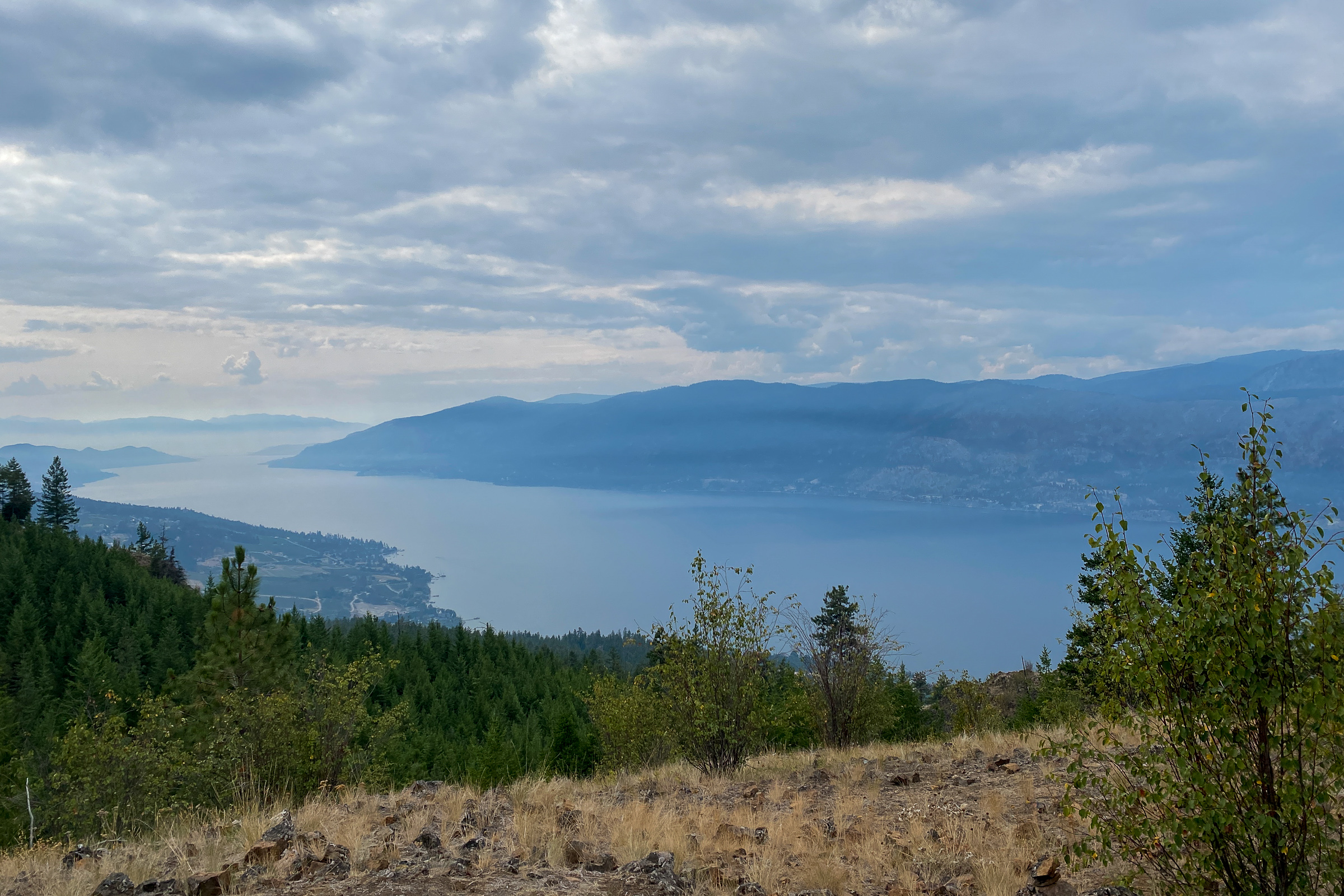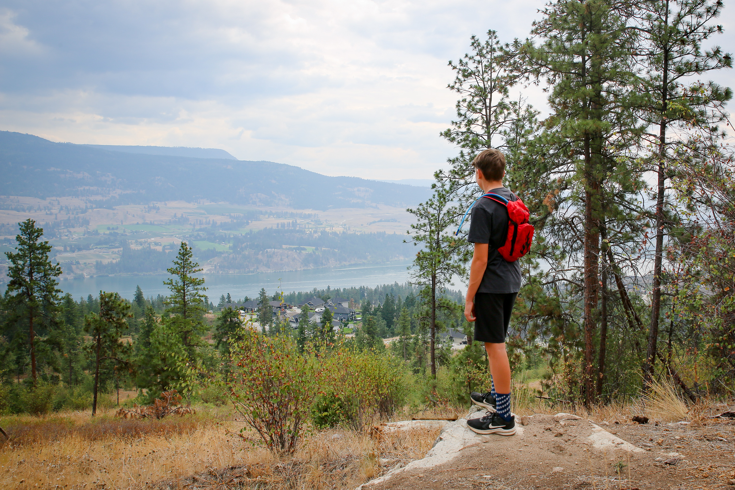 Traveling to the Okanagan during ‘fire season’ always comes with the risk of some hazy or even full-on smokey days. We were happy to find clear skies on our arrival so we could enjoy the lake views from the pool / deck; however, over our week in West Kelowna the smoke would come and go, though by Tuesday it seemed to settle in to block our views! To escape the smoke, Jenn and I each took a turn taking Josh up to Big White for some downhill mountain biking – it was much less smoky up there – which was awesome (Ryley wasn’t keen on biking so didn’t feel like she was missing out…)!