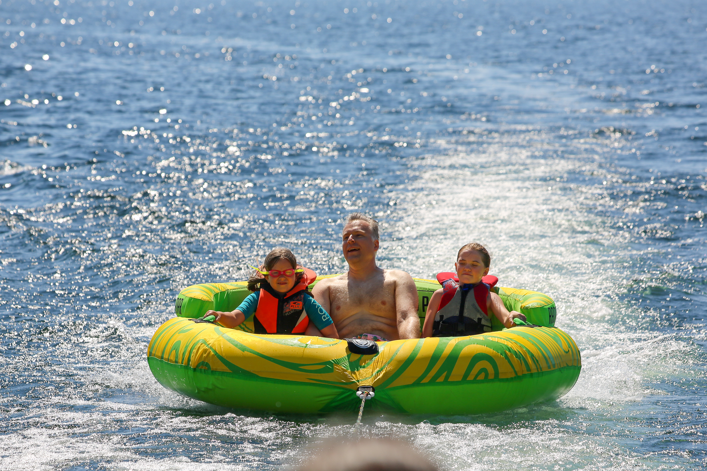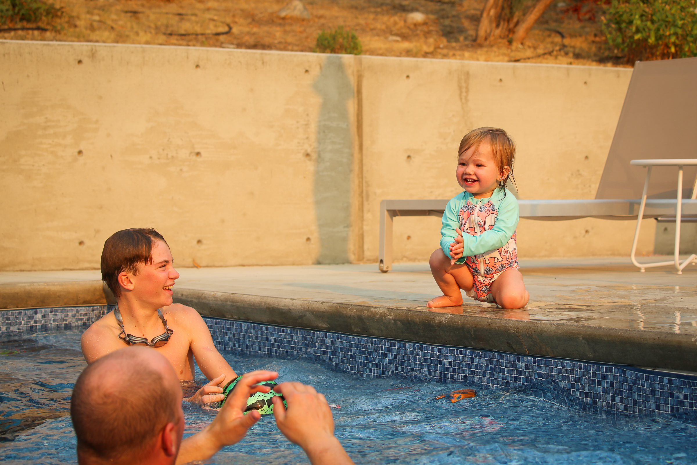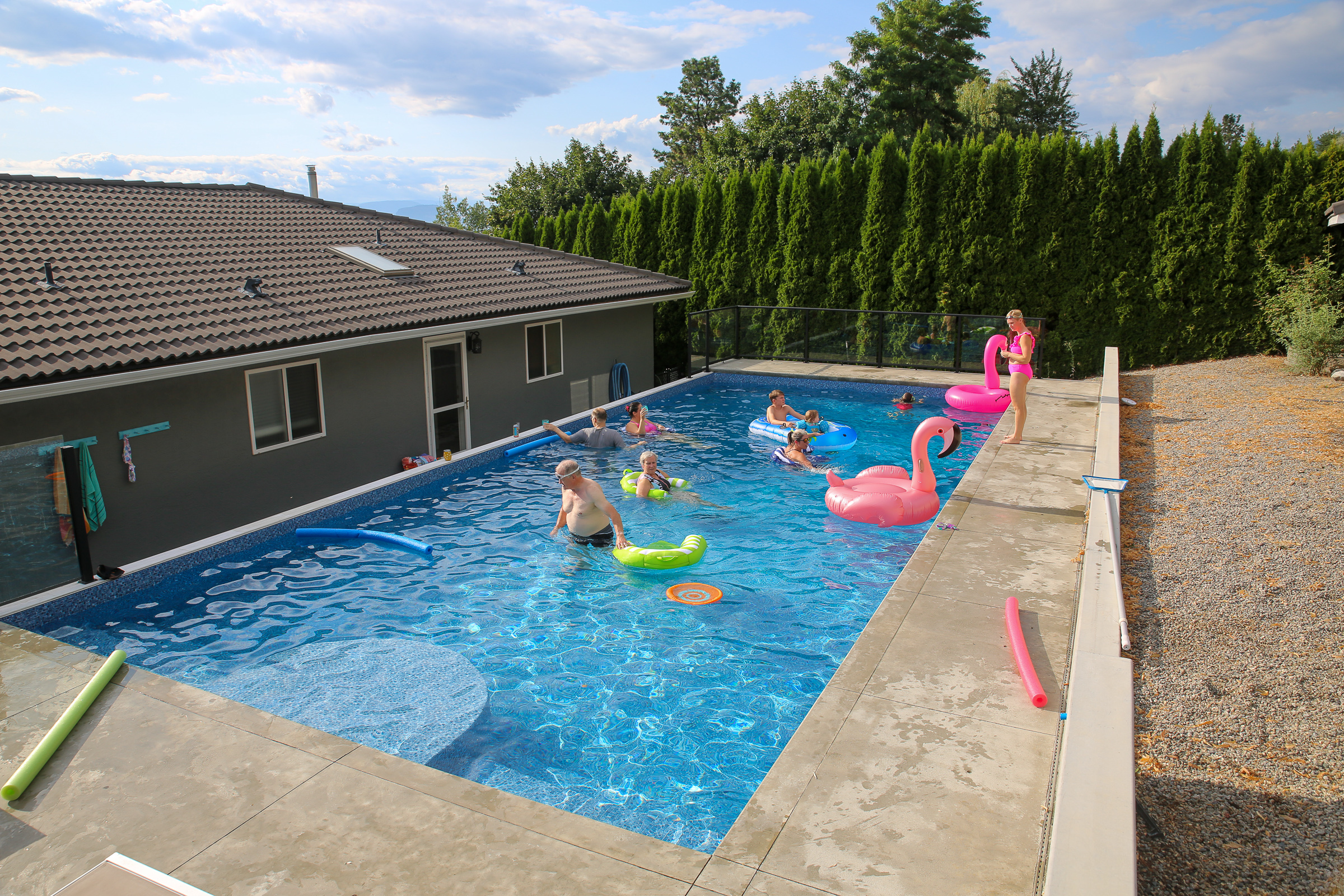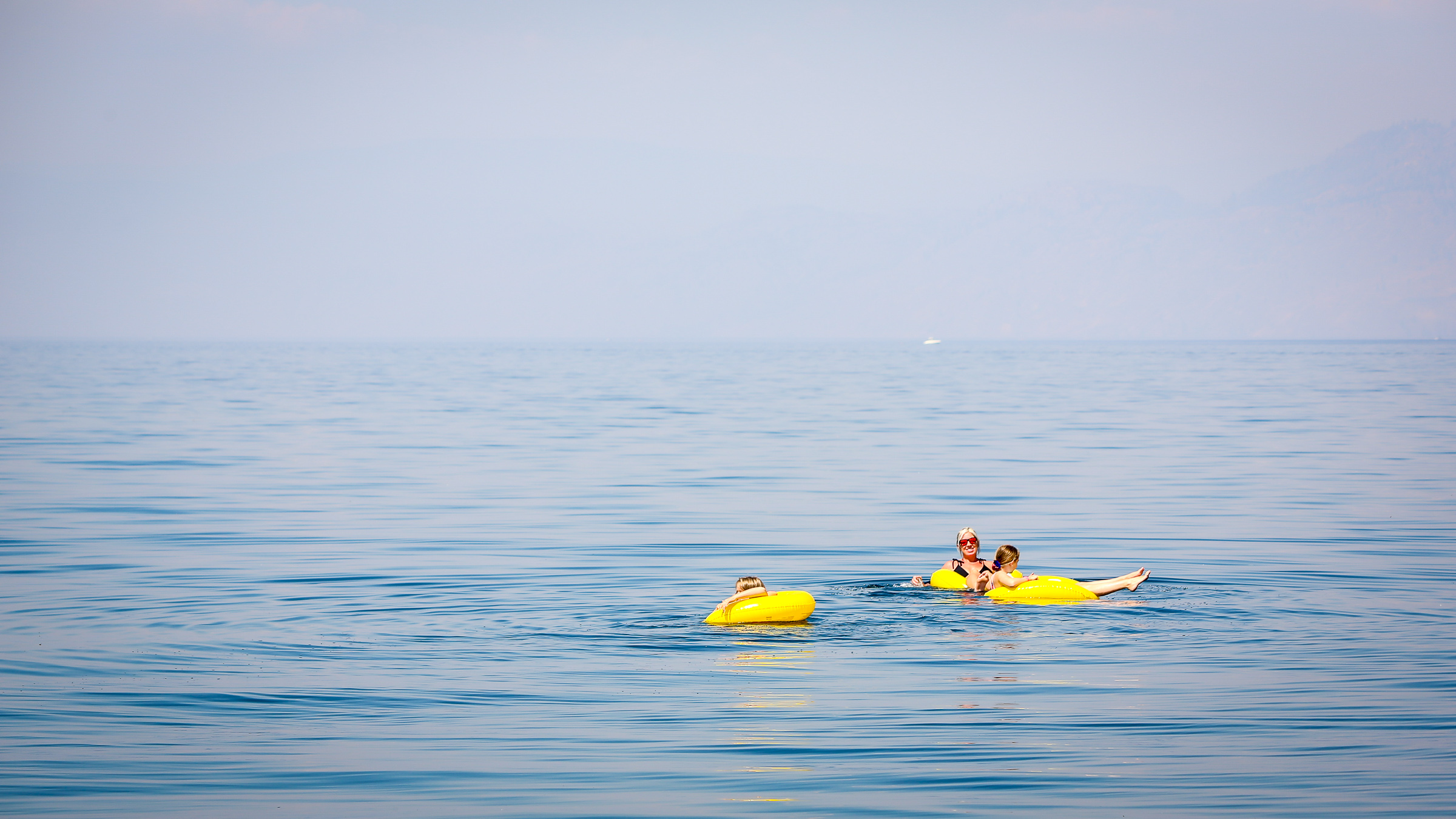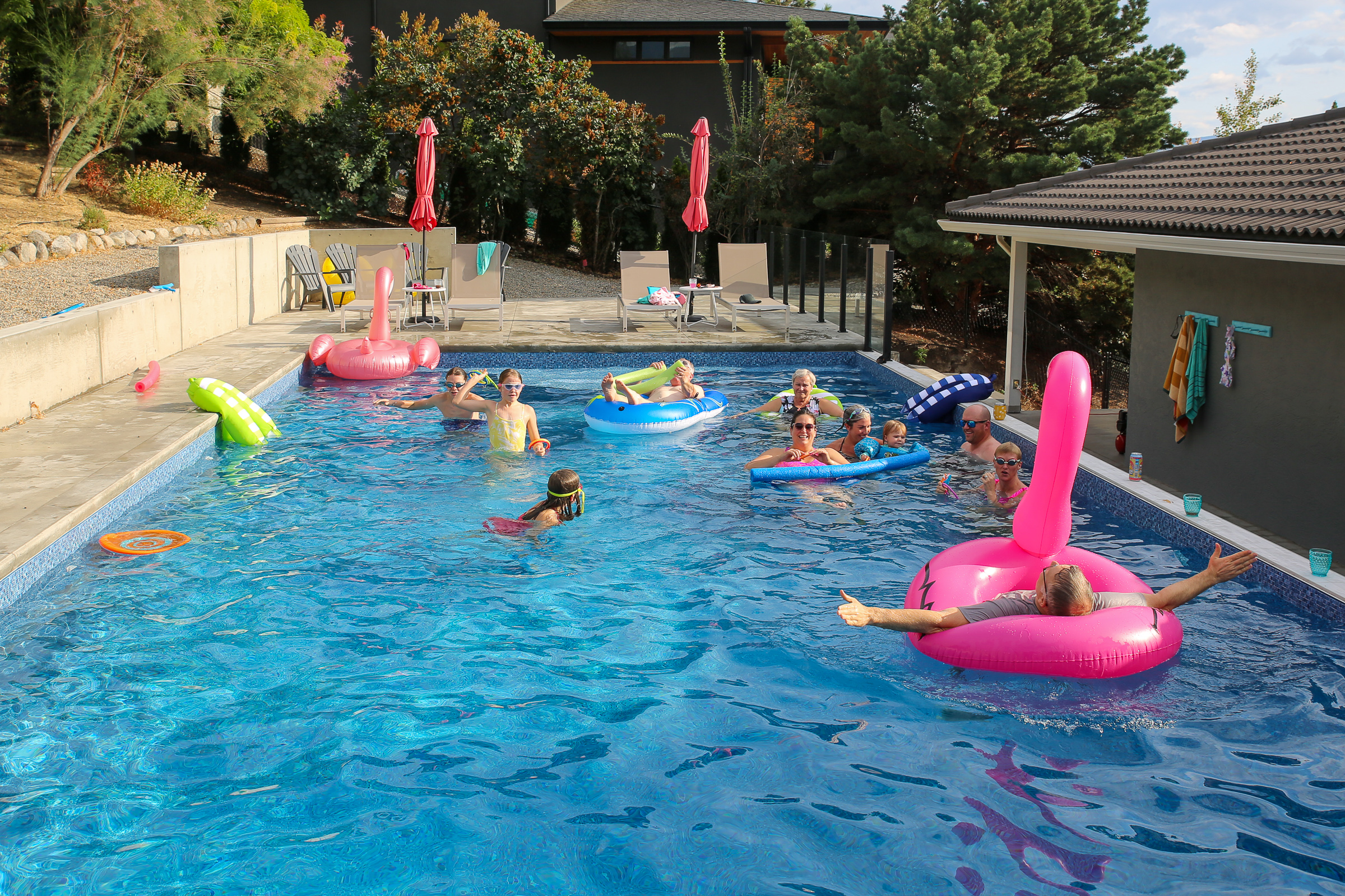 Now into August, Jenn and I continued to work on Monday, and were happy to enjoy an ever-improving view from our ‘office’ as the week went along. It was still pretty smoky when we arrived, but even on the first day we saw some lifting of the smoke as we could catch fleeting glimpses of the lake right in front of us. The next day we could see across the lake to the other shoreline, and by Wednesday afternoon the smoke was all but gone, leaving a glorious view of the Lake in front of us. Beyond our excitement at the smoke clearing, there wasn’t too much else happening during the week; work aside, it was very relaxed – our massive pool got a lot of use, the kids enjoyed the nearby pump track, and we continued our nightly routine of Olympics-watching.