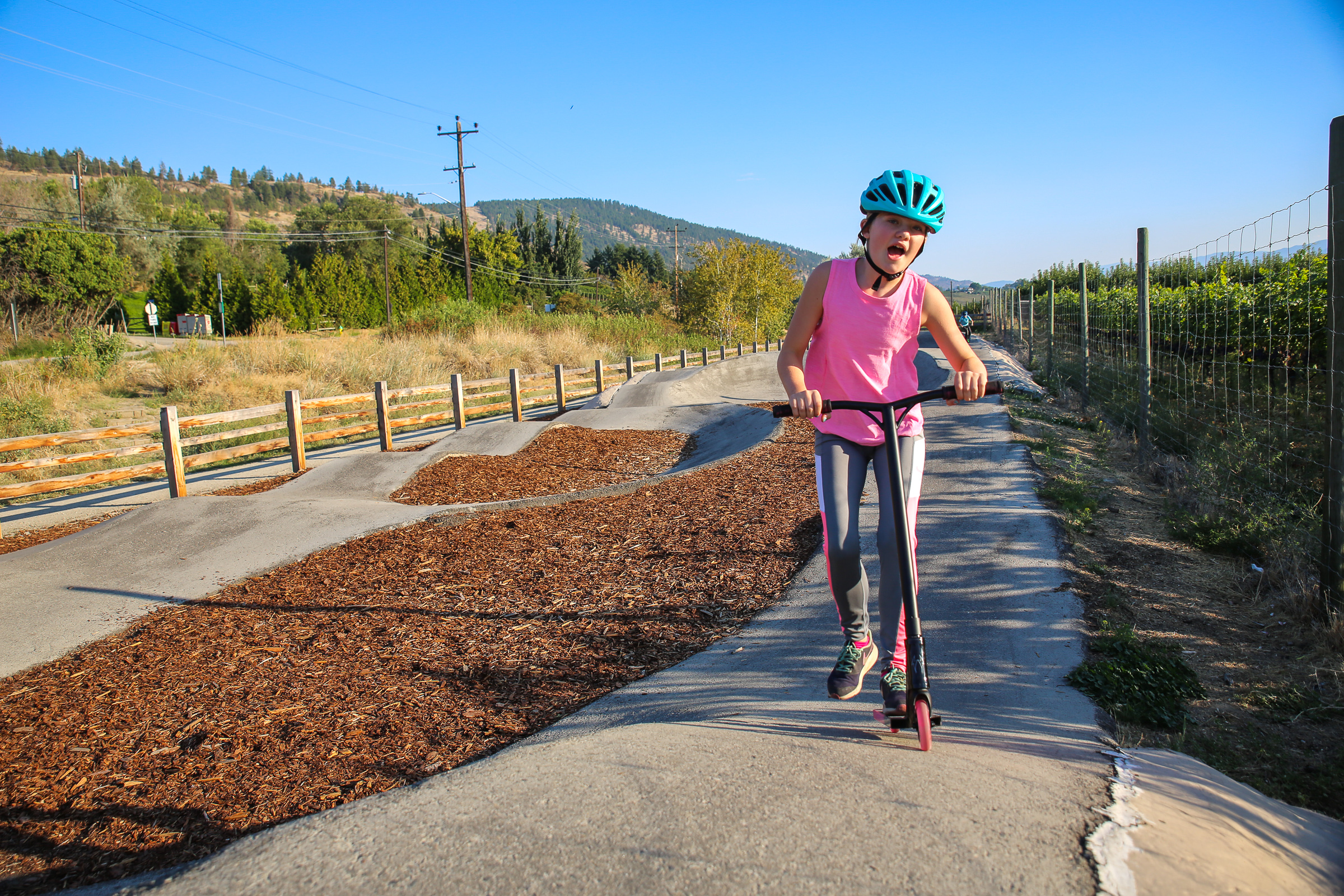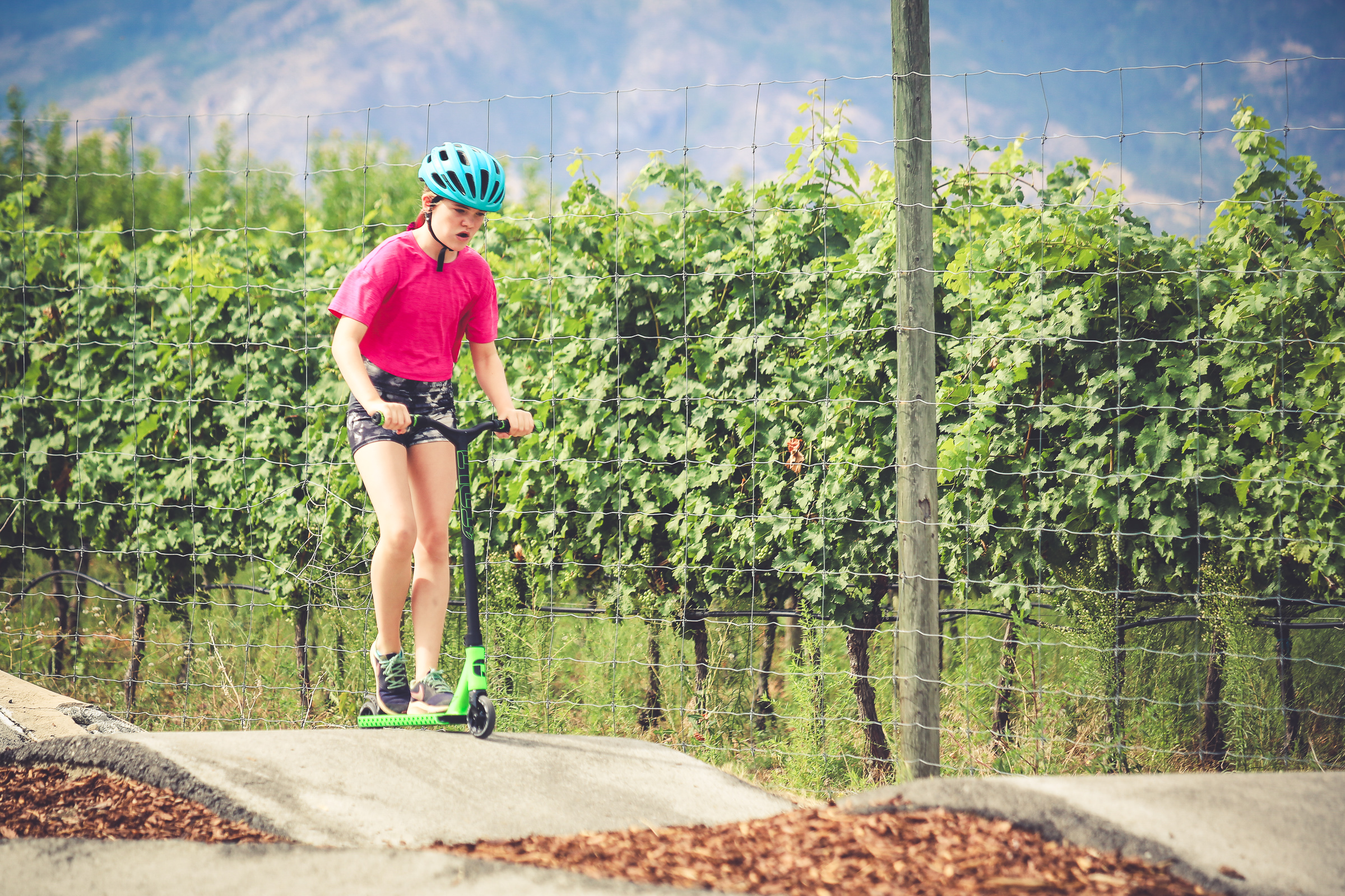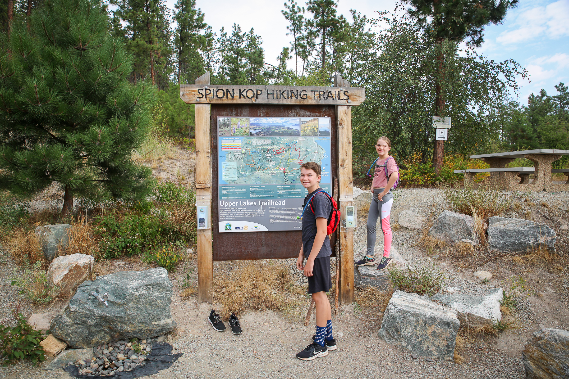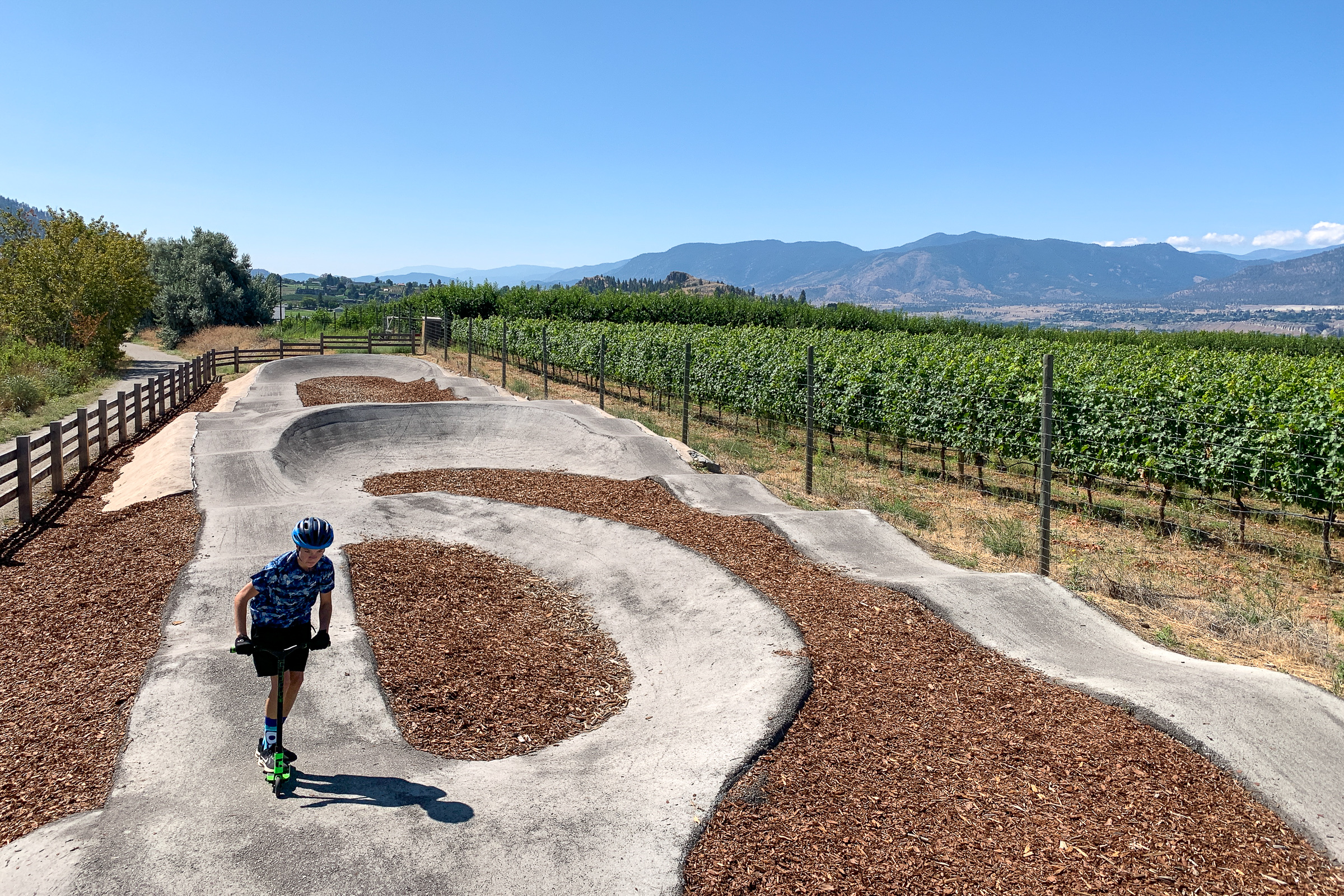 Jenn does a ton of work getting our vacations together, and with Covid not making things any easier (many hours on the phone rearranging flights and using up credits, to start with), so I helped arrange a ‘day off’ for her to hang with her friend Amber while the kids and I hunted down a new bike wheel to replace the one that Josh busted at the pump track earlier in our holiday! The girls headed back to Spion Kop for some more hiking, lunch at Arrowleaf Cellars, and some wine tasting at Grey Monk, which sounds much more fun than shopping for a bike wheel!