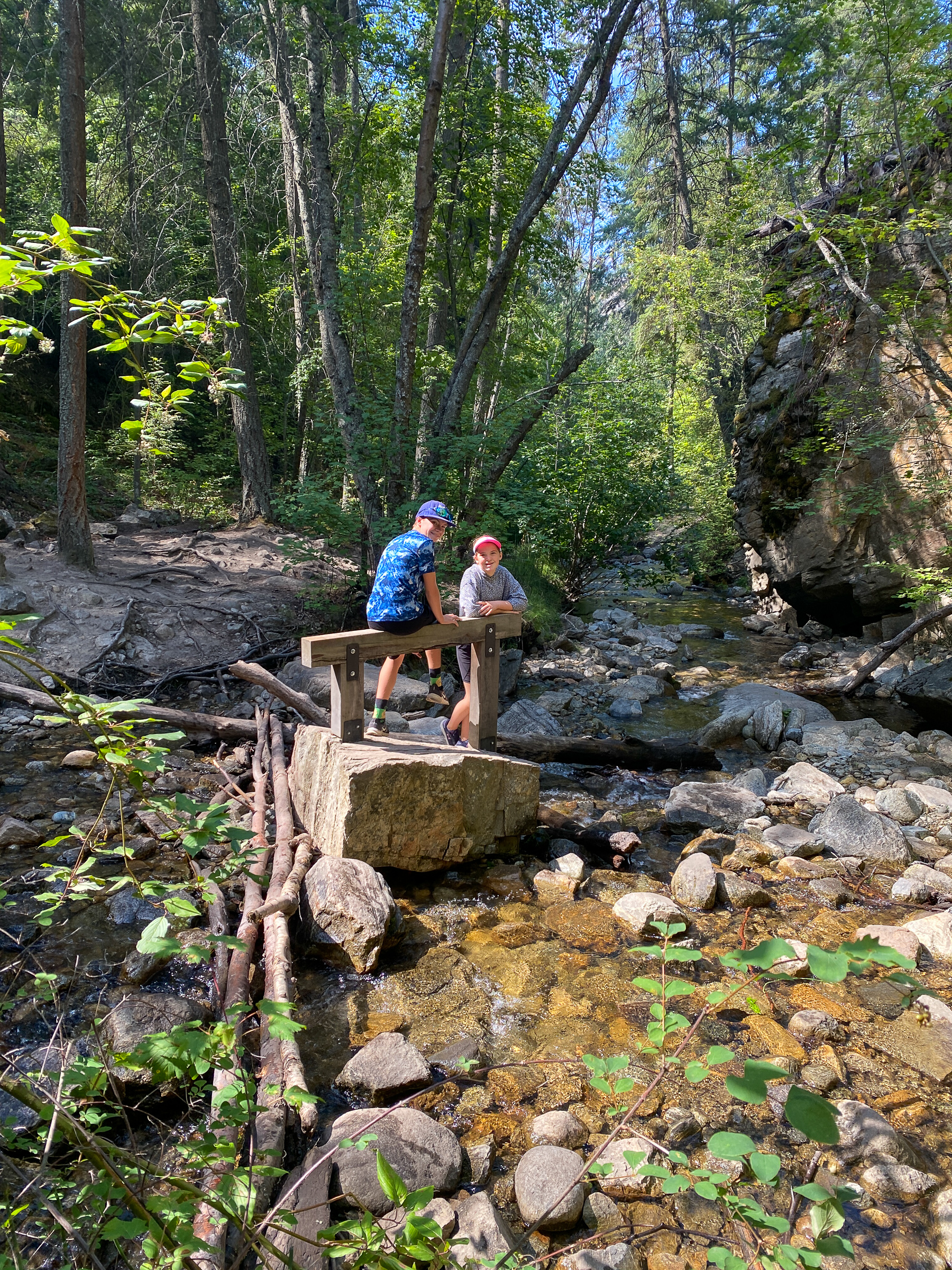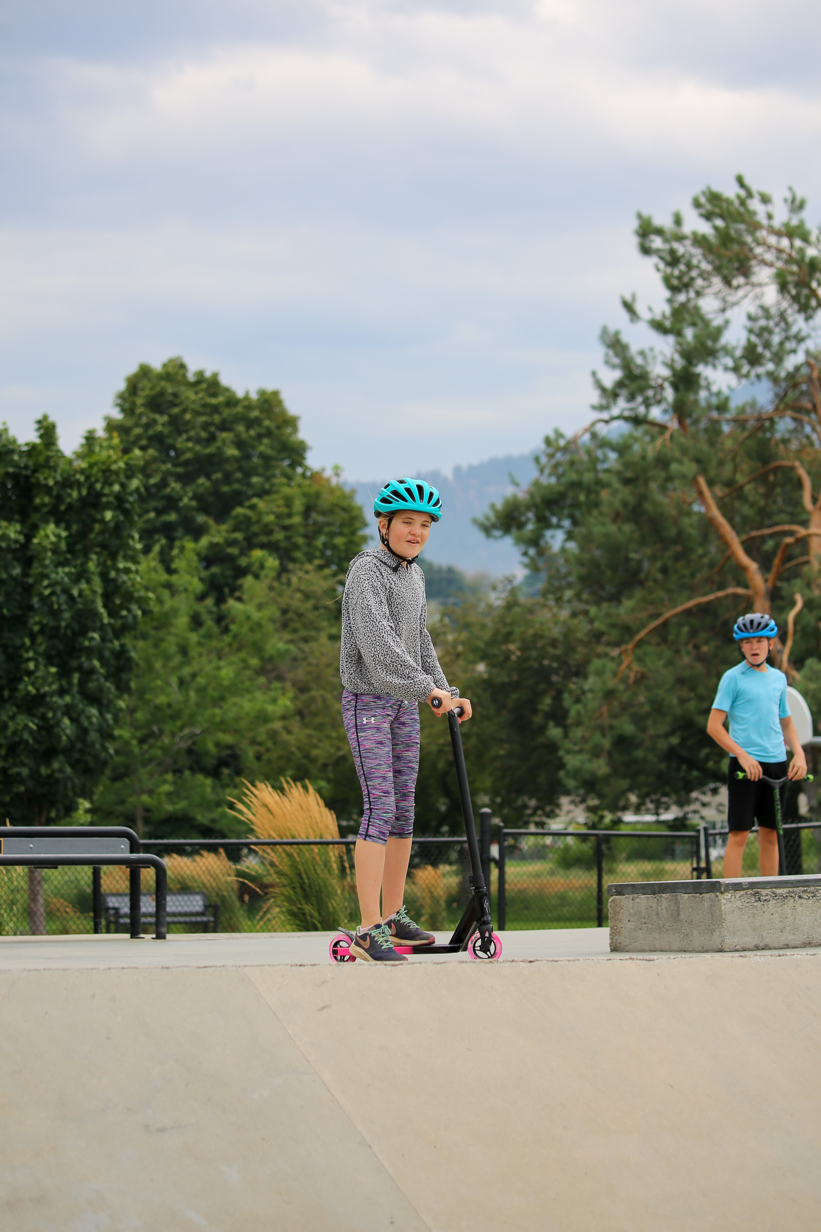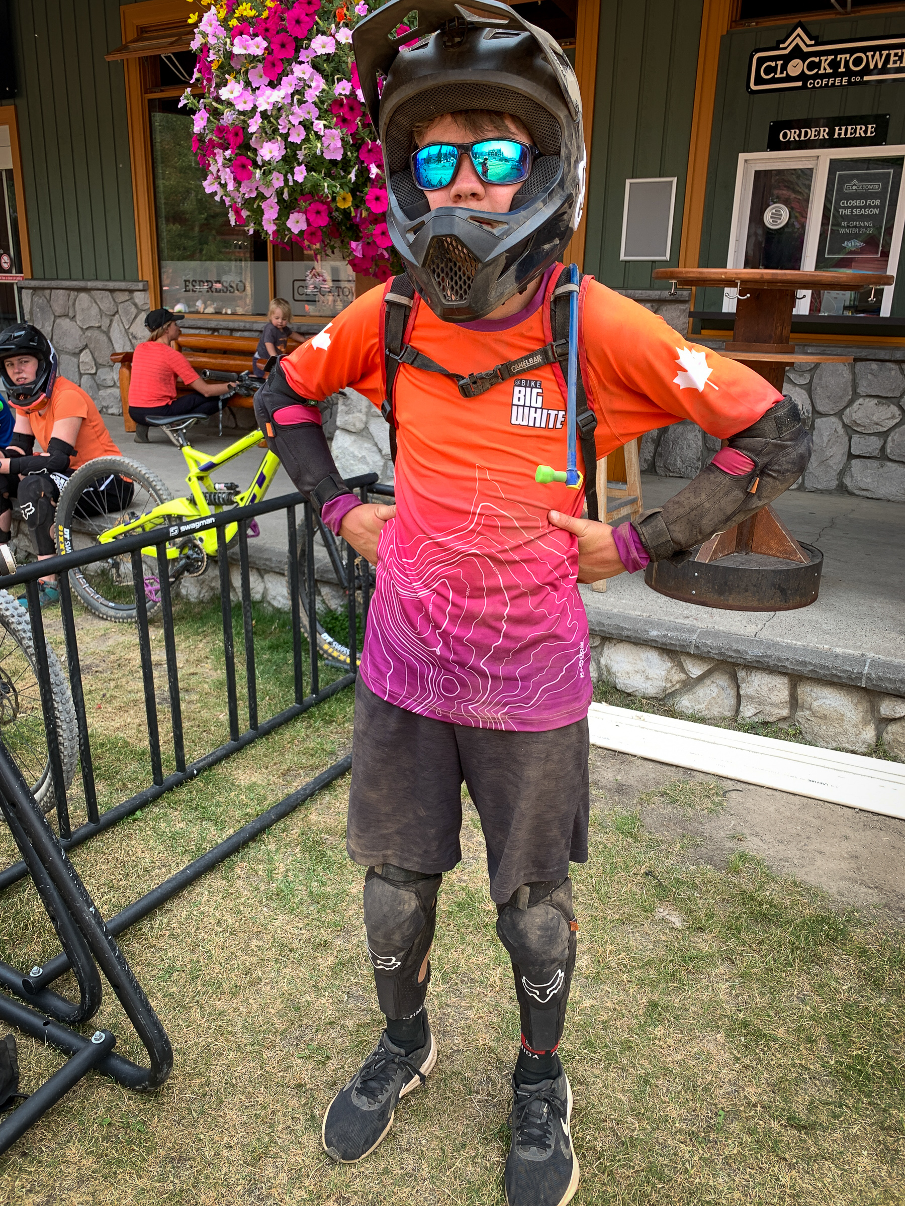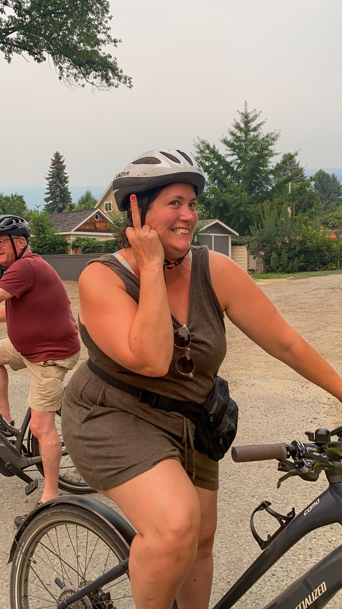 Jenn does a ton of work getting our vacations together, and with Covid not making things any easier (many hours on the phone rearranging flights and using up credits, to start with), so I helped arrange a ‘day off’ for her to hang with her friend Amber while the kids and I hunted down a new bike wheel to replace the one that Josh busted at the pump track earlier in our holiday! The girls headed back to Spion Kop for some more hiking, lunch at Arrowleaf Cellars, and some wine tasting at Grey Monk, which sounds much more fun than shopping for a bike wheel!