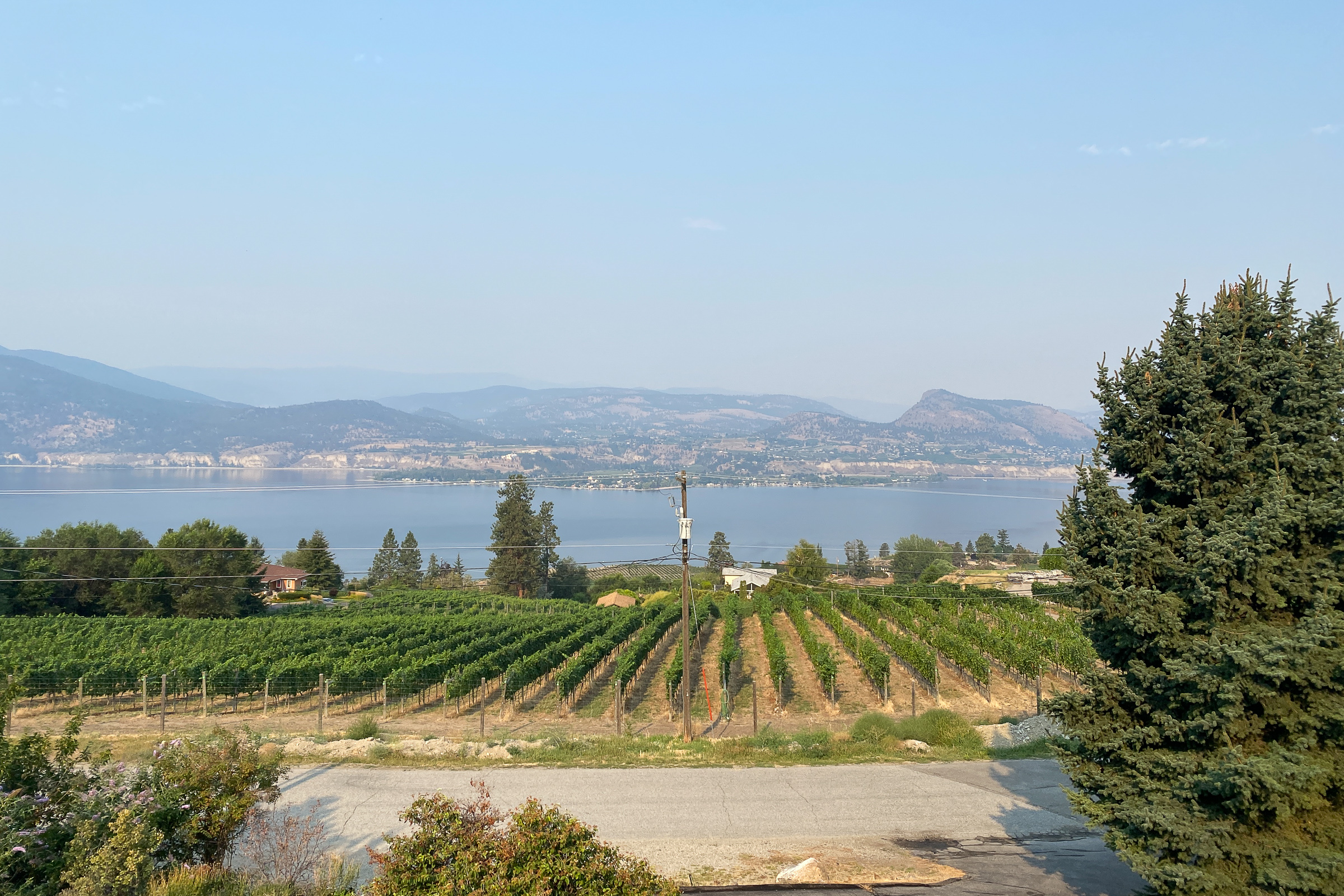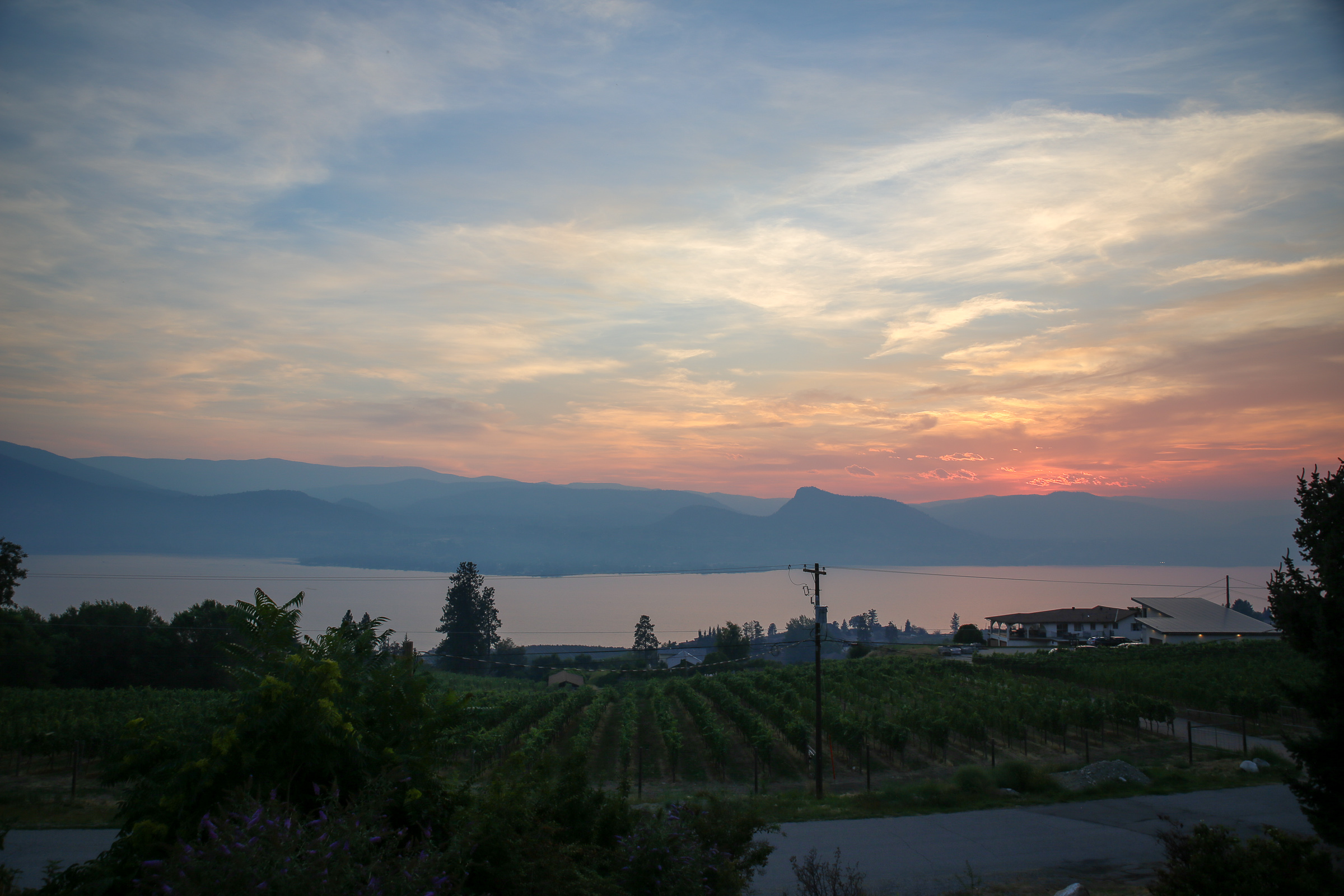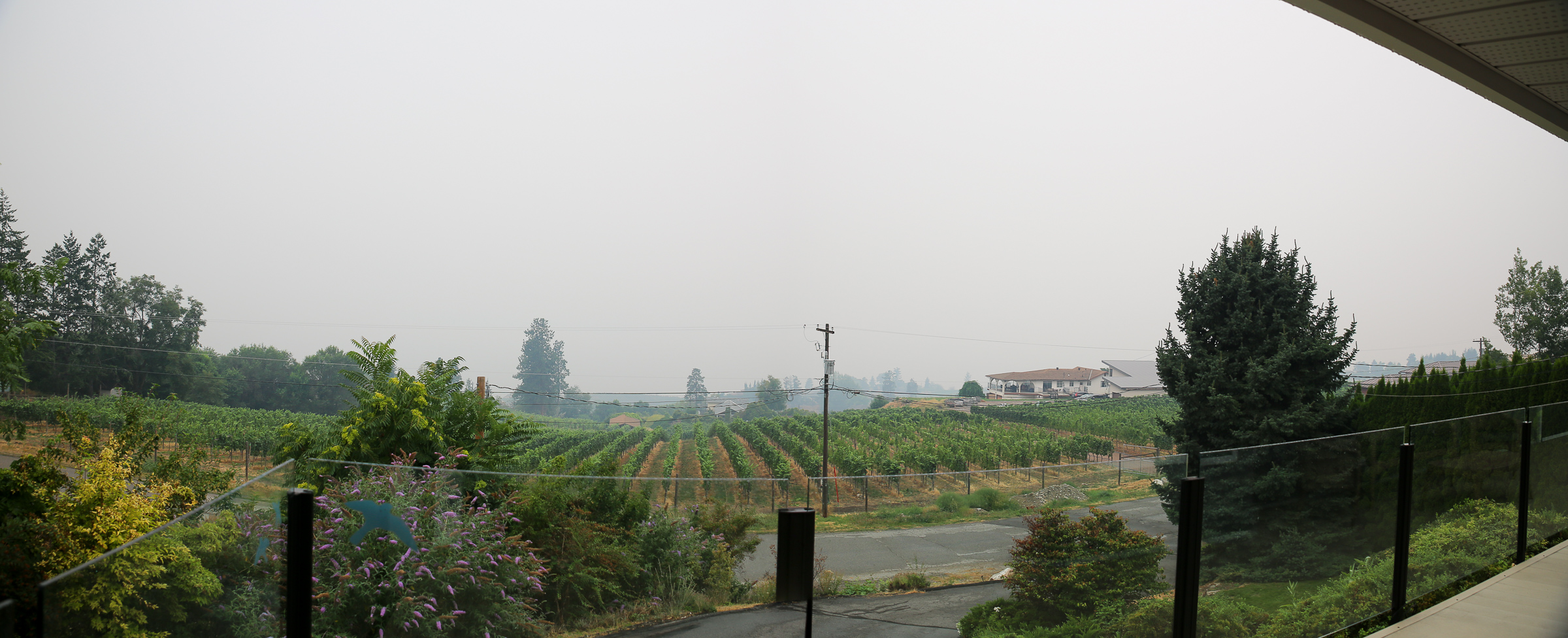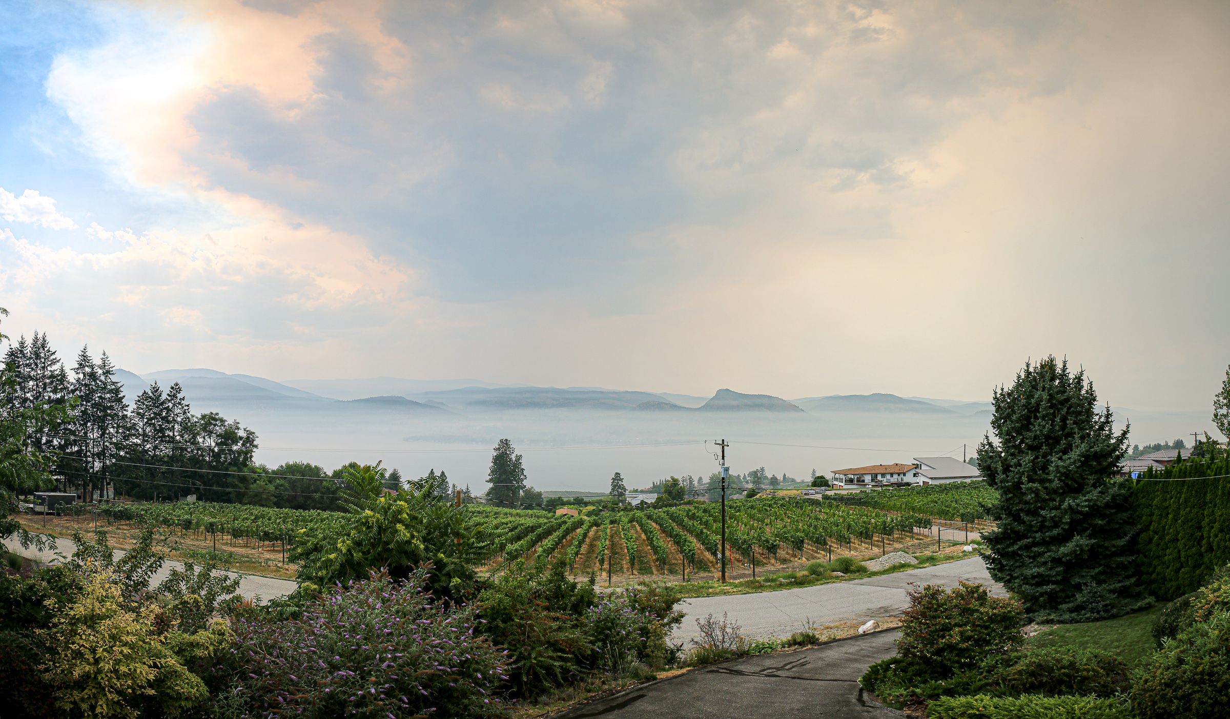 Unfortunately the smoke didn’t fully blow away before the long weekend, when we packed up our rental minivan on Sunday to head to house #2 around the south end of the Lake Okanagan in Naramata. Normally one of my favorite drives is this one: down the west side of the lake, with panoramic views over the water as you make your way south… not this time, though – foiled by a neverending cloud of smoke, just thick enough to block the view but fortunately not enough to impede driving visibility! We still enjoyed the day, filling the 5 or so hour gap before we could check-in to the house in Naramata at the Peachland skate park, some grocery shopping, and lunch in the car from McDonald’s (as Ryley was still quarantined we didn’t take her in anywhere to be safe – and yes – at least one of us stayed with her!). By Sunday evening we were settled in to the house and ready for the next phase of our vacation! And by ‘next phase’ I mean work week, just in a different location. 😉