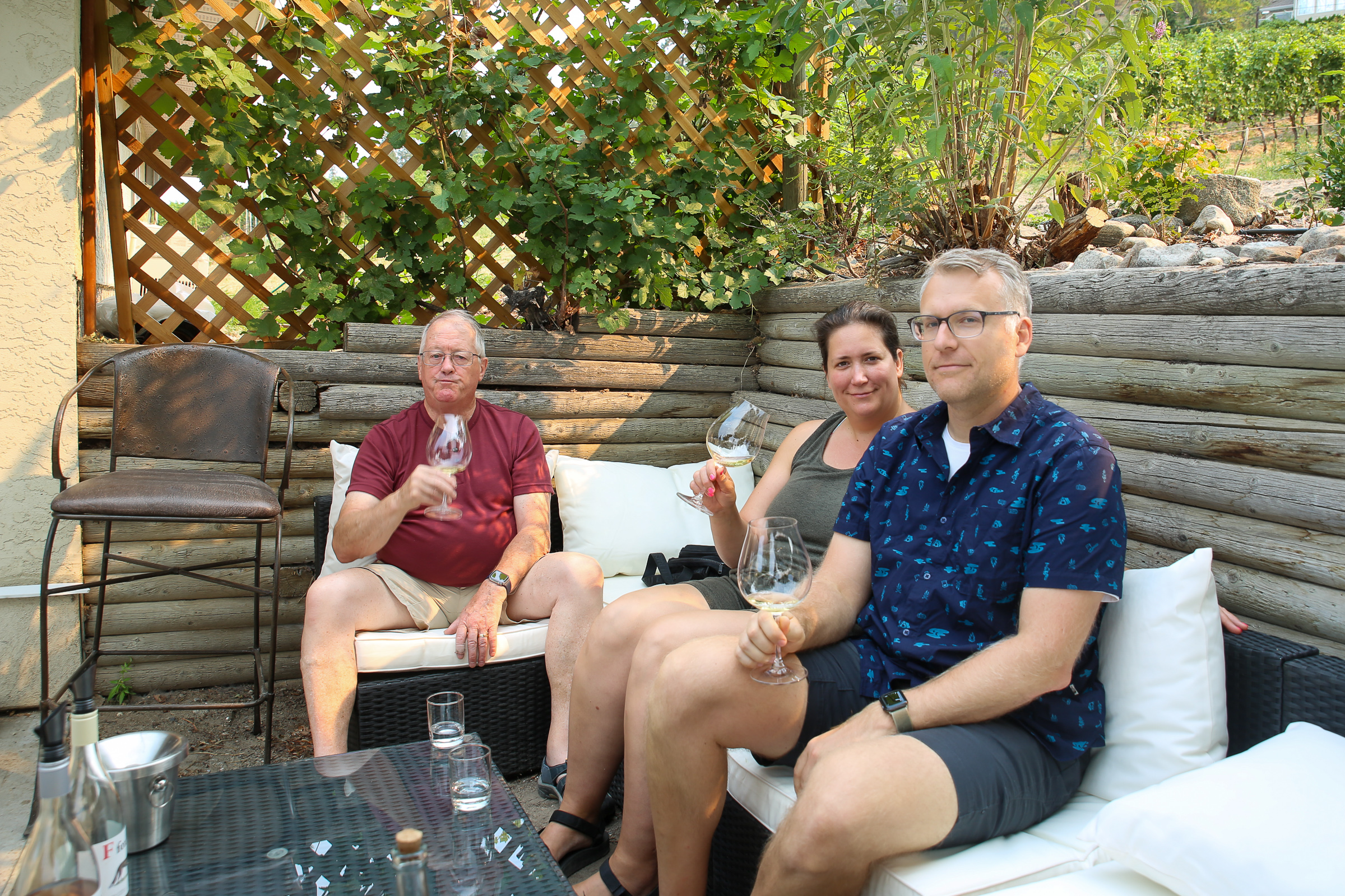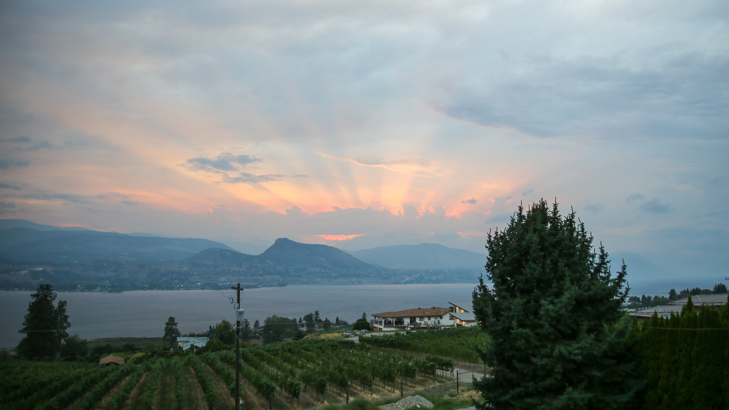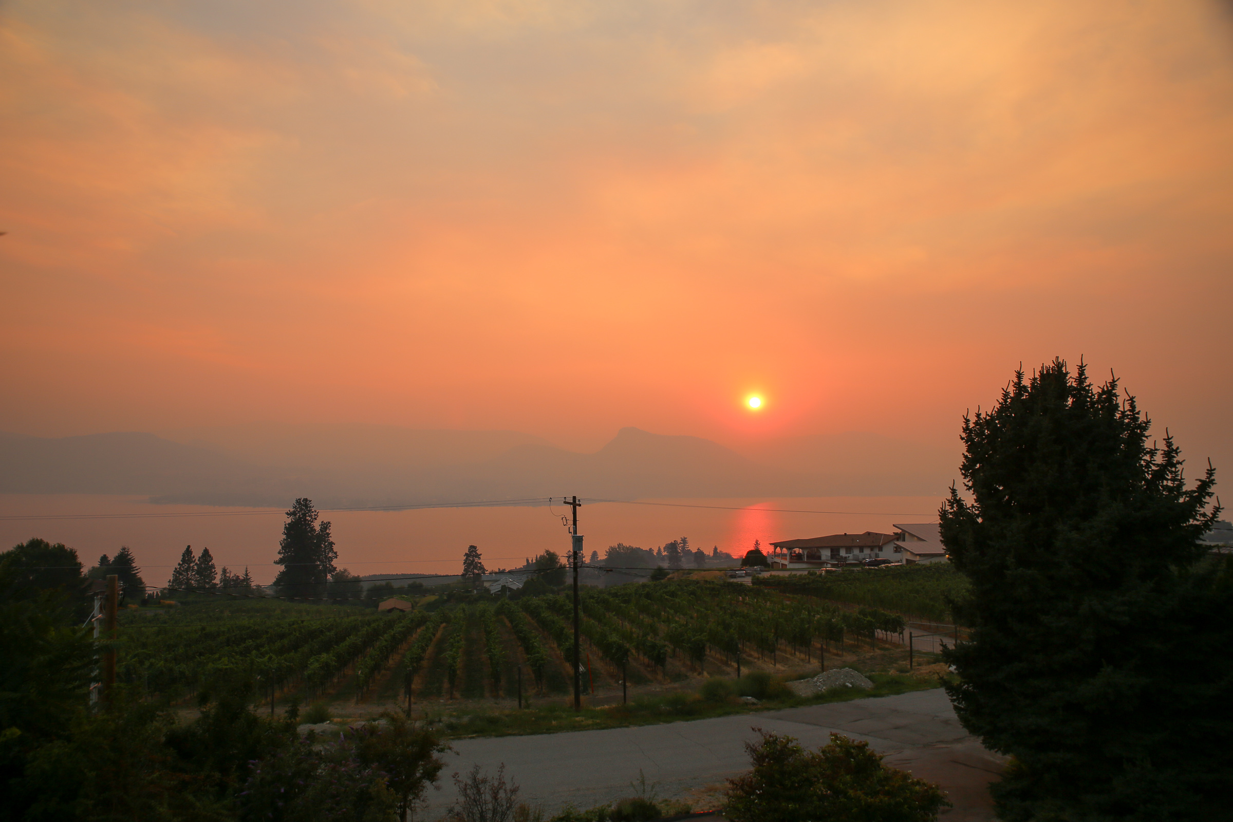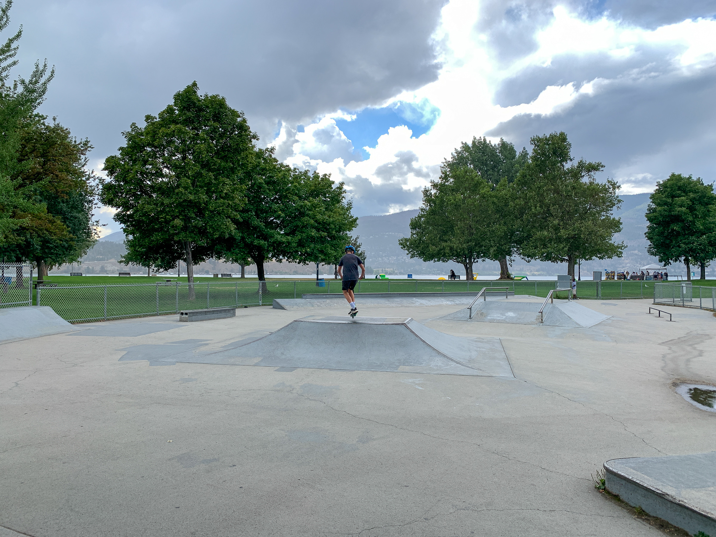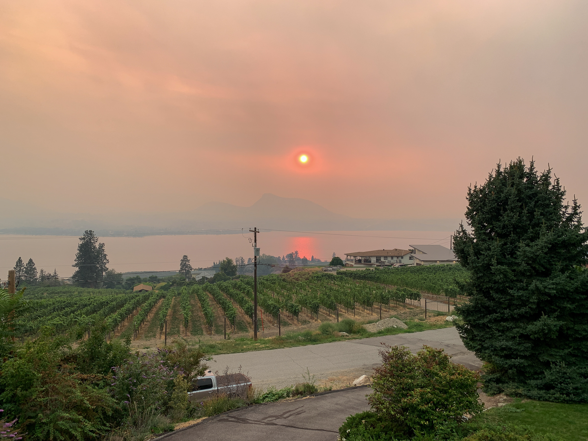 Unfortunately the smoke didn’t fully blow away before the long weekend, when we packed up our rental minivan on Sunday to head to house #2 around the south end of the Lake Okanagan in Naramata. Normally one of my favorite drives is this one: down the west side of the lake, with panoramic views over the water as you make your way south… not this time, though – foiled by a neverending cloud of smoke, just thick enough to block the view but fortunately not enough to impede driving visibility! We still enjoyed the day, filling the 5 or so hour gap before we could check-in to the house in Naramata at the Peachland skate park, some grocery shopping, and lunch in the car from McDonald’s (as Ryley was still quarantined we didn’t take her in anywhere to be safe – and yes – at least one of us stayed with her!). By Sunday evening we were settled in to the house and ready for the next phase of our vacation! And by ‘next phase’ I mean work week, just in a different location. 😉
