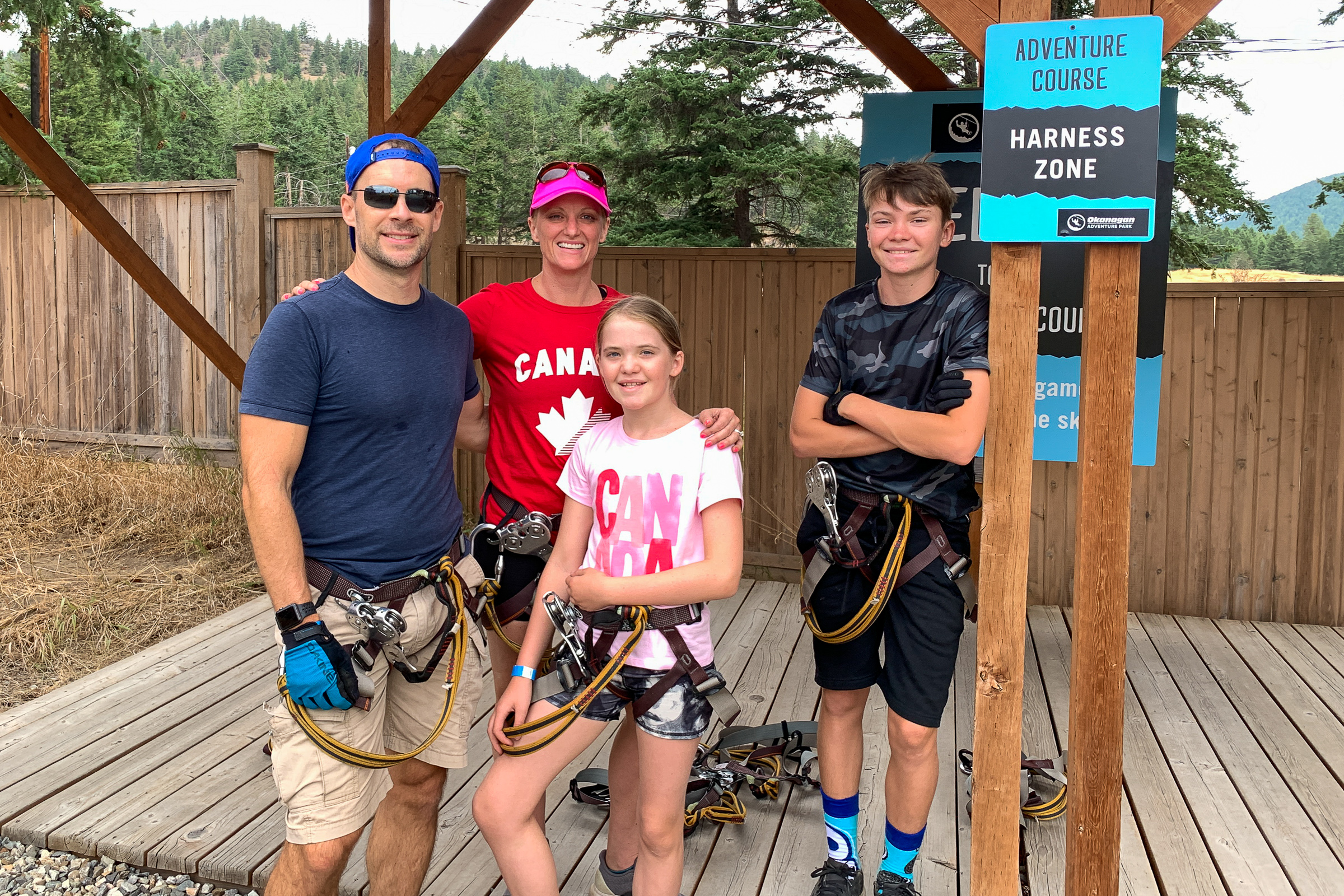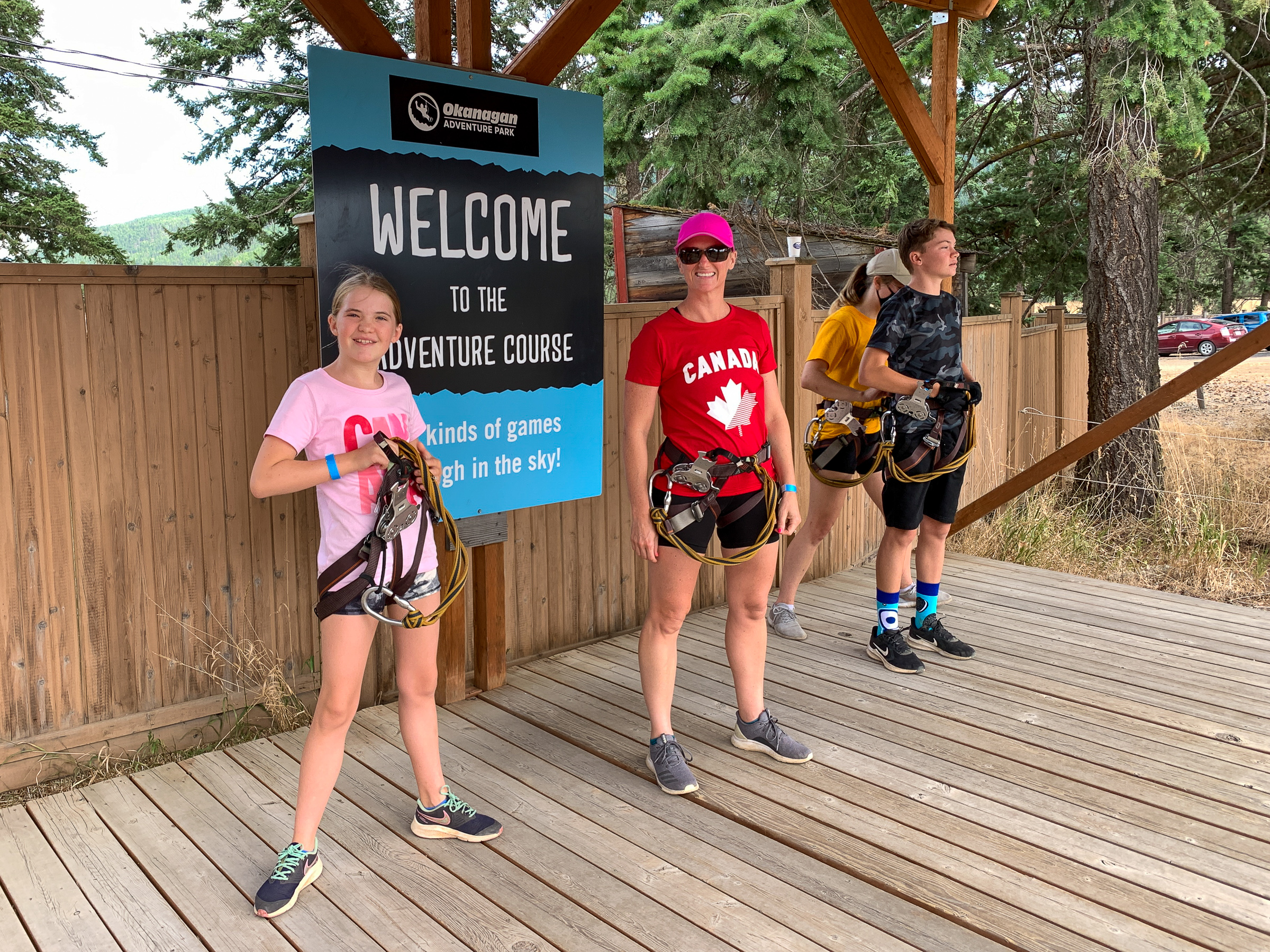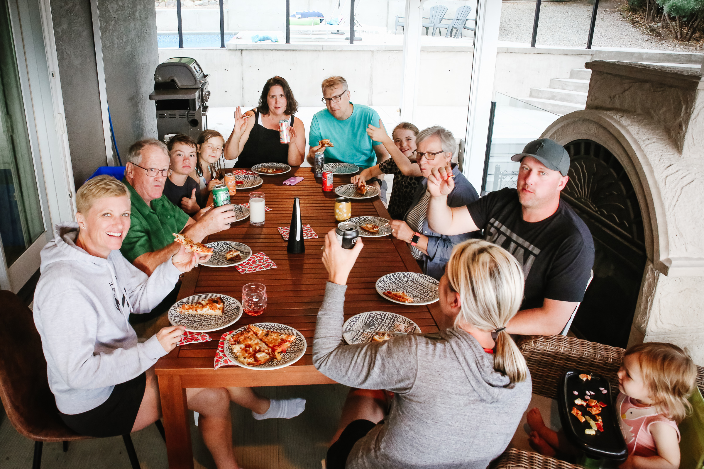 By Friday, we were ready to really get into vacation mode as Ryley was finally free of quarantine at lunchtime! First order of business was to immediately leave the house and hit the ropes course at the Okanagan Adventure Park back up in Kelowna. Given it was a bit of a drive to get there, we made it an overnight adventure, having Cactus Club takeout / an evening with friends of ours (the Gilberts) and then staying at the Royal Anne hotel downtown. The following morning, we drove a bit further to meet up with some more friends (the Von Waltons) at the Kangaroo Farm. It was great to catch up with all these guys before a grueling afternoon of shopping (the ‘Costco run’) back in Kelowna to prepare for the upcoming few weeks with family. Jenn’s brother Andrew and his family arrived in Naramata while we were out adventuring, while the rest of Jenn’s family was due to arrive Saturday evening, so we got our supplies and headed back down to the rental house to meet up with everyone for our traditional first-night pizza party!