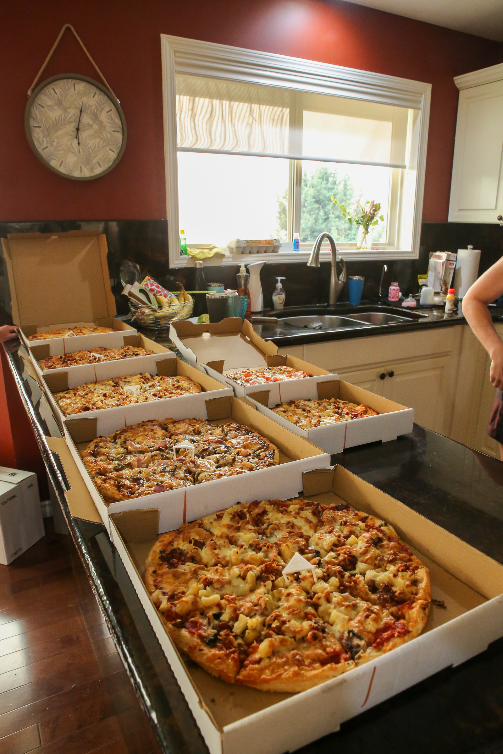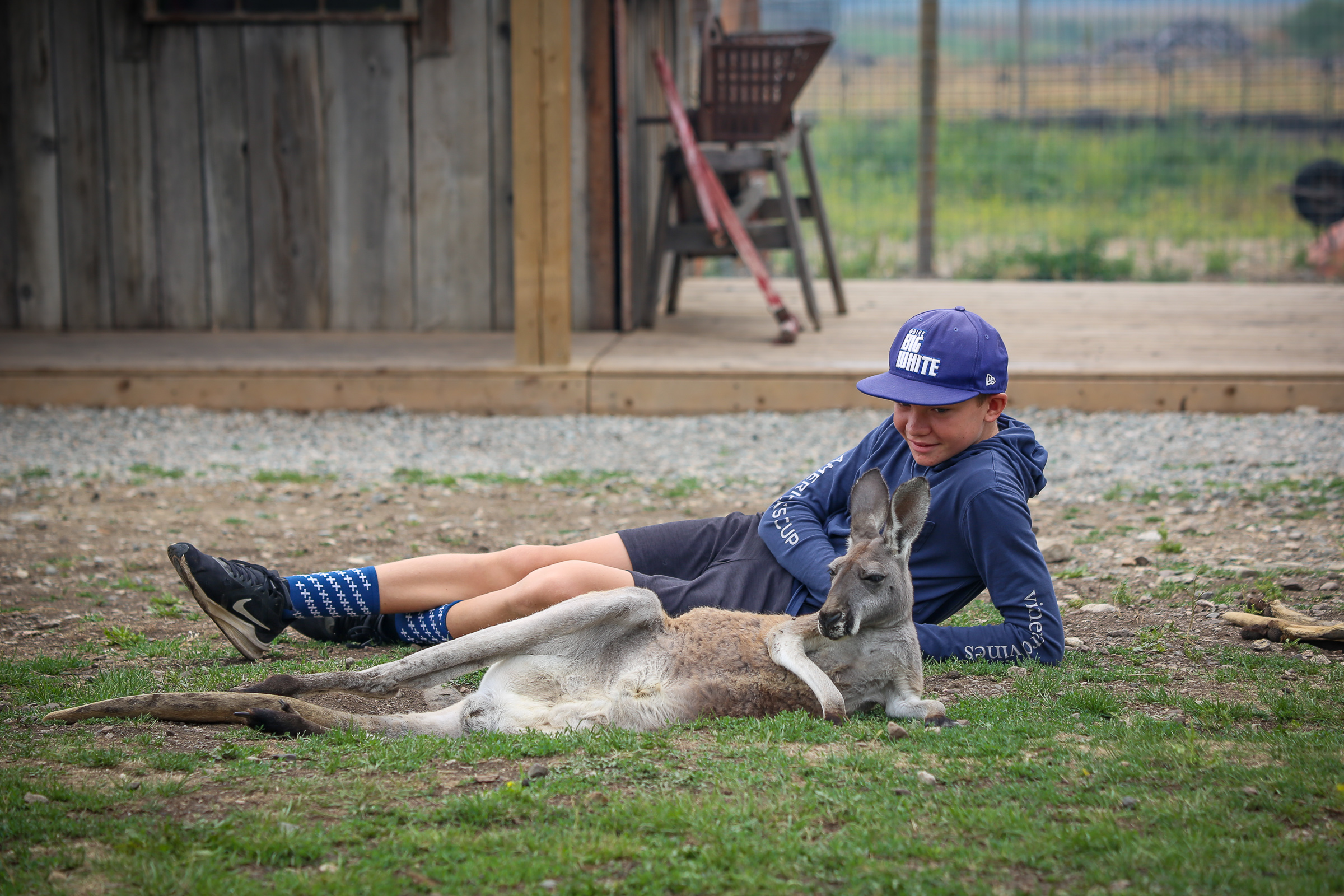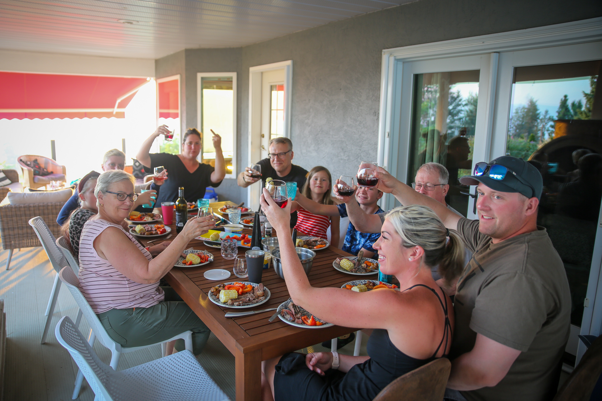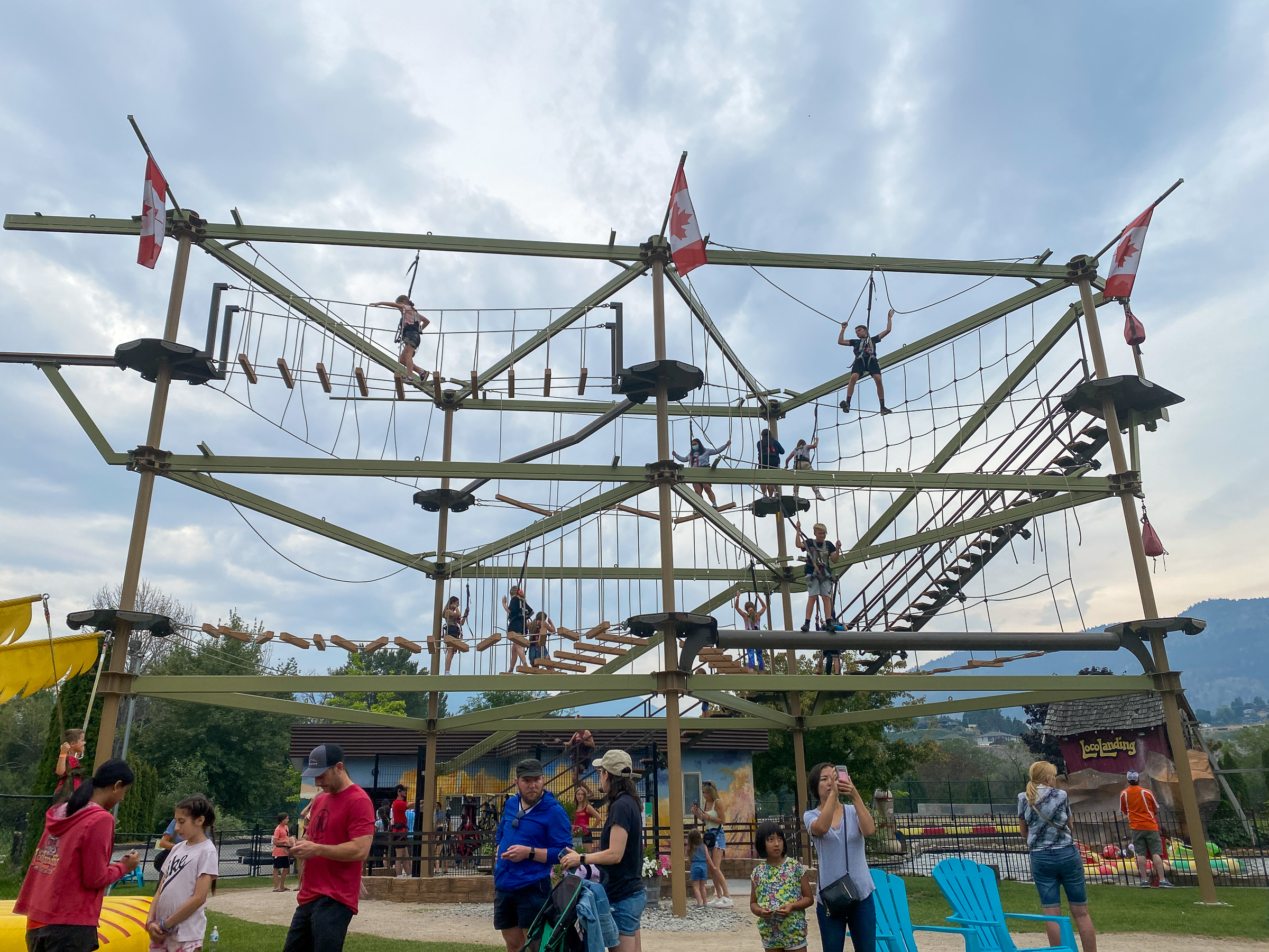 By Friday, we were ready to really get into vacation mode as Ryley was finally free of quarantine at lunchtime! First order of business was to immediately leave the house and hit the ropes course at the Okanagan Adventure Park back up in Kelowna. Given it was a bit of a drive to get there, we made it an overnight adventure, having Cactus Club takeout / an evening with friends of ours (the Gilberts) and then staying at the Royal Anne hotel downtown. The following morning, we drove a bit further to meet up with some more friends (the Von Waltons) at the Kangaroo Farm. It was great to catch up with all these guys before a grueling afternoon of shopping (the ‘Costco run’) back in Kelowna to prepare for the upcoming few weeks with family. Jenn’s brother Andrew and his family arrived in Naramata while we were out adventuring, while the rest of Jenn’s family was due to arrive Saturday evening, so we got our supplies and headed back down to the rental house to meet up with everyone for our traditional first-night pizza party!