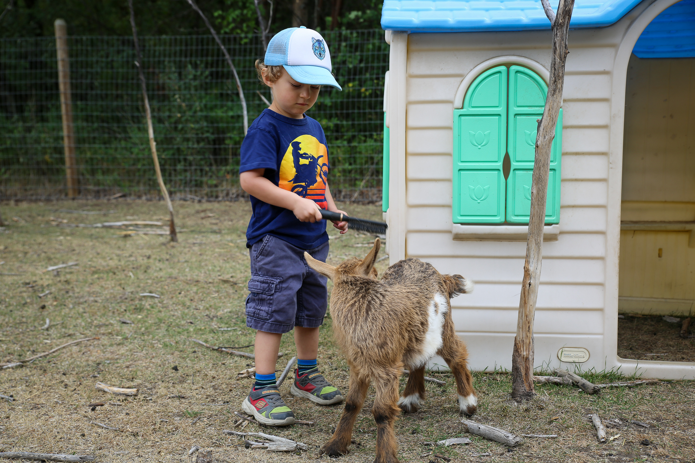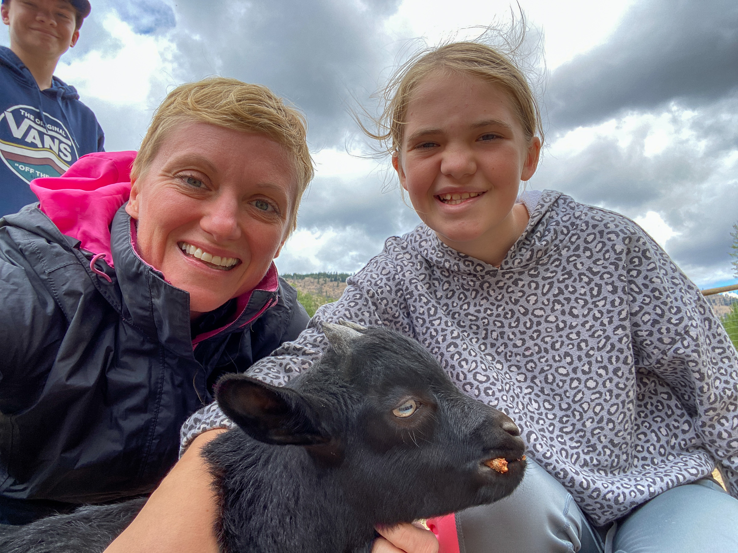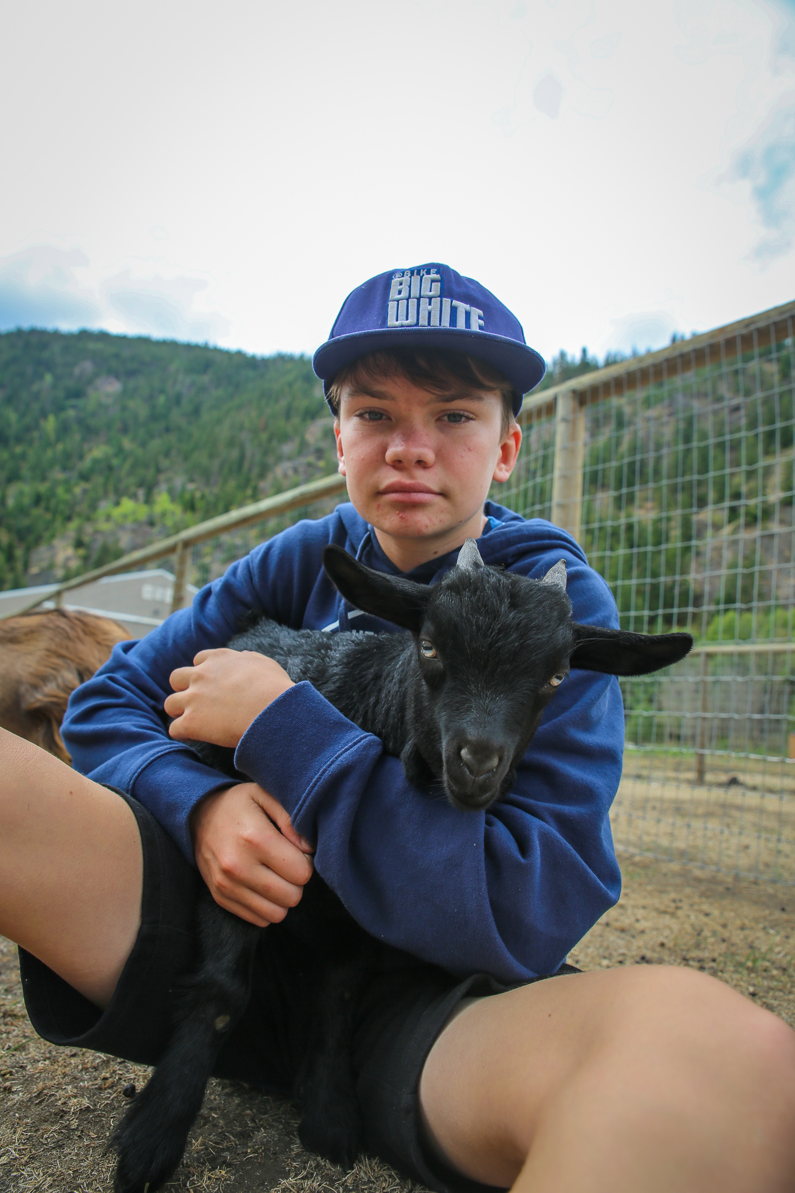 We were all leaving the following Monday, so made the most of our time there. We went on a few hikes at nearby Creek Park to Naramata Falls (did some geocaching on the trails, too), and took in the Naramata Farmers Market in the first few days – again filling our spare time with plenty of swimming and some board games. Jenn and Josh both had bikes by this point (we bought Josh a new bike while there) so they went or a spin out on the Three Blind Mice trails for a morning. She found a goat farm for us to visit on Friday, which was pretty cool – the kids really had fun, the baby goats were adorable! We wanted to show Cass’ boys Loco Landing as well so we went there for some fun after the goats!