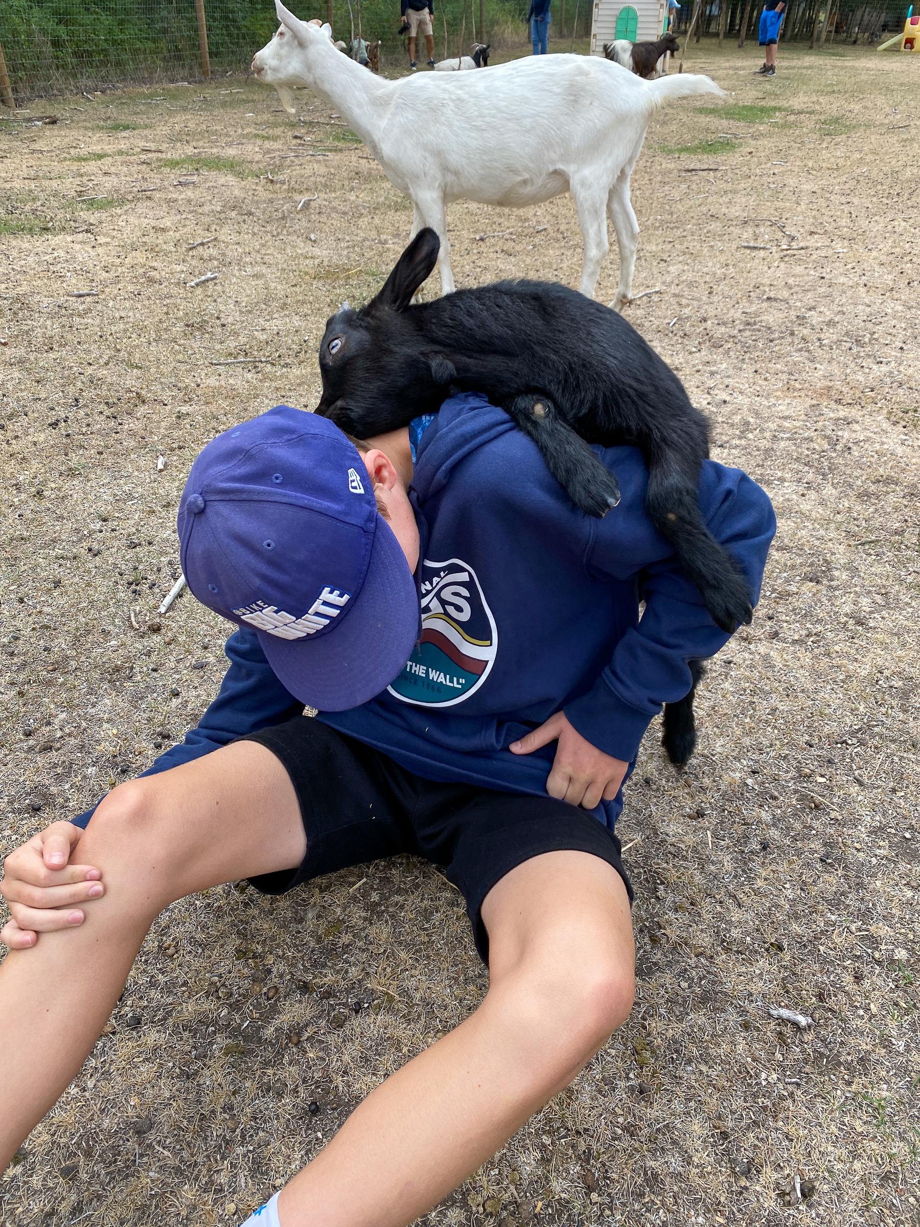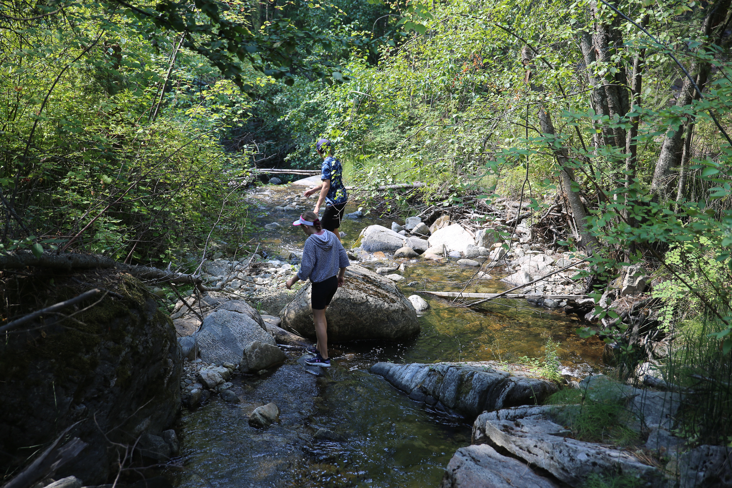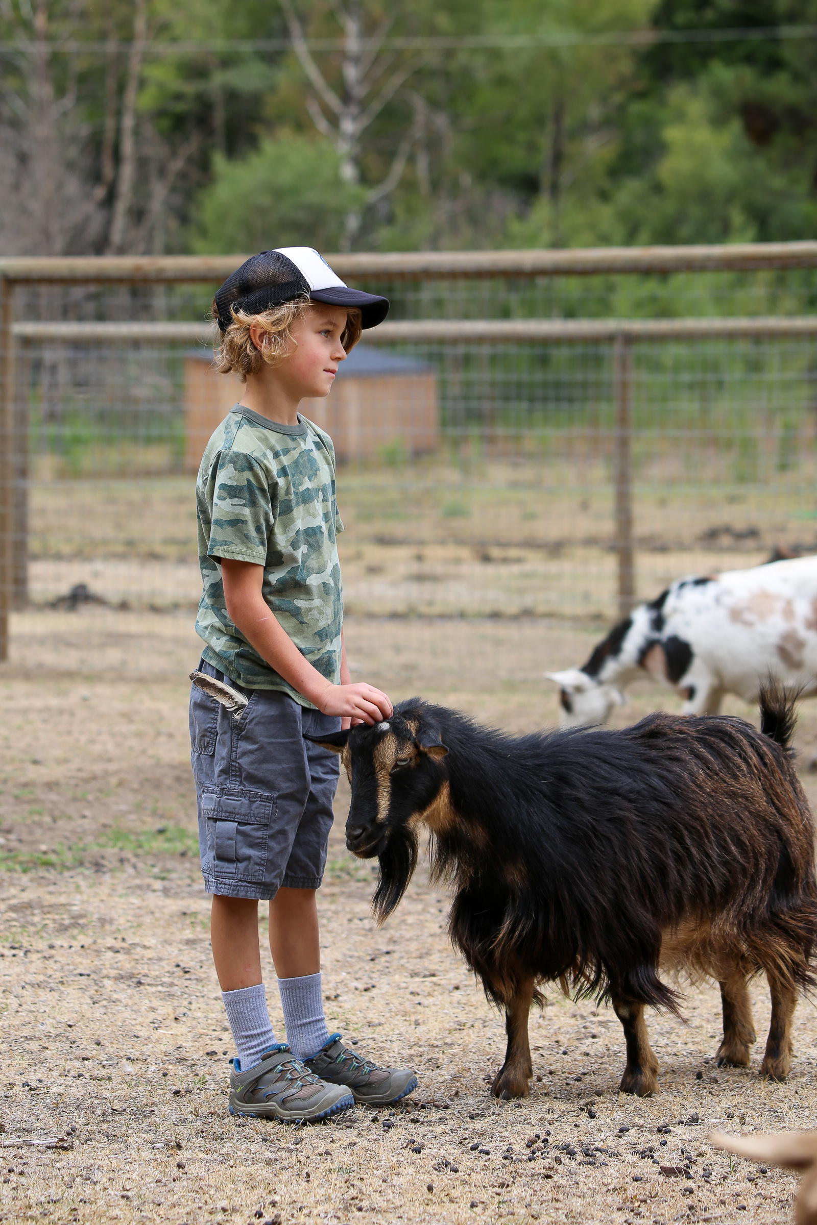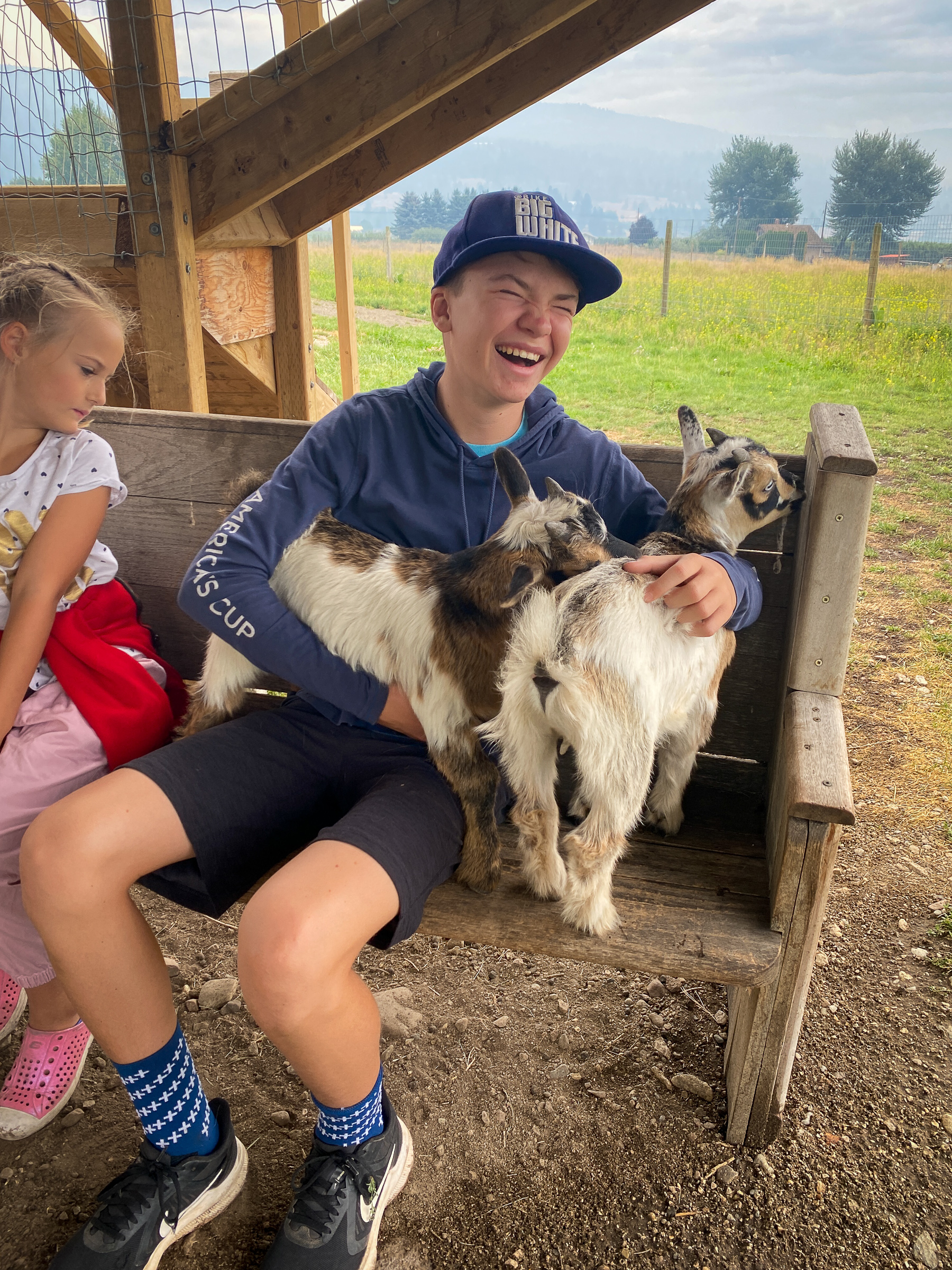 We were all leaving the following Monday, so made the most of our time there. We went on a few hikes at nearby Creek Park to Naramata Falls (did some geocaching on the trails, too), and took in the Naramata Farmers Market in the first few days – again filling our spare time with plenty of swimming and some board games. Jenn and Josh both had bikes by this point (we bought Josh a new bike while there) so they went or a spin out on the Three Blind Mice trails for a morning. She found a goat farm for us to visit on Friday, which was pretty cool – the kids really had fun, the baby goats were adorable! We wanted to show Cass’ boys Loco Landing as well so we went there for some fun after the goats!