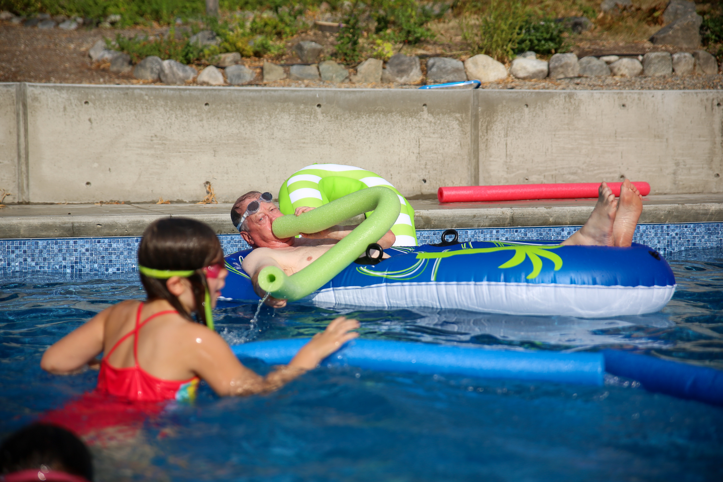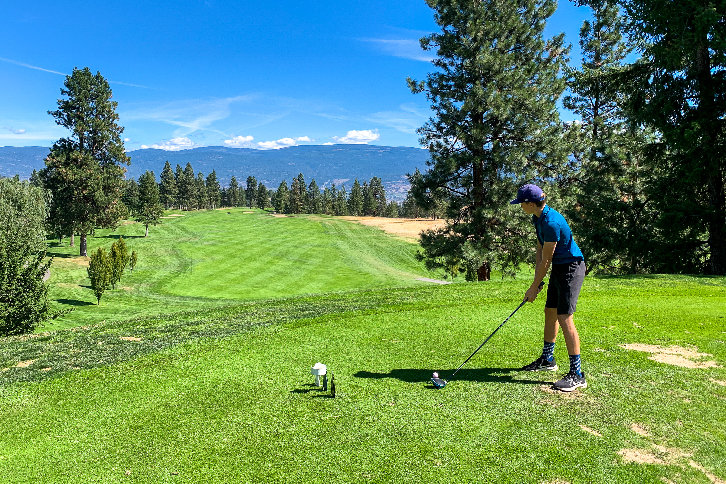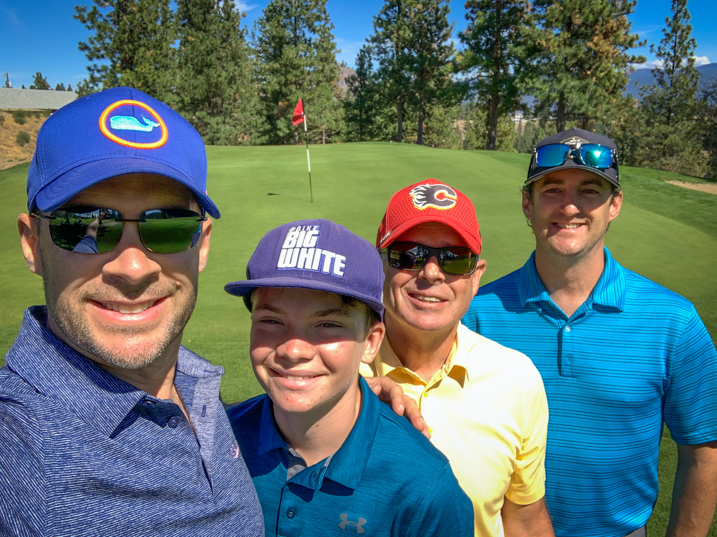 Josh and I hadn’t been golfing in the Okanagan yet (ever!) so as Papa and Cass’ partner Kent are fairly avid golfers Papa booked us a tee time at the Summerland Golf Club for a round on Saturday morning – beautiful course on a beautiful day – we had a great time. While we were hacking away, the rest were back at the house swimming and doing some more geocaching. Upon our return, we all ventured back to Loco Landing (boys must have loved it the day before!) to round out the day. I think we were all tuckered out, as the next day we happily opted for a chilled out pool session while we watched water bombers collect water from the lake in front of the house to douse a new fire that started just down near Penticton (we could see it clearly from our place)!