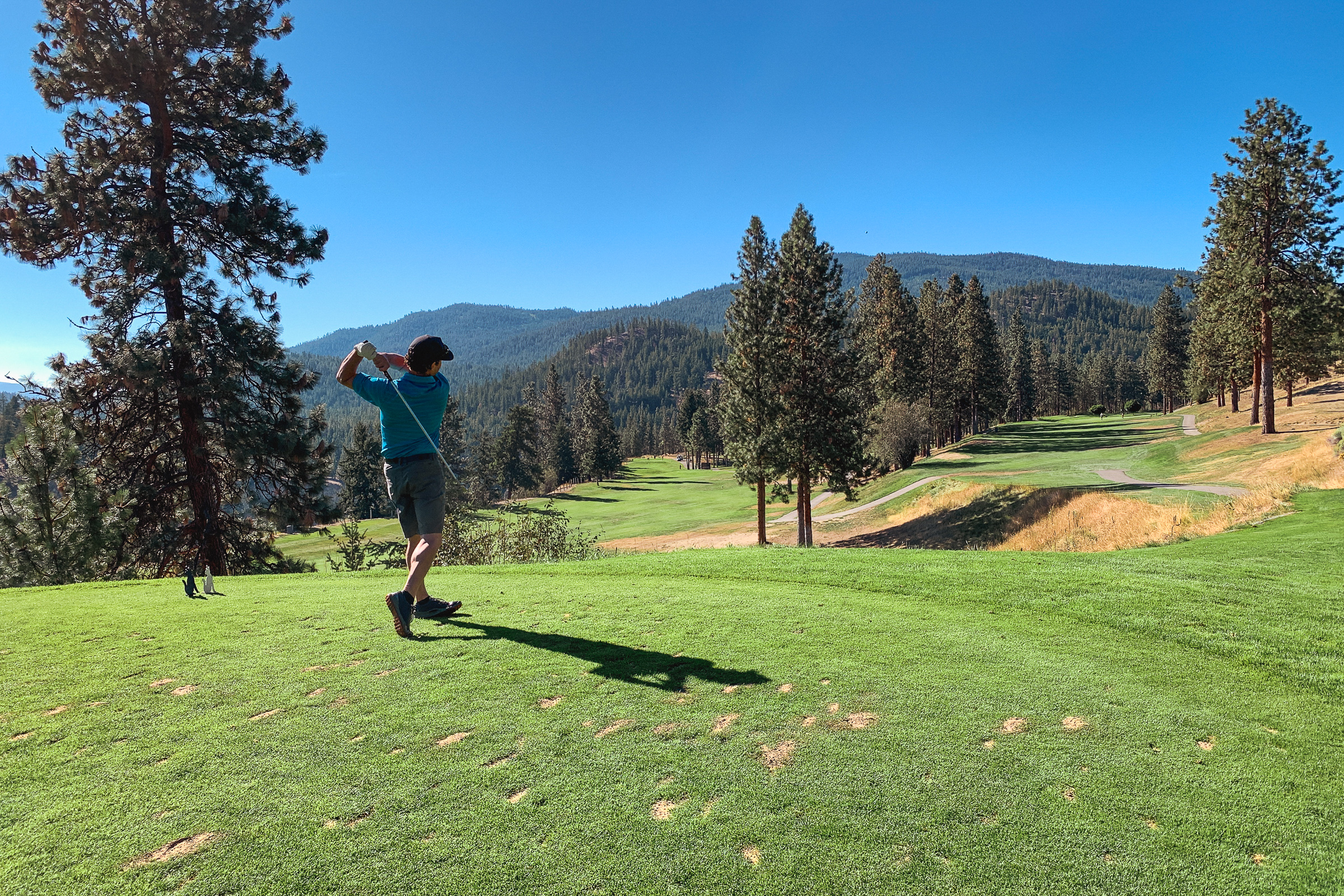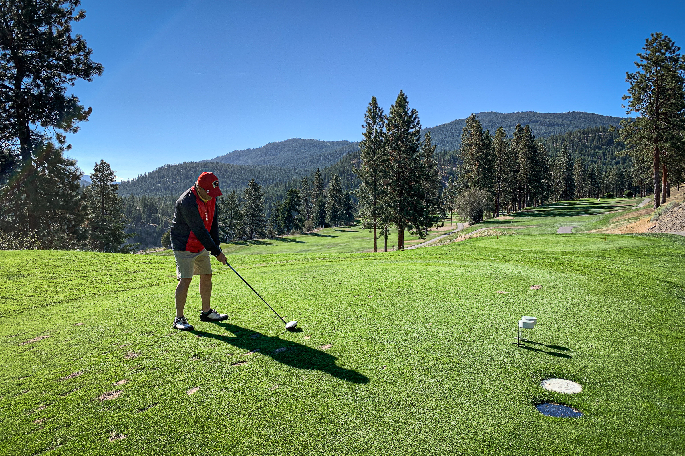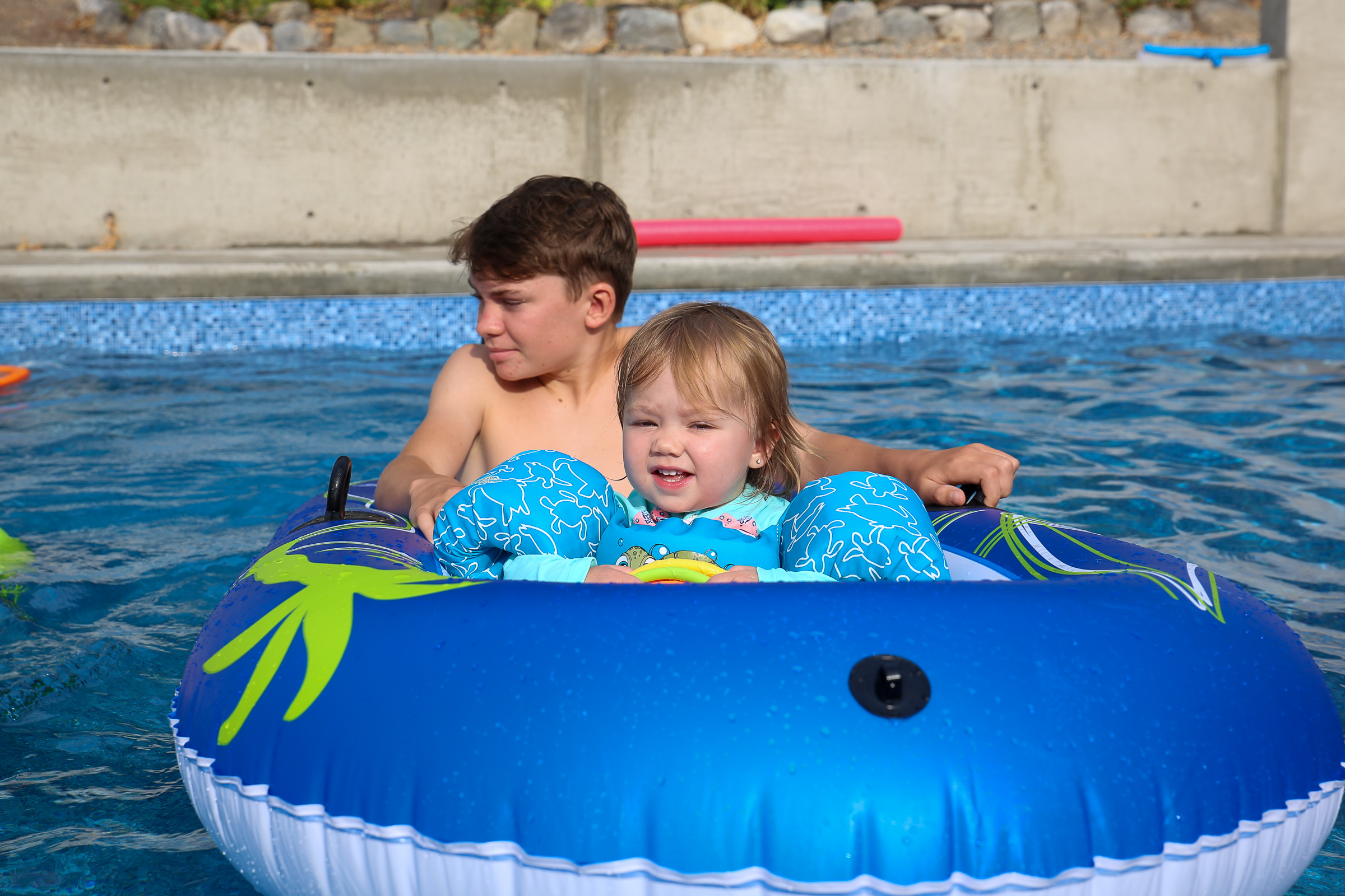 Josh and I hadn’t been golfing in the Okanagan yet (ever!) so as Papa and Cass’ partner Kent are fairly avid golfers Papa booked us a tee time at the Summerland Golf Club for a round on Saturday morning – beautiful course on a beautiful day – we had a great time. While we were hacking away, the rest were back at the house swimming and doing some more geocaching. Upon our return, we all ventured back to Loco Landing (boys must have loved it the day before!) to round out the day. I think we were all tuckered out, as the next day we happily opted for a chilled out pool session while we watched water bombers collect water from the lake in front of the house to douse a new fire that started just down near Penticton (we could see it clearly from our place)!
