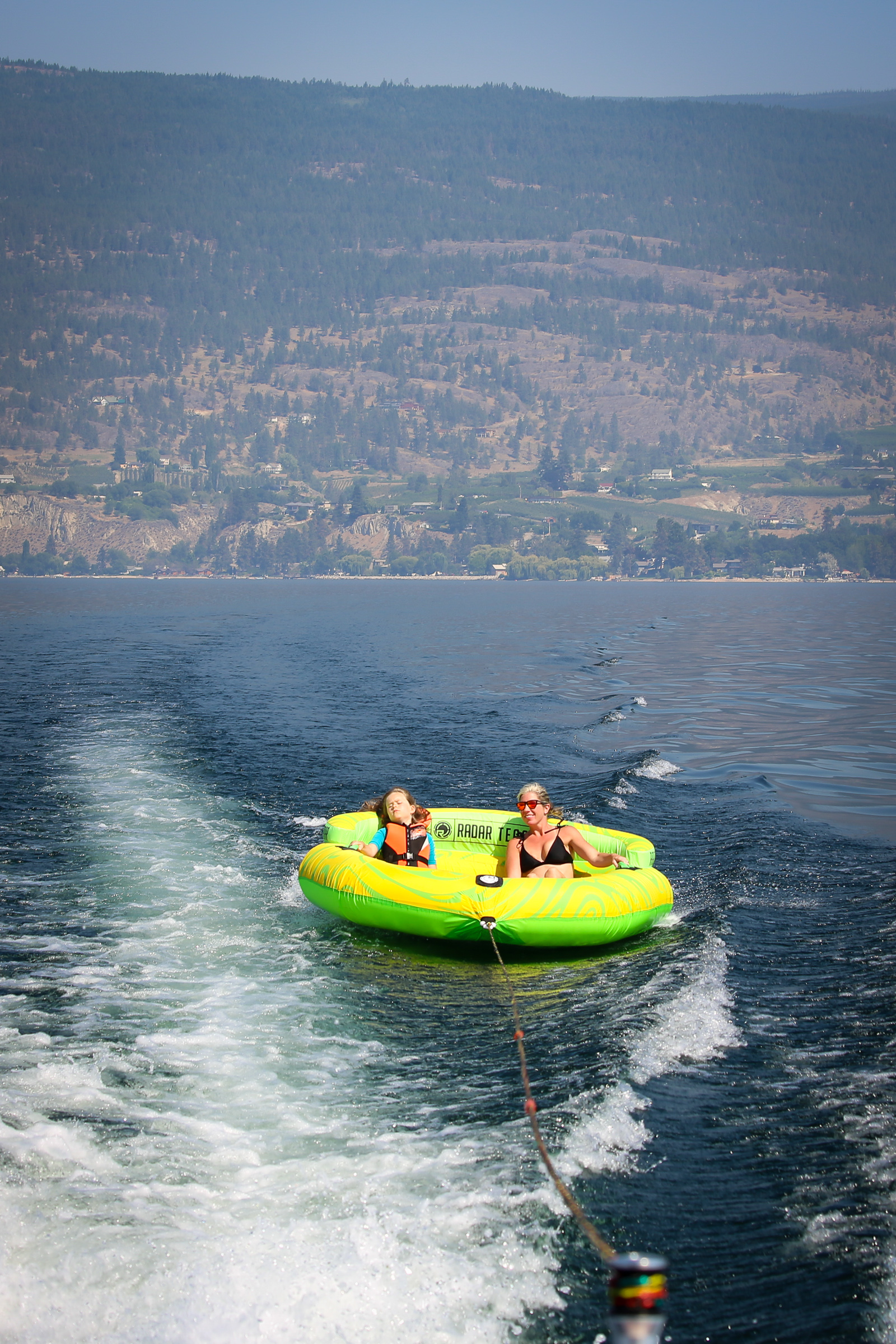 Saturday now; it had been a few weeks since we’d been to the Kangaroo farm – we were staying nearby, so we used it as a meeting place to see our buddy Joanna this time! We introduced her to Pane Vino for lunch, then bid her adieu so we could rest up for dinner at Cactus Club that evening (we have to go every year at least once!). We rounded out the weekend with a pontoon boat rental to tour the lake with Amber and a few of her kids – though the weather wasn’t ideal (cool and windy) it was still a good afternoon. Monday was our last day before the ‘final phase’ of our holiday, it was a low-key affair spent in Kelowna shopping, skate-parking, and the girls had their nails done.