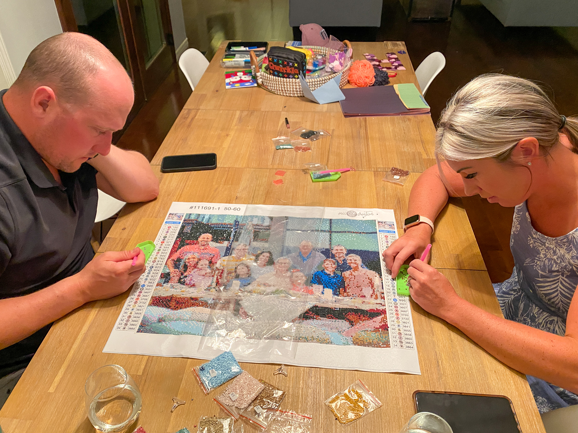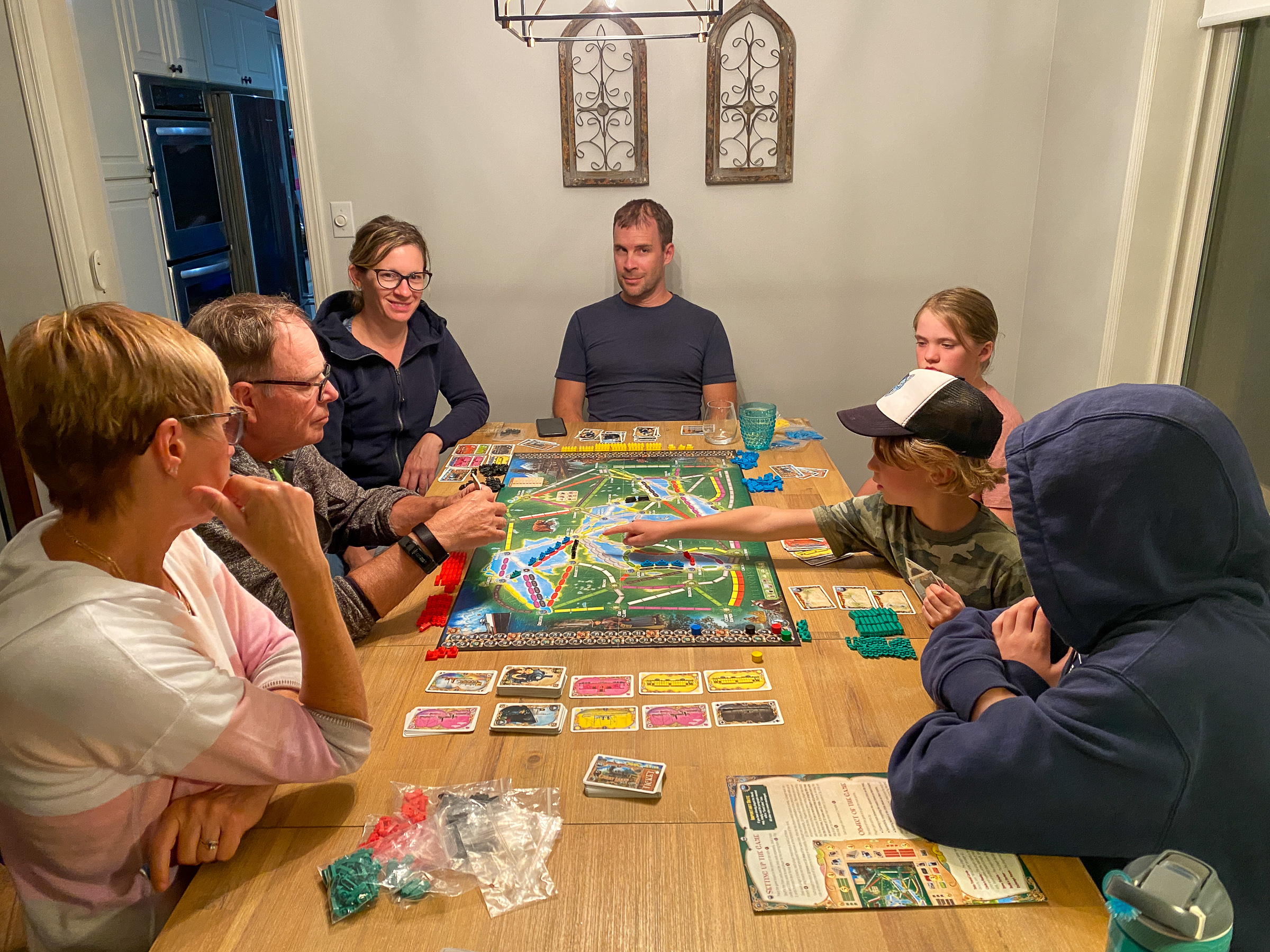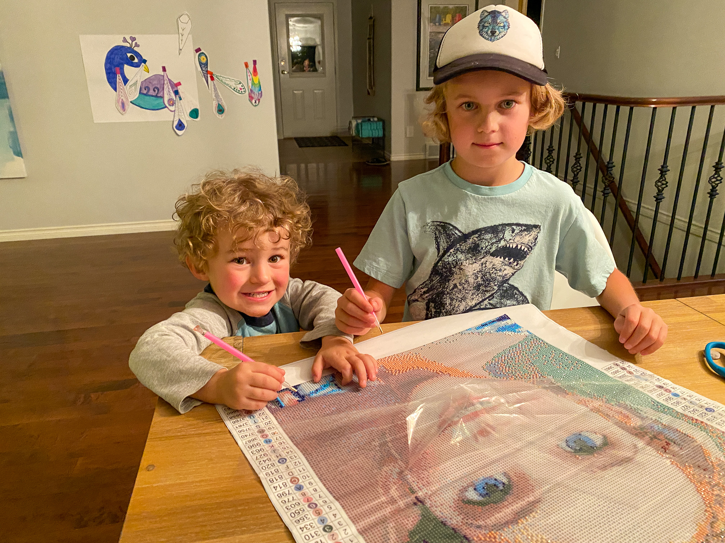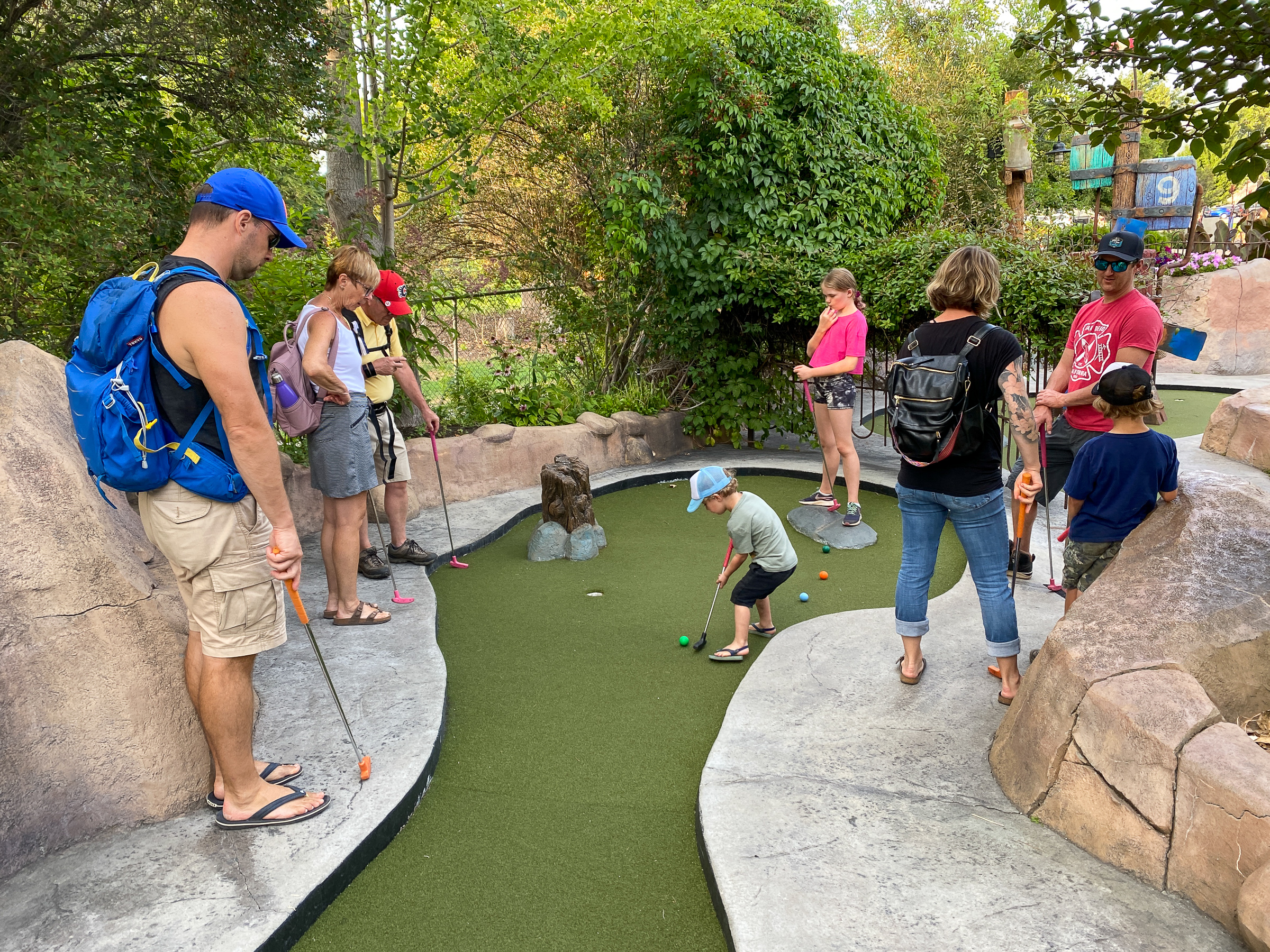 The first full family day we started off by chillin’ – literally – as it was a weirdly cool and rainy morning (11° – Jenn was wrapped in a blanket at breakfast!). All the week’s puzzles and crafts came out to pass the time until the sun came out (the diamond dots were a favorite all week as everyone took a turn on the family photo when there was a spare moment or two), then it was pool party time! Having a pool was a great addition, it was good to have as a fall-back if we didn’t feel like going on an adventure that day, as was the nearby pump track that got plenty of use!