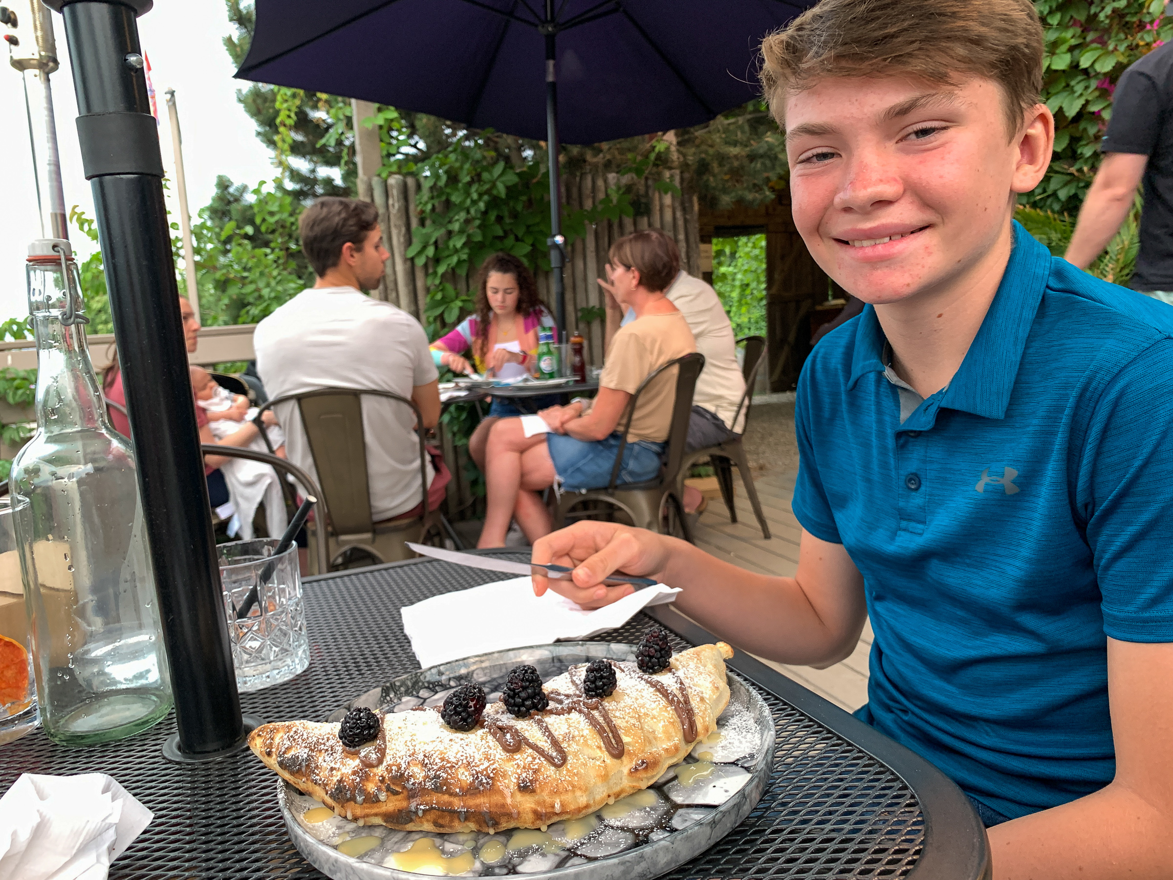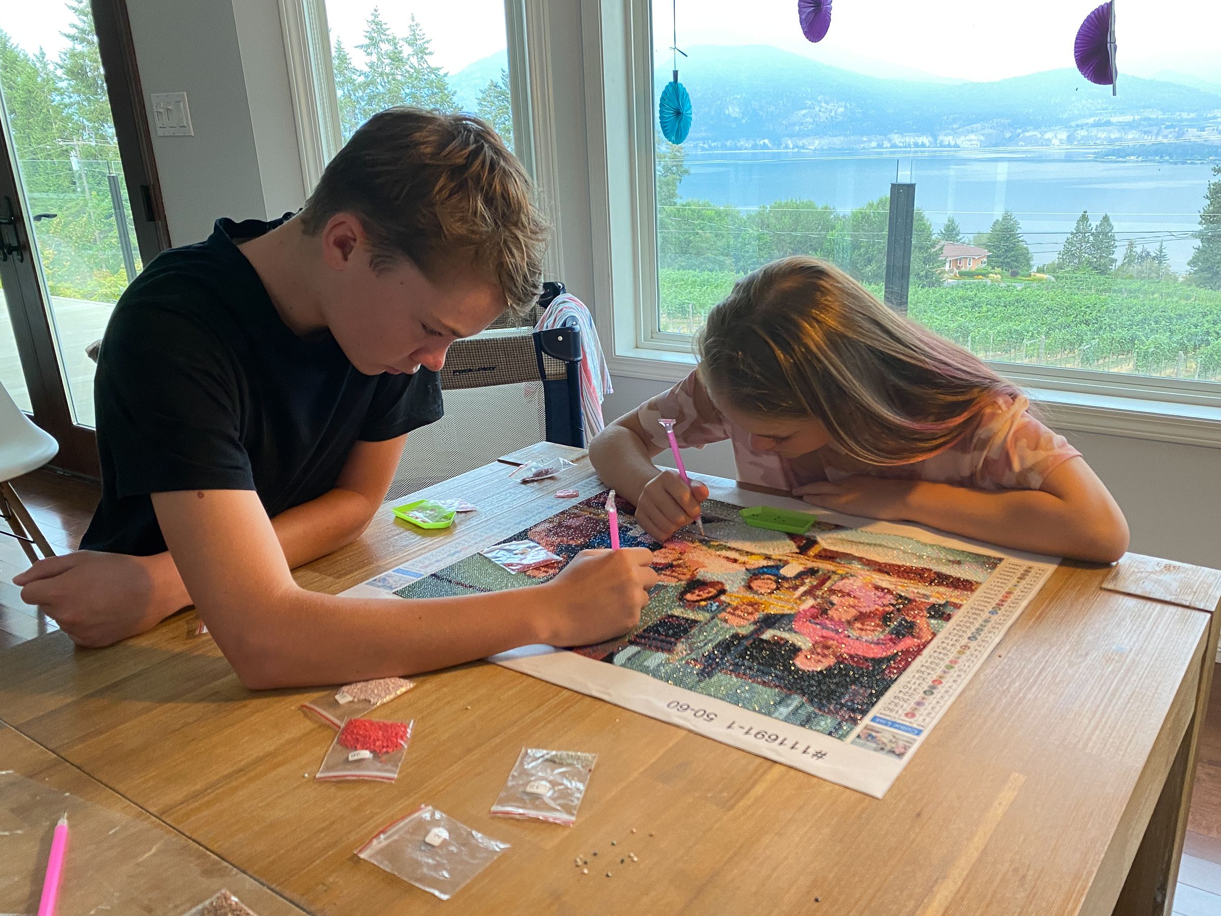 This year we started out at a house in West Kelowna, for a change of locale from last year (scenery is much the same, still gorgeous!). Our first night and next day were pretty relaxed, just settling in and relying on take out dinner then lunch. As mentioned, only Ryley wasn’t able to leave the house at first so over the next week Jenn and I took turns doing errands, like Target or groceries, taking Josh to a nearby skate park (I think we hit every skate park in the Okanagan by the time we flew out!), or together for lunch up the road at Mission Hill with some fellow Stonegate condo-owners. It just so happened the Tokyo summer Olympics were just ramping up as well when we arrived, so it was easy to stay at the house with Ryley and chill by the pool with some sports on TV / iPad – a particular highlight being our pal Flora winning a gold medal in triathlon! Beyond swimming and TV watching, Jenn arranged for some HelloFresh meals and KiwiCo activity boxes for the kids to help with dinners and keep somewhat entertained while we were working and mostly tethered to the house.
