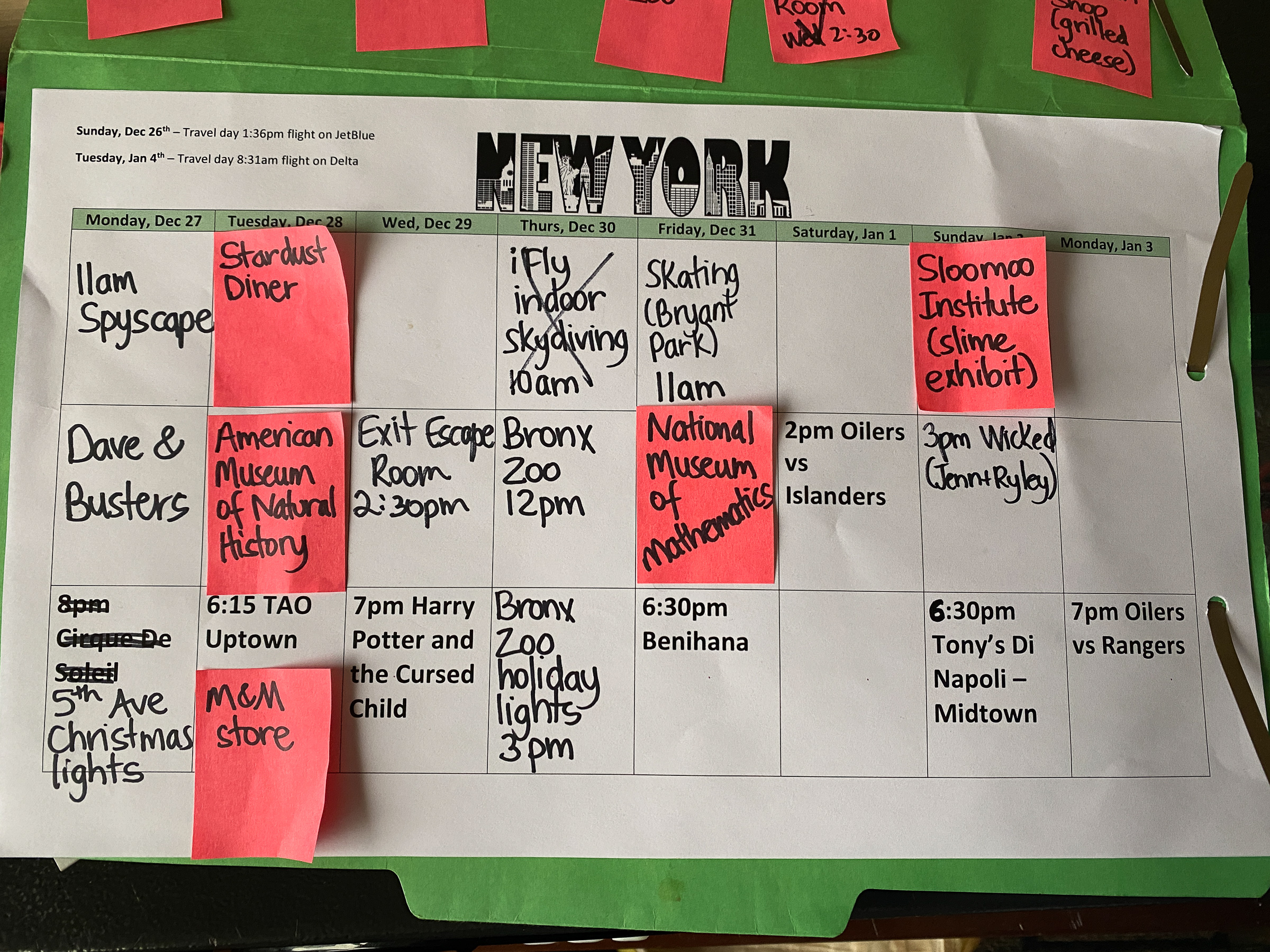As a surprise Christmas gift this year we (Jenn!) came up with the idea to fly out on boxing day to New York city for a little getaway! We set up a scavenger hunt to set up the trip: first some new traveling backpacks, then the trip itself, then a some tickets to a few shows, the some Oilers merch so we could go to a few Oilers games!