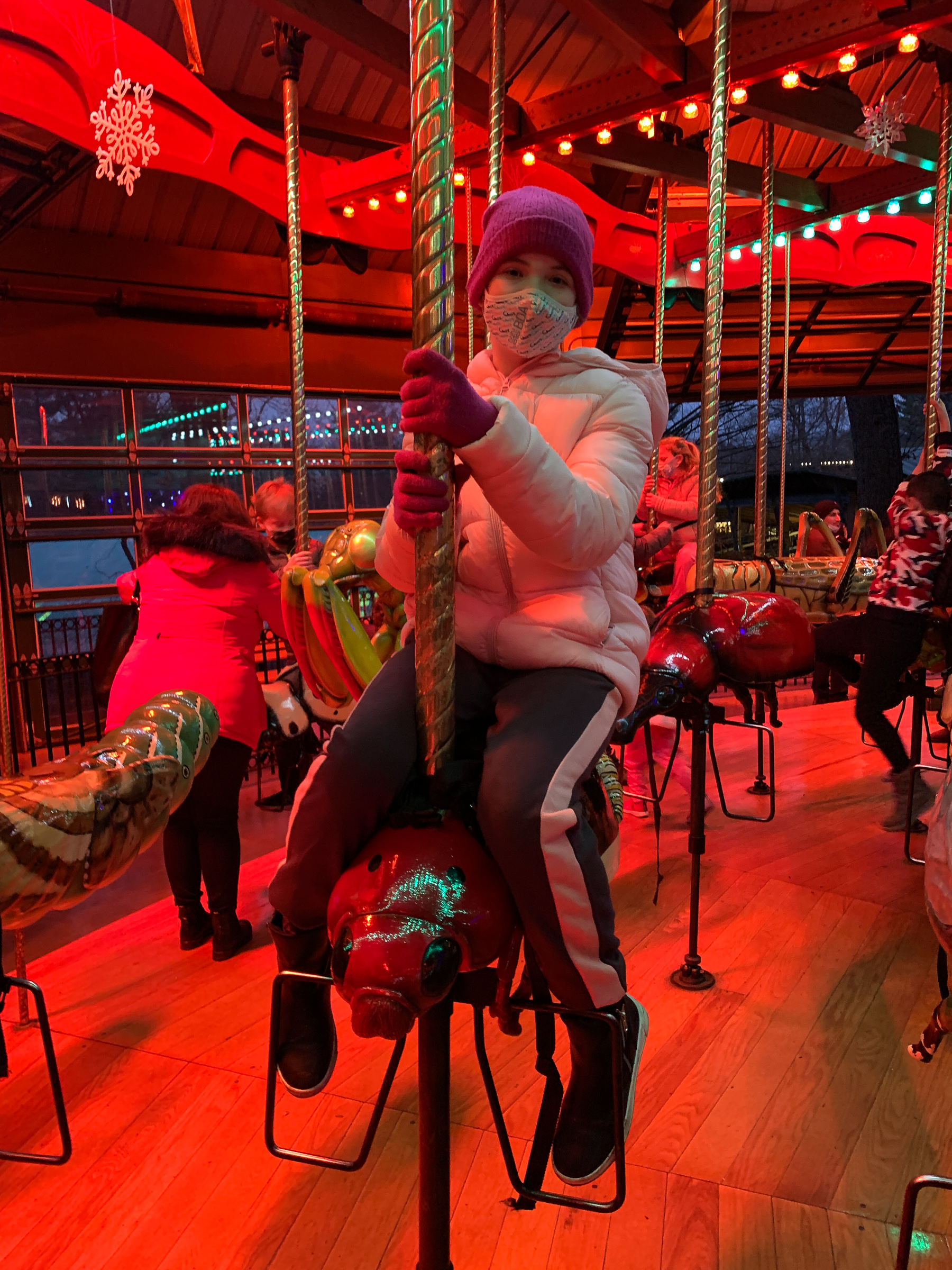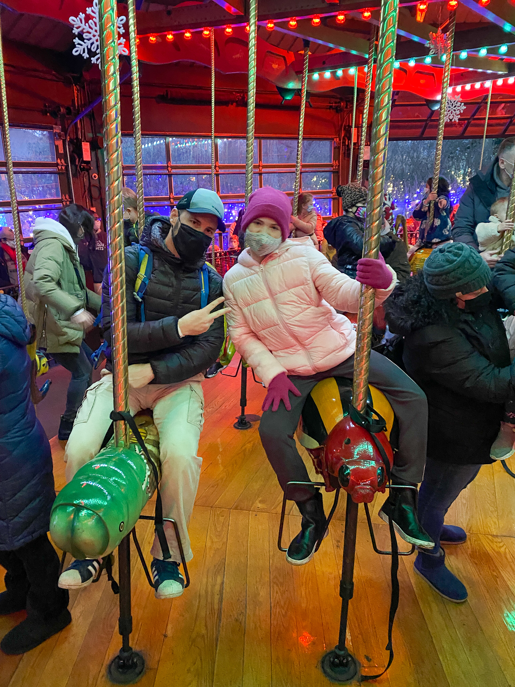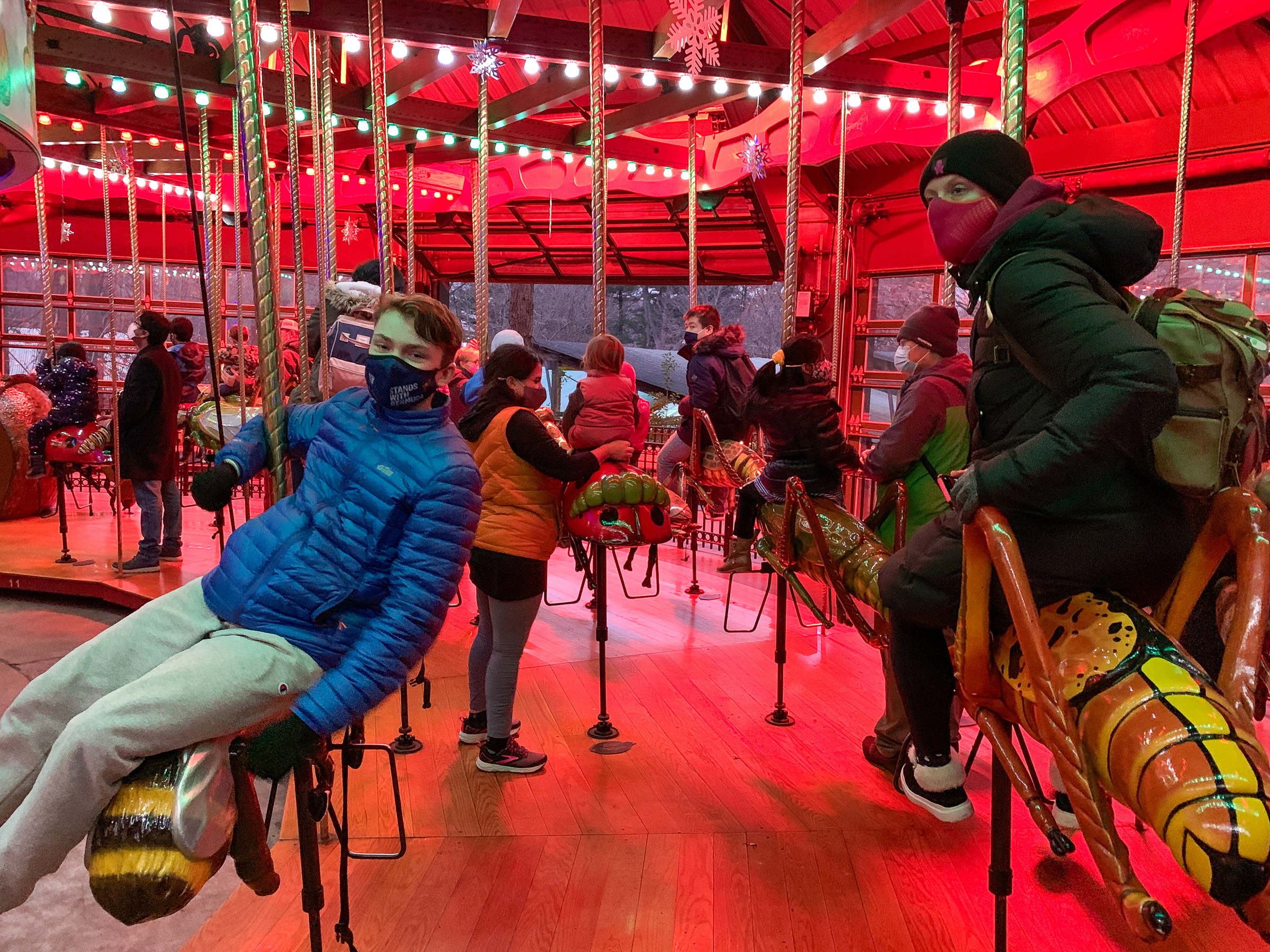 Next stop was a quick Uber ride up the island for a full day at the Bronx Zoo to see some animals! We put a few miles on our shoes that day, it’s a pretty big place to wander around. Some of our favorites were the penguins, the tiger, some lazy grizzly bears, and of course the giraffes! Ryley convinced us to go for a ride on an old-timey carousel, and there was a cool Christmas light show on after dusk. We happily retired to our hotel that night with sore feet and our Shake Shack takeout!
