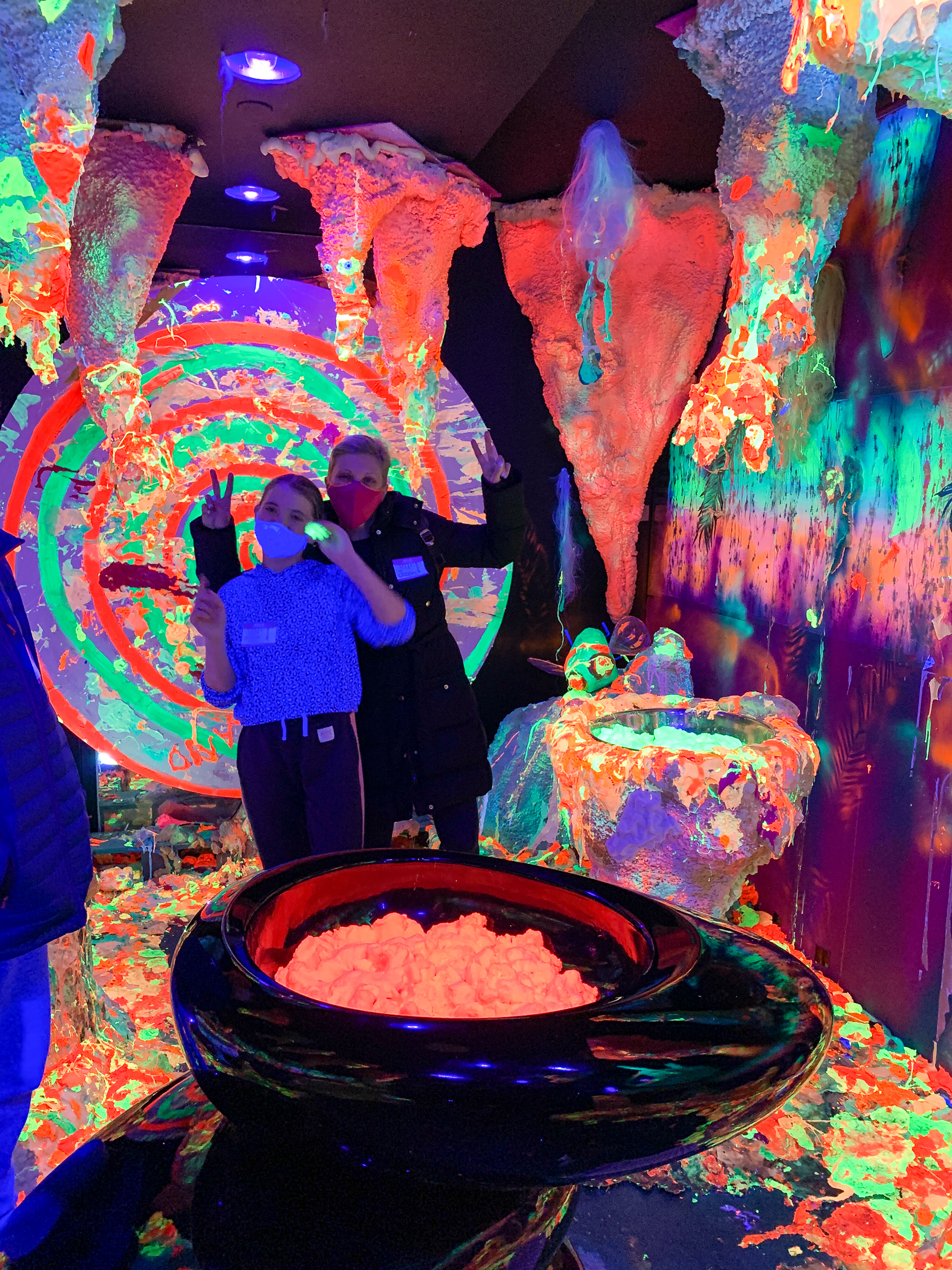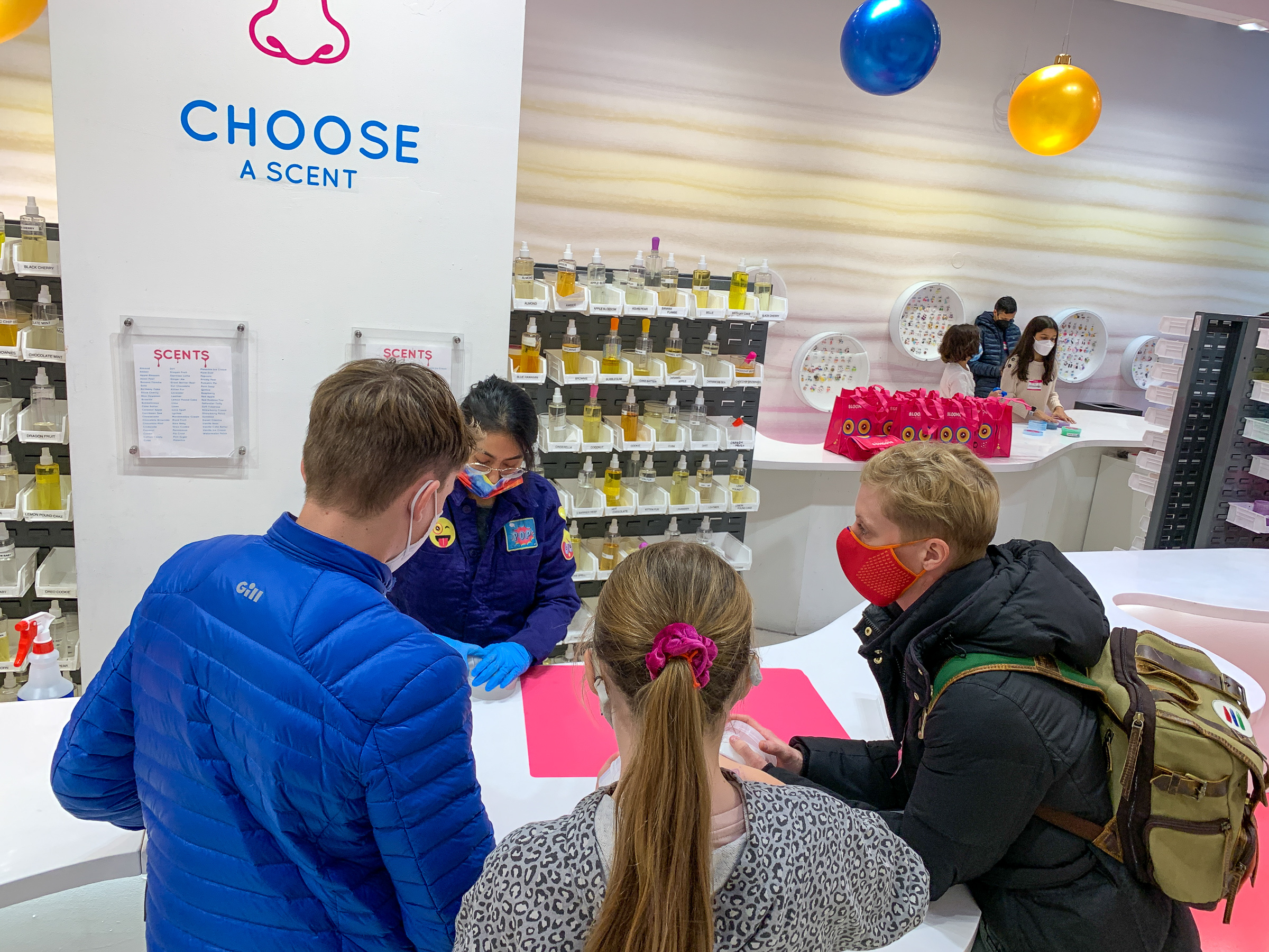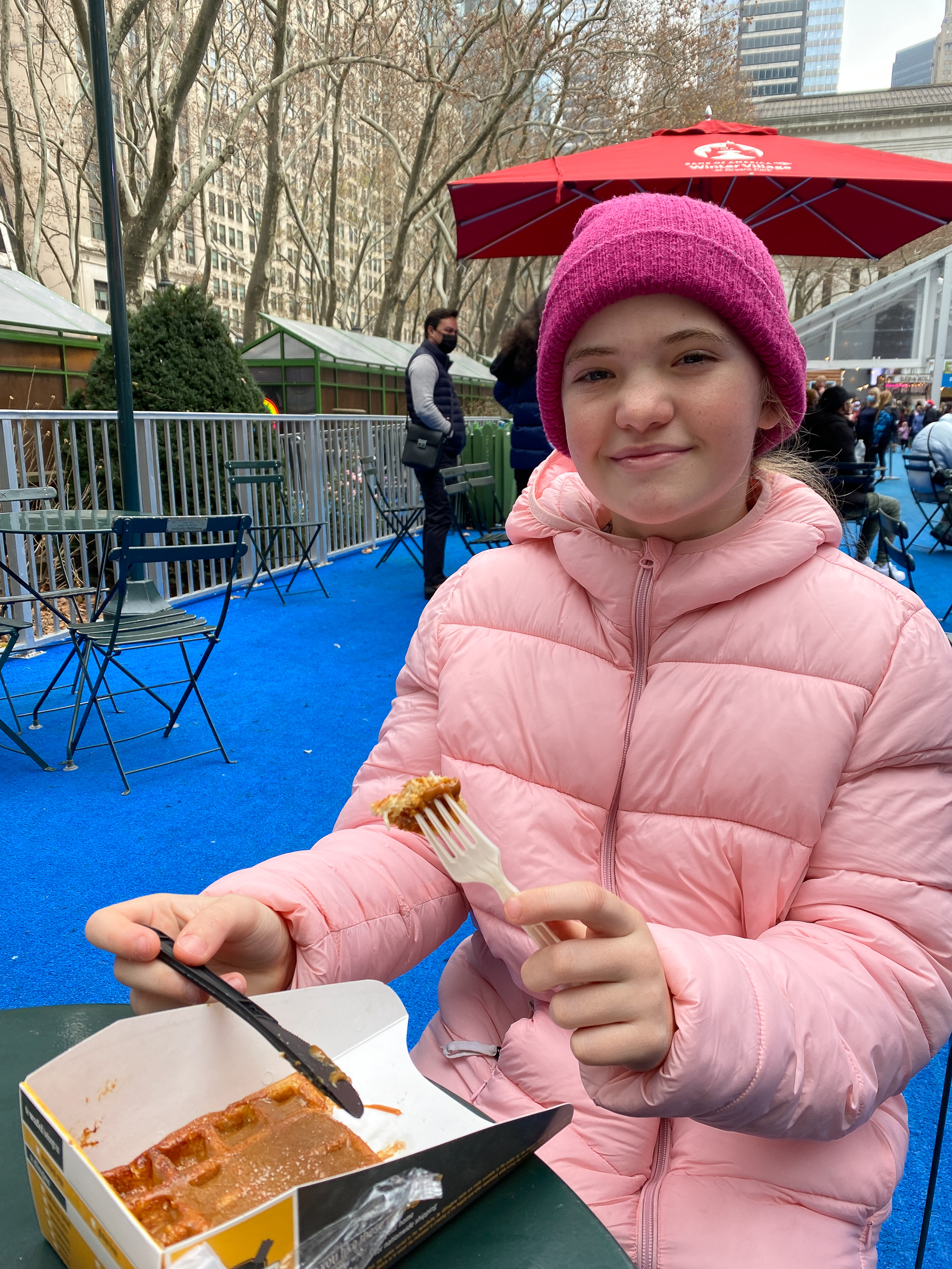 We wandered to Bryant Park on New Year’s eve day for some ice skating, which was very cool (pun intended!). Only complaint is the skates are the worst, but that is always the case with rentals! It was cool skating in the park surrounded by skyscrapers, I think Josh did about 700 laps! Ryley later got her wish and convinced us to take her to Sloomoo for a slime extravaganza! (Yuck.) A little shopping before dinner at Benihana, then back to the hotel to listen to the throngs of people in Times Square down the street for the big New Years eve celebrations (which we happily watched on TV instead)!