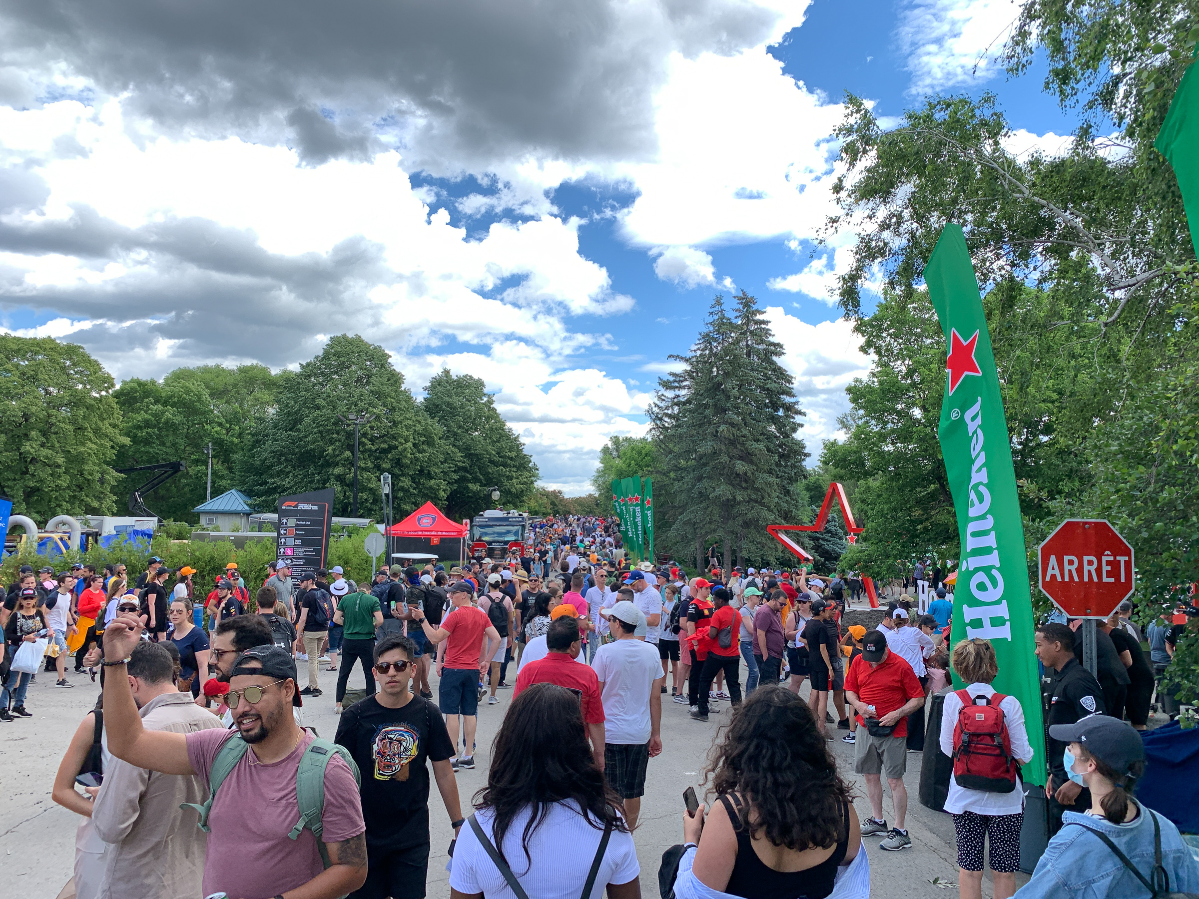 There were so many people there, it was crazy! The venue at Montreal – the Circuit Gilles Villeneuve – is on an artificial island that was originally built for Expo ’67. As such, there are only so many ways in and out. There are 100,000 tickets available per day (grandstands + general admission), which is a lot of people to make their way there via the Metro and squeeze through the three main entry points! It got busier the closer we got to Sunday’s race, but I think overall our commute was, on average, about 1.5 hours each way, including the 15 minute Uber between our hotel and the Metro. We knew it would be busy so didn’t worry too much about it… c’est la vie!