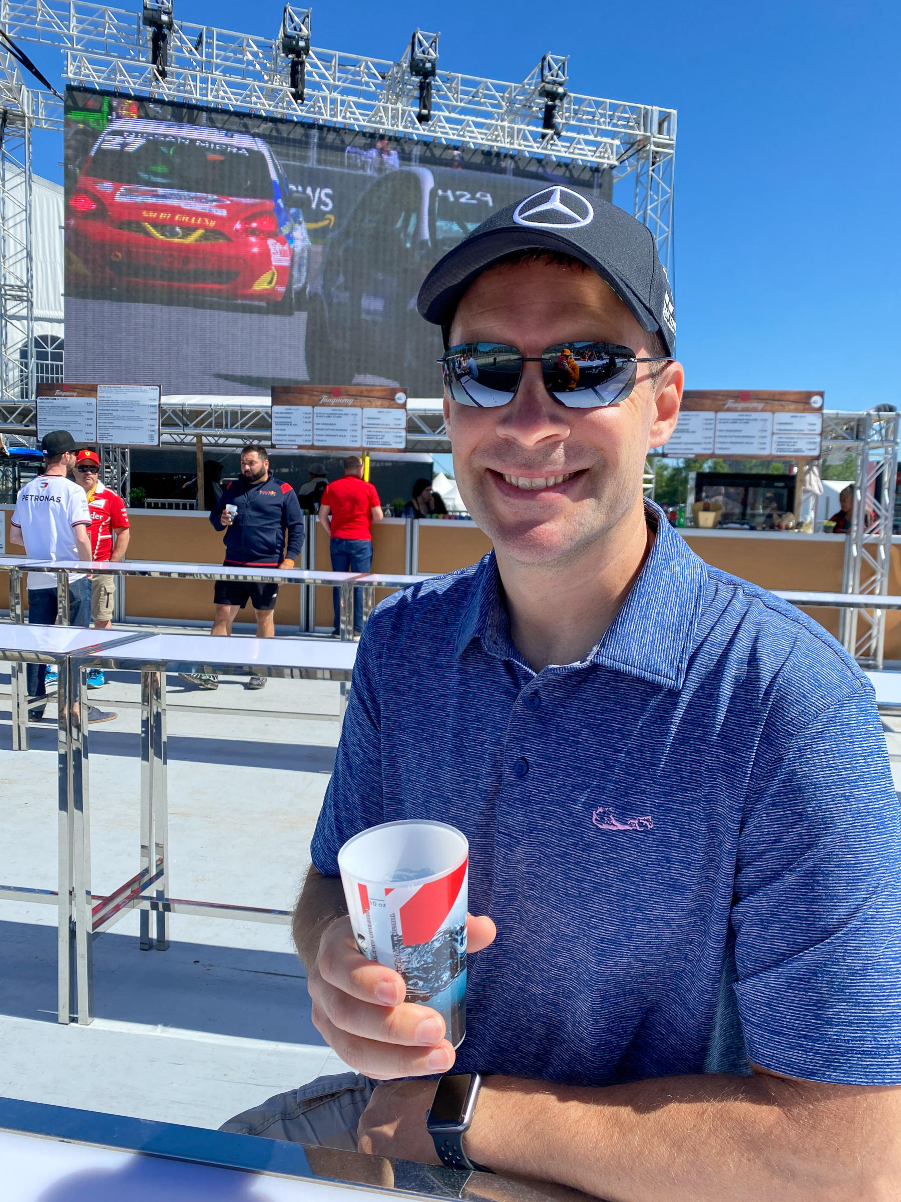 Overall, the whole race weekend was pretty awesome. Friday was a great day to get accustomed to the venue and take in some good race weekend vibes in a slightly less crowded (but still crowded) atmosphere. Saturday, cold as it was, was cool (pun!) to see the cars with the full-wet tires on, zipping by and creating the big rooster tail of water as they went. As mentioned, we sat across from pit lane along the straight section where the race starts and ends, so on race day there was a fair amount of action at certain times; before the race began, all the cars were sitting right in front of us on the starting grid as they prepared to start, then ‘lights out’ (race start) was awesome (and loud), and during the race the pit stops were pretty cool to see, too! Being on a long straight, each of the 20 cars would zoom by us almost 70 times over the whole race at over 300km/h!