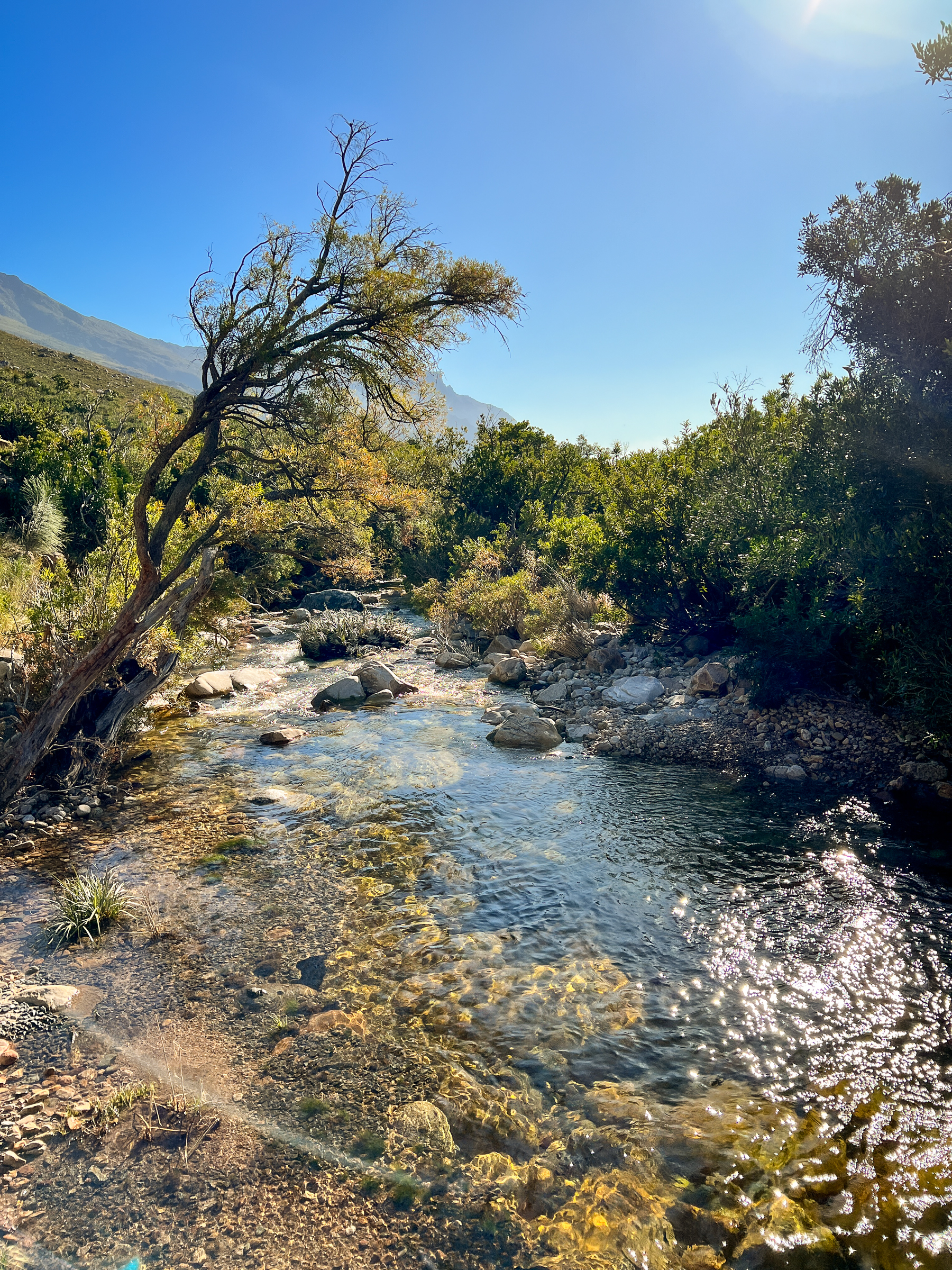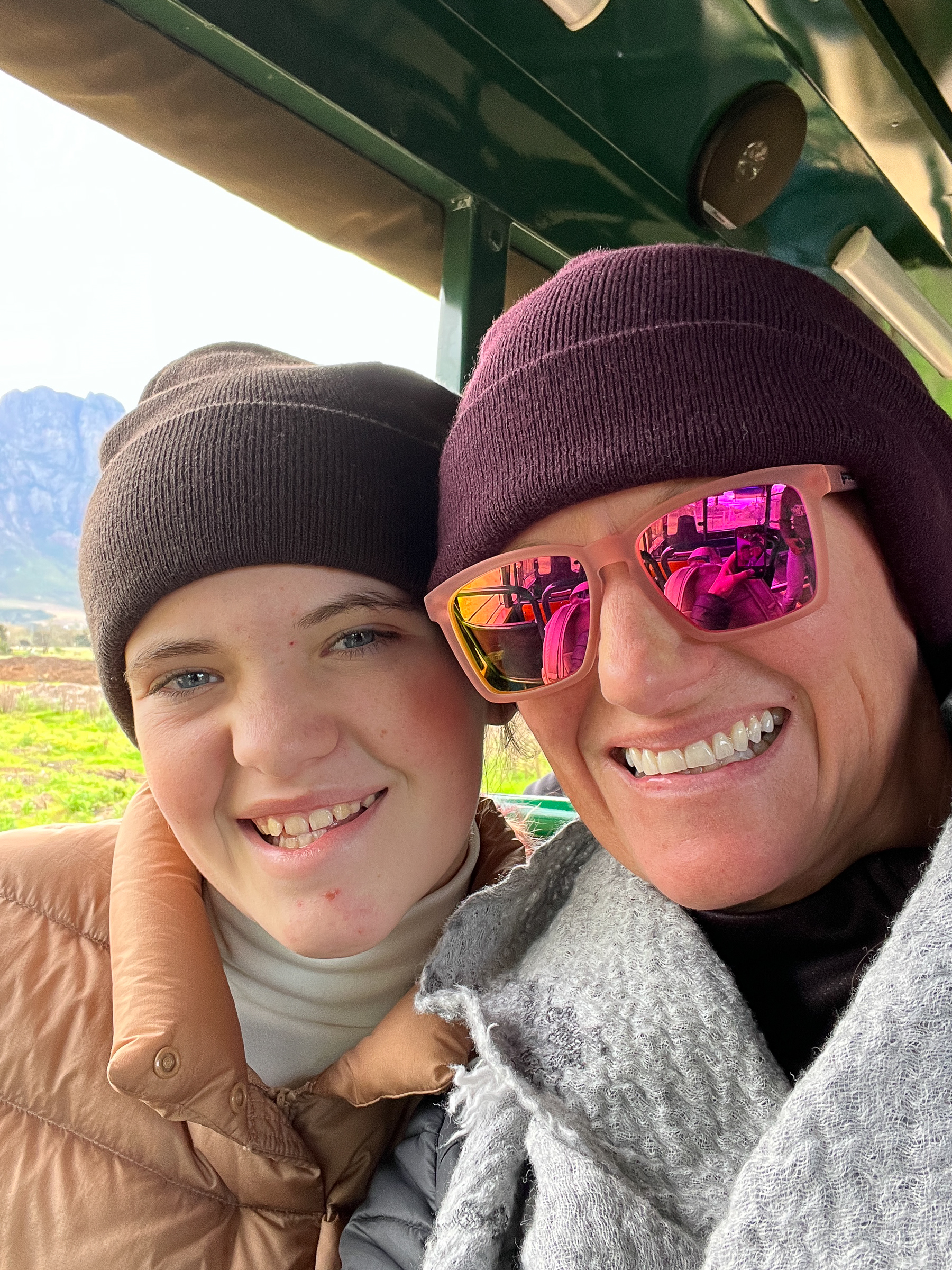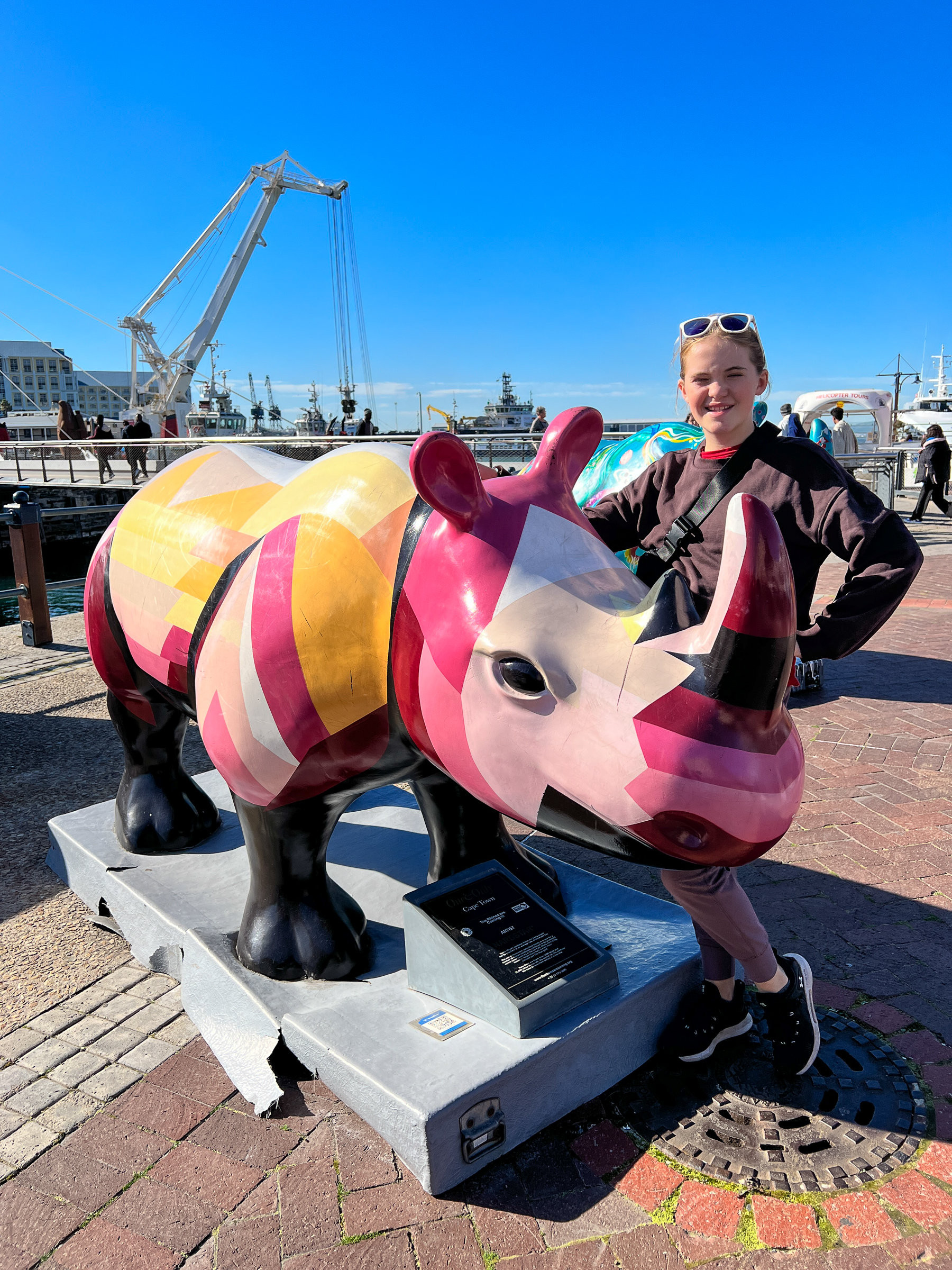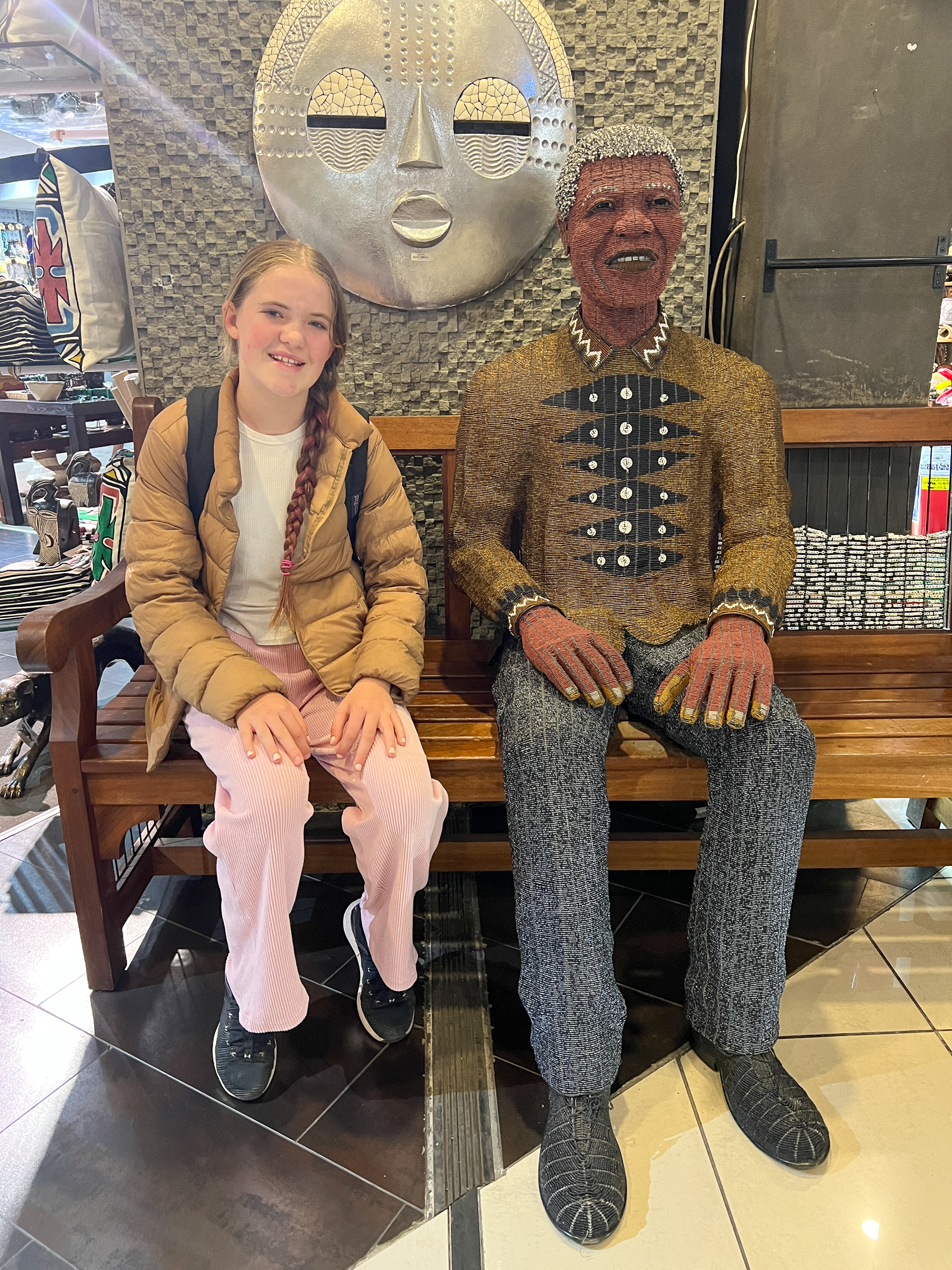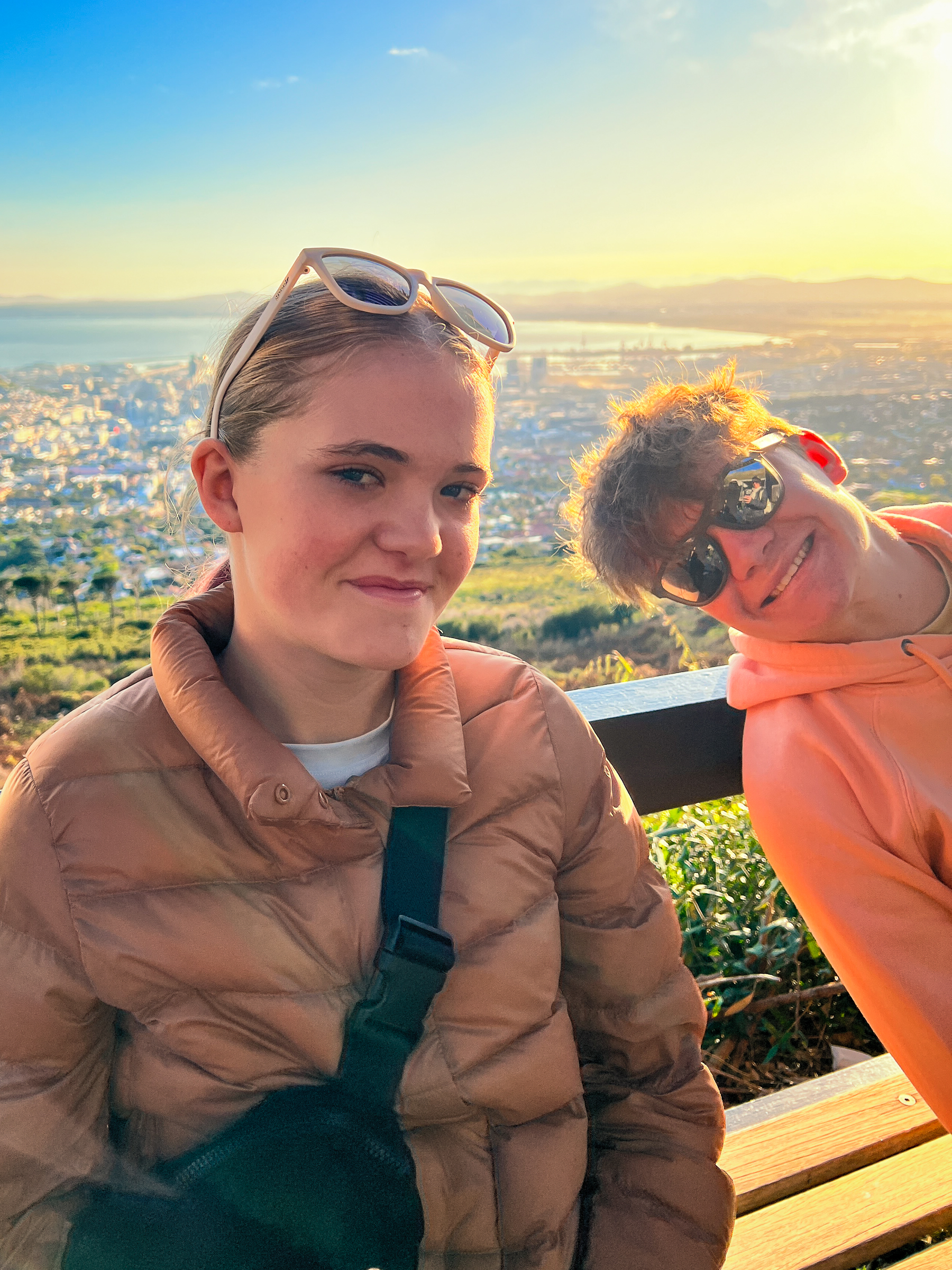 Addo National Park was wonderful, and before we moved on from the area we did an afternoon game drive at another nearby reserve – a private one this time – called Schotia. This area was smaller than Addo, we saw many of the same animals there but Schotia featured a few animals we had yet to see, such as a hippo (who put on a rare show for us) and some giraffes! And given that the reserve was private, our guide was able to go fully off-road where appropriate – which came in handy when we came across a Cape lion and followed him off the beaten path as he tried to evade some persistent females! The afternoon was remarkable, we finished off the day at Schotia with a braai (a bbq, but the food is cooked over wood or coals) featuring kudu steaks. After a quick mini game drive in the dark (Josh worked a floodlight and found lots of glowing eyes!) we were back at our hotel, where we had to get ready to fly back to Cape Town the next day to meet up with the Coozes.