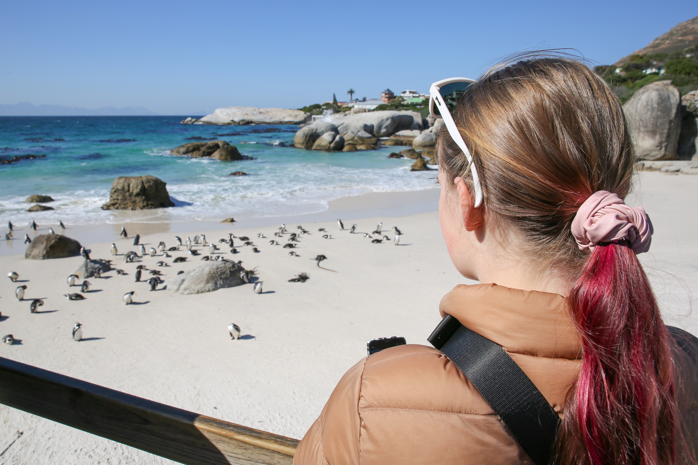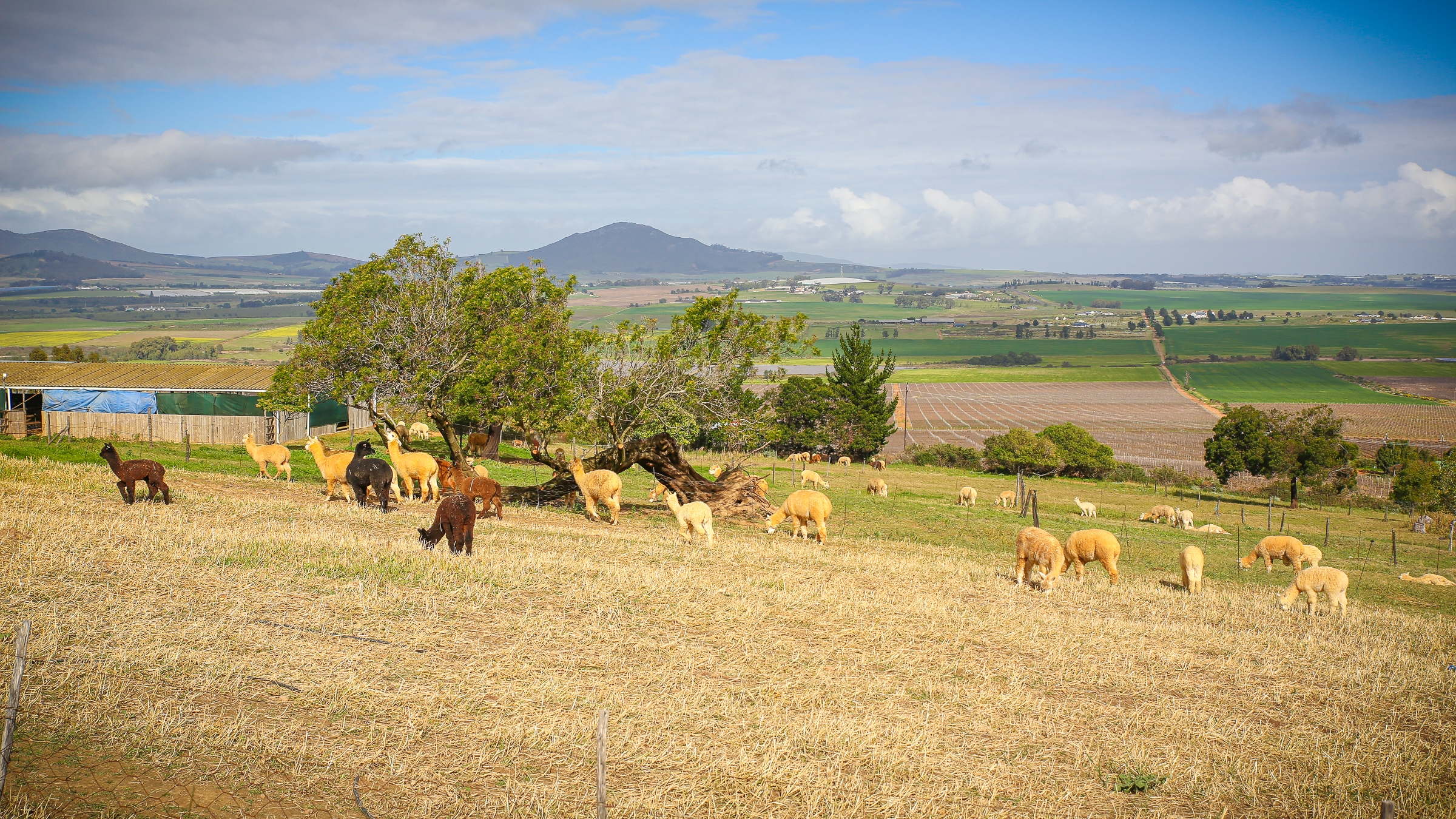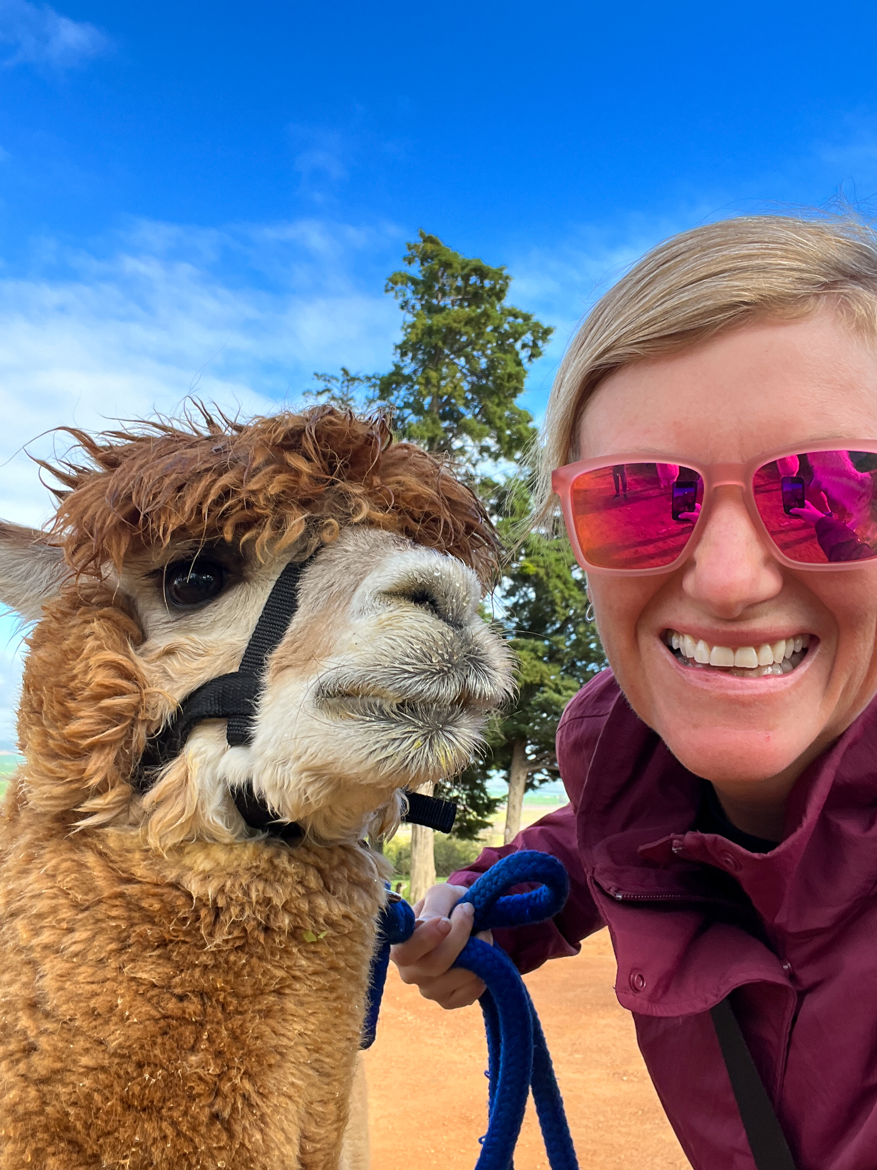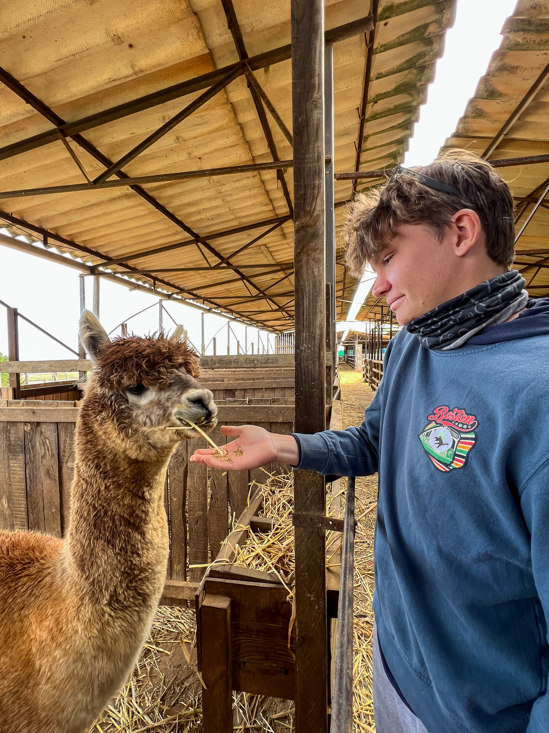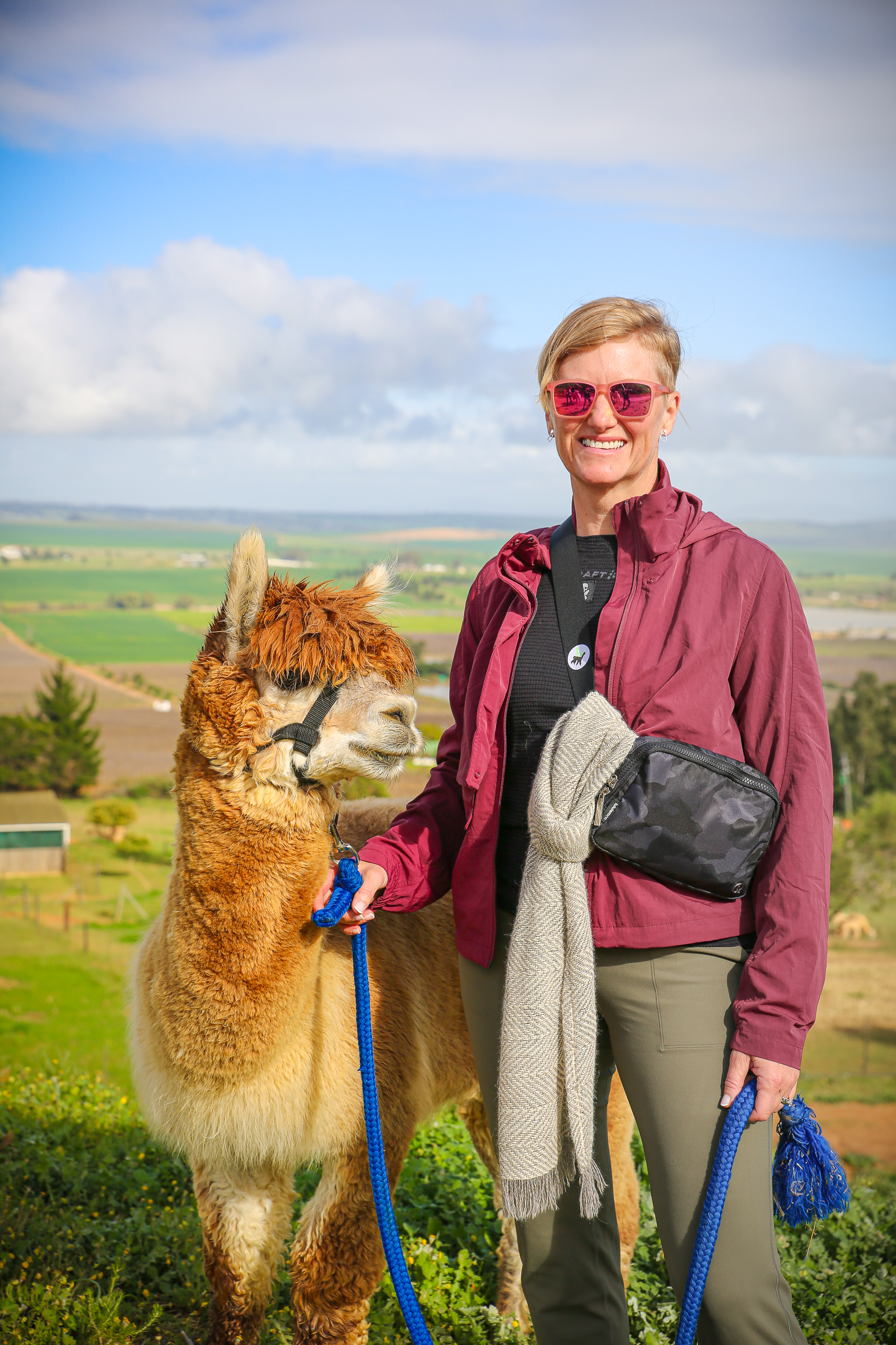 We spent two days in the Stellenbosch area, visiting a few of the wine area’s beautiful farms the first day and enjoying the vistas in between. Babylonstoren was a highlight, as was Stark Conde, which we stopped in at on our e-mountain bike tour on our way to the scenic trails at nearby Jonkershoek. Our second day was generally unscripted, but our impromptu visit to the Alpaca Loom near Paarl to walk some fluffy Alpacas certainly made for some happy campers! On the way to Spier winery for some chocolate / wine pairings and an eagle encounter, we sampled some beer and some fancy chocolate bars at Spice Route Destination. Josh had a friend attending school in Stellenbosch, so we finished our time in the area with a nice dinner with her at Lanzerac Taphuis before going to bed to prep for an early flight the next morning!