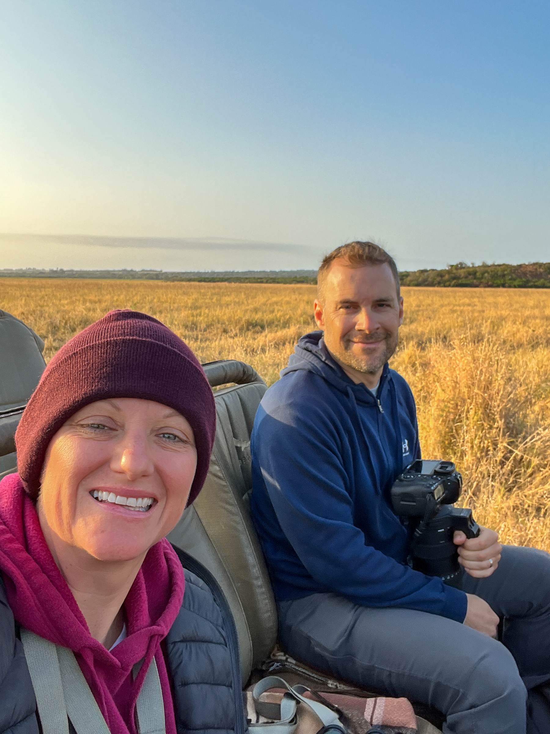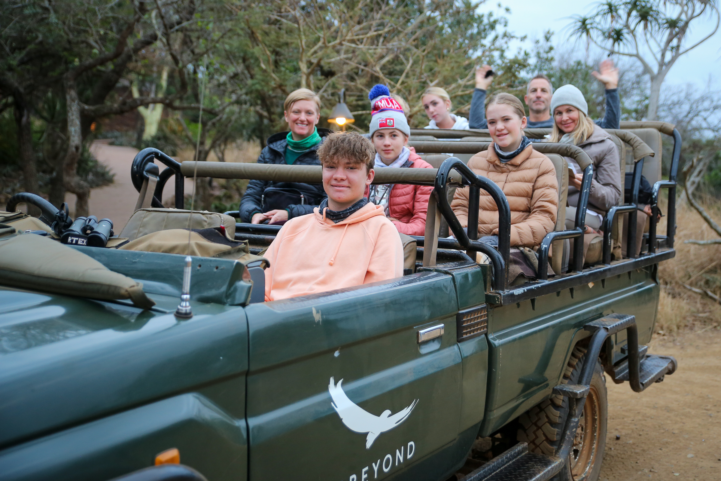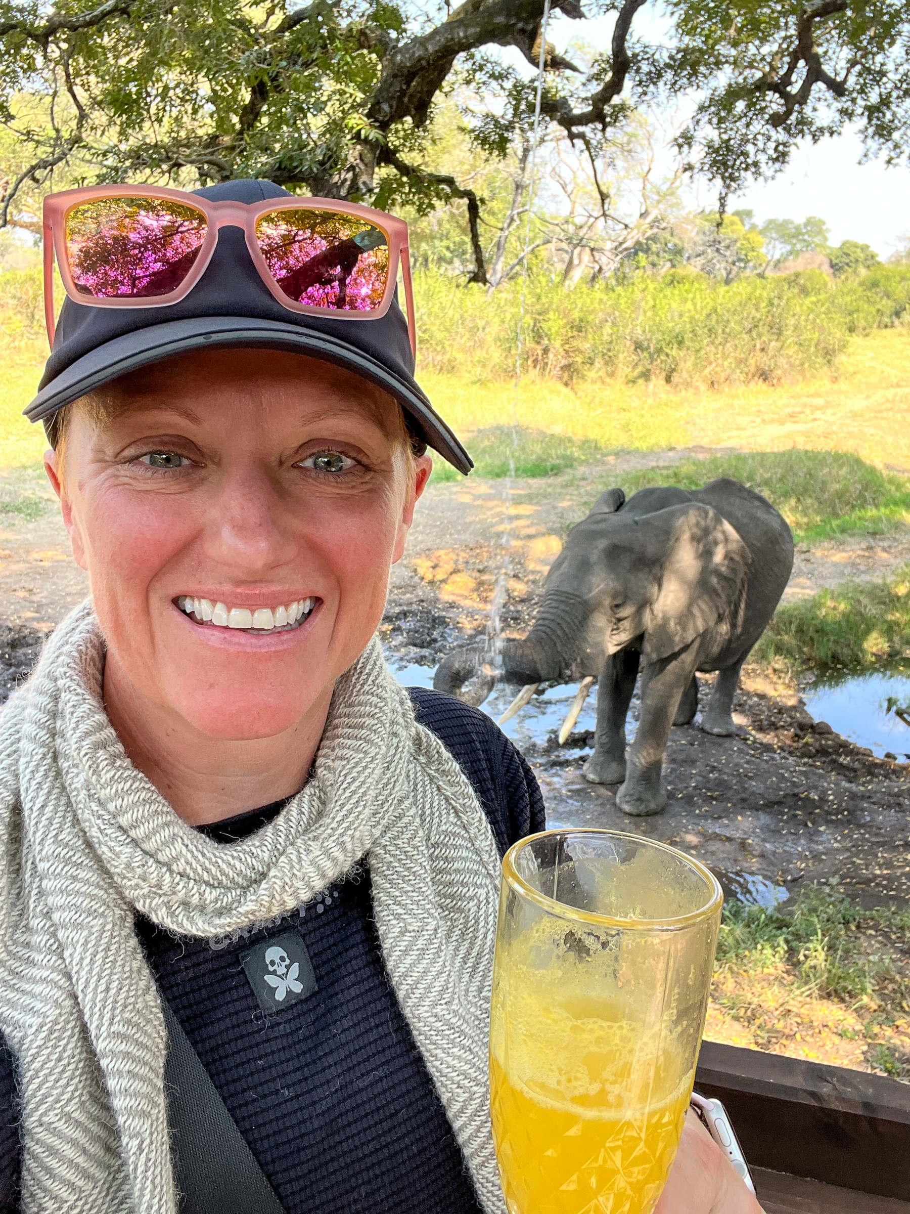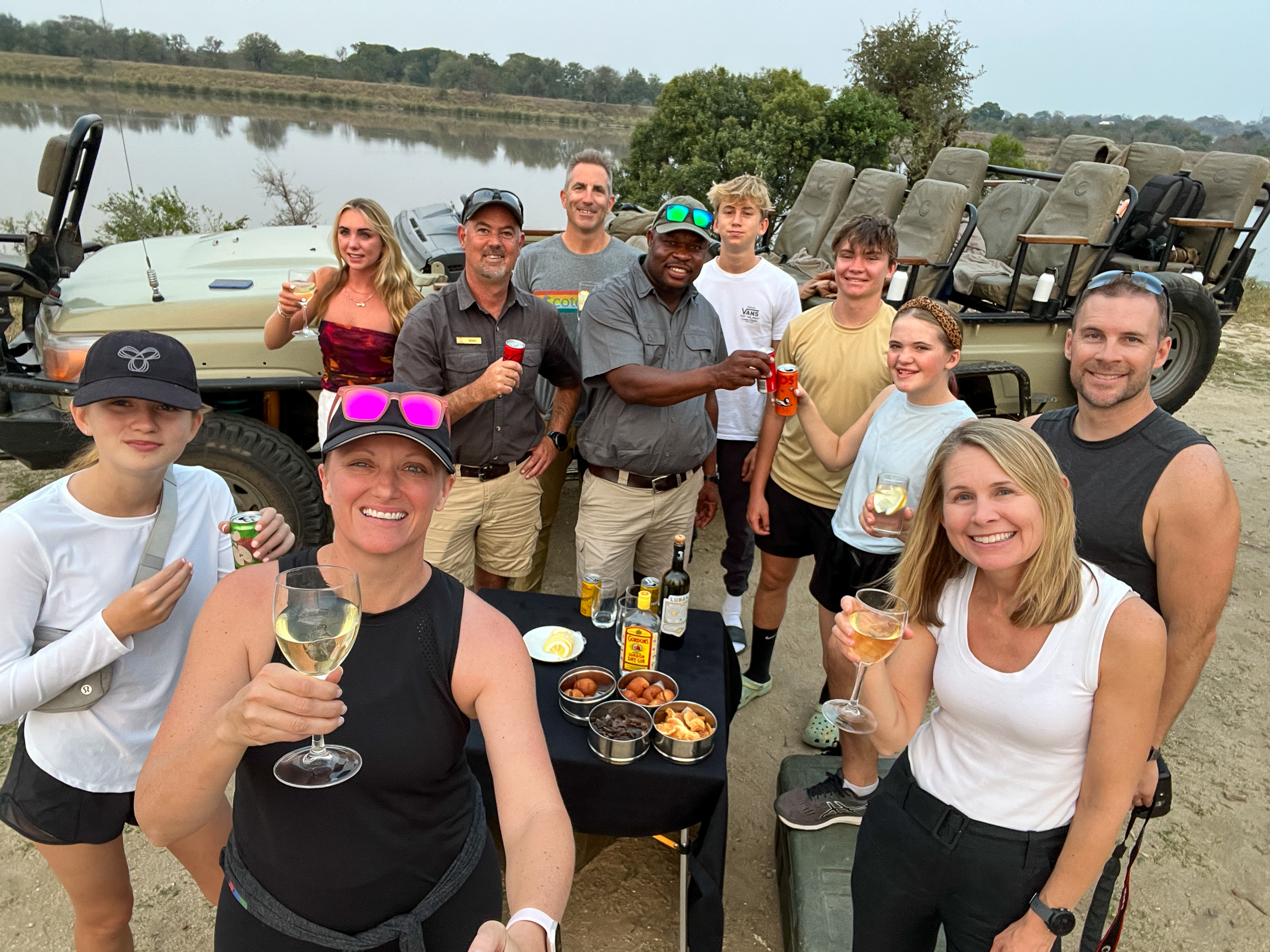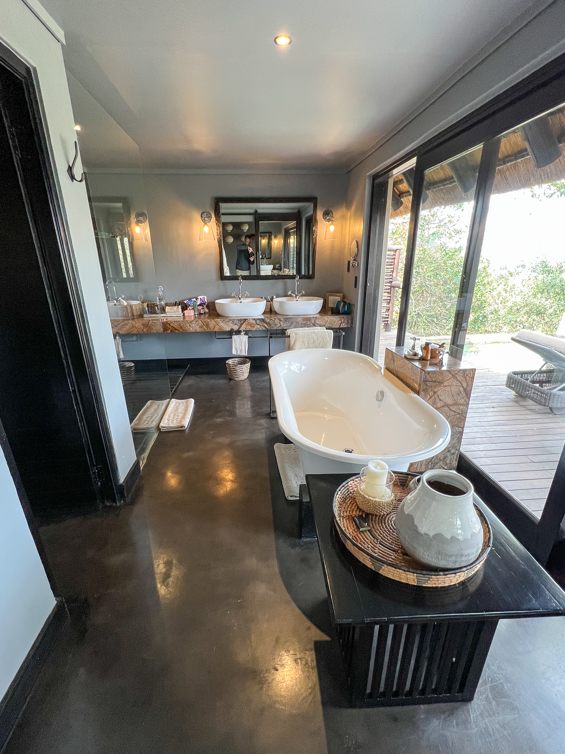 While at Phinda, our days typically went as follows: wake up at 5:30am, head to the Lodge for a pastry & drink at 6, on the game drive with Andrew & Joel no later than 6:30. Depending on what was happening, we’d stop for a hot chocolate / coffee (with Amarula!) somewhere around 9, then back to the Lodge around 10-10:30 for a proper breakfast. We’d hang out and relax for a few hours, then have lunch around 1pm and be ready to head out around 3:00 for our afternoon drive. We’d stop for a cocktail and leg stretch while enjoying the sunset, then continue on the drive, finishing around 6:30. We’d all sit down for a nice dinner in the Lodge around 7, then the kids would go off and ‘chill’ (phones!) for the evening while the adults would have a nightcap by the fire. Tough life I know – but come on, this is what vacations are for!