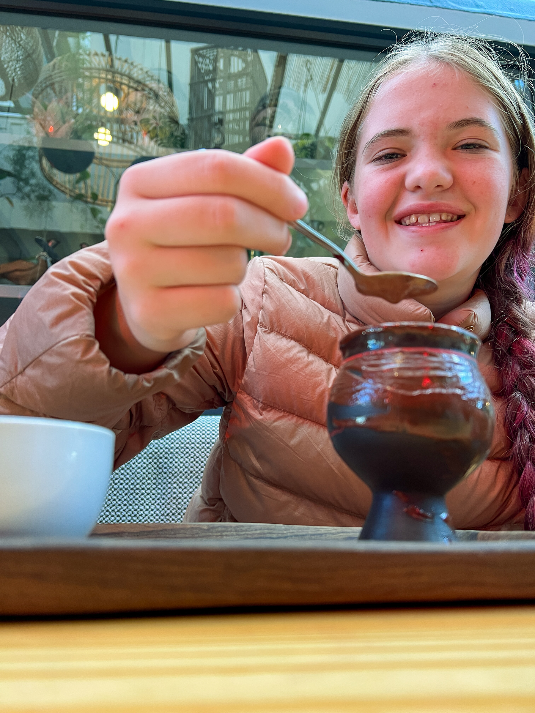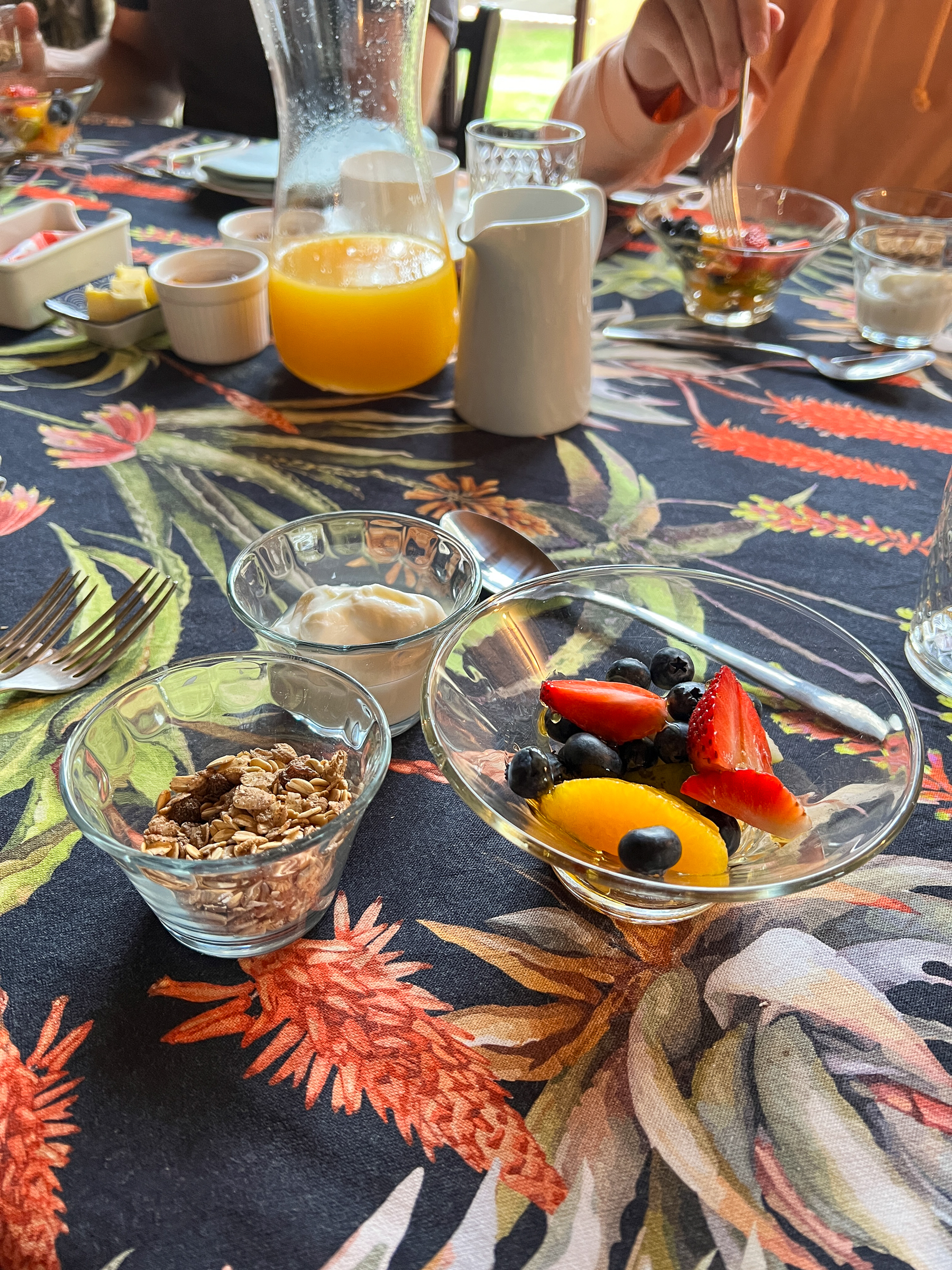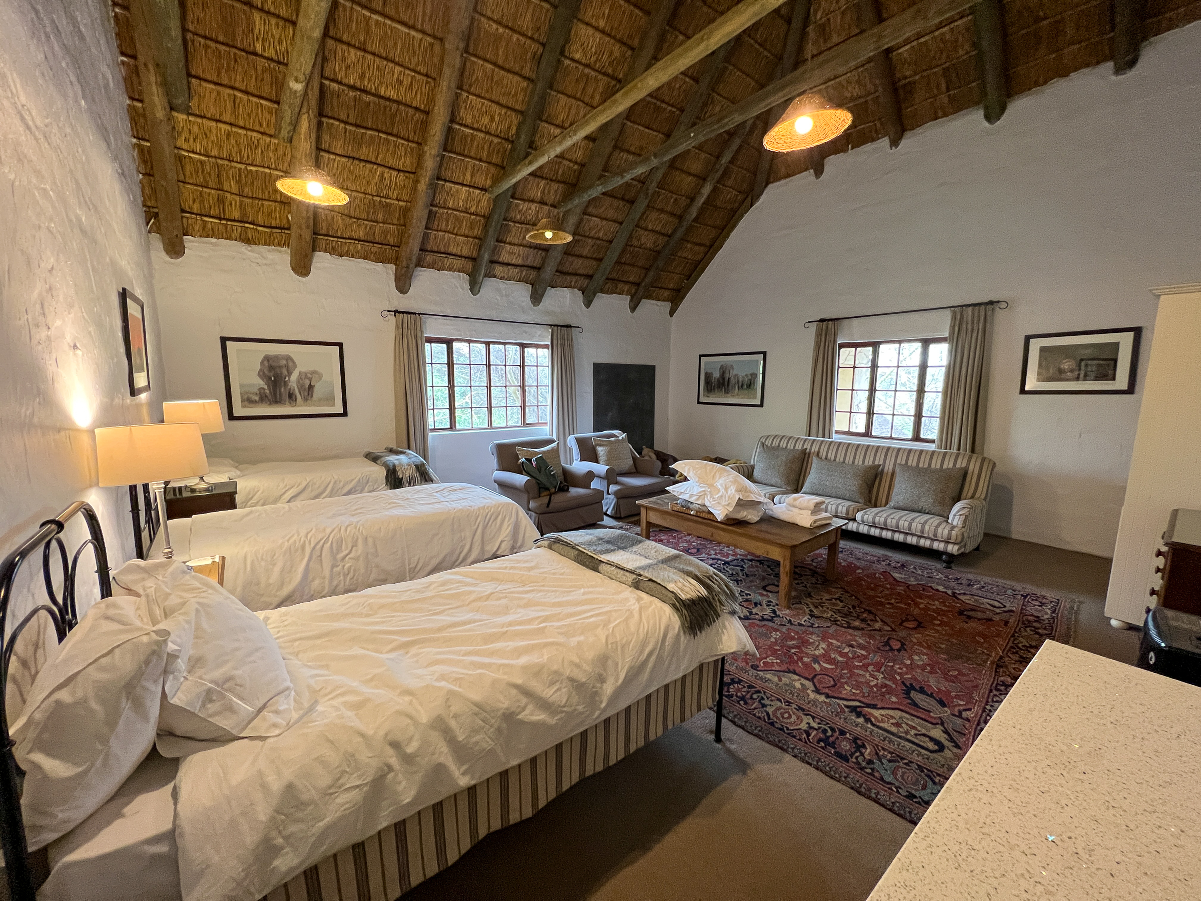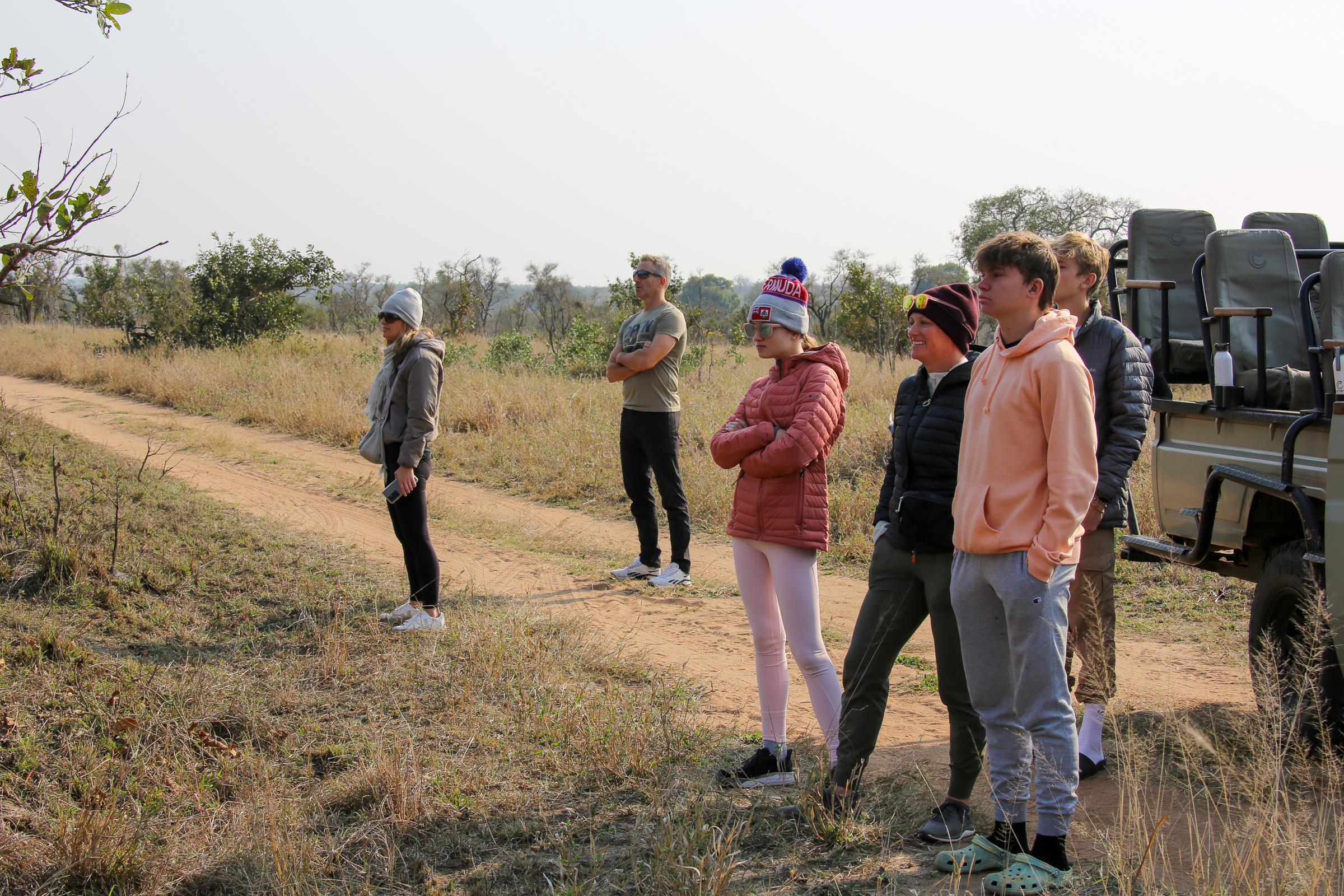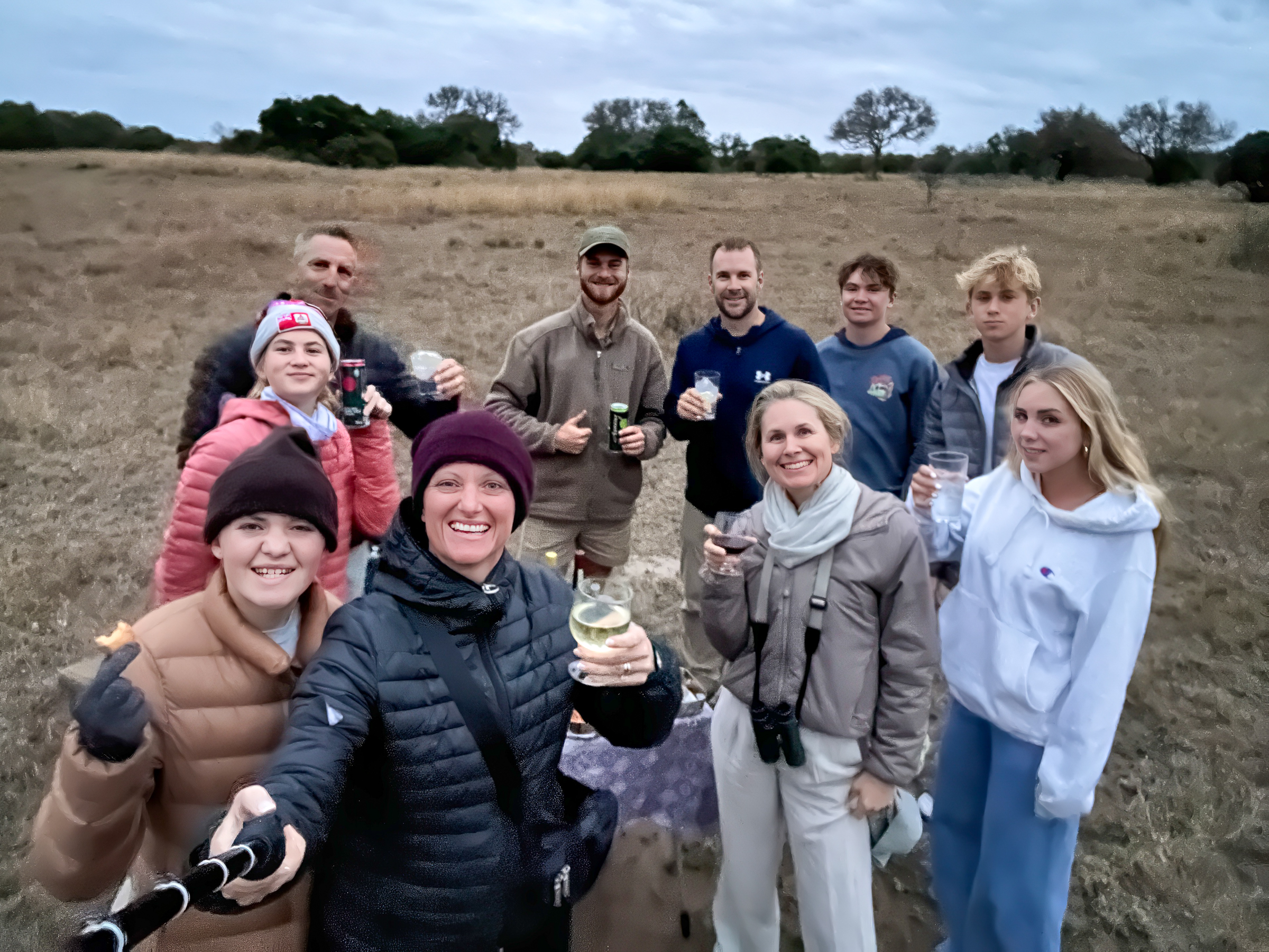 While at Phinda, our days typically went as follows: wake up at 5:30am, head to the Lodge for a pastry & drink at 6, on the game drive with Andrew & Joel no later than 6:30. Depending on what was happening, we’d stop for a hot chocolate / coffee (with Amarula!) somewhere around 9, then back to the Lodge around 10-10:30 for a proper breakfast. We’d hang out and relax for a few hours, then have lunch around 1pm and be ready to head out around 3:00 for our afternoon drive. We’d stop for a cocktail and leg stretch while enjoying the sunset, then continue on the drive, finishing around 6:30. We’d all sit down for a nice dinner in the Lodge around 7, then the kids would go off and ‘chill’ (phones!) for the evening while the adults would have a nightcap by the fire. Tough life I know – but come on, this is what vacations are for!