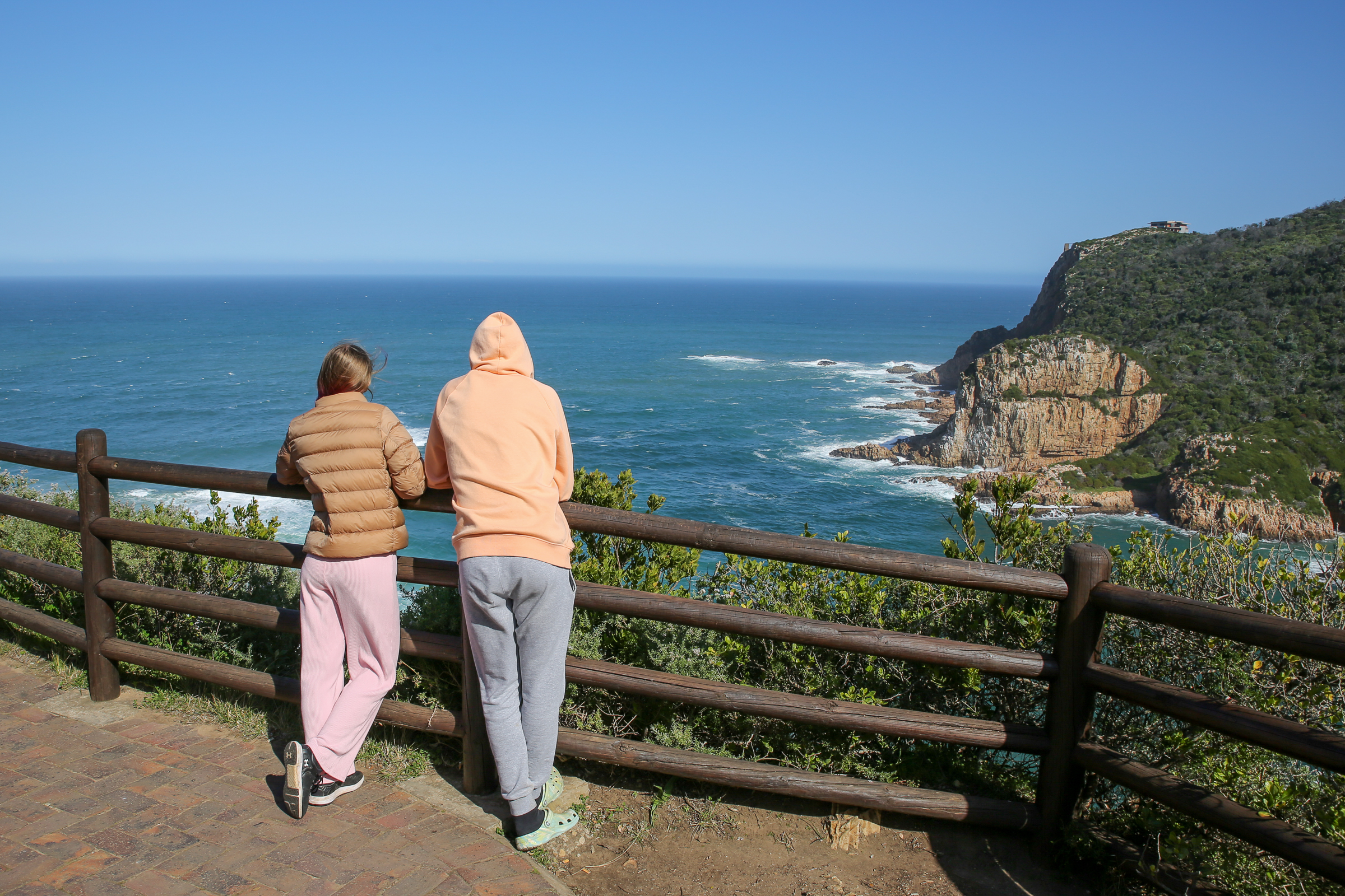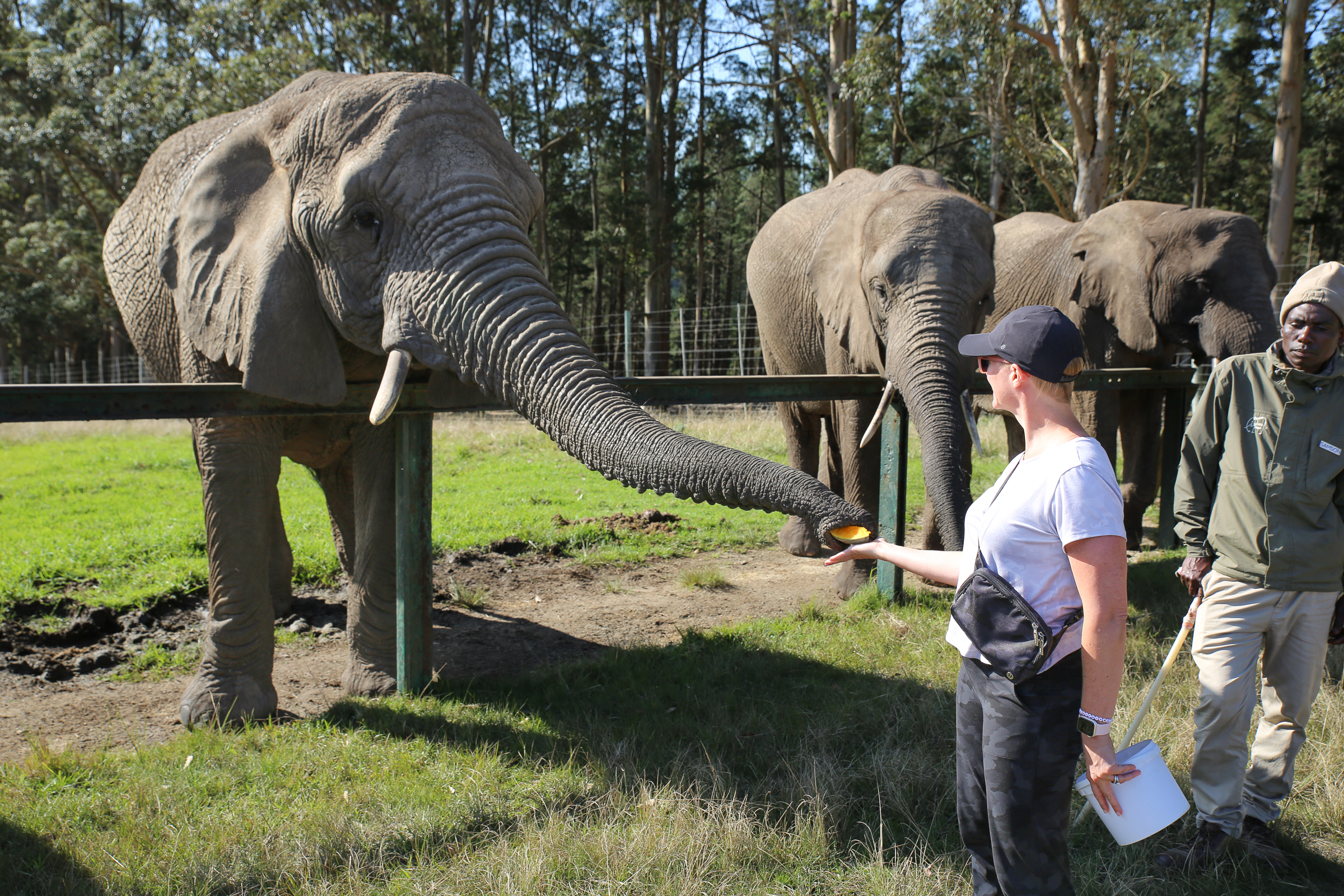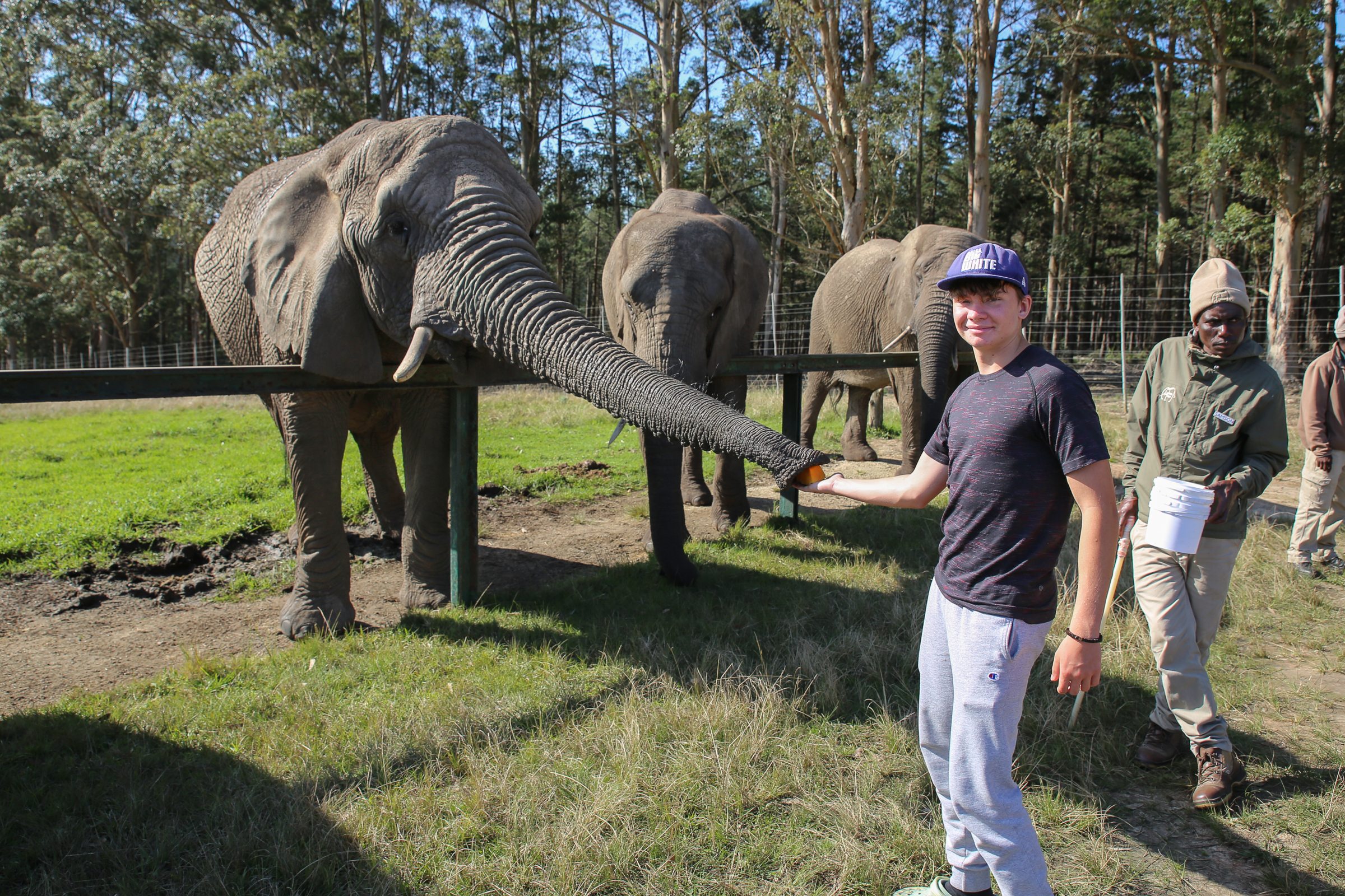 After an early (4am) wake up call, we boarded a flight to George, about 1 hour’s flight to the east of Cape Town. Our next driver, Irma, greeted us at the airport to take us for a quick sightseeing tour of the nearby Knysna area, where we would spend the next few days. After a quick breakfast at a fancy bakery, we were dropped off for a catameran cruise around the Knysna River (it was more like a lake!); they nearly took us out between the Heads into the choppy waters of the Indian Ocean – thankfully they turned the boat around as it was pretty chilly in the wind (Jenn and the kids were bundled up in blankets)! We took a drive later to see the Heads from the top (what a view!) on our way to the Knysna Elephant Park. There, we got our first real experience with what we think of when talking about African animals – feeding elephants in a field, and walking among a small group of Zebras, including a one-day-old baby! Very cool experience, we were all so happy to be so close to these animals.