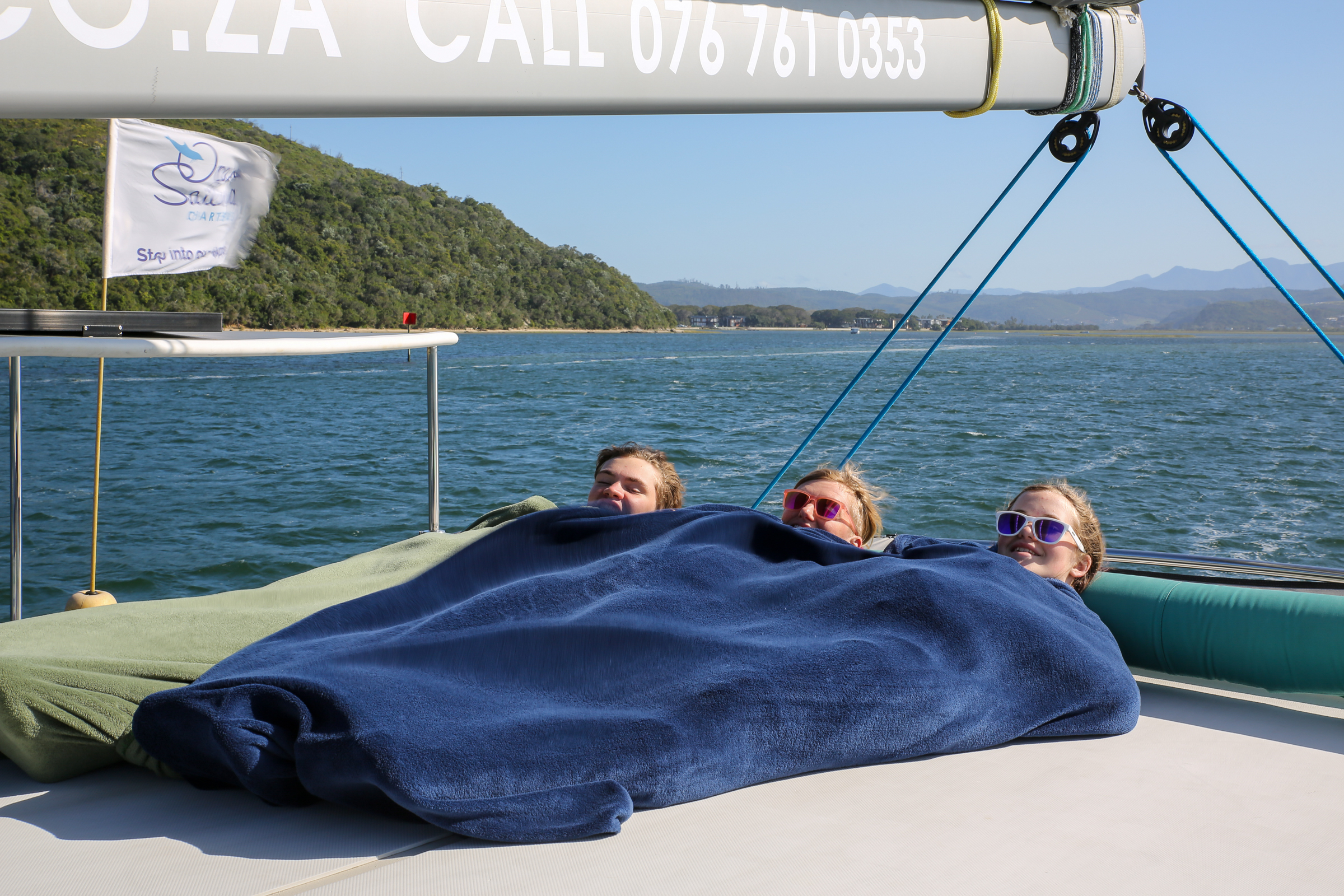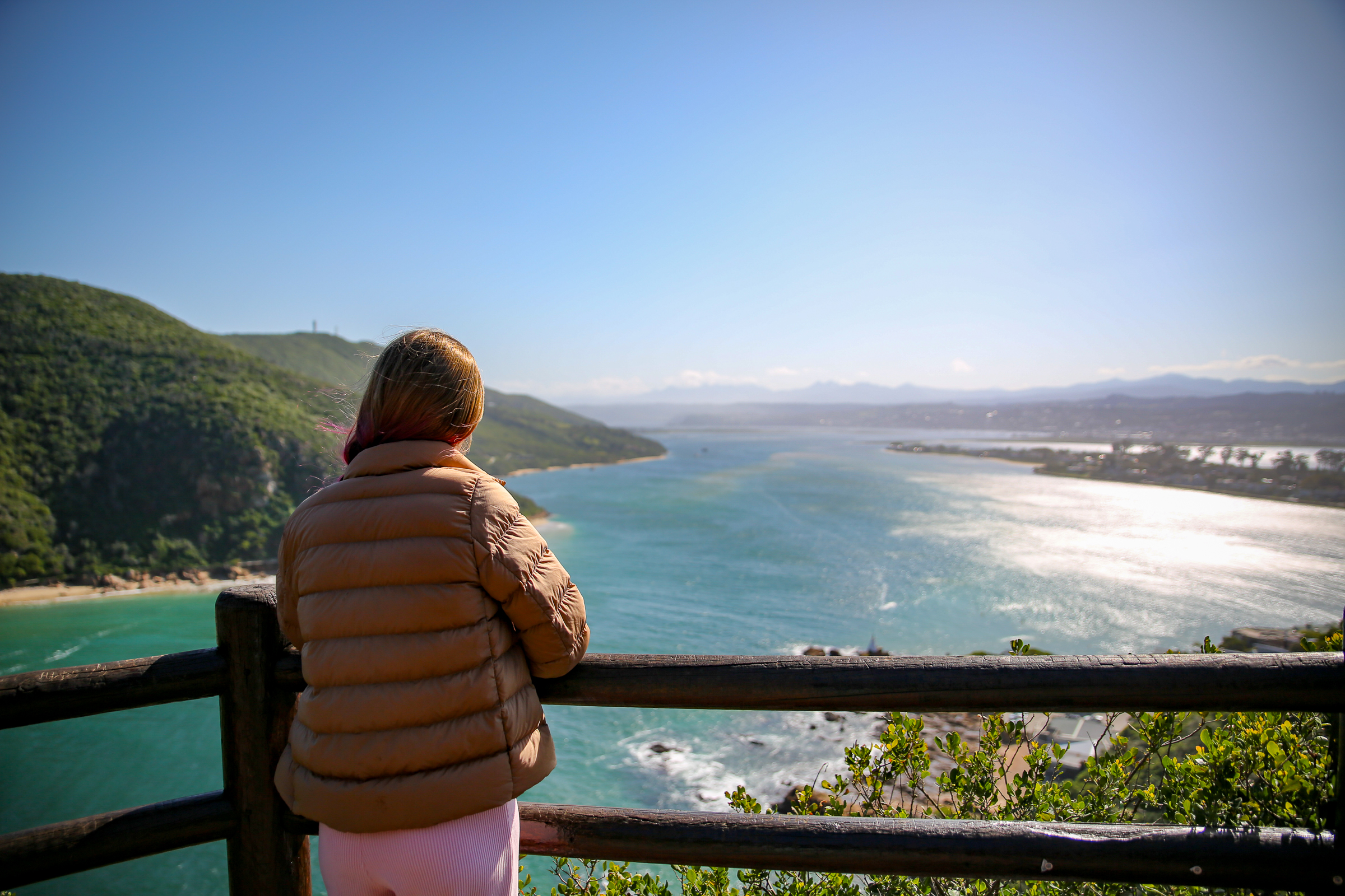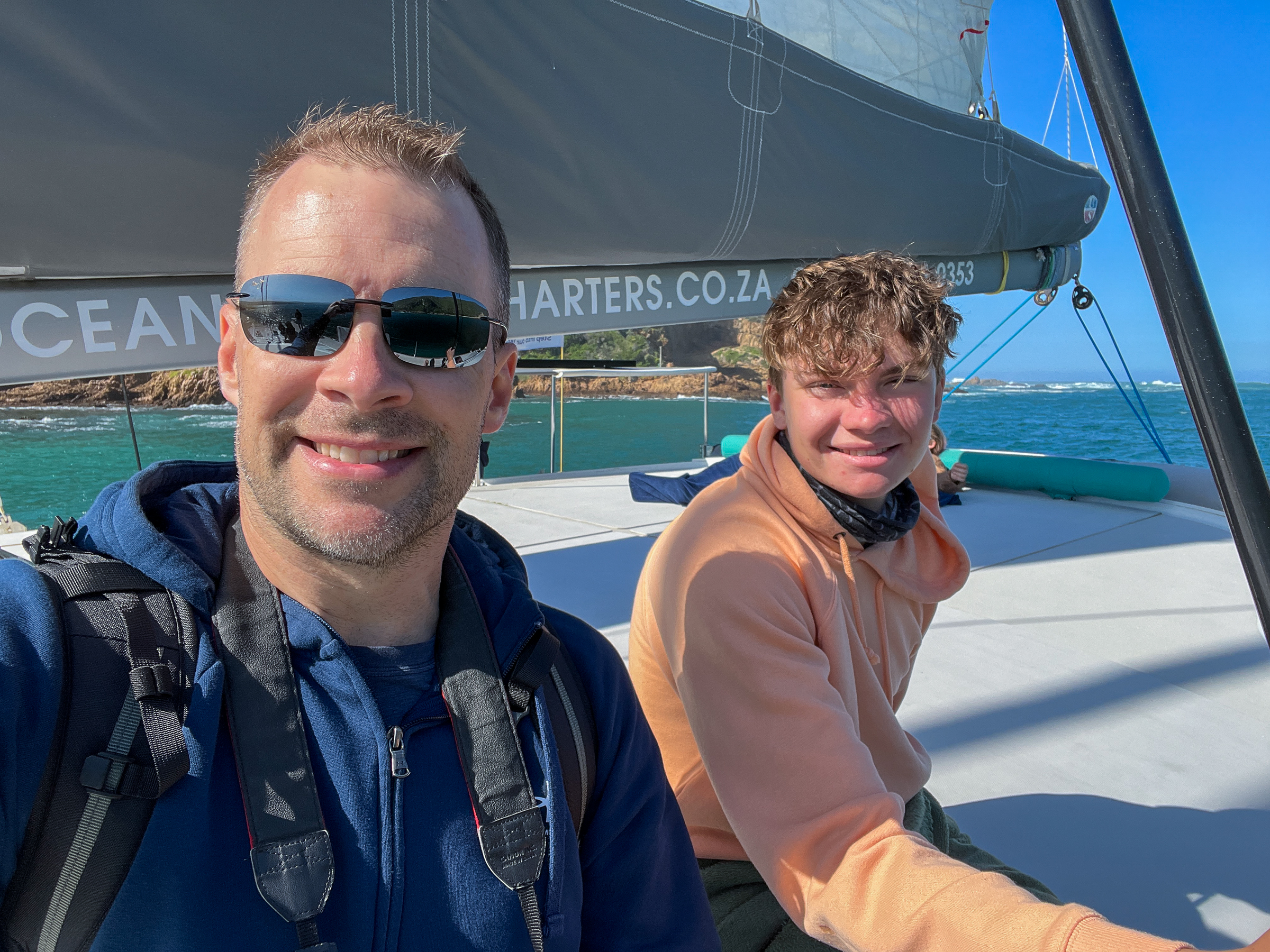 After an early (4am) wake up call, we boarded a flight to George, about 1 hour’s flight to the east of Cape Town. Our next driver, Irma, greeted us at the airport to take us for a quick sightseeing tour of the nearby Knysna area, where we would spend the next few days. After a quick breakfast at a fancy bakery, we were dropped off for a catameran cruise around the Knysna River (it was more like a lake!); they nearly took us out between the Heads into the choppy waters of the Indian Ocean – thankfully they turned the boat around as it was pretty chilly in the wind (Jenn and the kids were bundled up in blankets)! We took a drive later to see the Heads from the top (what a view!) on our way to the Knysna Elephant Park. There, we got our first real experience with what we think of when talking about African animals – feeding elephants in a field, and walking among a small group of Zebras, including a one-day-old baby! Very cool experience, we were all so happy to be so close to these animals.