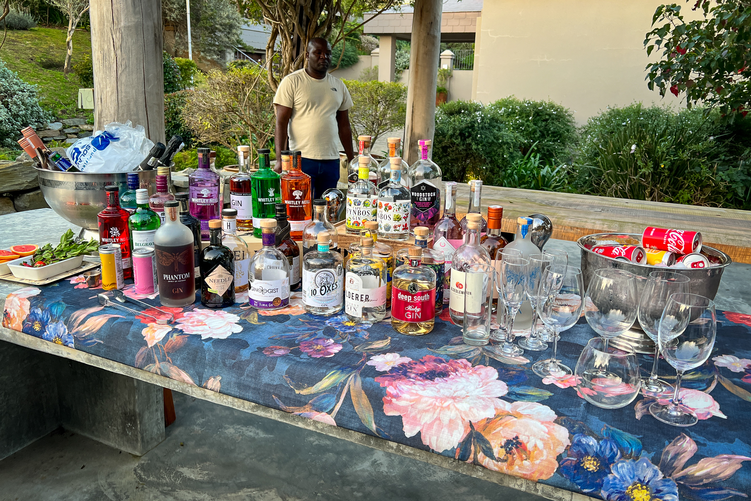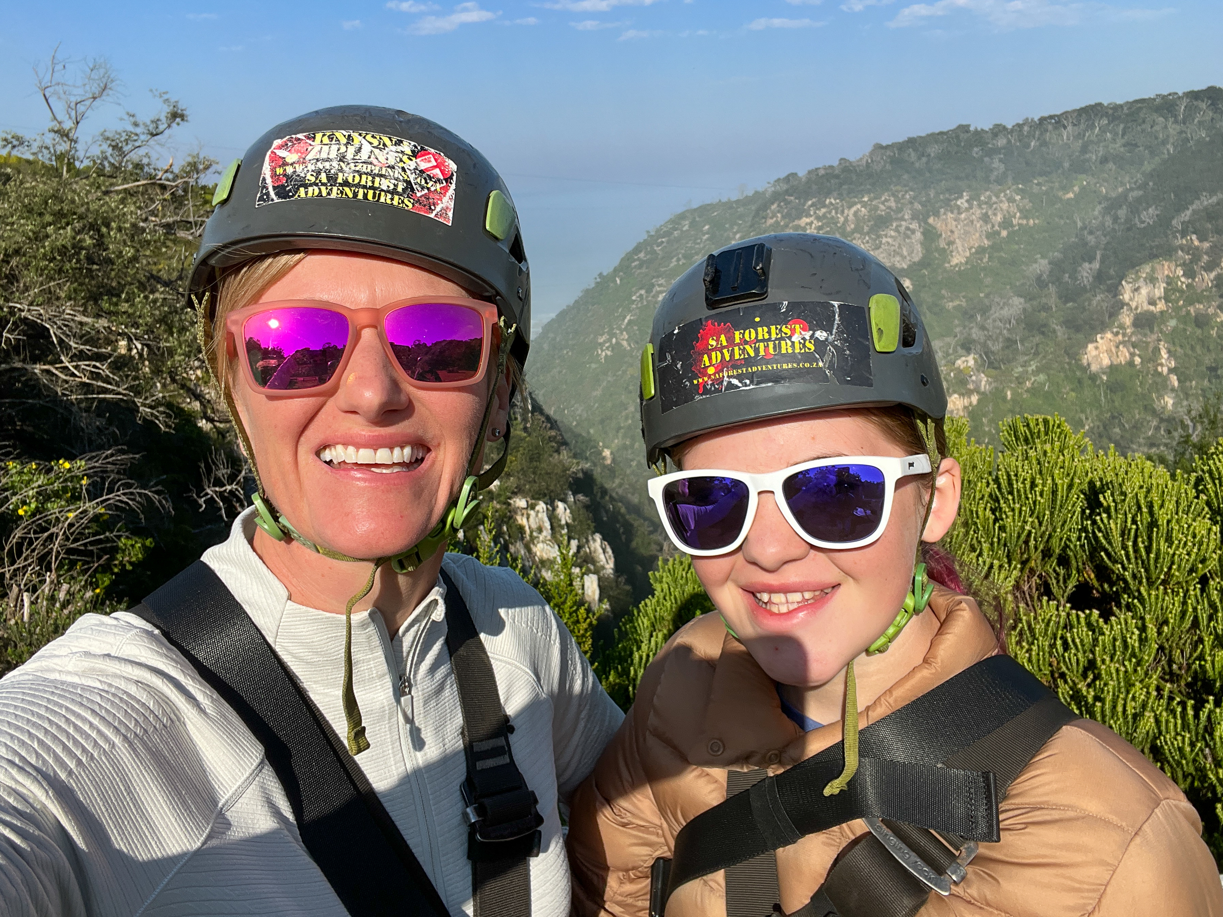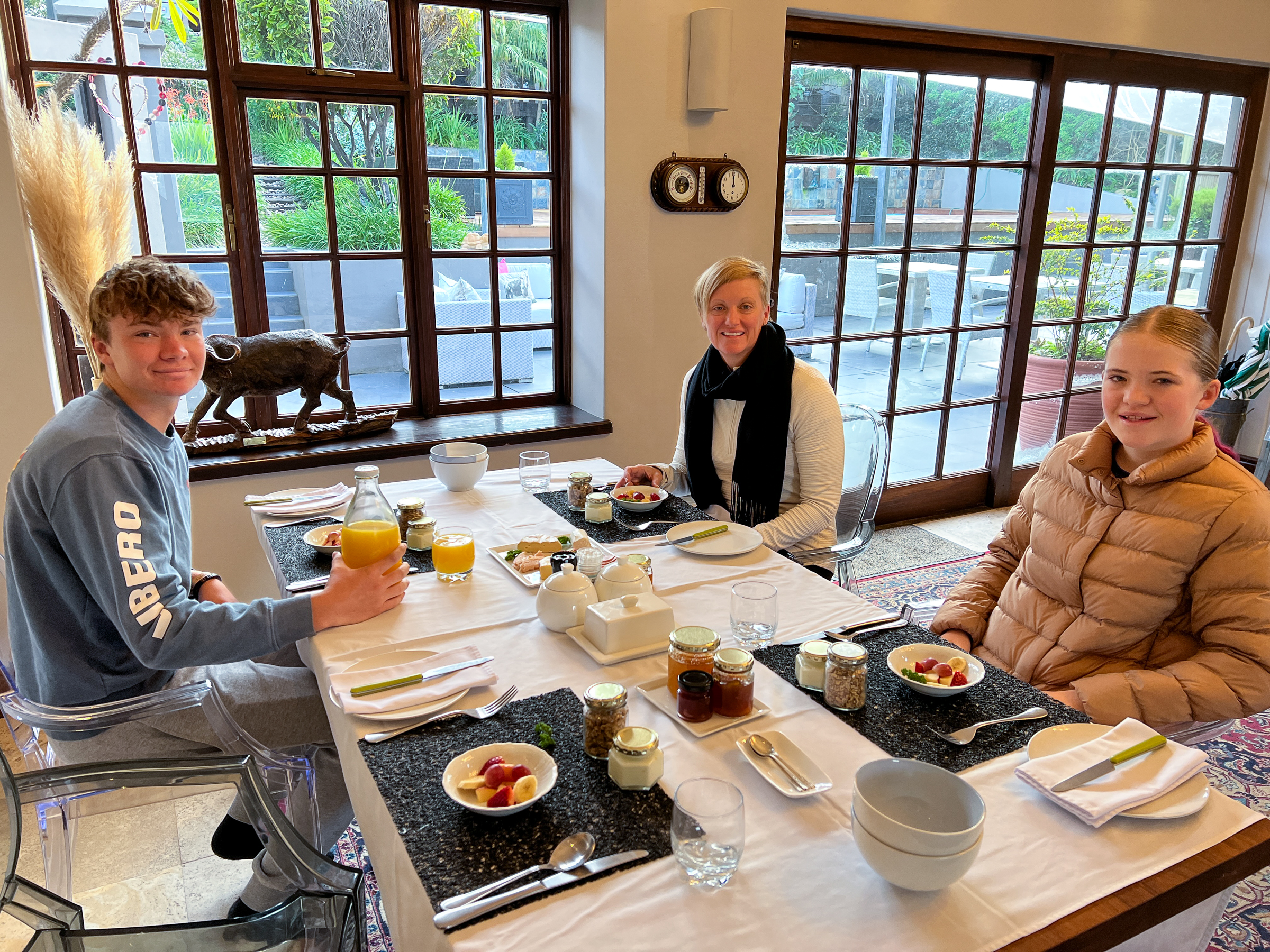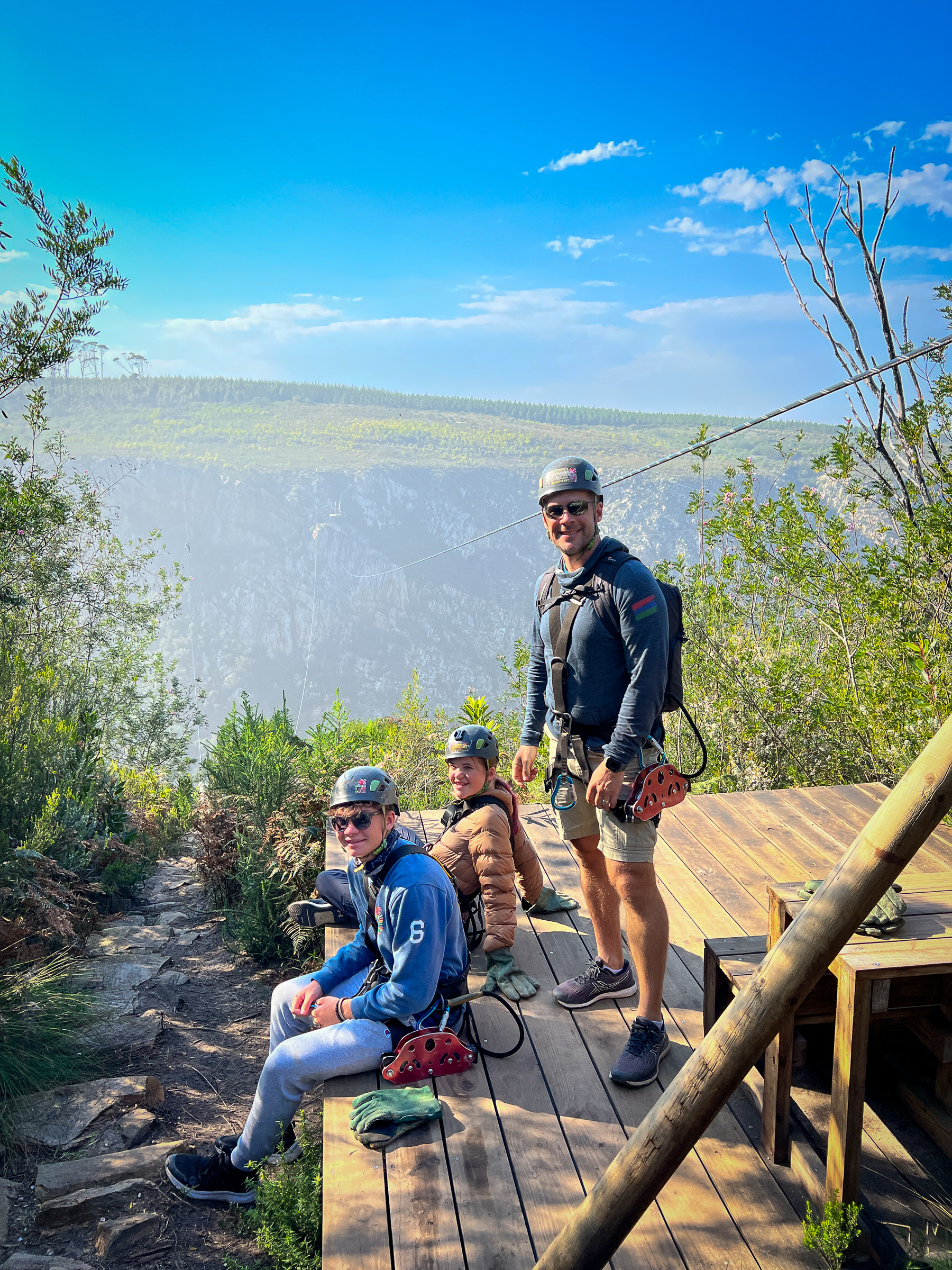 Other adventures in Knysna included an awesome zip line tour, a mountain scooter tour, and a little shopping down at the waterfront area on the lake. The food was pretty good at both Drydock and 34 South (though Ryley went a little overboard on the seafood…), as were the breakfasts at our hotel, Kanonkop House. The hotel – more of a guest house I’d say – was really cool. We had an amazing view over the river from our huge suite (we could see all the way to the Heads), the kids had their own smaller room upstairs (again the limit of 2 people per room), and there was a common area with a kitchen. The Owners, Mark & Adele, also came by one evening to set up a bar and a bonfire in the firepit area outside; we enjoyed a few fancy gin cocktails from their extensive selection.