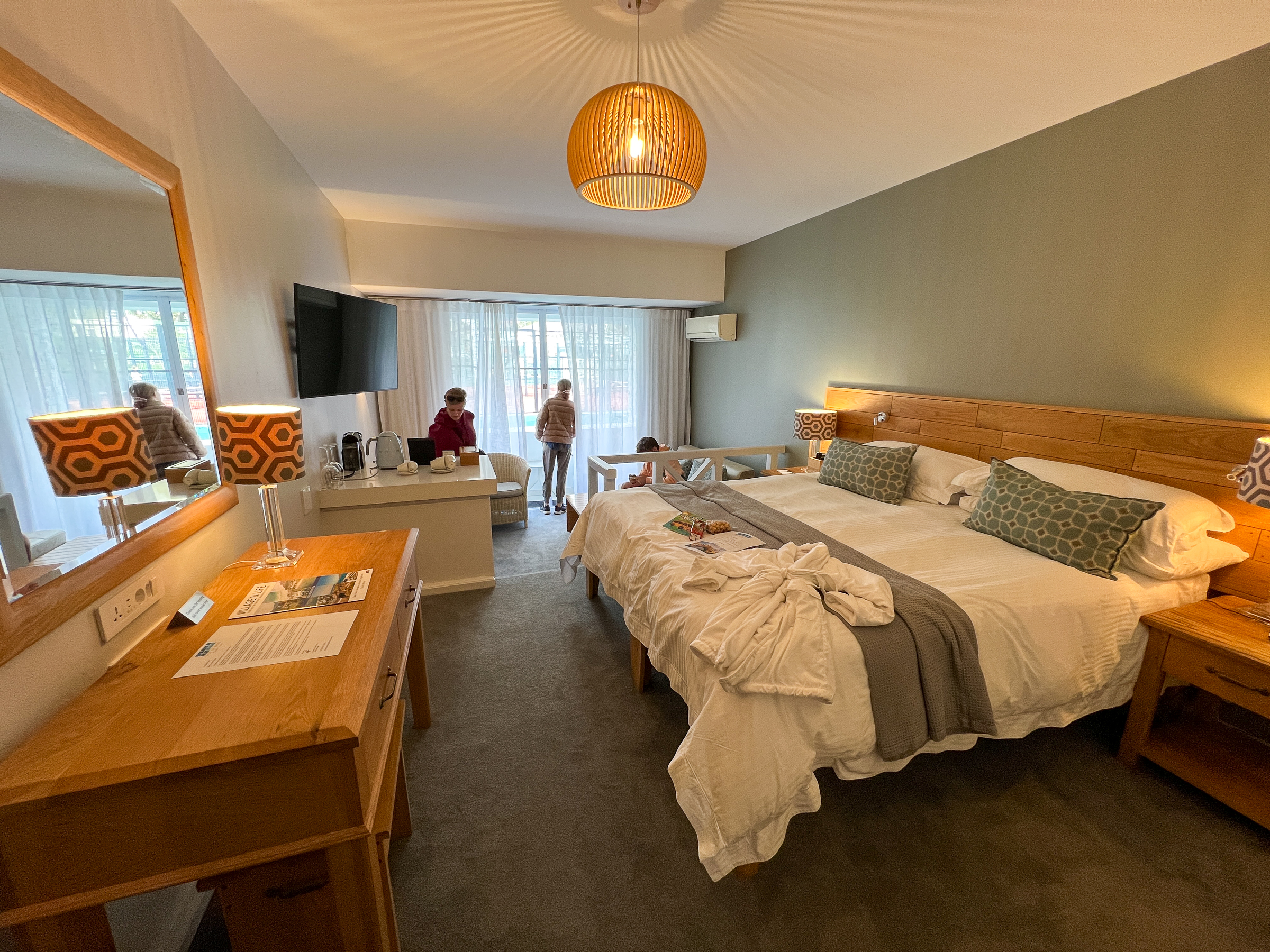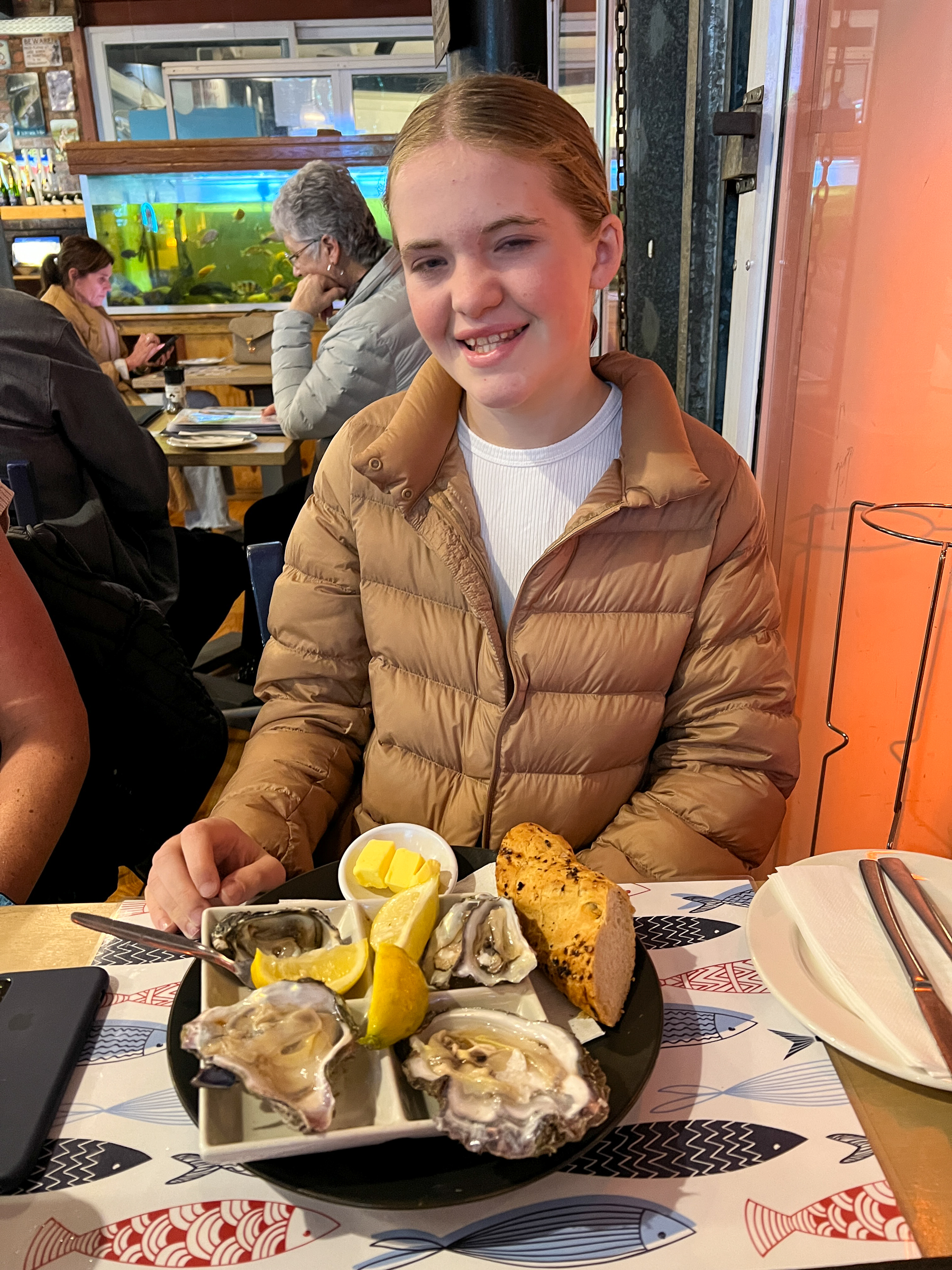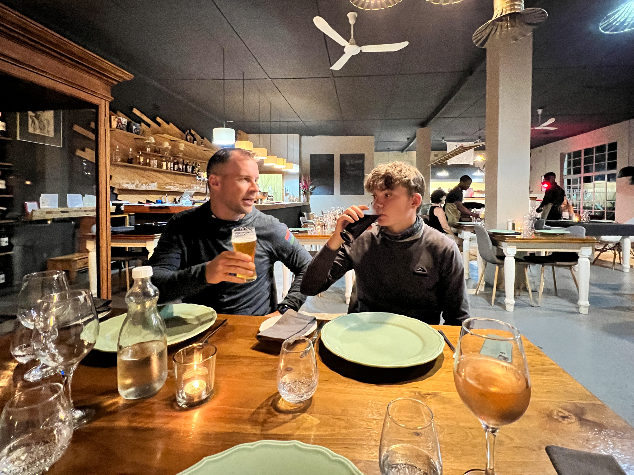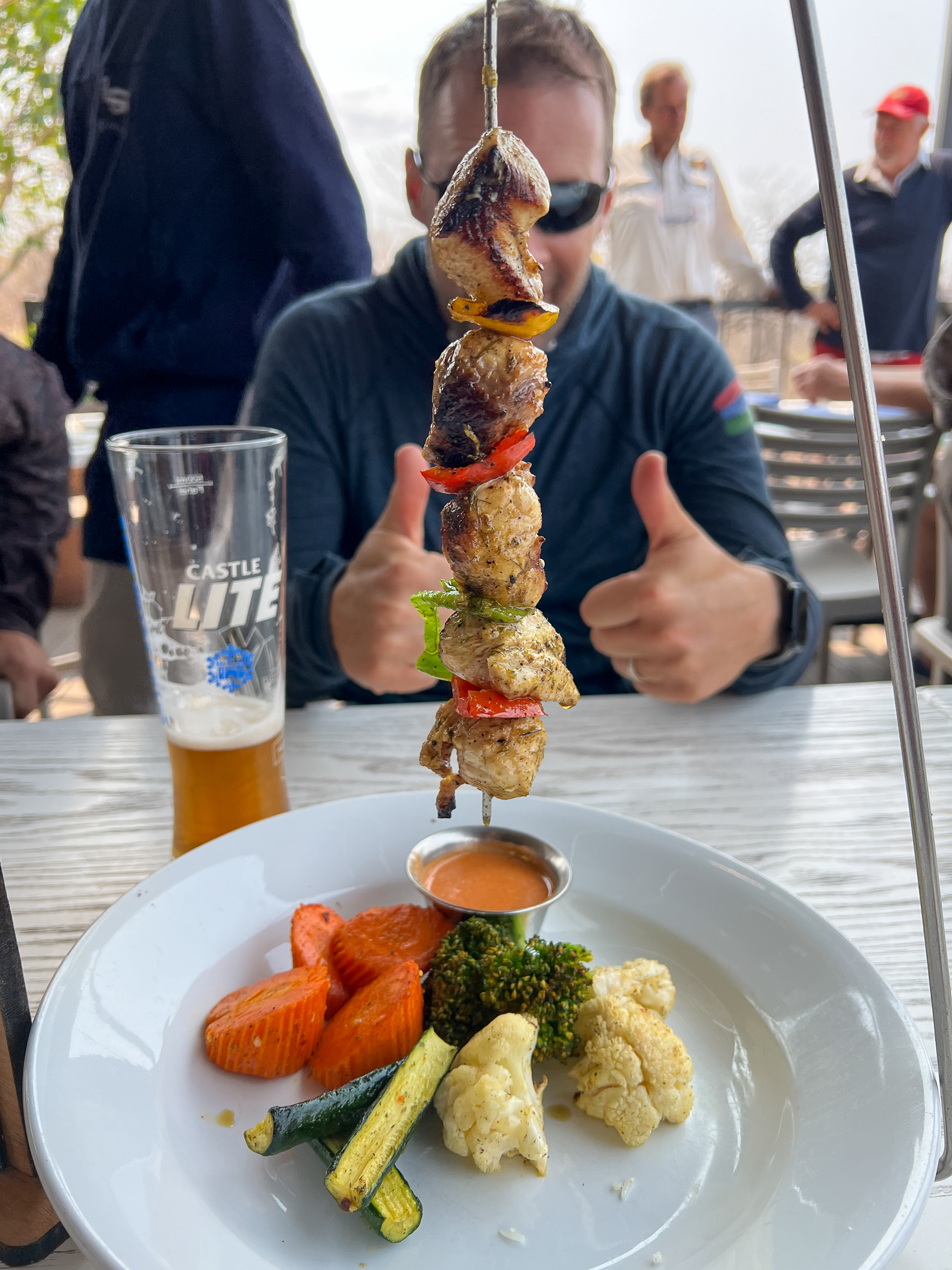 Other adventures in Knysna included an awesome zip line tour, a mountain scooter tour, and a little shopping down at the waterfront area on the lake. The food was pretty good at both Drydock and 34 South (though Ryley went a little overboard on the seafood…), as were the breakfasts at our hotel, Kanonkop House. The hotel – more of a guest house I’d say – was really cool. We had an amazing view over the river from our huge suite (we could see all the way to the Heads), the kids had their own smaller room upstairs (again the limit of 2 people per room), and there was a common area with a kitchen. The Owners, Mark & Adele, also came by one evening to set up a bar and a bonfire in the firepit area outside; we enjoyed a few fancy gin cocktails from their extensive selection.