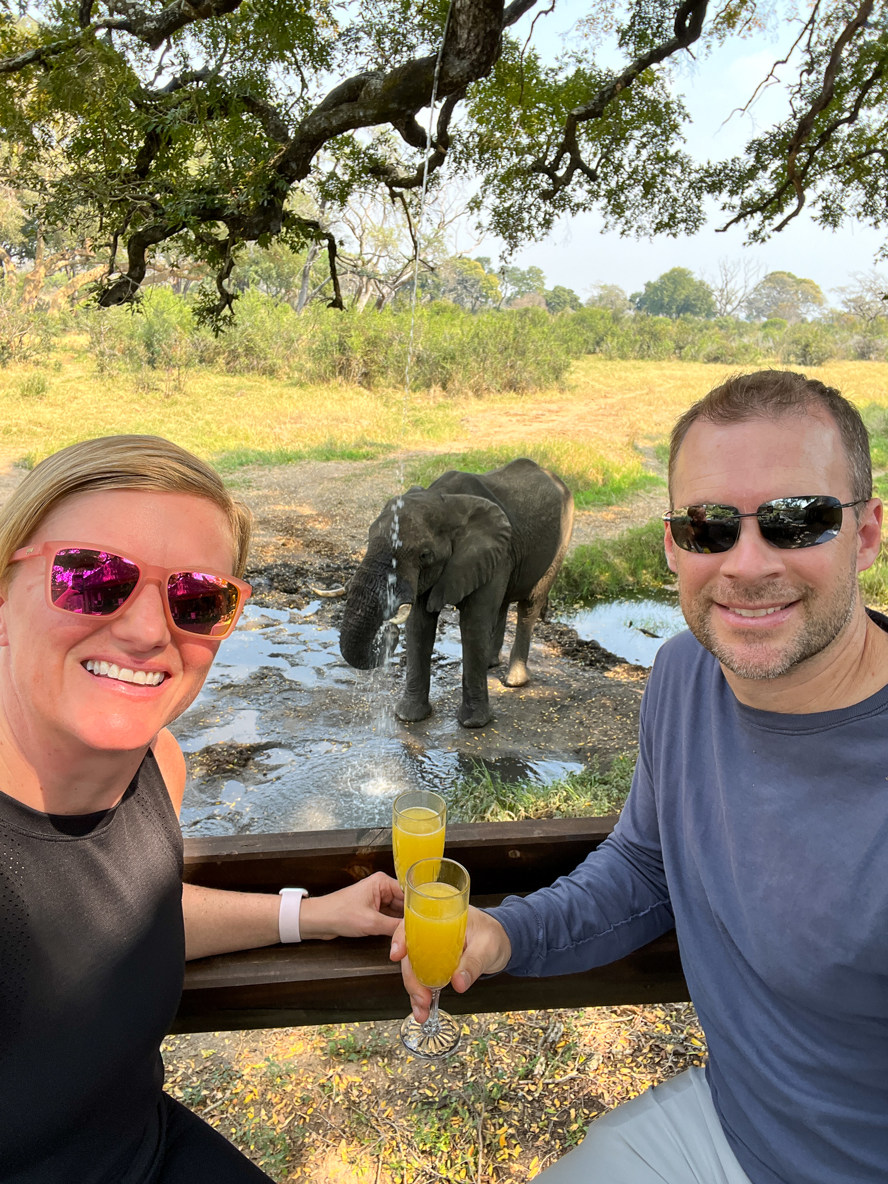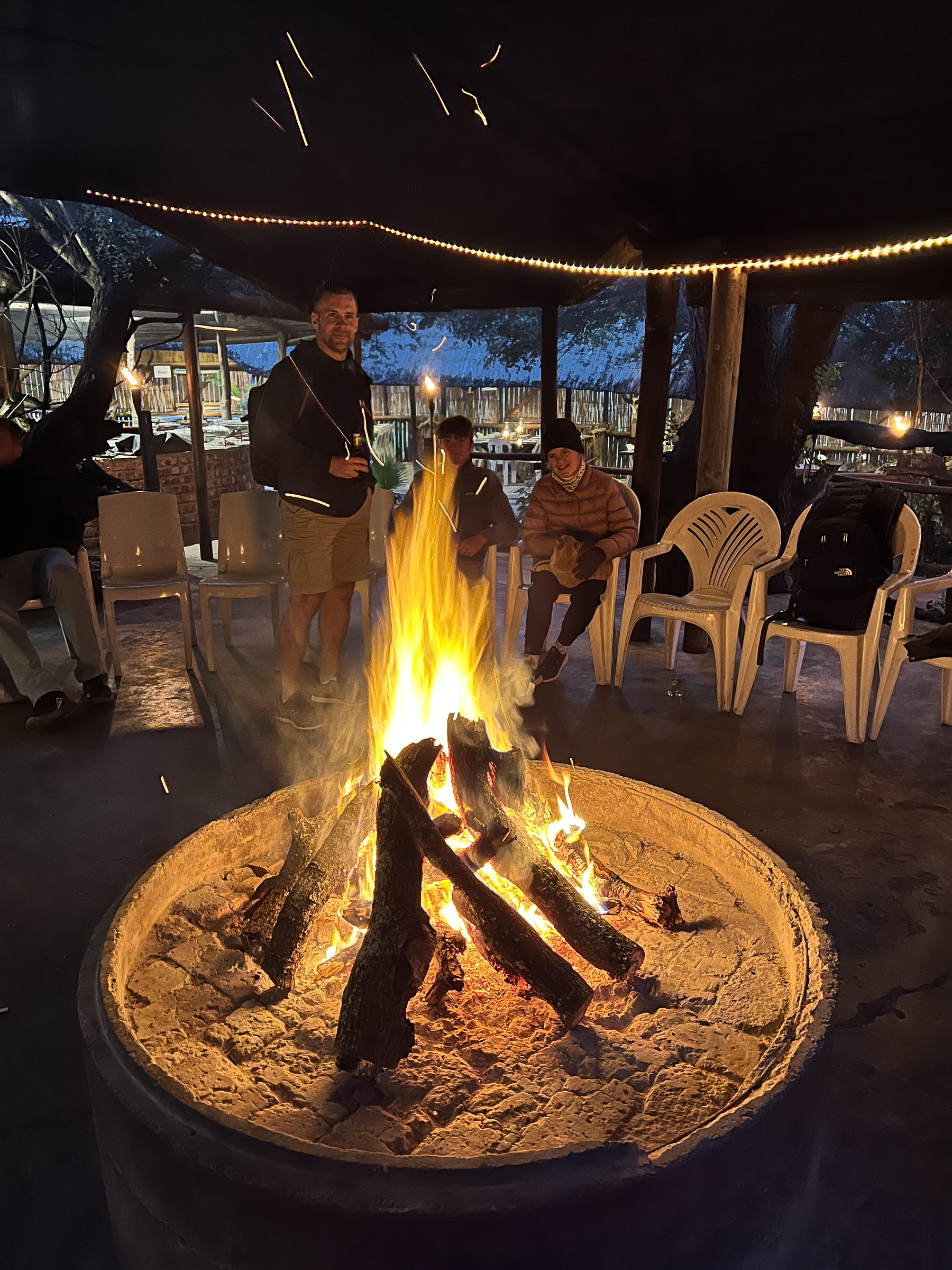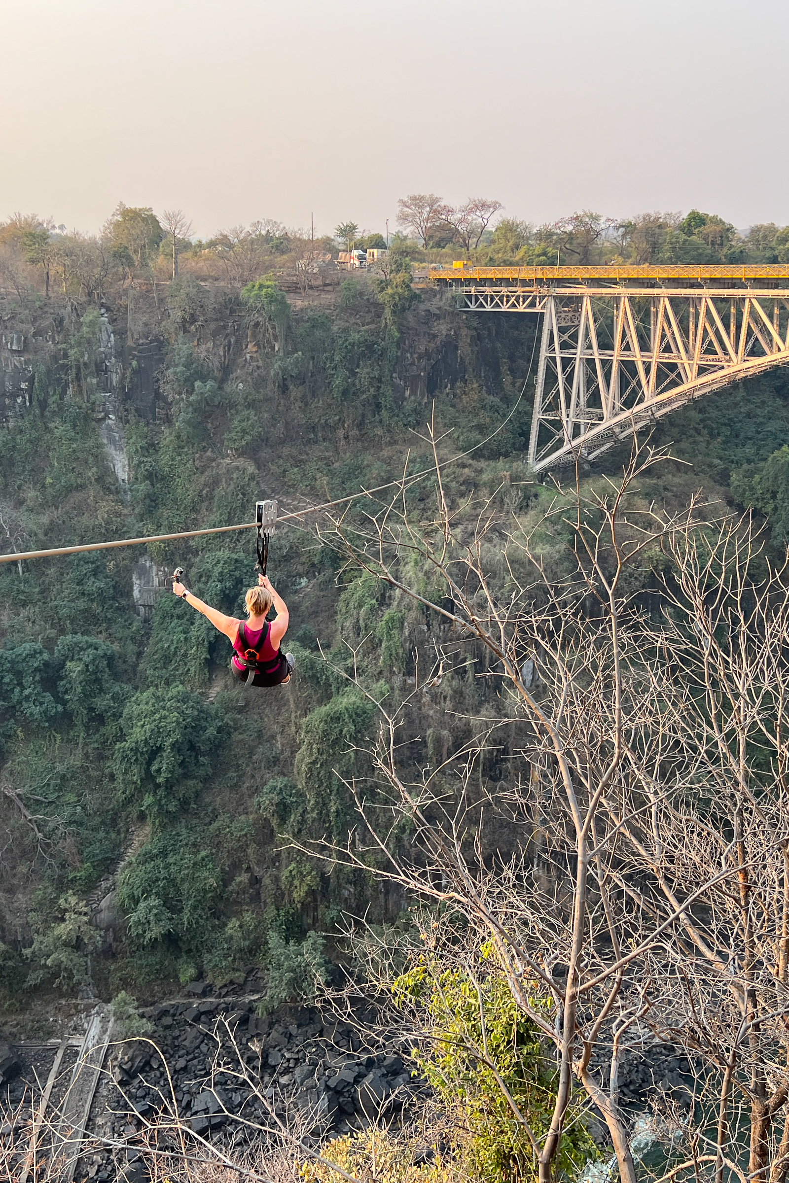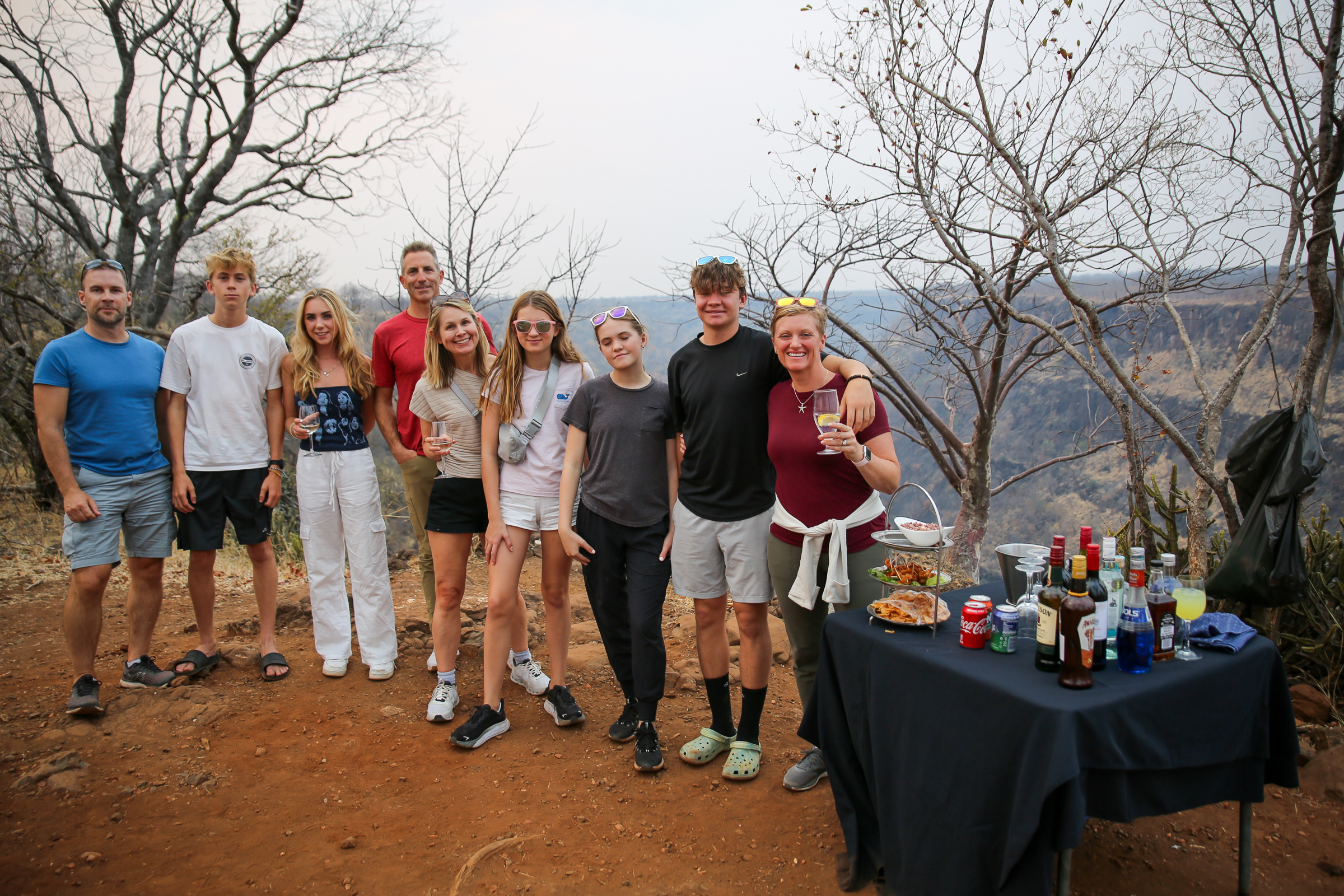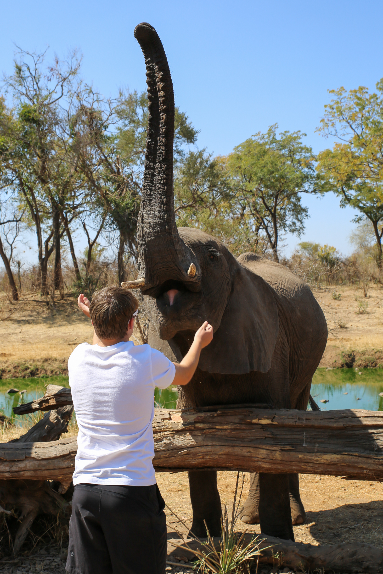 As eluded to before, this was a less-than-straightforward process. The border crossing was much more chaotic and ultimately it took 2 hours and some ‘encouragement’ from our guide to get us across the border. Our final hotel was the Elephant Camp, only about 30 min drive south of Avani – all the buildings, including the main lodge area, were essentially tents (at least the roofs were) – gave it all a bit of a whimsical feel. Food and service were again great, there was just one other couple around so we more or less had a run on our side of the resort. As our vacation was winding down, we weren’t fussed about doing a whole lot (we already did all the things!), though we did do one last adventure to do a zip line canopy tour at the Lookout Cafe. The kids went one step further, with Ryley and Isla once again doing a tandem foefie slide (zip line with a big dip in the middle from where they need to be retrieved), and Josh doing a scary-looking gorge swing (basically drop towards the water / rocks below, then swing way out)! We also did a walking tour back to Victoria Falls to see them from the Zimbabwe side. Otherwise, our activities were a little more low-key: a sunset boat cruise, having drinks in the bush (a la game drive) overlooking a gorge, a shopping trip into town (to find some gin that we liked), enjoying a bonfire at the resort in the evening, or playing a spirited game of Wildlife or Mancala in the lodge. We did one final elephant feeding nearby at another part of our resort (strangely enough the only time we saw elephants at the ‘Elephant Camp’).