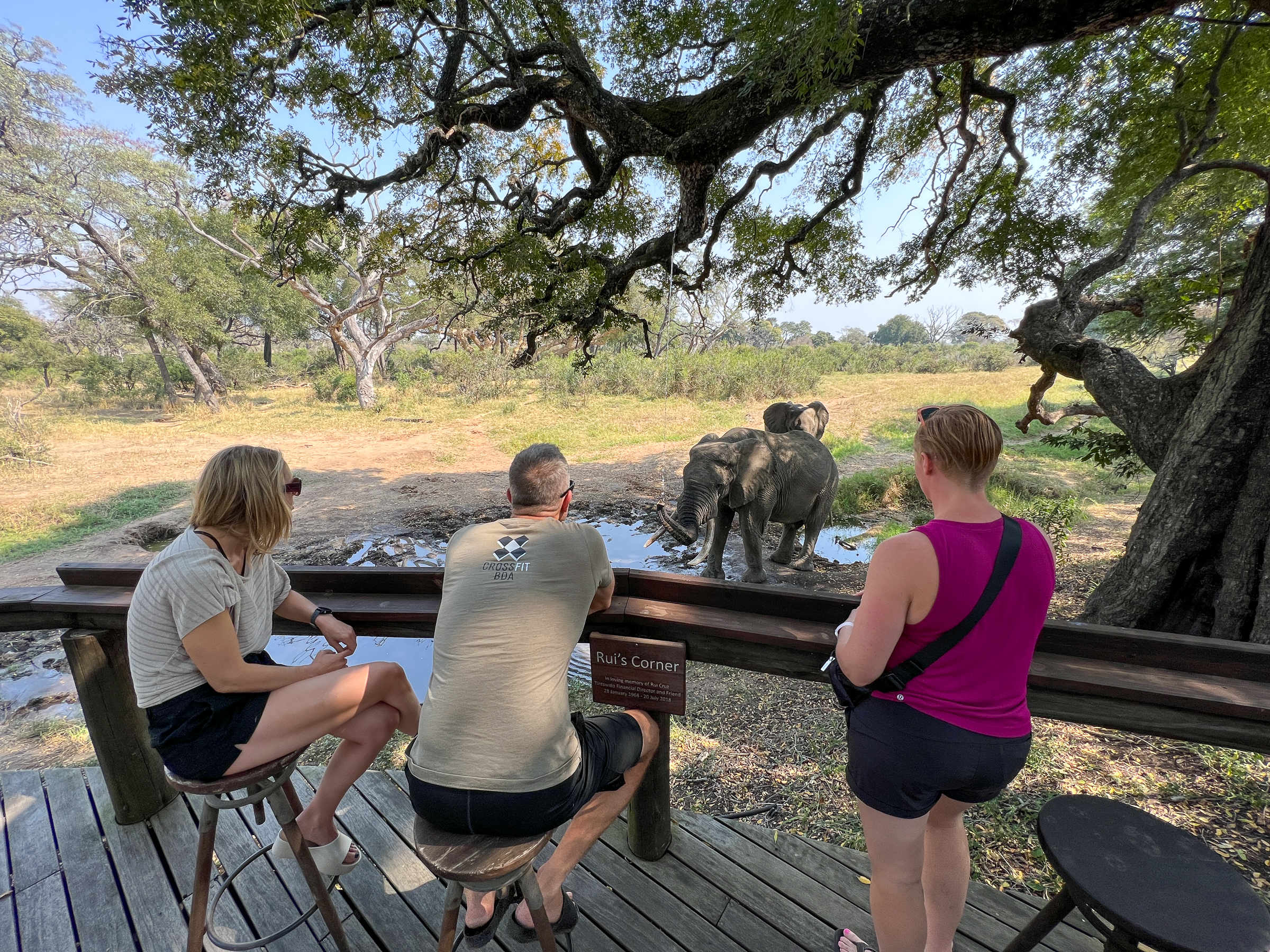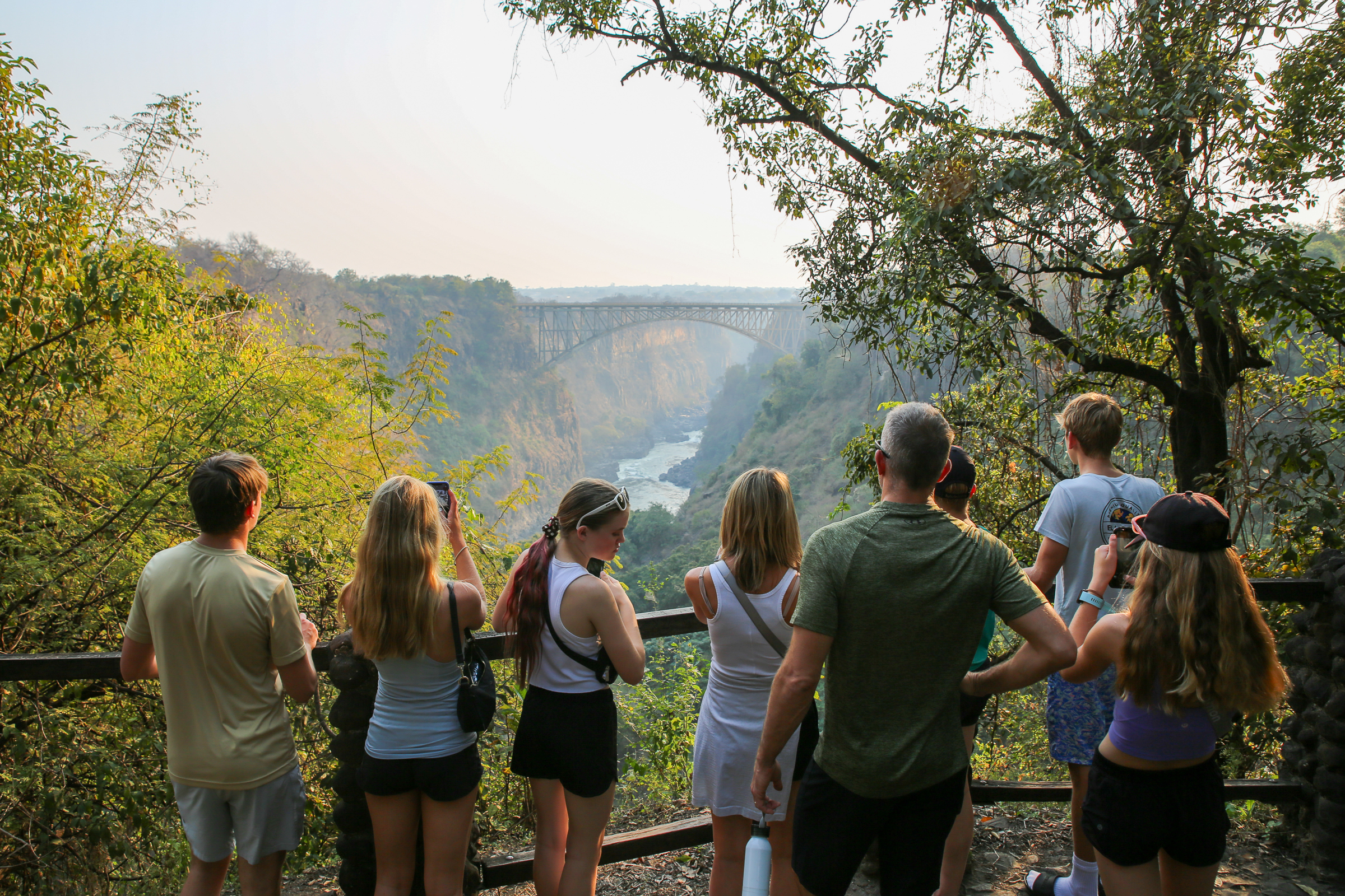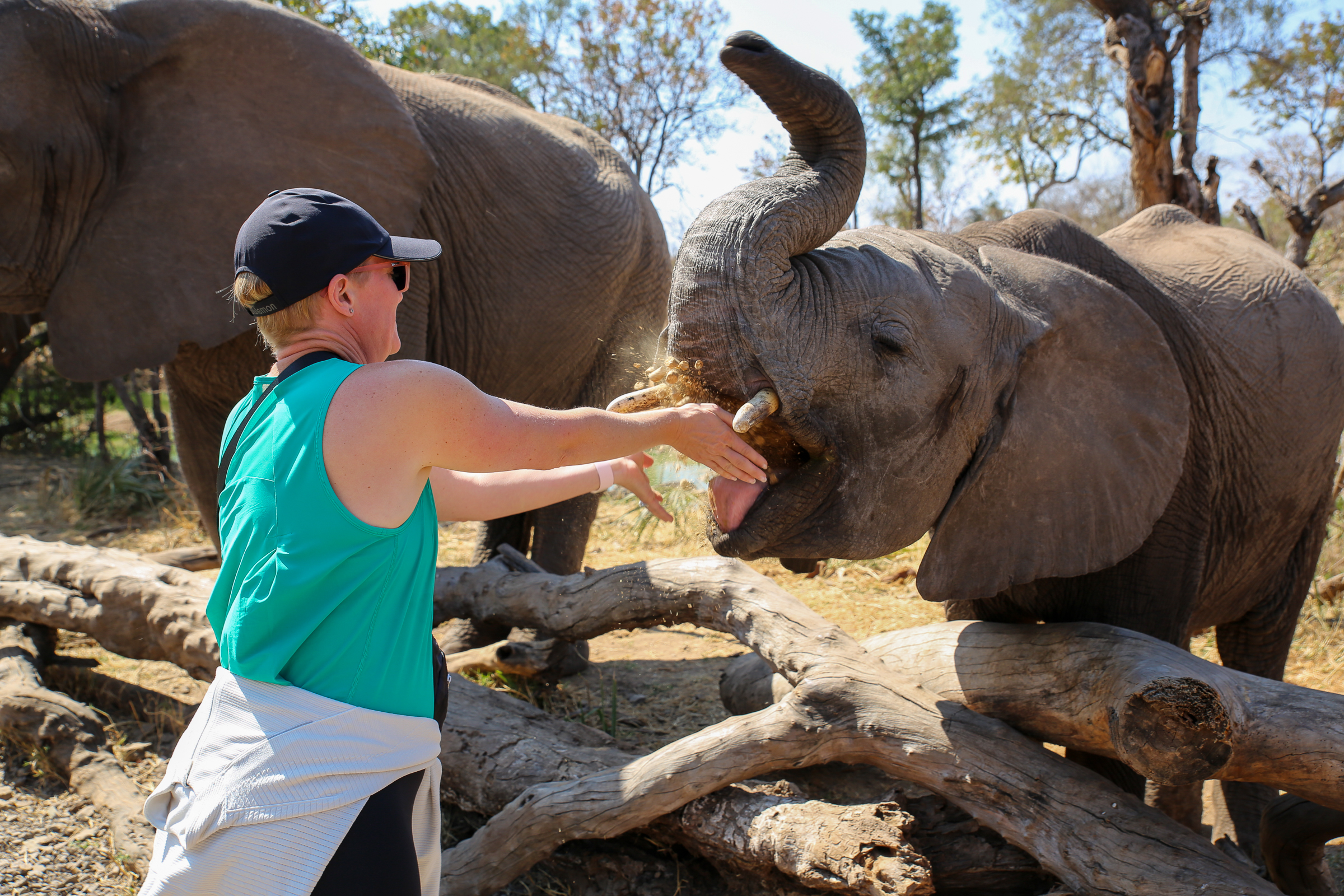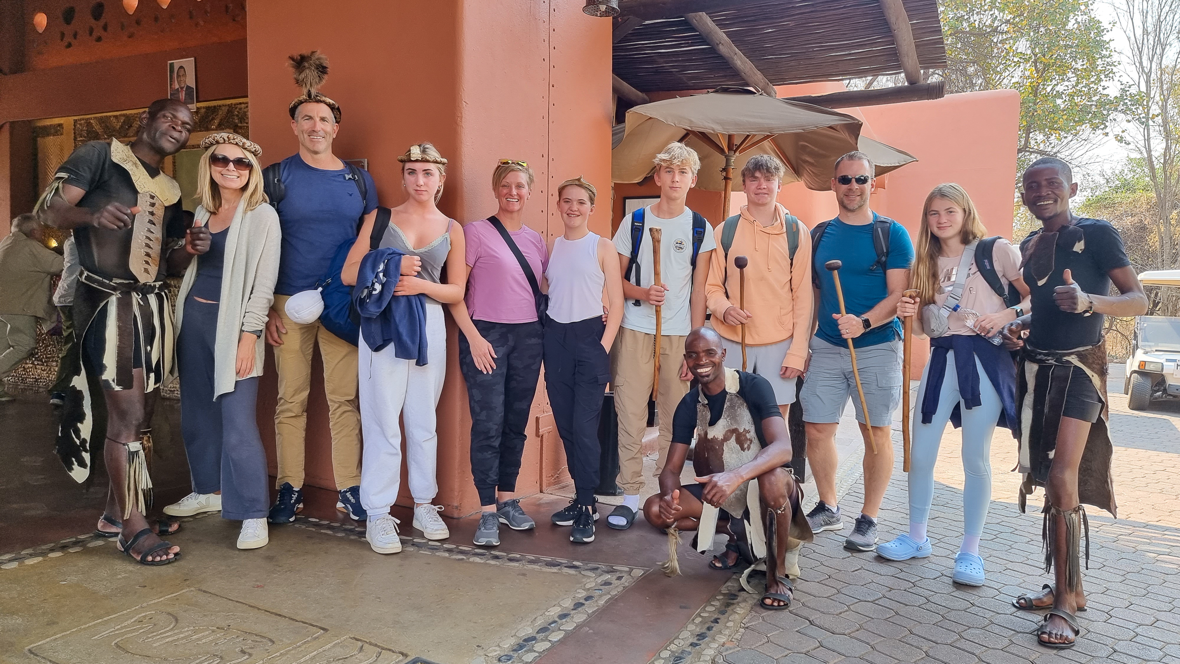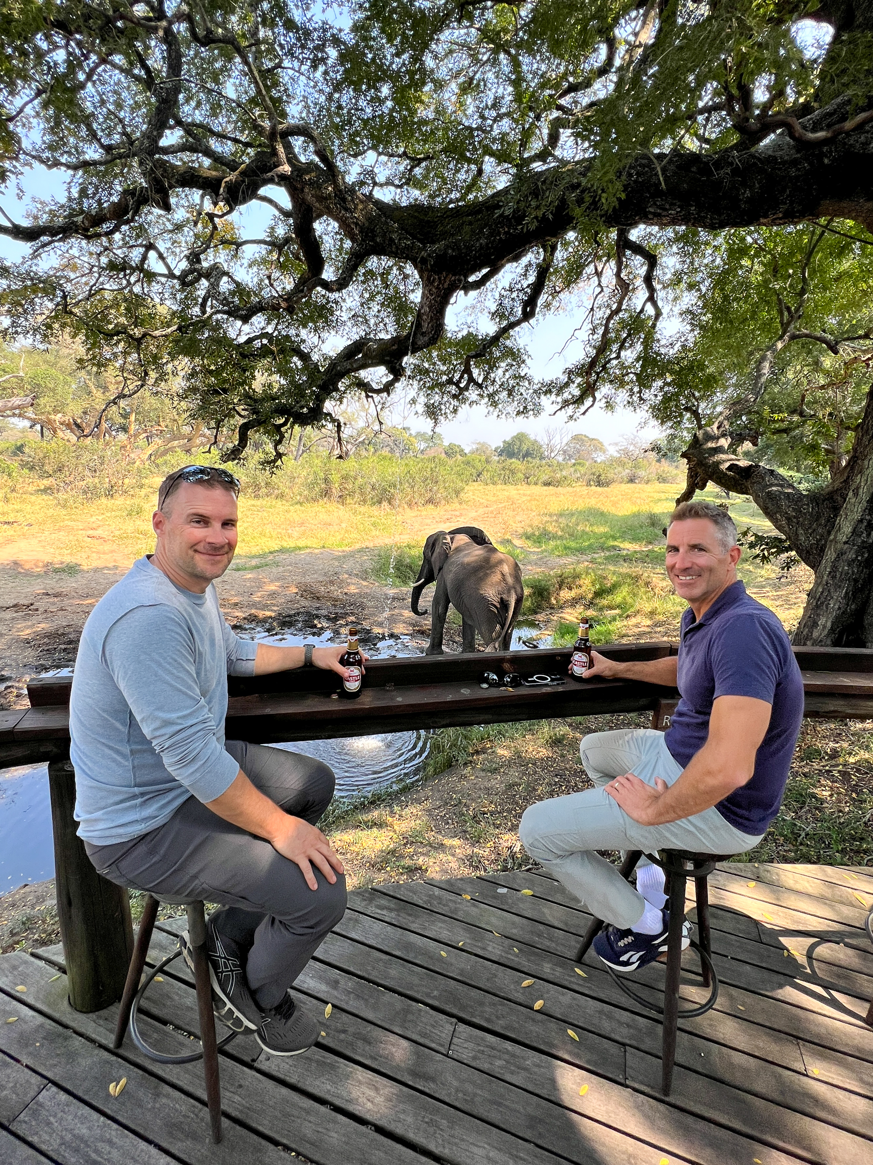 As eluded to before, this was a less-than-straightforward process. The border crossing was much more chaotic and ultimately it took 2 hours and some ‘encouragement’ from our guide to get us across the border. Our final hotel was the Elephant Camp, only about 30 min drive south of Avani – all the buildings, including the main lodge area, were essentially tents (at least the roofs were) – gave it all a bit of a whimsical feel. Food and service were again great, there was just one other couple around so we more or less had a run on our side of the resort. As our vacation was winding down, we weren’t fussed about doing a whole lot (we already did all the things!), though we did do one last adventure to do a zip line canopy tour at the Lookout Cafe. The kids went one step further, with Ryley and Isla once again doing a tandem foefie slide (zip line with a big dip in the middle from where they need to be retrieved), and Josh doing a scary-looking gorge swing (basically drop towards the water / rocks below, then swing way out)! We also did a walking tour back to Victoria Falls to see them from the Zimbabwe side. Otherwise, our activities were a little more low-key: a sunset boat cruise, having drinks in the bush (a la game drive) overlooking a gorge, a shopping trip into town (to find some gin that we liked), enjoying a bonfire at the resort in the evening, or playing a spirited game of Wildlife or Mancala in the lodge. We did one final elephant feeding nearby at another part of our resort (strangely enough the only time we saw elephants at the ‘Elephant Camp’).