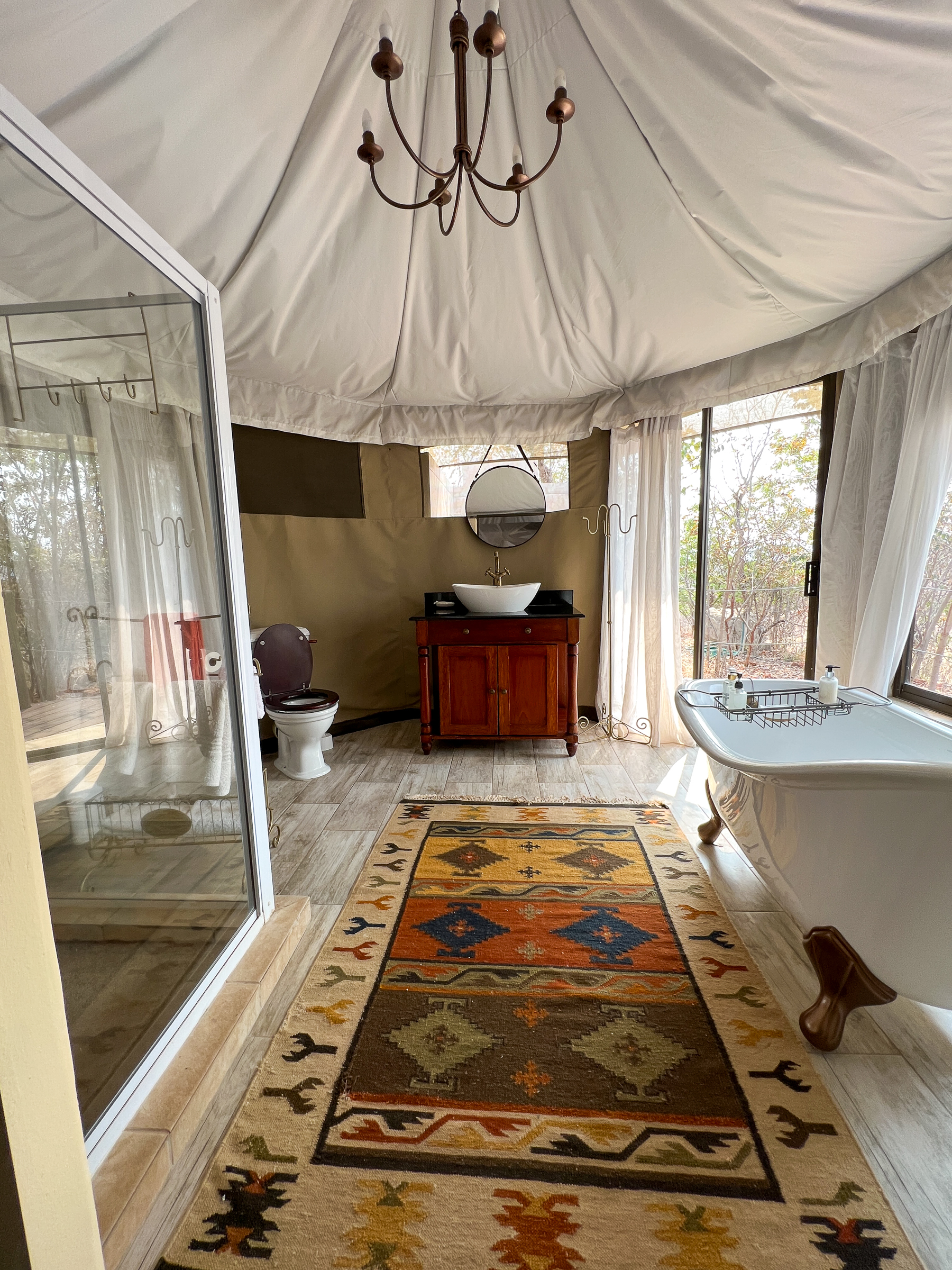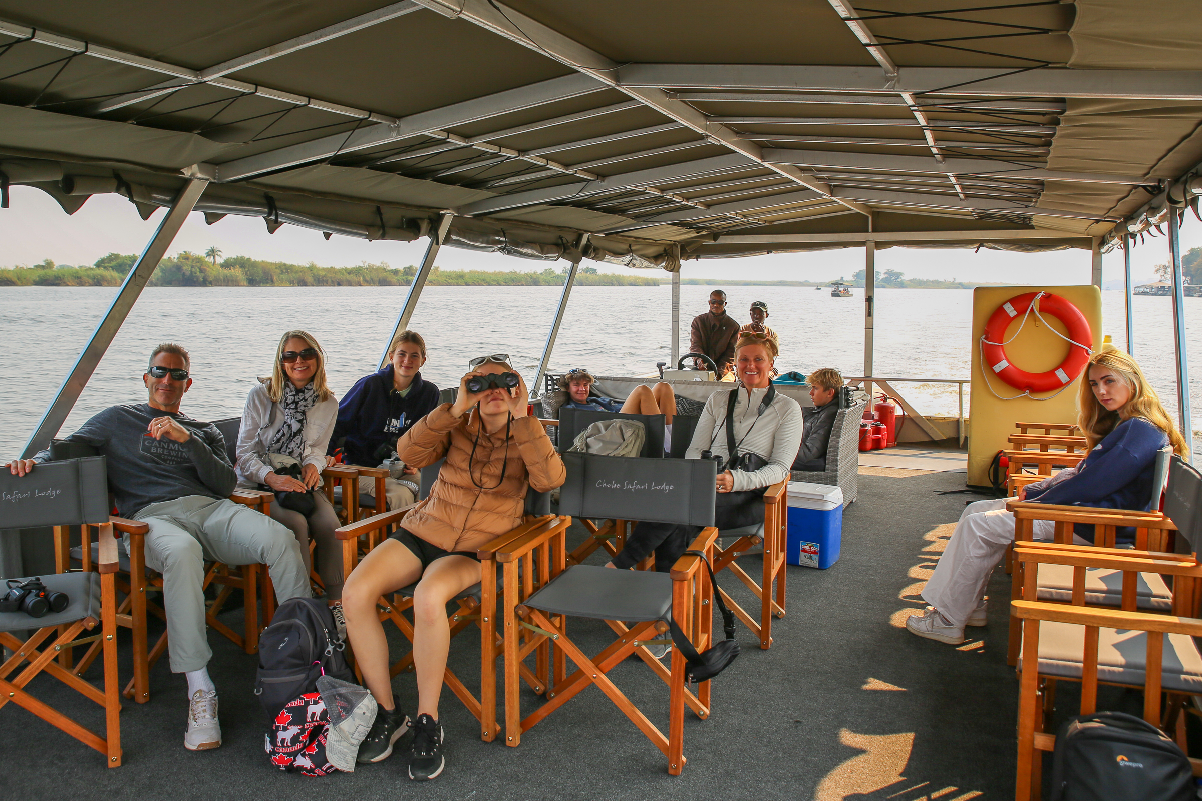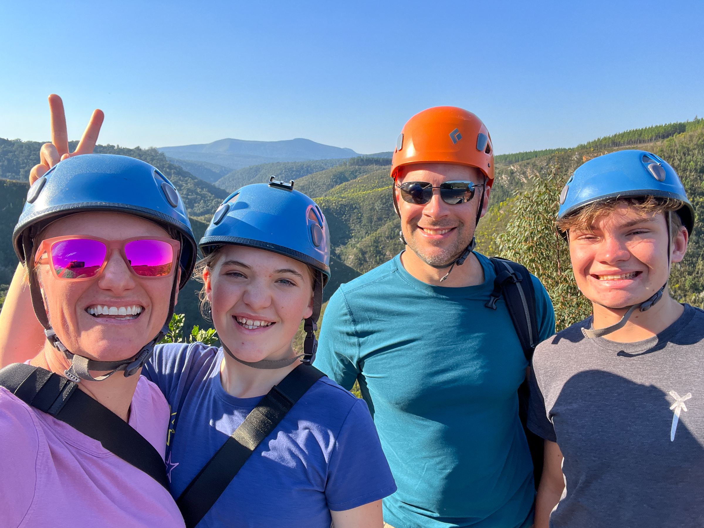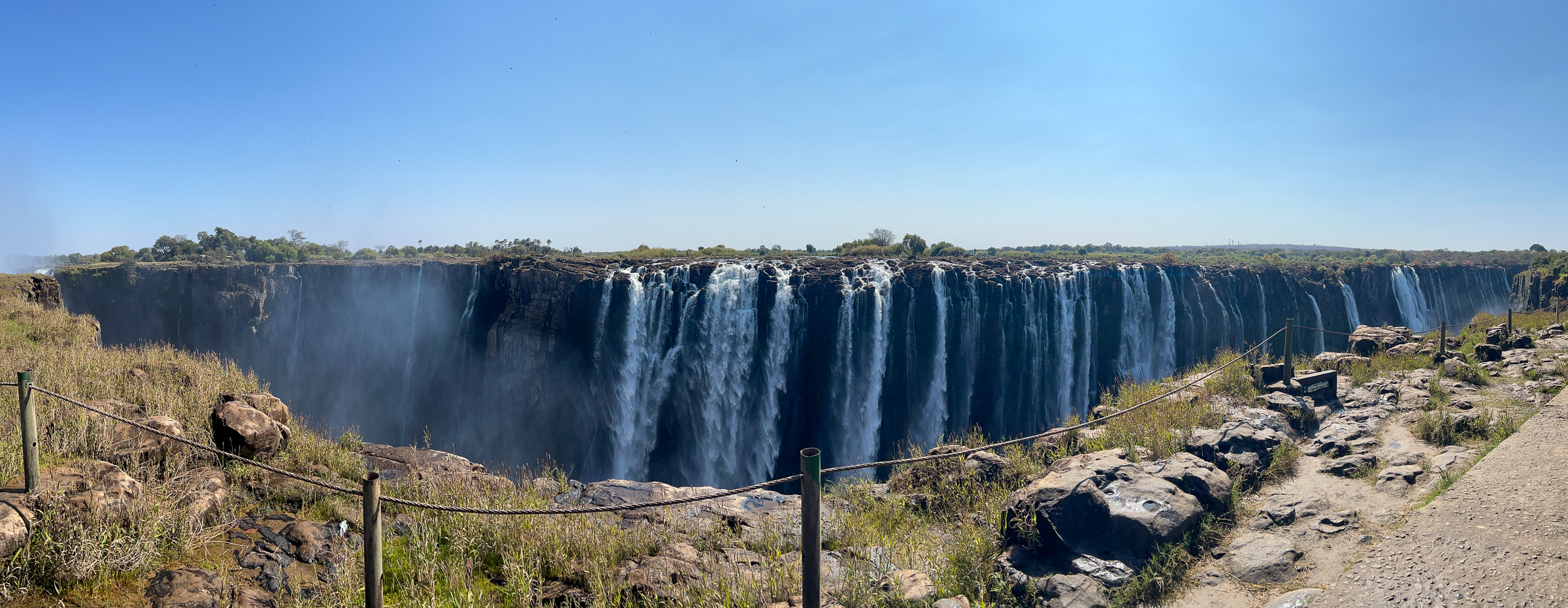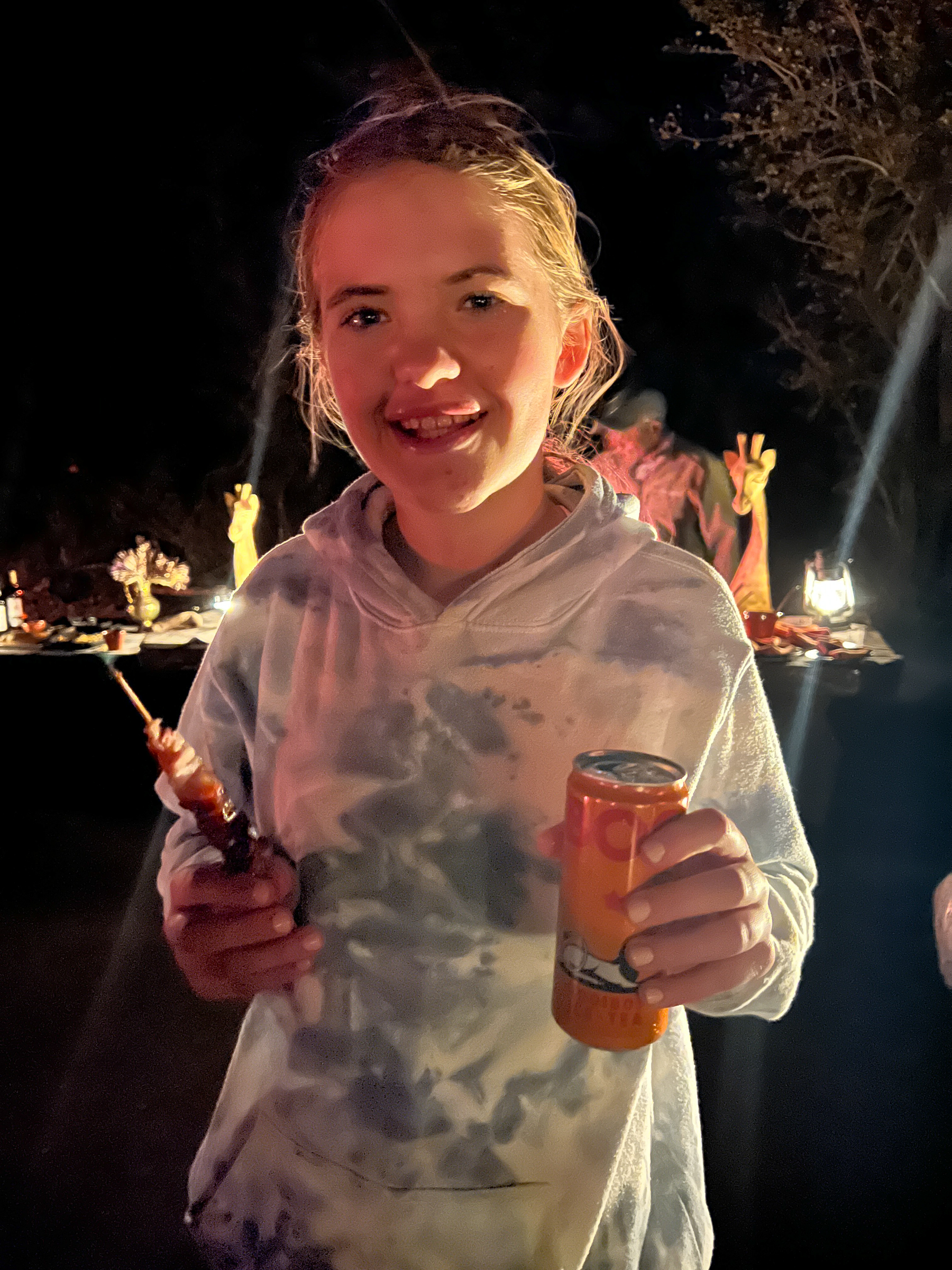 As eluded to before, this was a less-than-straightforward process. The border crossing was much more chaotic and ultimately it took 2 hours and some ‘encouragement’ from our guide to get us across the border. Our final hotel was the Elephant Camp, only about 30 min drive south of Avani – all the buildings, including the main lodge area, were essentially tents (at least the roofs were) – gave it all a bit of a whimsical feel. Food and service were again great, there was just one other couple around so we more or less had a run on our side of the resort. As our vacation was winding down, we weren’t fussed about doing a whole lot (we already did all the things!), though we did do one last adventure to do a zip line canopy tour at the Lookout Cafe. The kids went one step further, with Ryley and Isla once again doing a tandem foefie slide (zip line with a big dip in the middle from where they need to be retrieved), and Josh doing a scary-looking gorge swing (basically drop towards the water / rocks below, then swing way out)! We also did a walking tour back to Victoria Falls to see them from the Zimbabwe side. Otherwise, our activities were a little more low-key: a sunset boat cruise, having drinks in the bush (a la game drive) overlooking a gorge, a shopping trip into town (to find some gin that we liked), enjoying a bonfire at the resort in the evening, or playing a spirited game of Wildlife or Mancala in the lodge. We did one final elephant feeding nearby at another part of our resort (strangely enough the only time we saw elephants at the ‘Elephant Camp’).