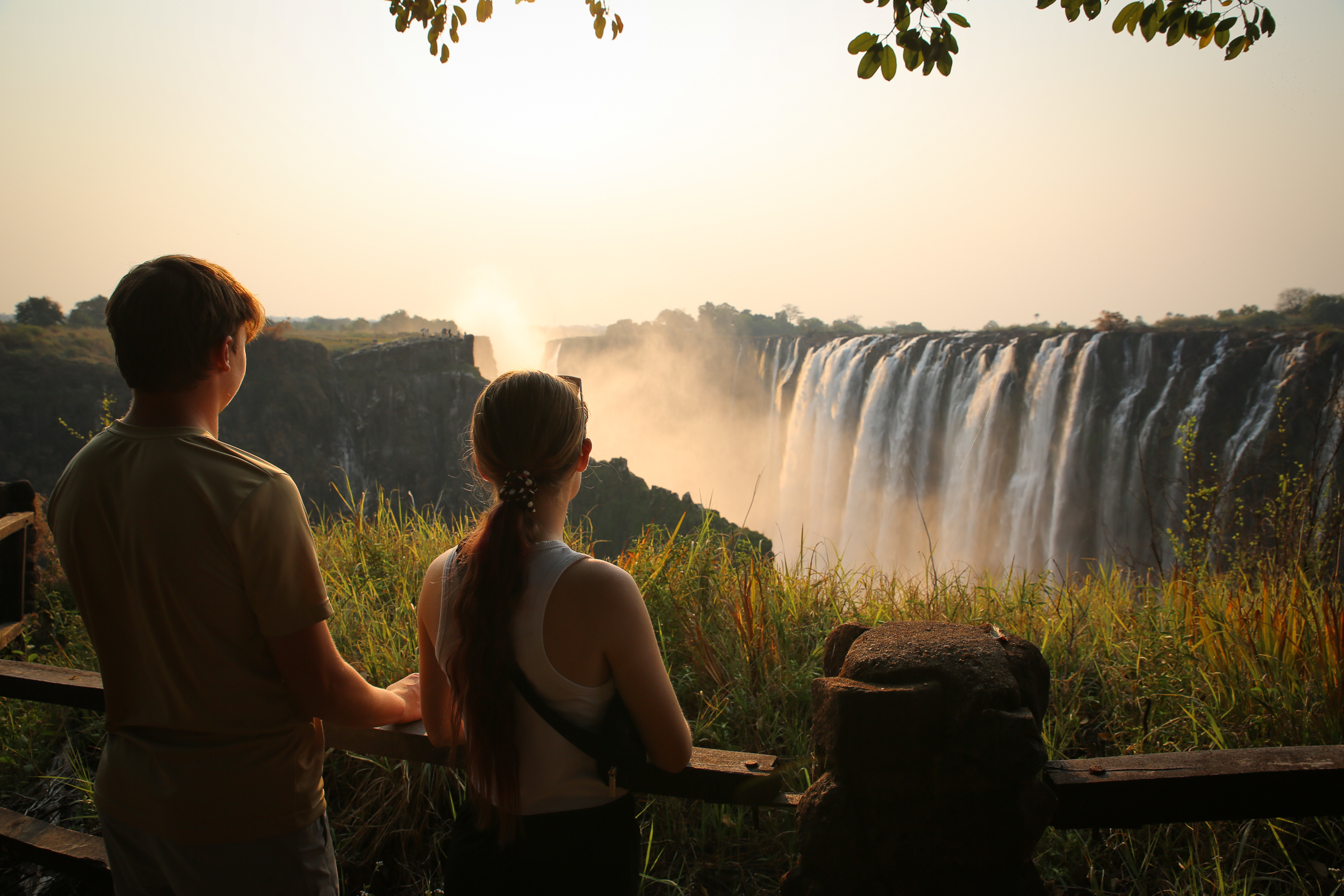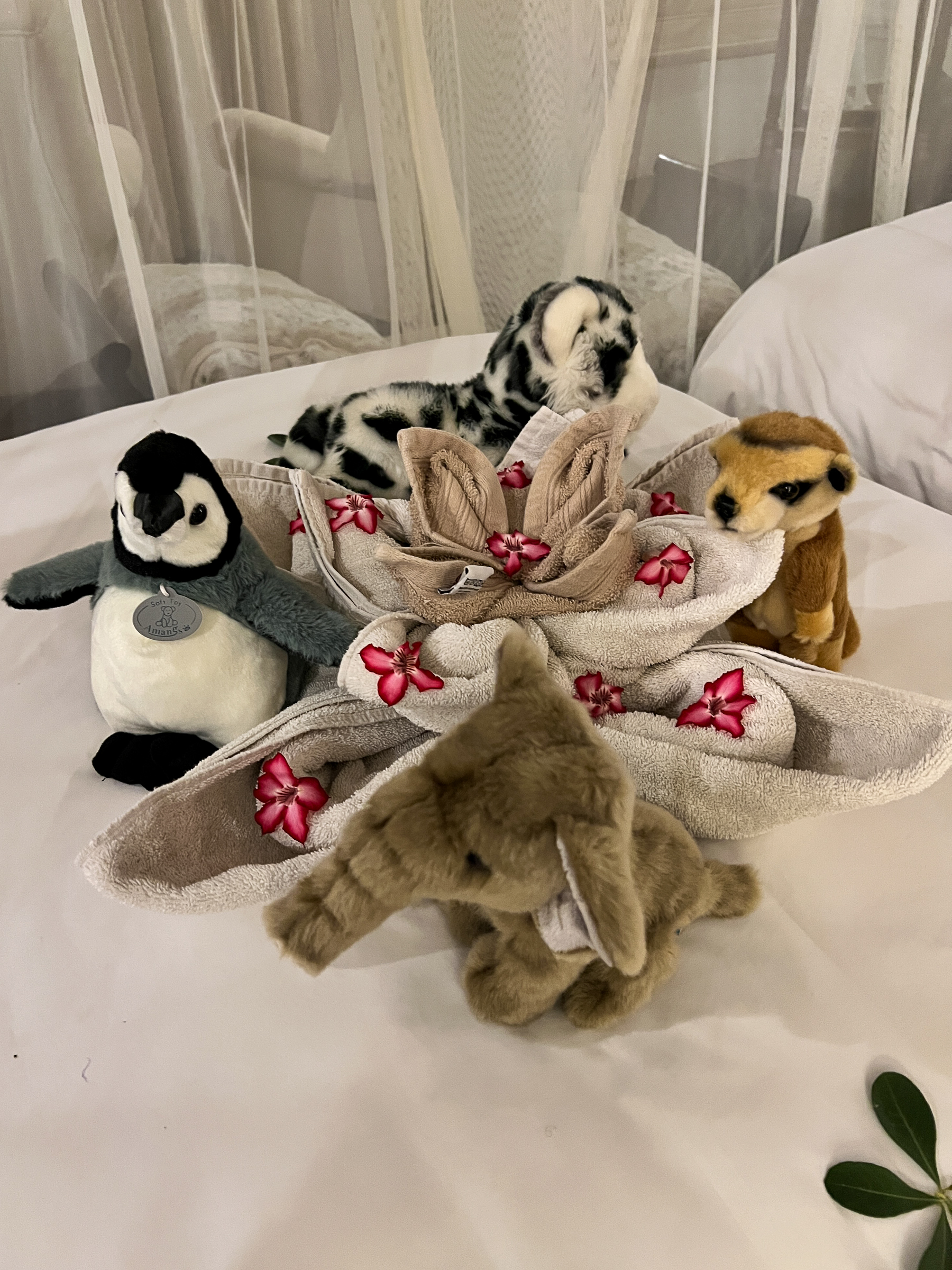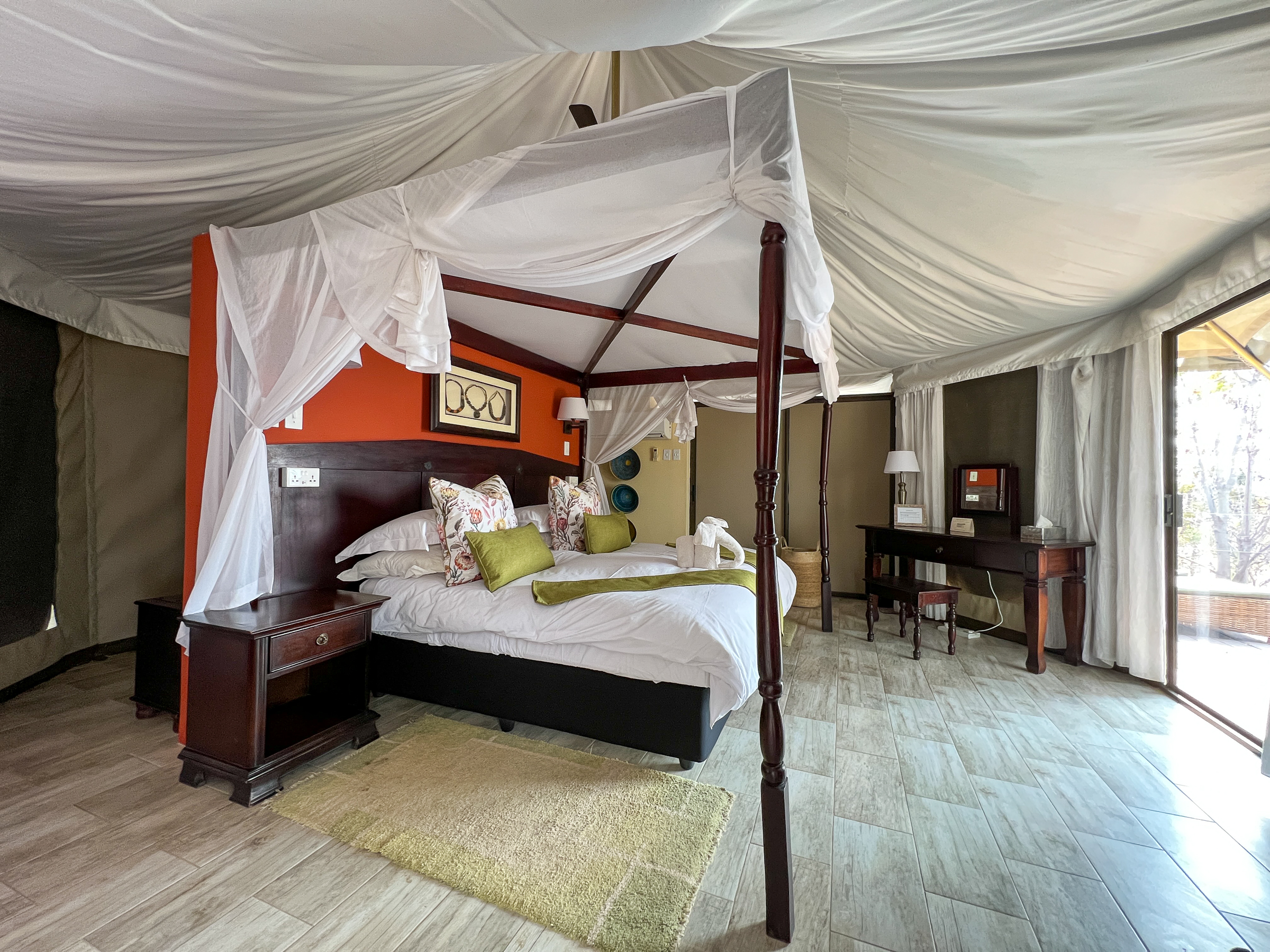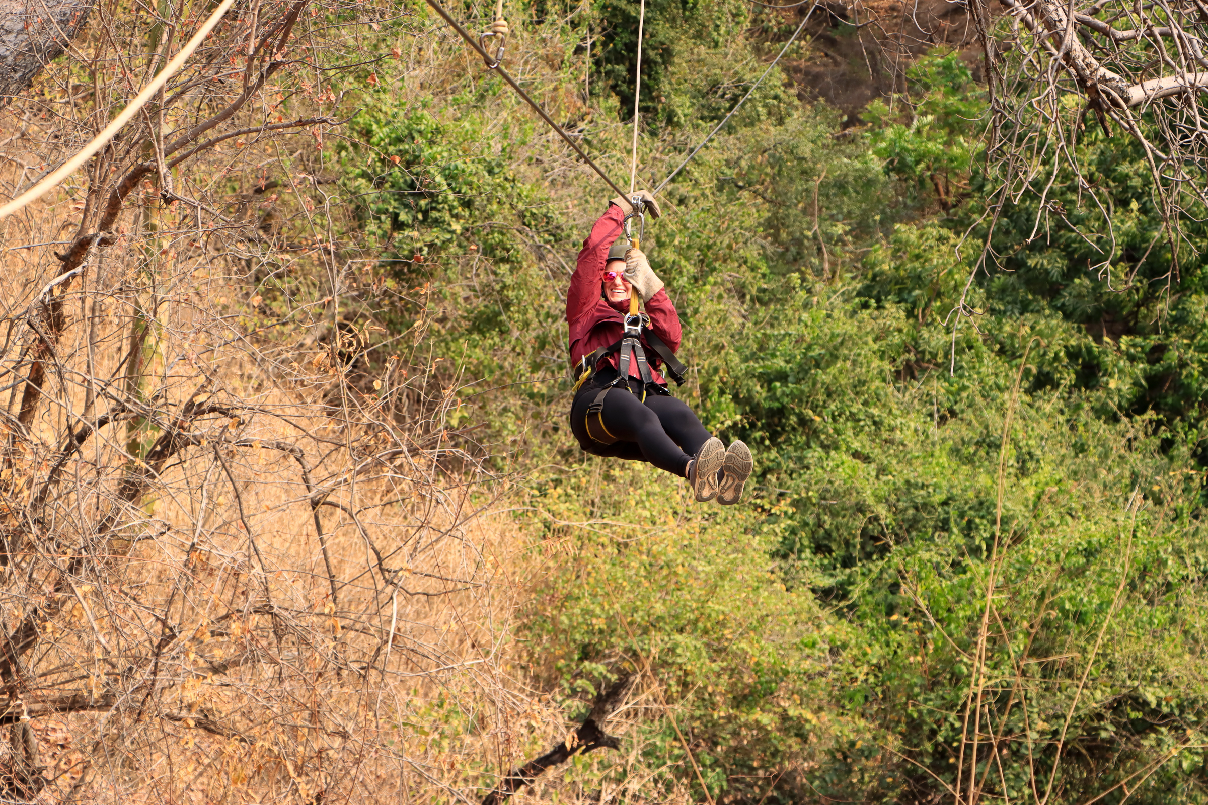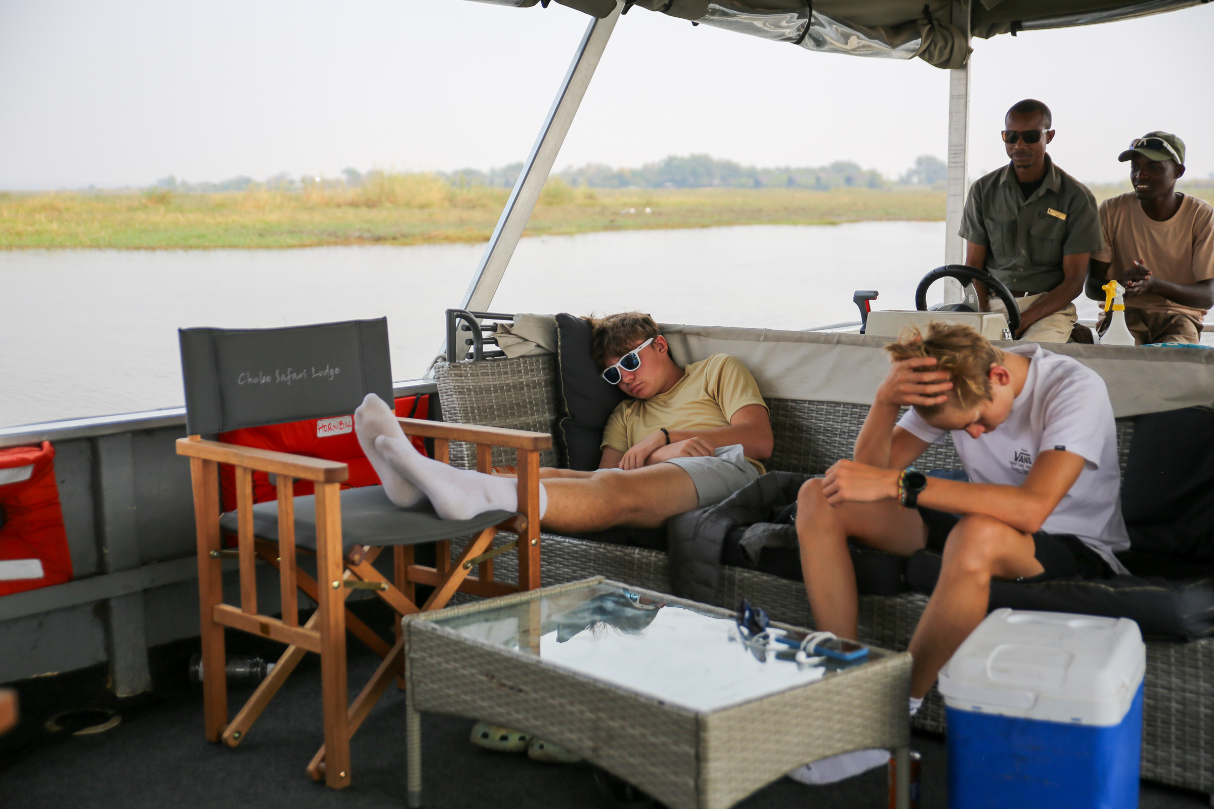 As eluded to before, this was a less-than-straightforward process. The border crossing was much more chaotic and ultimately it took 2 hours and some ‘encouragement’ from our guide to get us across the border. Our final hotel was the Elephant Camp, only about 30 min drive south of Avani – all the buildings, including the main lodge area, were essentially tents (at least the roofs were) – gave it all a bit of a whimsical feel. Food and service were again great, there was just one other couple around so we more or less had a run on our side of the resort. As our vacation was winding down, we weren’t fussed about doing a whole lot (we already did all the things!), though we did do one last adventure to do a zip line canopy tour at the Lookout Cafe. The kids went one step further, with Ryley and Isla once again doing a tandem foefie slide (zip line with a big dip in the middle from where they need to be retrieved), and Josh doing a scary-looking gorge swing (basically drop towards the water / rocks below, then swing way out)! We also did a walking tour back to Victoria Falls to see them from the Zimbabwe side. Otherwise, our activities were a little more low-key: a sunset boat cruise, having drinks in the bush (a la game drive) overlooking a gorge, a shopping trip into town (to find some gin that we liked), enjoying a bonfire at the resort in the evening, or playing a spirited game of Wildlife or Mancala in the lodge. We did one final elephant feeding nearby at another part of our resort (strangely enough the only time we saw elephants at the ‘Elephant Camp’).