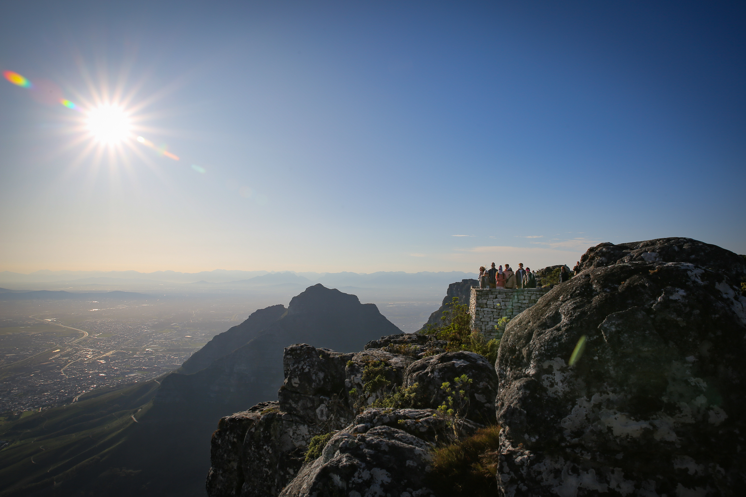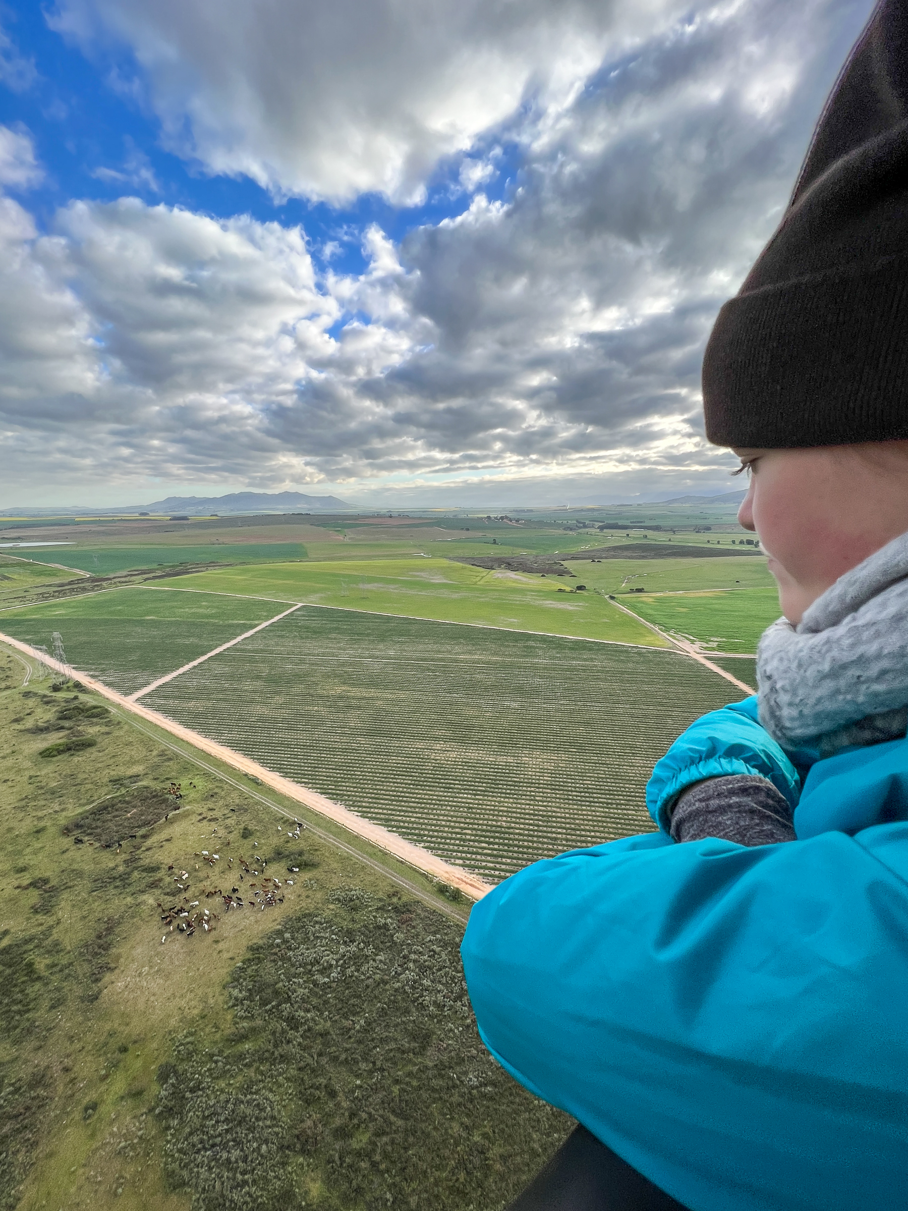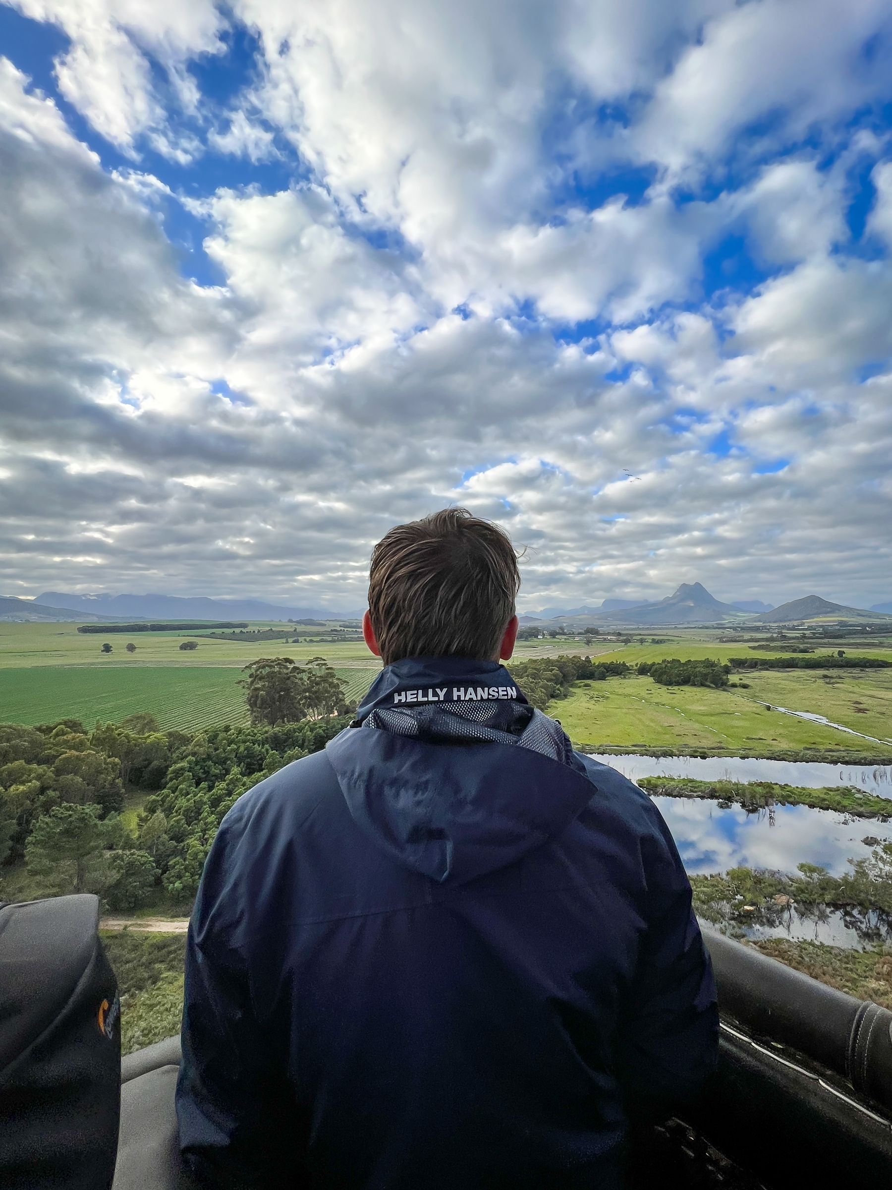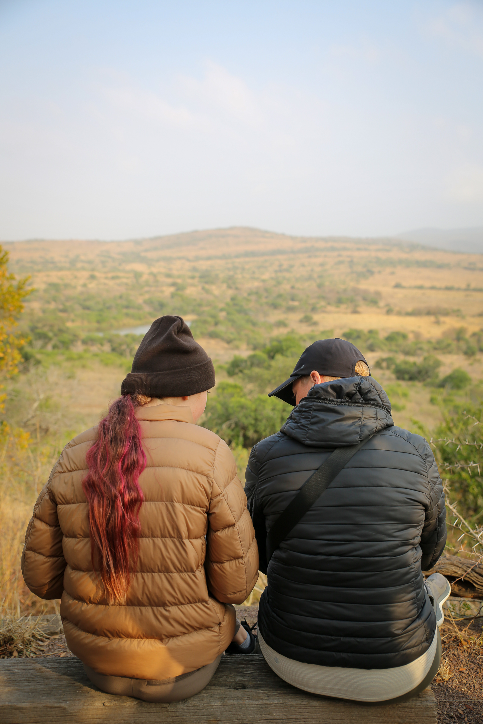 We Wilson’s aren’t idle for long, however – after breakfast the next morning, we hit the road with Irma at the wheel, heading further east about 3.5 hours to Elephant House in Addo, our home for another two days. Our timing was bang on as we had about a half hour to check in, get refreshed, and get back in an awaiting open-air safari vehicle for our first real game drive! (Ryley unfortunately wasn’t feeling 100% after her seafood & lemon feast plus the long car ride… so she came along but slept through most of this first one.) We were a little rushed but it was totally worth it, the game drive was marvelous. We saw lots of different animals like zebras, warthogs, and kudus, amongst about a million elephants! We even saw a few dung beetles. Then, just before a gorgous sunset, we found a small pride of lions! So amazing. The only not-great thing was that our Land Rover broke down just before we saw the lions – and while we were able to get the vehicle going again to get back to the hotel, we’d have to switch to a decidedly more uncomfortable closed-in vehicle for our morning game drive the next day. We did get a fun, snacky breakfast while out for our drive early the next morning, however; we stopped on a hill with an breathtaking view for miles around.