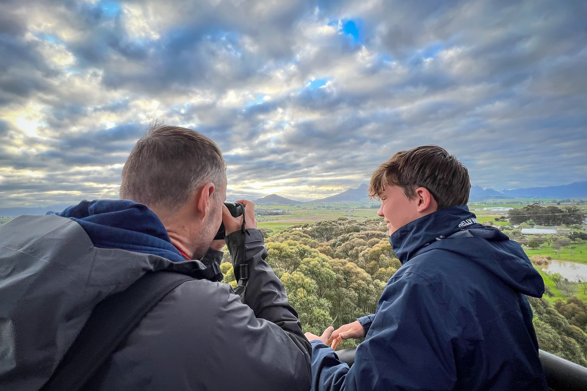 Sunday mid-morning we’re on the road again for about an hour to the Port Elizabeth airport to catch an afternoon flight back west to Cape Town to meet up with the Coozes at the hotel in Camps Bay. Unfortunately, they were delayed by storms in Atlanta and thus missed their flight to Cape Town; they’d be arriving two days late! We were, luckily, back in the hands of our original Cape Town tour guide, Chris, and once again he and Ankia worked their magic to shuffle around some of the activities planned for the whole group and found us other things to do in the meantime. Over the next few days, we went back out to the Stellenbosch area for a some hot air ballooning, rode the Wine Tram at Franschhoek to a few wineries (Delaire Graff, Anura, and Boschendal), Chris did some official ‘tour guiding’ around Signal Hill and Cape Town itself, and we spent an afternoon shopping and sightseeing at the Waterfront area.