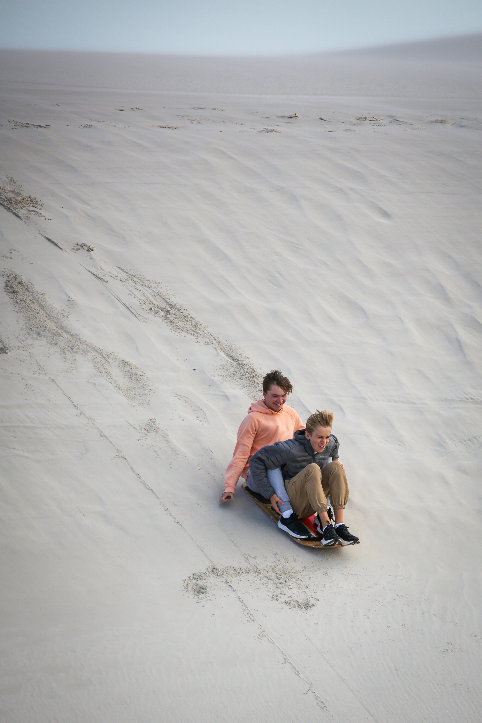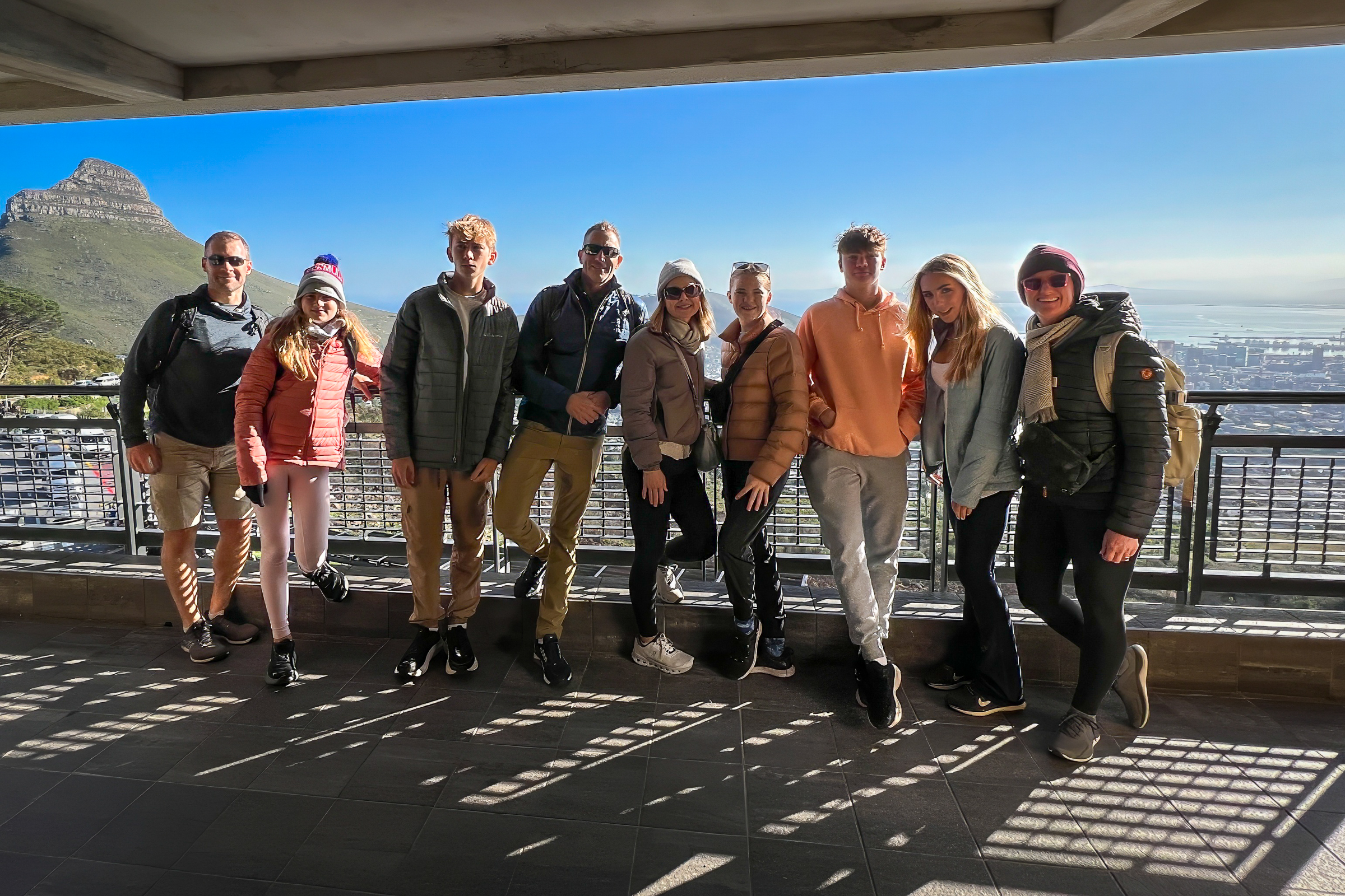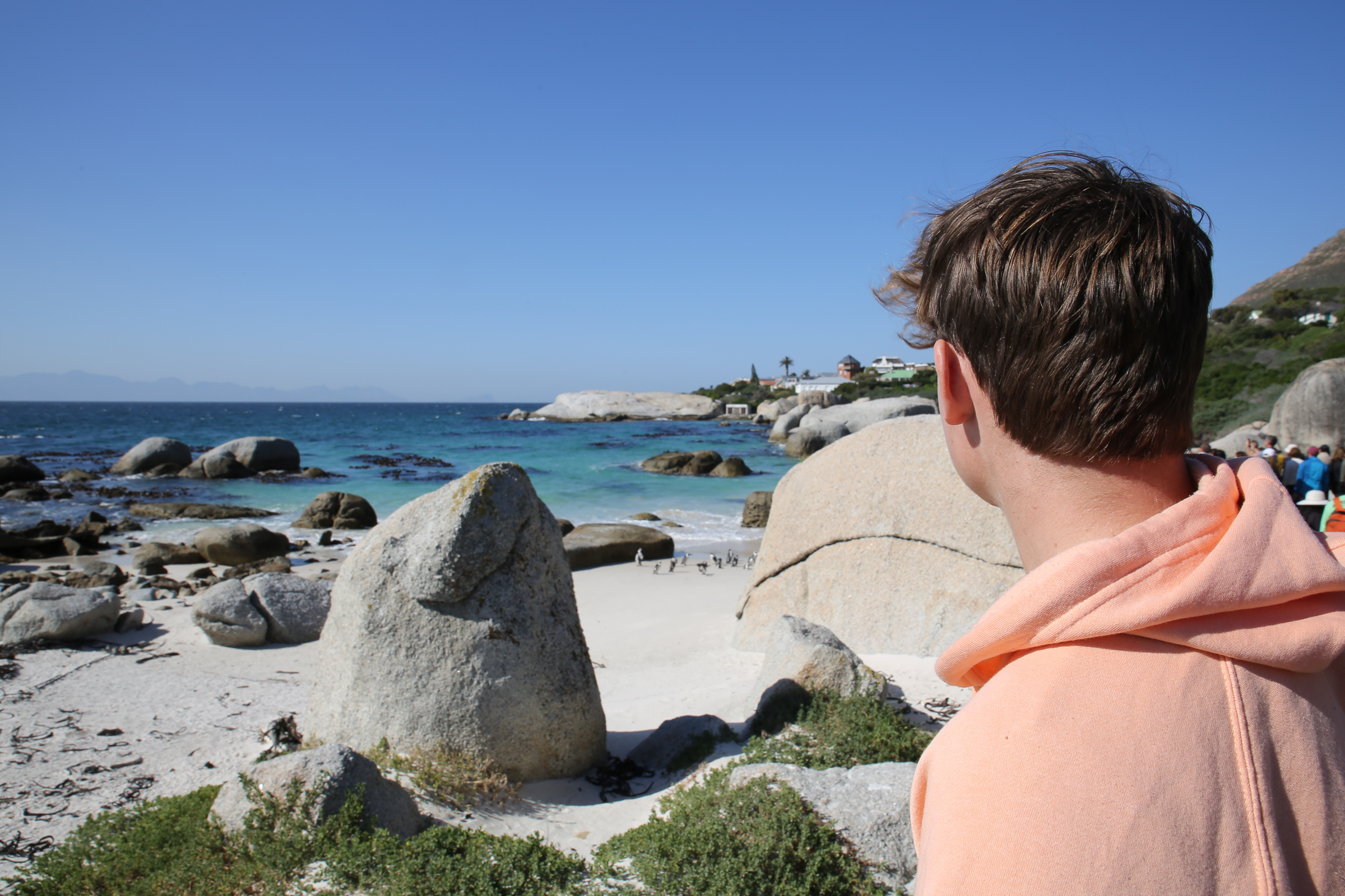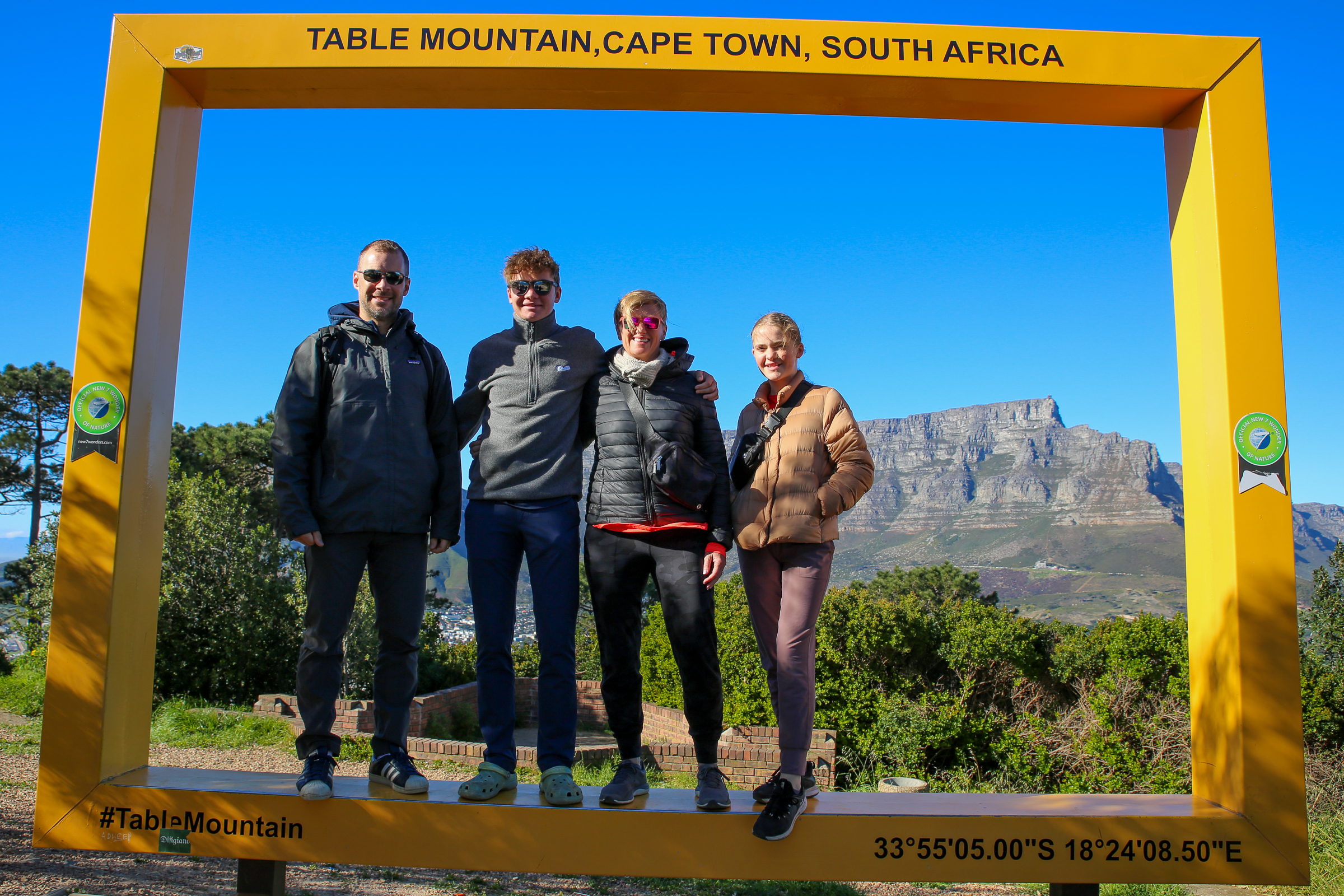 The Coozes arrived Tuesday evening and were raring to go! Wednesday was a jam-packed day, even by our standards. 😉 After an early breakfast, we started at Table Mountain where we rode the tram to the top (we were originally supposed to hike, but time was of the essence and ultimately we were all glad we didn’t!). It was quite chilly at the top, but a lovely clear day, with astonishing views of the city as well as Robben Island (where Nelson Mandela was imprisoned for 18 years) below. We all piled back in the van for a gorgeous hour-long cruise along the coast down to Simon’s Town and Boulders Beach to see some wild penguins, much to the delight of everyone! After a fancy seafood lunch at Kalk Bay, it was back on the road north past Cape Town to the Atlantis Dunes to do some sandboarding and a few laps on a quad! It was pretty fun by (nearly) all accounts – it was interesting to find seemingly endless dunes of white sand out in the middle of nowhere. Back to Camps Bay for the night – needless to say, after dinner and gelato, we were all beat, but excited to head up to our first safari lodge at Phinda on Thursday!