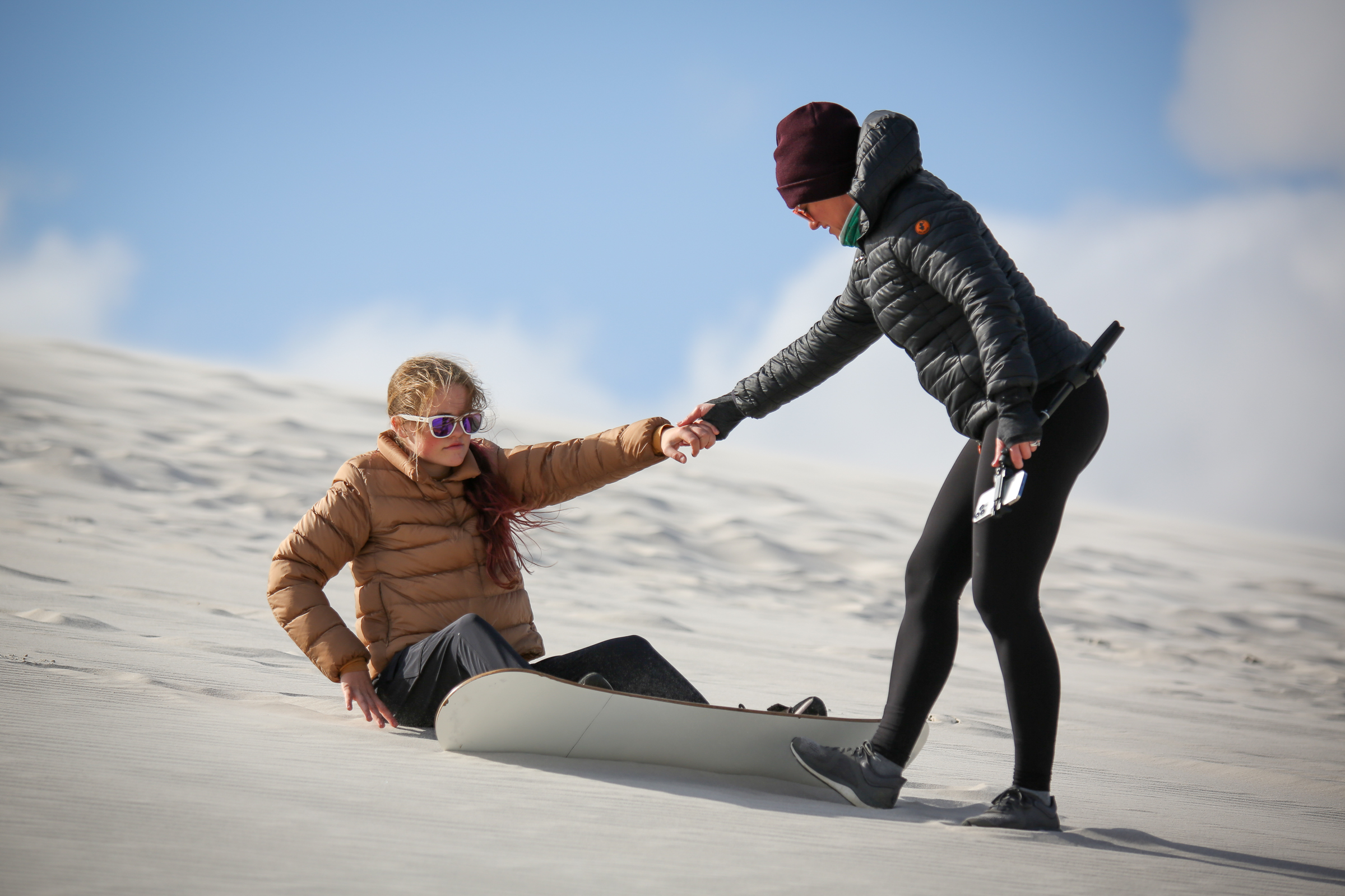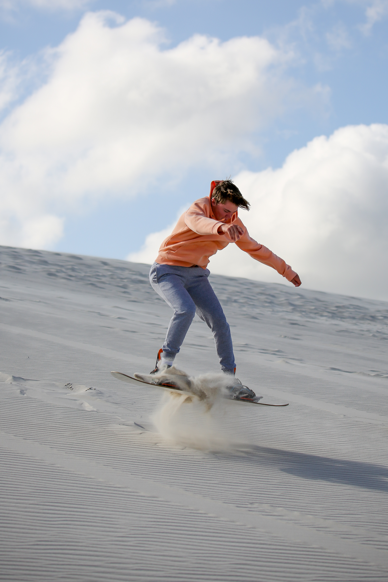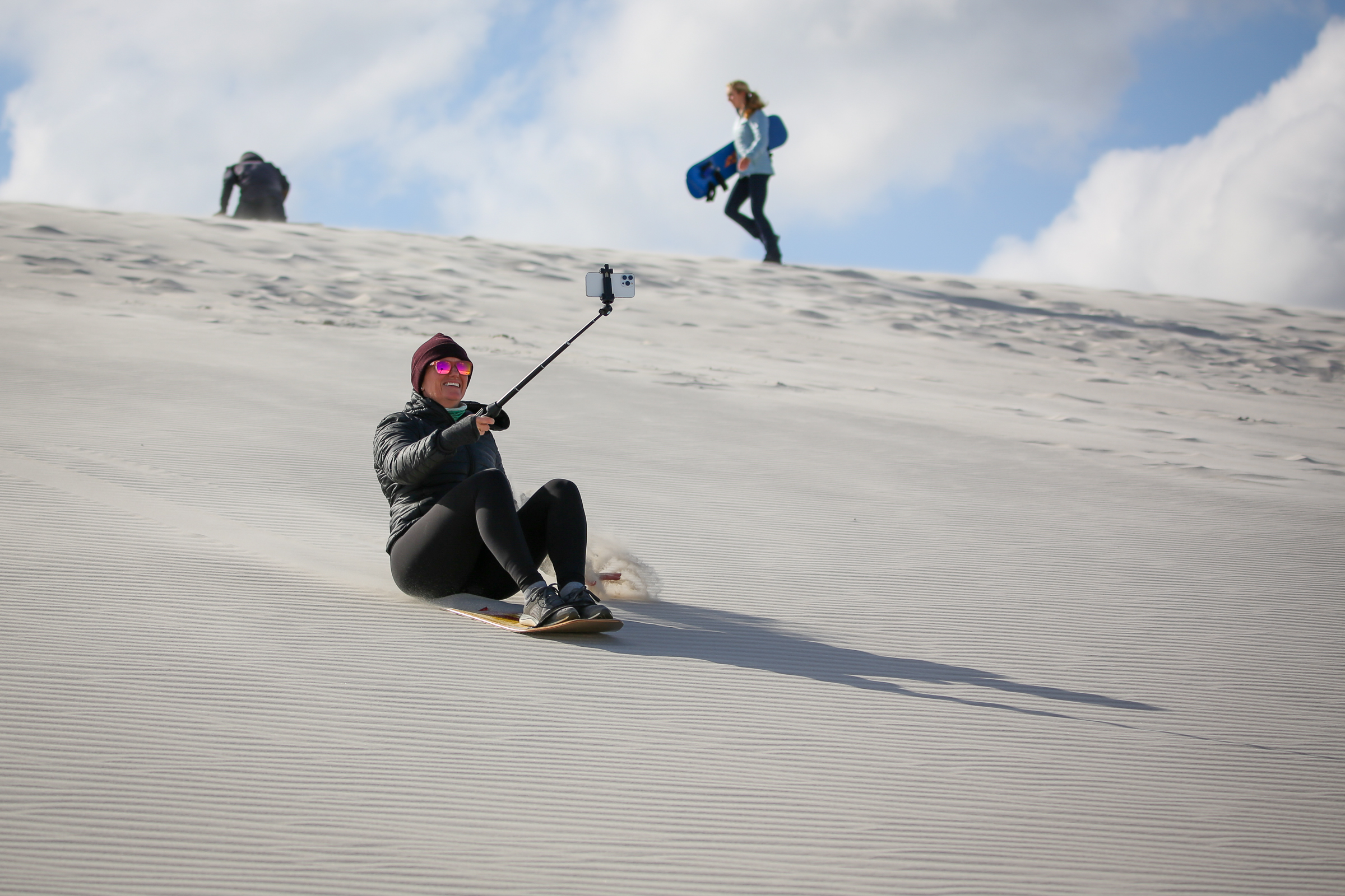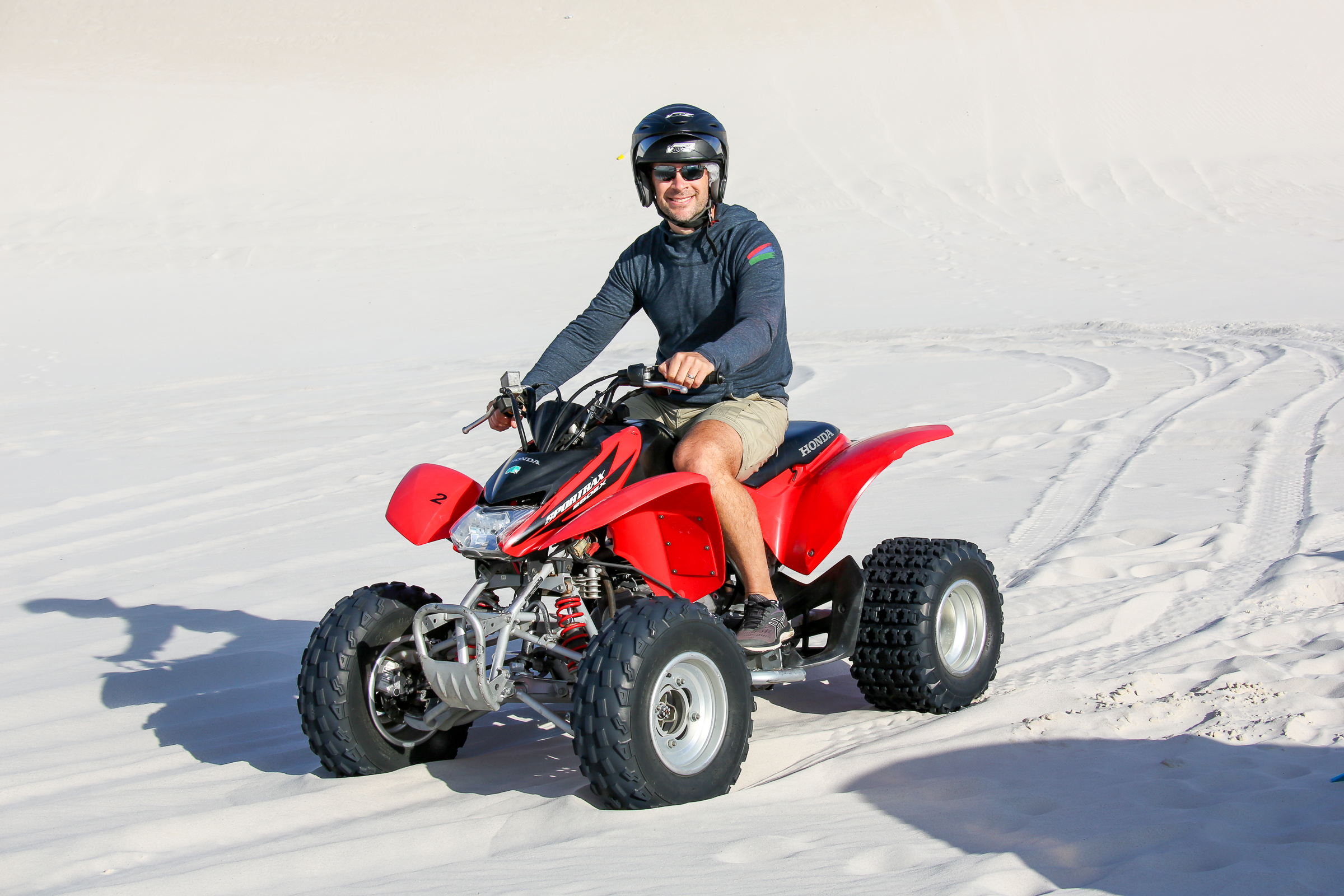 The Coozes arrived Tuesday evening and were raring to go! Wednesday was a jam-packed day, even by our standards. 😉 After an early breakfast, we started at Table Mountain where we rode the tram to the top (we were originally supposed to hike, but time was of the essence and ultimately we were all glad we didn’t!). It was quite chilly at the top, but a lovely clear day, with astonishing views of the city as well as Robben Island (where Nelson Mandela was imprisoned for 18 years) below. We all piled back in the van for a gorgeous hour-long cruise along the coast down to Simon’s Town and Boulders Beach to see some wild penguins, much to the delight of everyone! After a fancy seafood lunch at Kalk Bay, it was back on the road north past Cape Town to the Atlantis Dunes to do some sandboarding and a few laps on a quad! It was pretty fun by (nearly) all accounts – it was interesting to find seemingly endless dunes of white sand out in the middle of nowhere. Back to Camps Bay for the night – needless to say, after dinner and gelato, we were all beat, but excited to head up to our first safari lodge at Phinda on Thursday!
