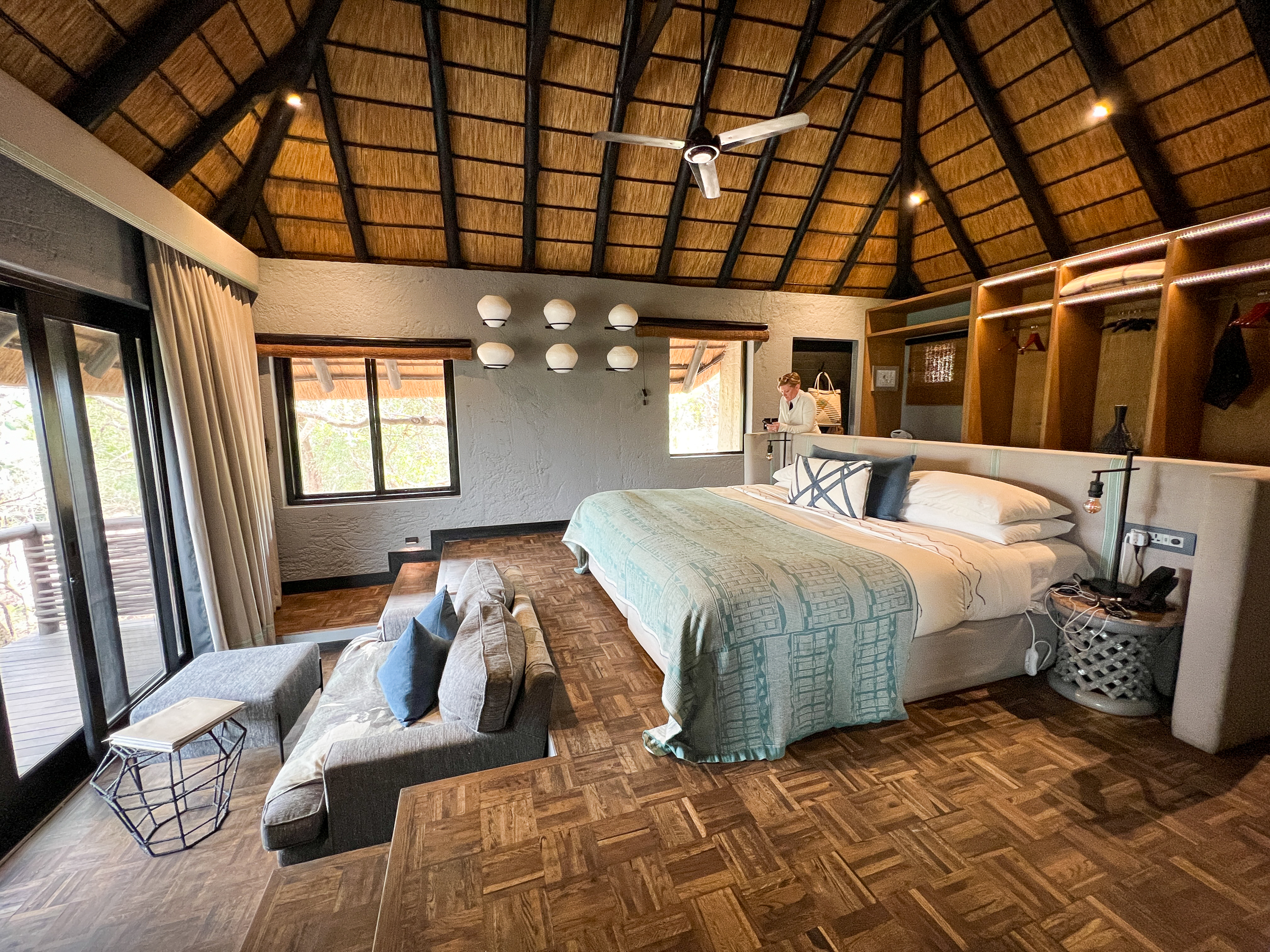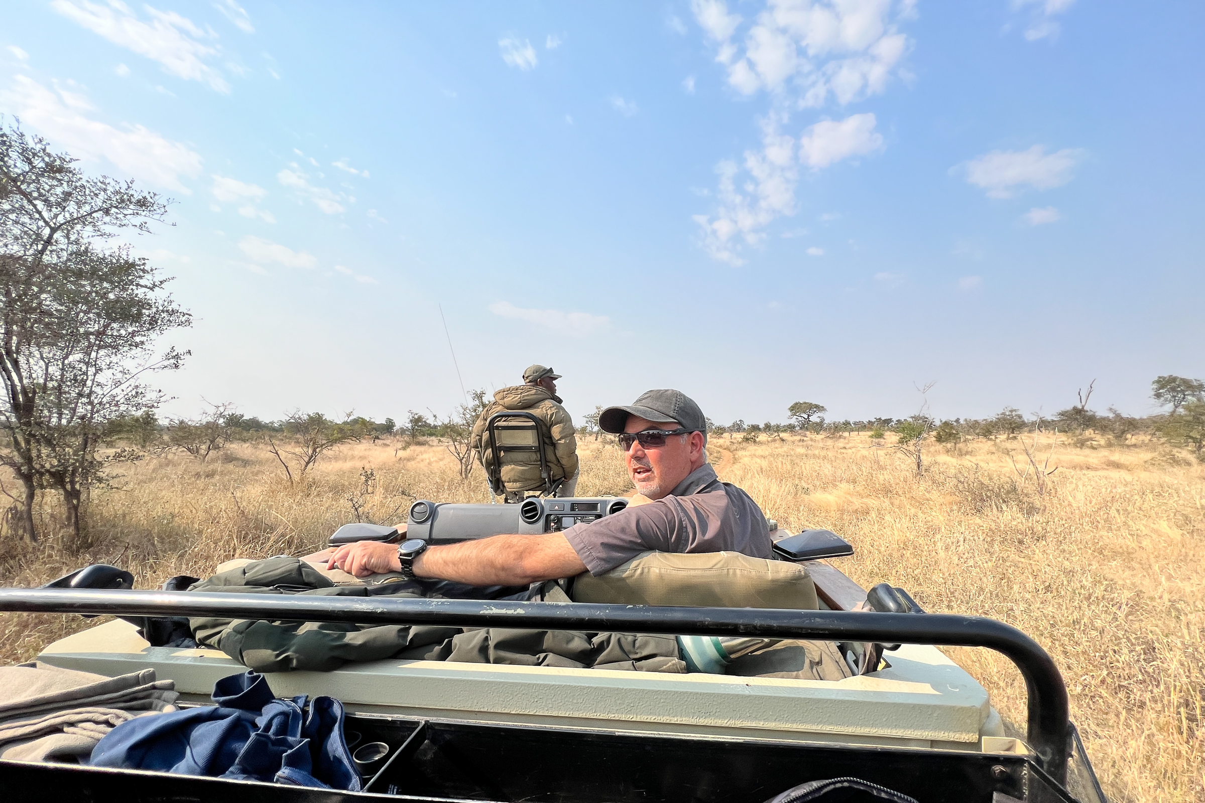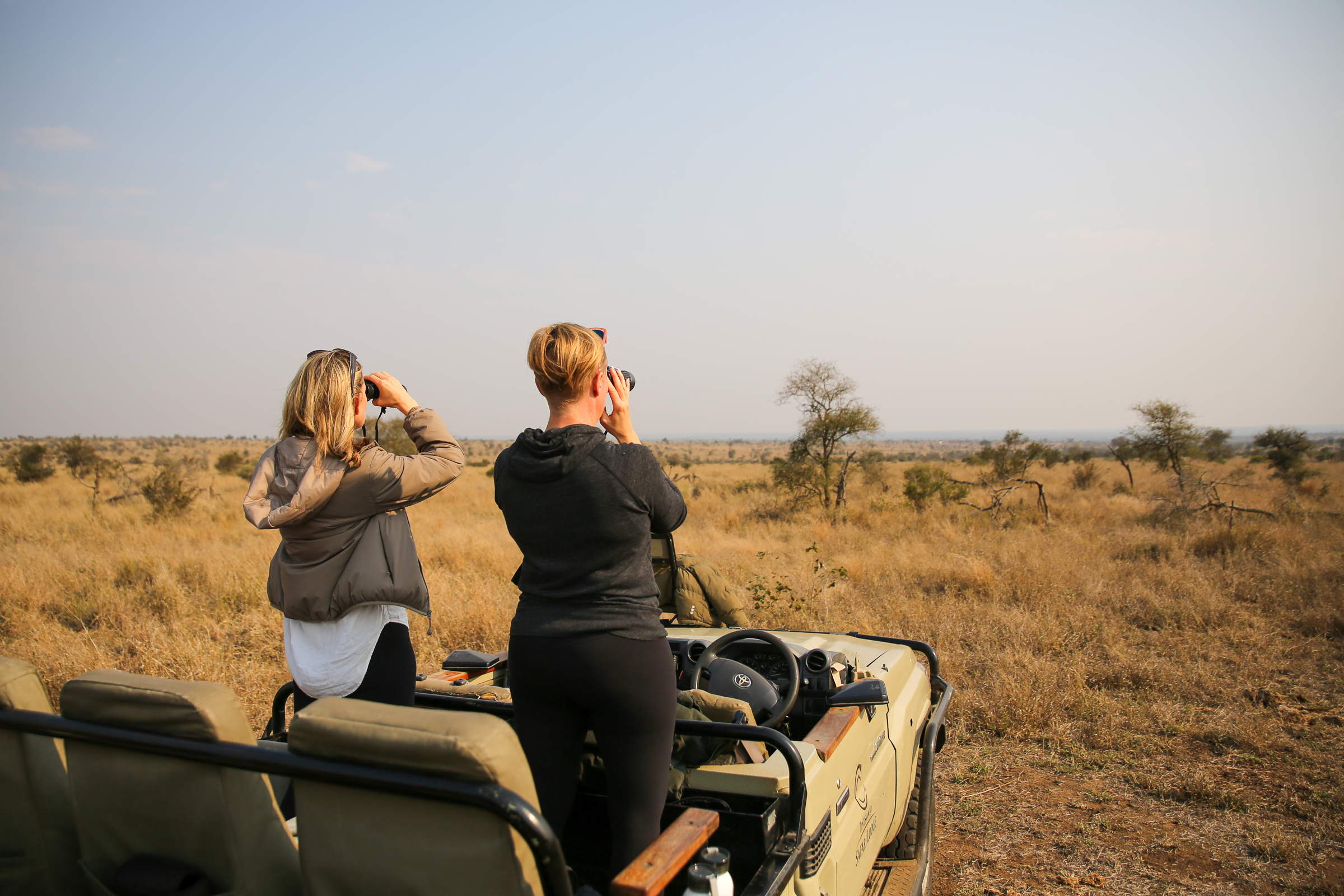 We had a 2.5 hour mid-morning flight from Cape Town up to Kruger International, then after a short wait in the small lounge of the very small airport, we boarded our first “private” plane for a 1 hr+ flight to Phinda Airfield. (Traveling in a group of 9 via a 12-seat airplane meant, in our case, no one else was booked on the flight… hence our “private” plane!) We were picked up right off the tarmac by our guide, Andrew (and tracker Joel) who transferred us to the Lodge in our “private” safari vehicle (again – our group of 9 in a 10-seat vehicle meant it became ours alone!). The lodge was a good 15 minutes away through the bush, so we essentially had our first mini game drive on the way! We didn’t waste any time once at the lodge, we had a quick snack and freshened up before heading out on an afternoon game drive.