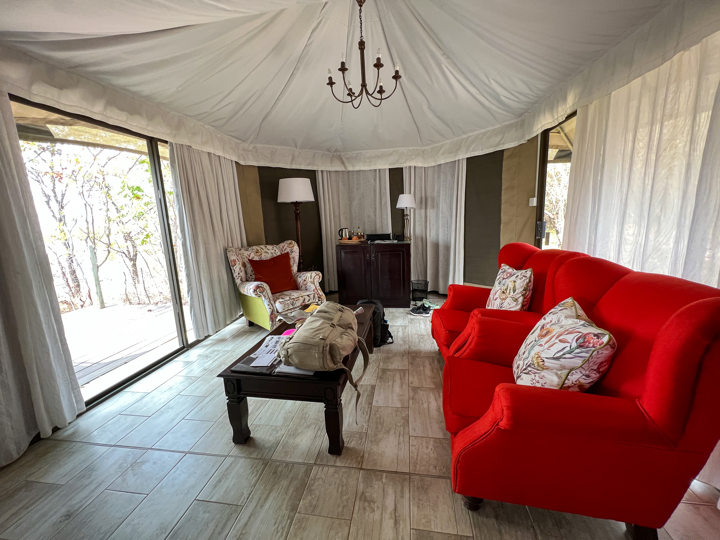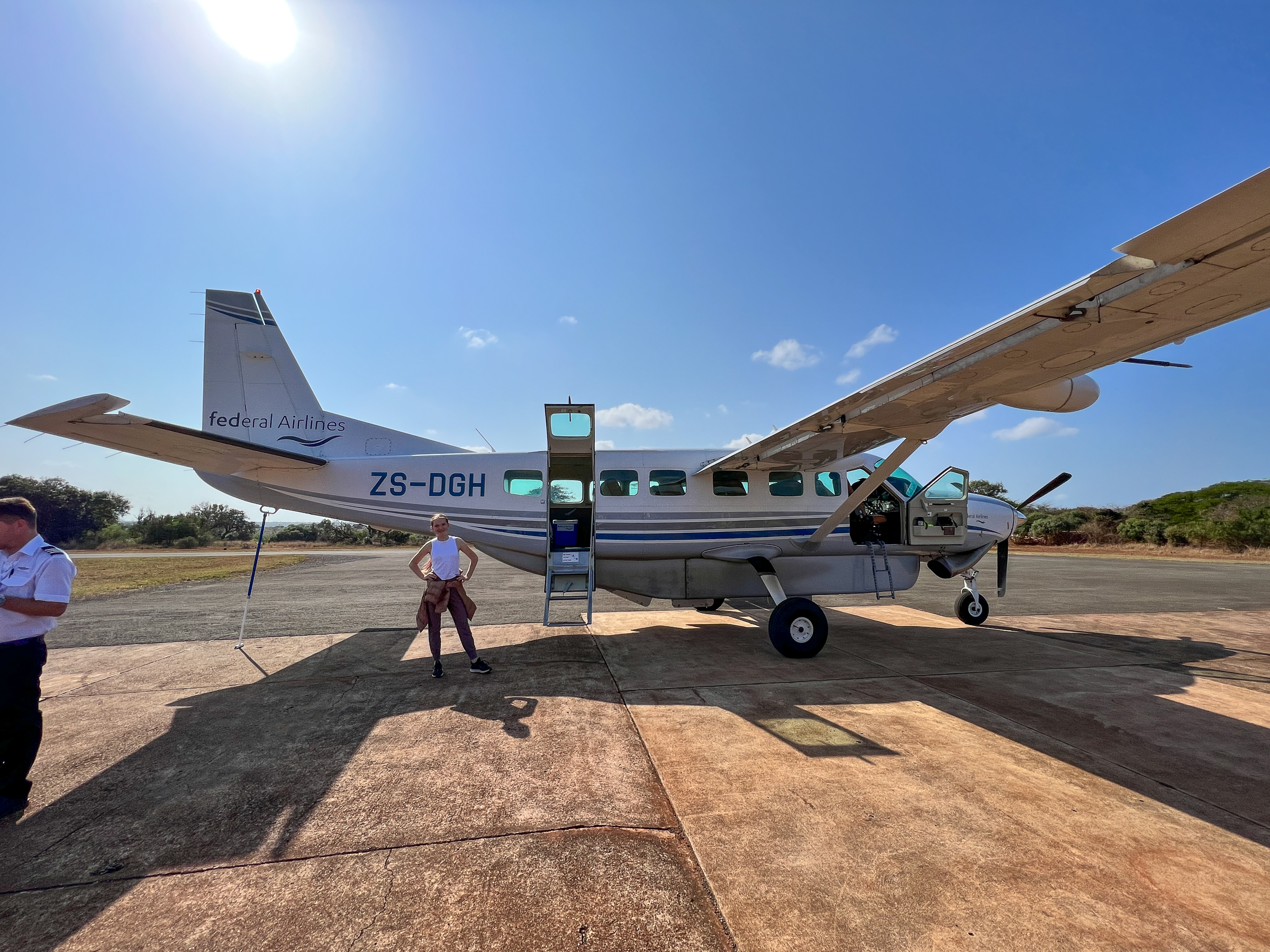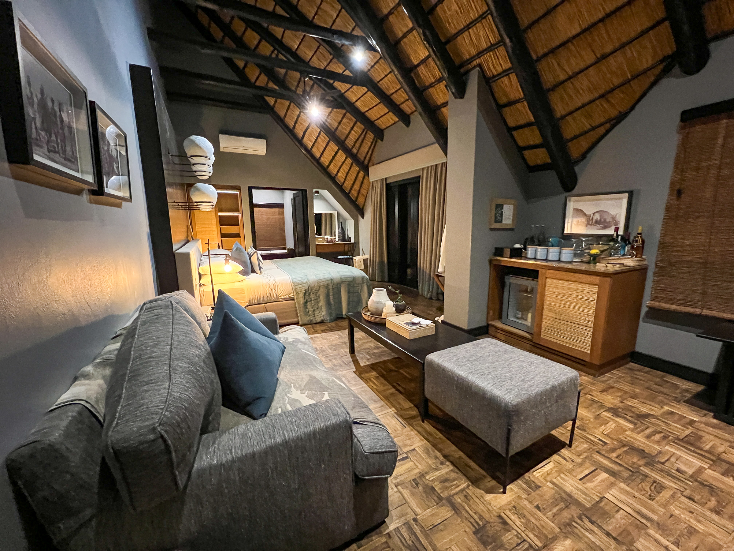 We had a 2.5 hour mid-morning flight from Cape Town up to Kruger International, then after a short wait in the small lounge of the very small airport, we boarded our first “private” plane for a 1 hr+ flight to Phinda Airfield. (Traveling in a group of 9 via a 12-seat airplane meant, in our case, no one else was booked on the flight… hence our “private” plane!) We were picked up right off the tarmac by our guide, Andrew (and tracker Joel) who transferred us to the Lodge in our “private” safari vehicle (again – our group of 9 in a 10-seat vehicle meant it became ours alone!). The lodge was a good 15 minutes away through the bush, so we essentially had our first mini game drive on the way! We didn’t waste any time once at the lodge, we had a quick snack and freshened up before heading out on an afternoon game drive.