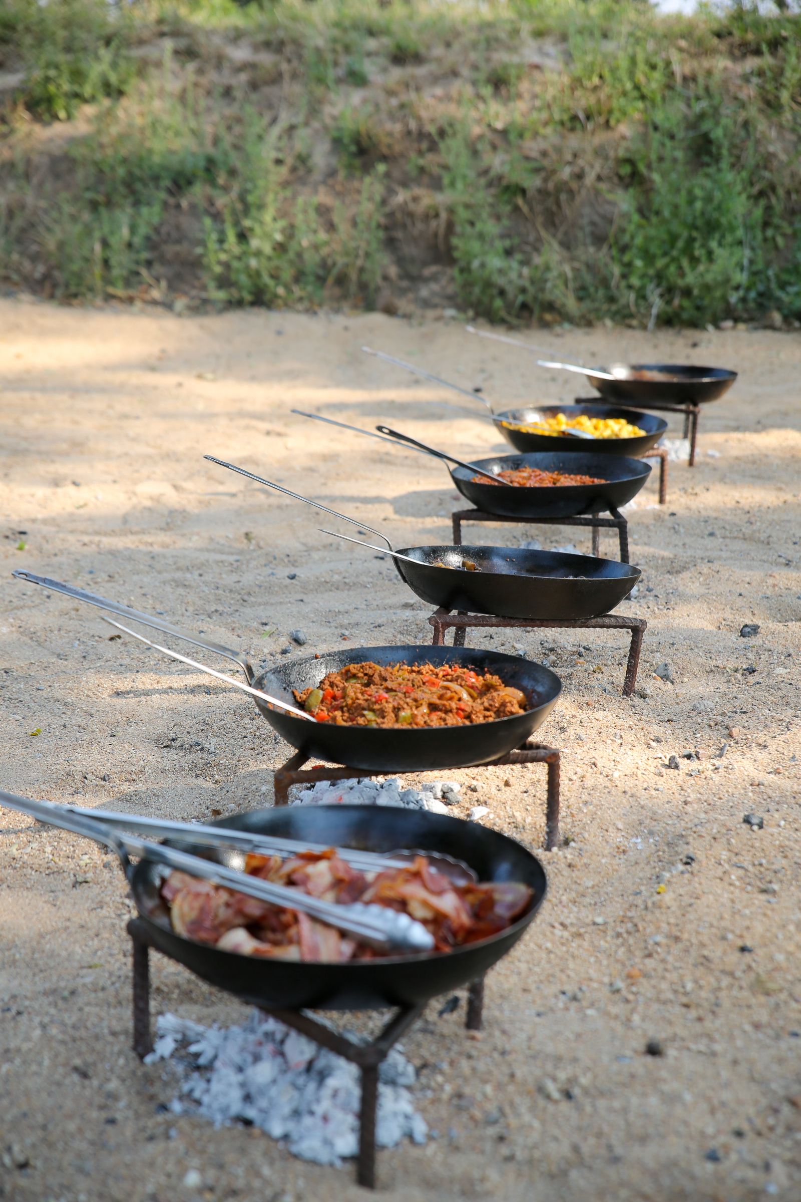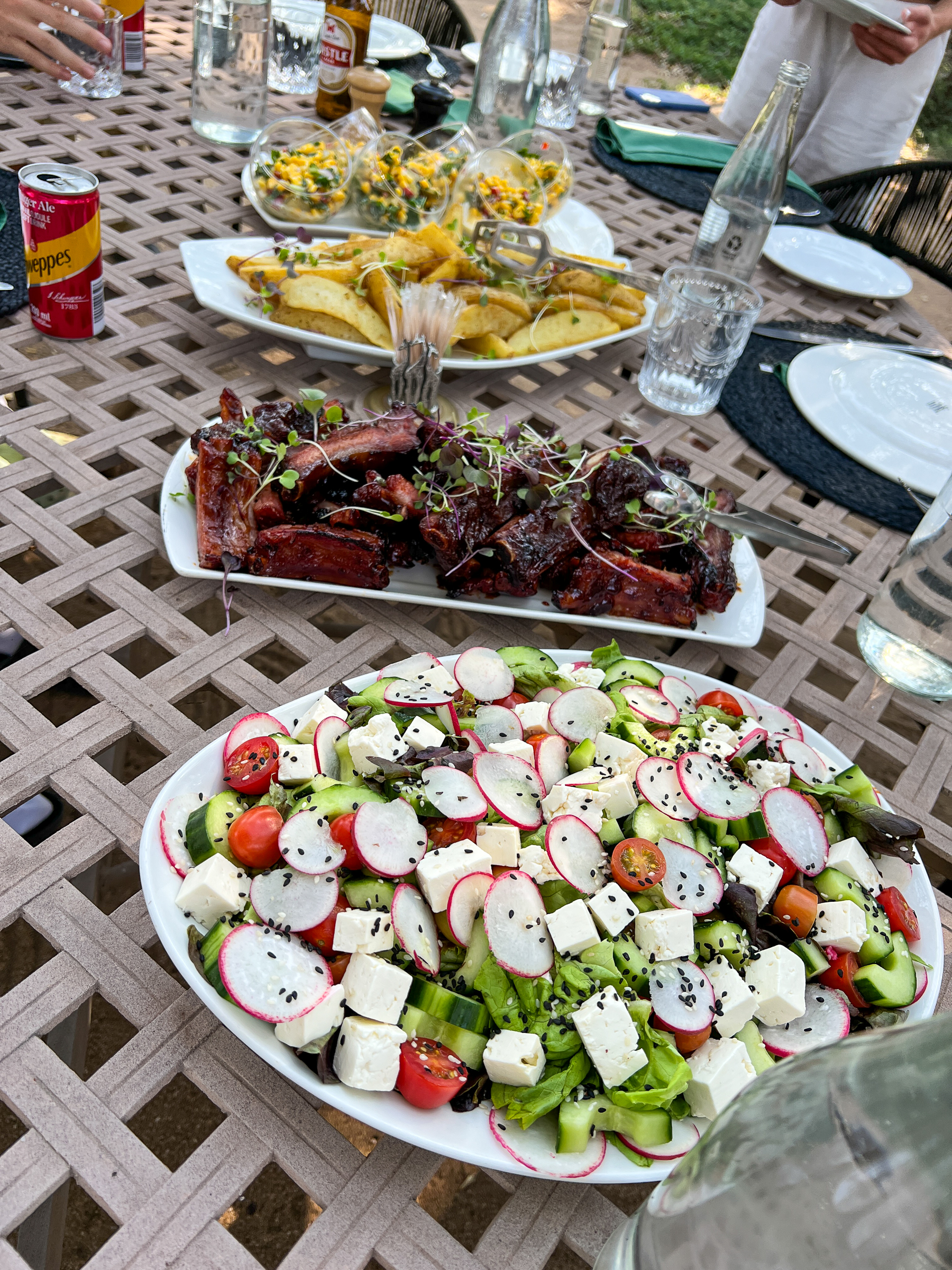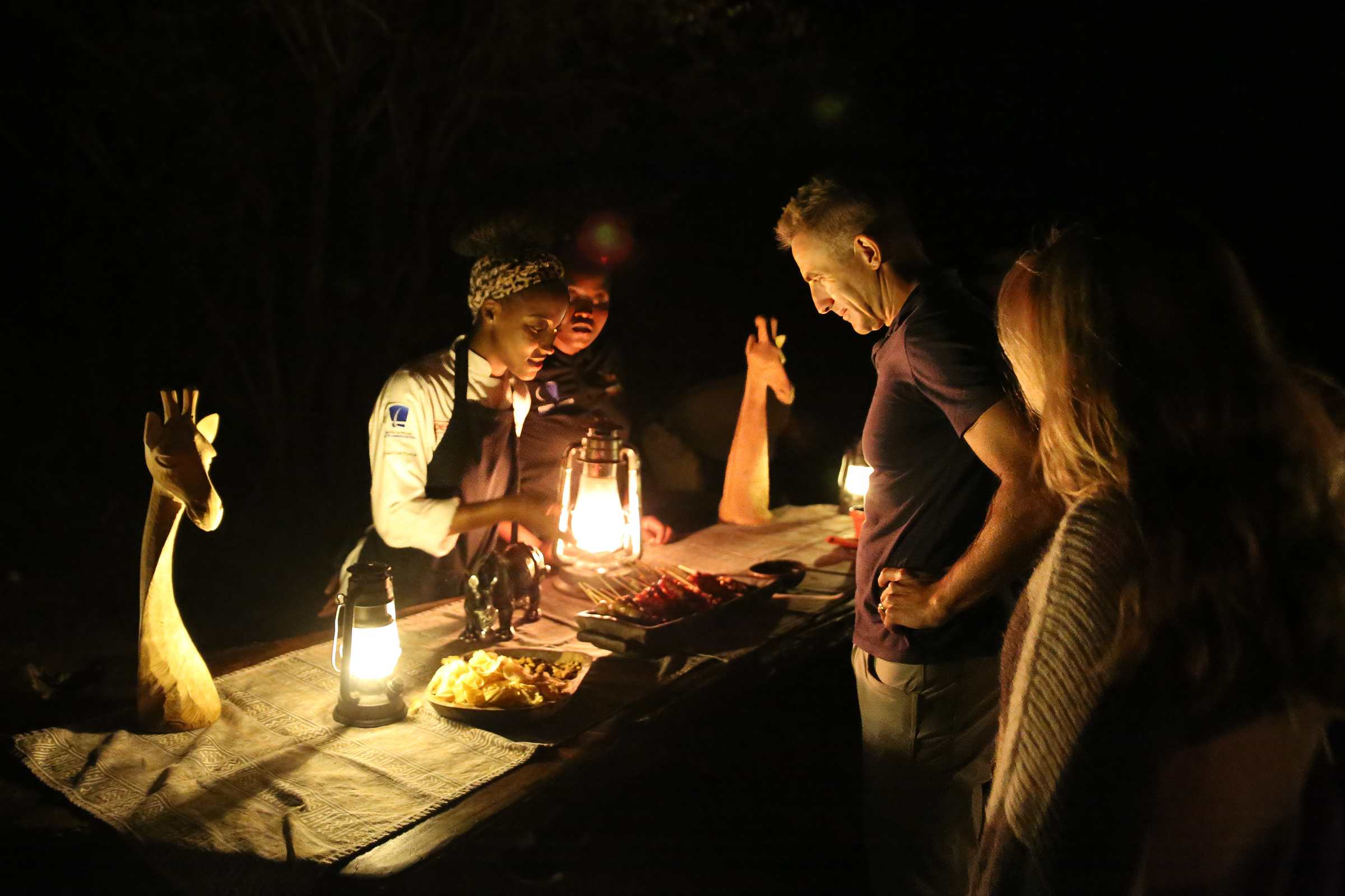 The animals sightings were next level. First day – Leopard cub! Turned out to be one of two cubs, we found them both together the next day. We came across two big prides of lions at different times, each group had distinctive characteristics (one group was like a band of rough-n-ready hooligans and the other were like lion supermodels), both were amazing. We finally found some hyenas too – a small group of them had chased a Leopard (not related to the cubs) up a tree with her kill, we saw her eating her prize and the hyenas would wait down below for bits to drop. Picture a herd of elephants, including some babies, with the sun setting behind in the distance… saw that! Lions walking single file on their way to set up for a hunt… we were there! Two cheetahs making a kill and eating it in front of us… you bet! Our guides could even find a chameleon in a tree, in the dark – pretty much every night. Unreal.