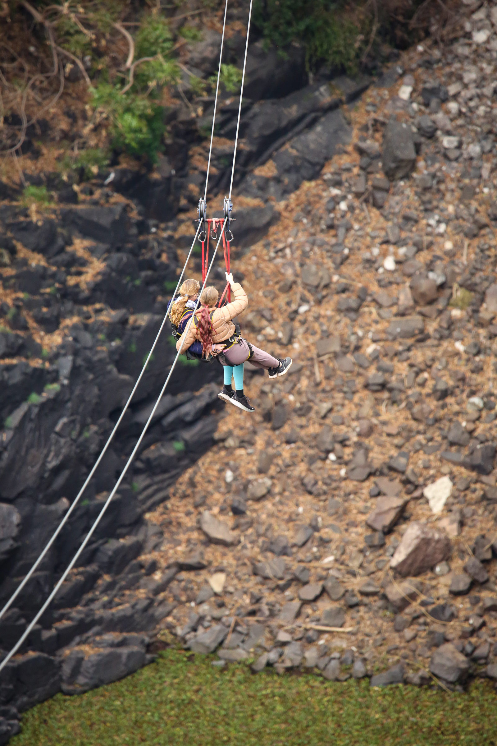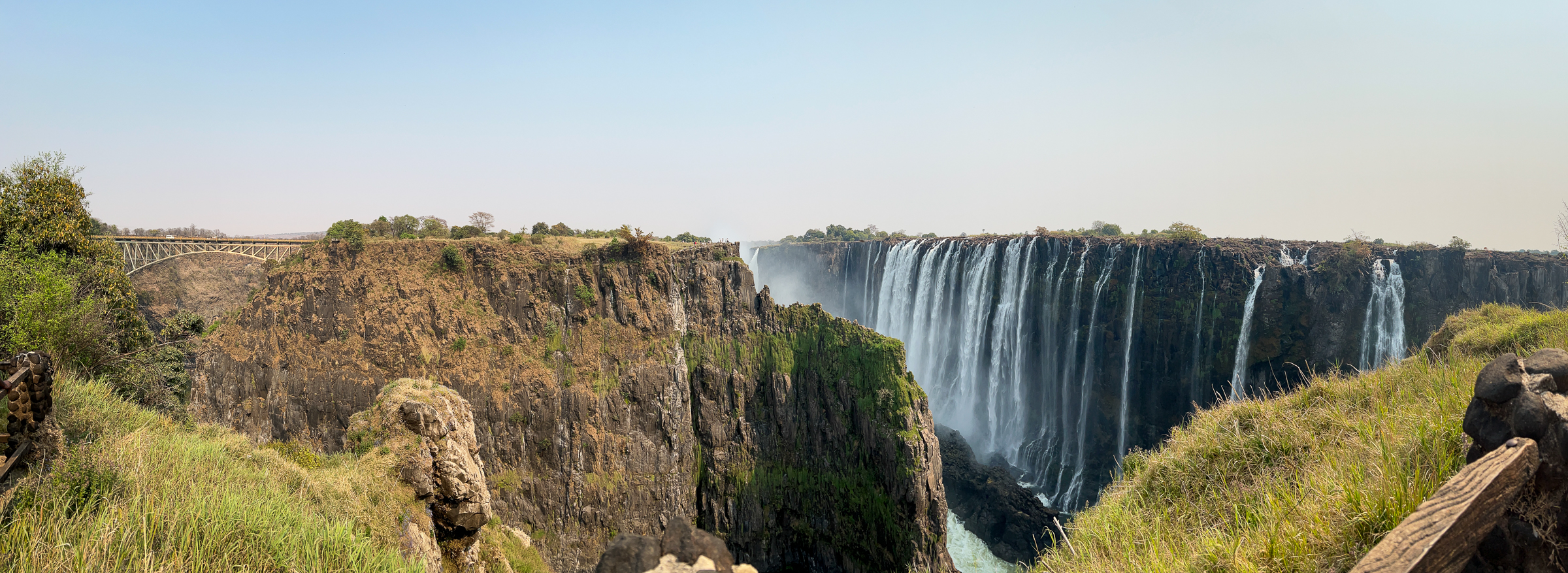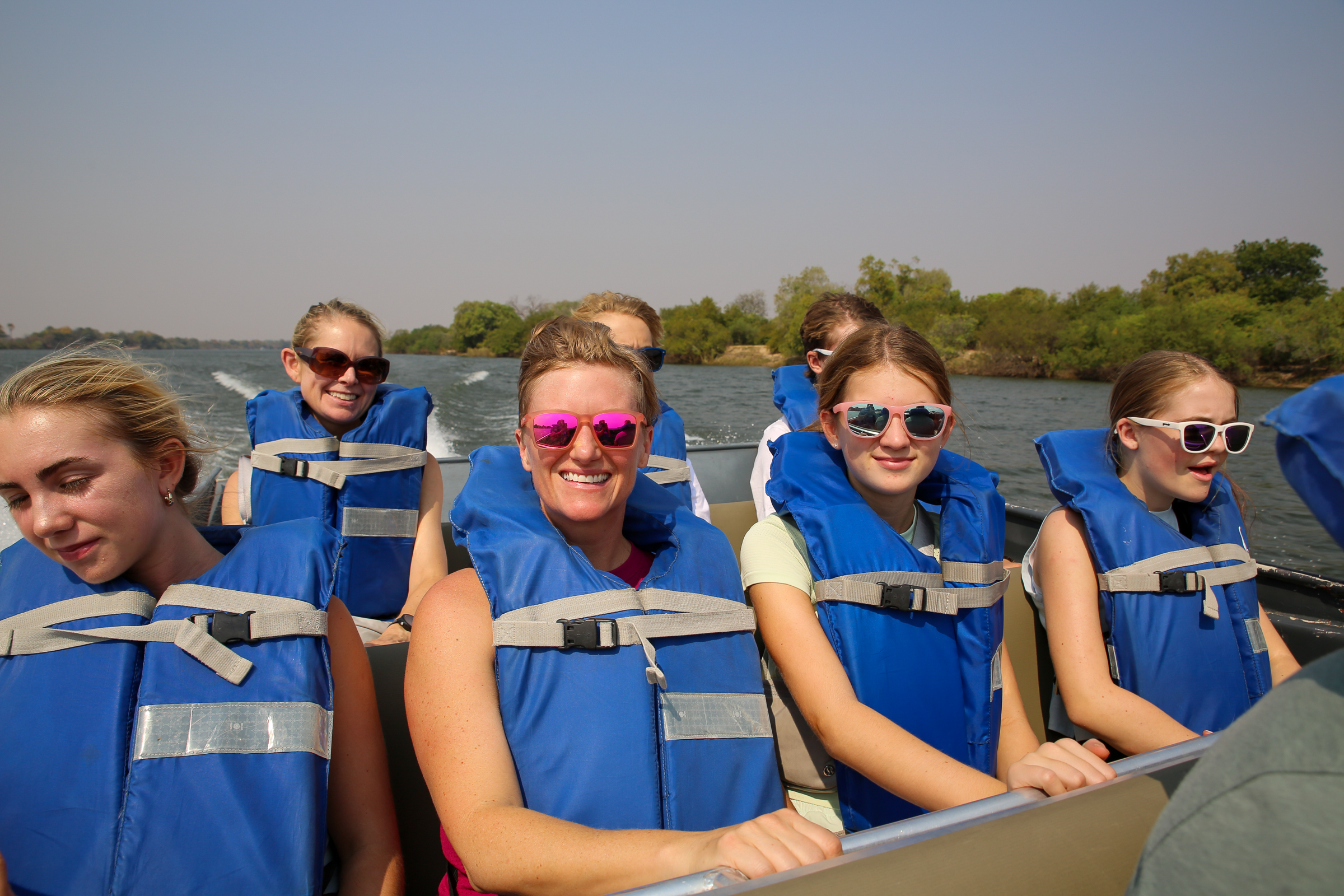 Alas, on day 18 of our vacation (a Thursday), we had to move on to yet another destination. We arrived at the penultimate stop of our African vacation, Avani resort at Victoria Falls in Zambia (after another “private” plane ride back to Kruger then a boring regular plane north to Livingstone, plus a 20 minute drive to the resort). Avani was decent – we knew Phinda and Tintswalo would be the highlights of the trip – everything from here on out was gravy. We wanted to tick the box and see Victoria Falls, so we walked over right after we arrived at the resort and dropped our bags in our rooms. It didn’t disappoint; it was pretty amazing at sunset, even if it wasn’t in full flow this time of year! The next day we adventured around in the area; the boys went quadding, the girls went shopping in nearby Livingstone, then we went on a jet boat ride up the river (through rapids, too!) to the Elephant Cafe to feed some of the gentle giants. We squeezed in a zip line at the Victoria Falls bridge, too – Ryley and Isla got to go tandem, which was pretty cool!