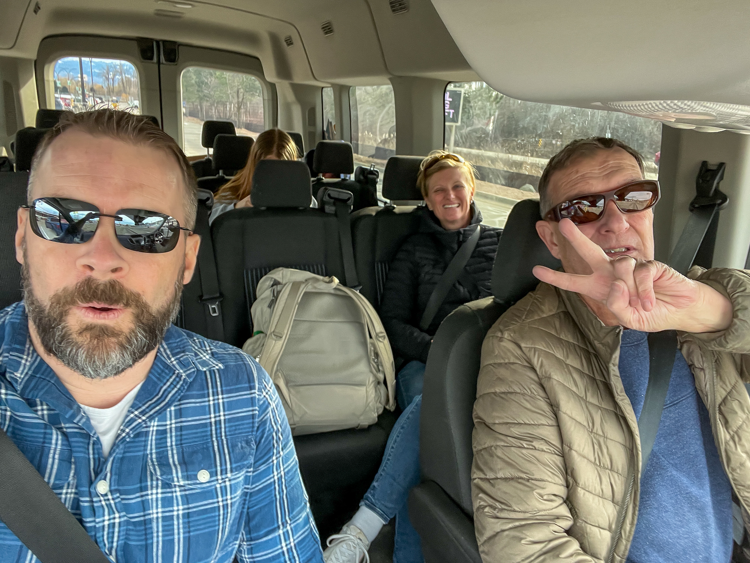 Our usual driver Russ brought us up from town after we had done some shopping – and not just groceries! Ryley needed a prom dress, and luckily was able to find one she liked in short order (phew!). We were happy to see there was more snow on the ground on the side of the road than last year, so we were optimistic about the conditions – this time of year is a bit of a gamble, though we usually get lucky and have at least some new snow while there!