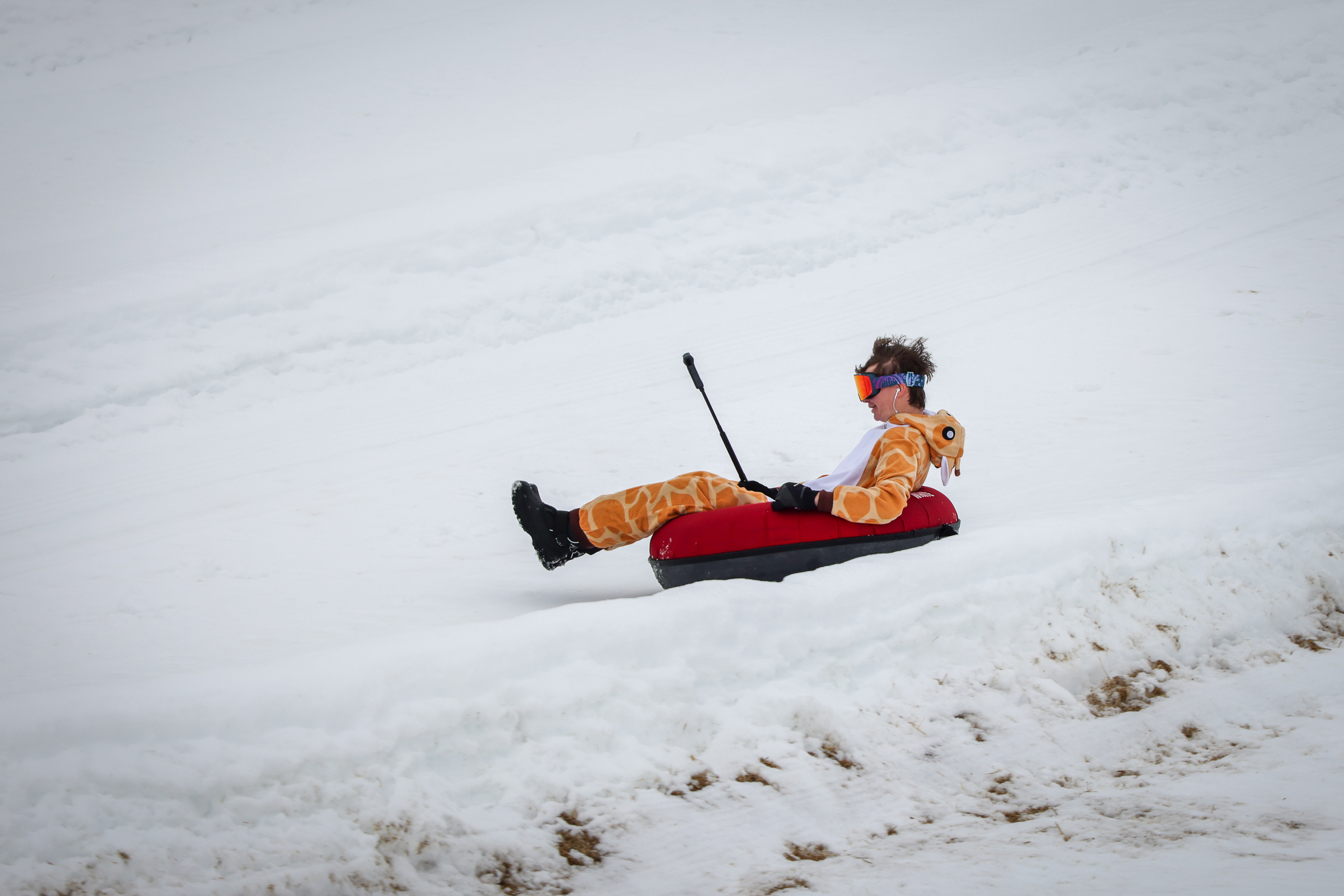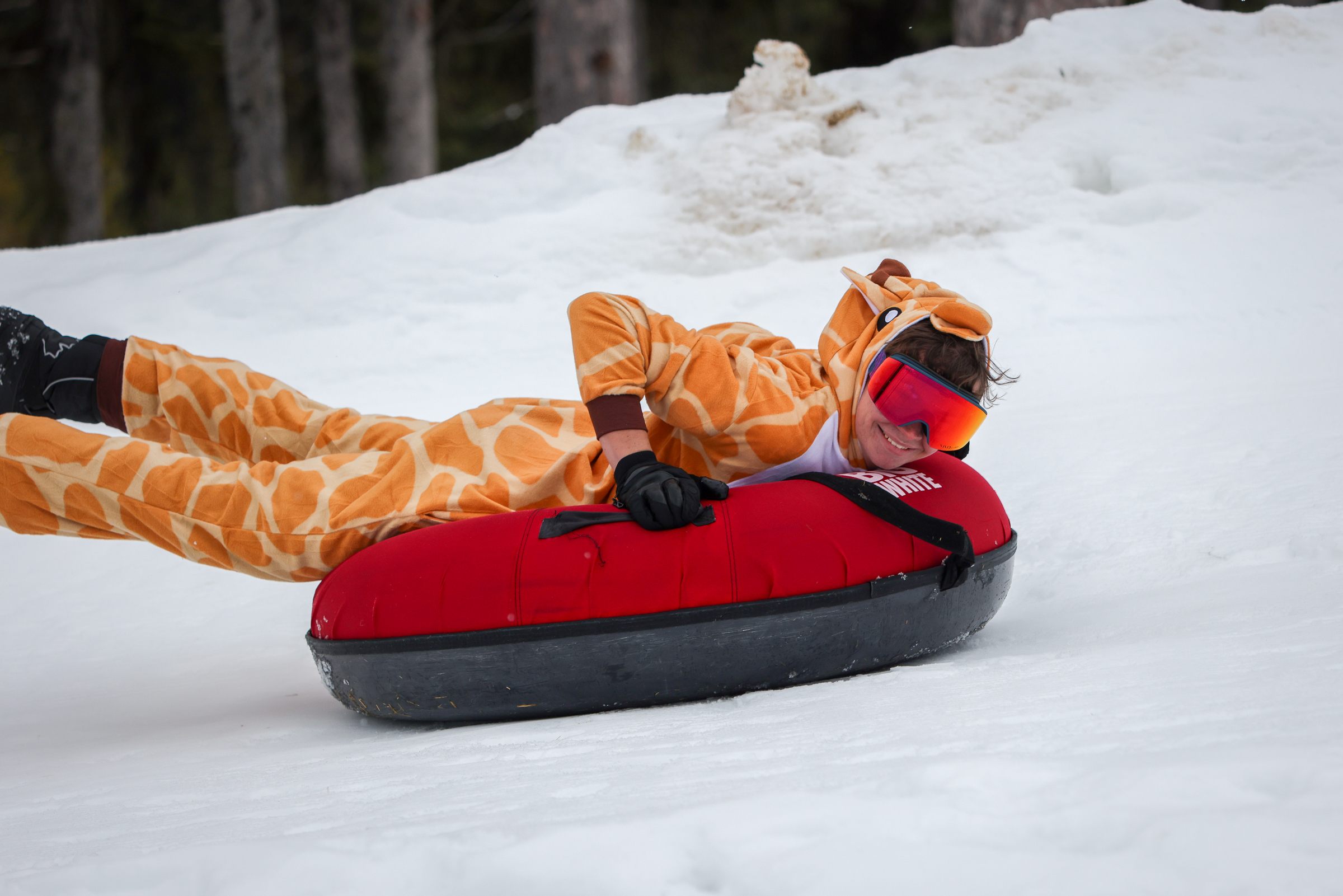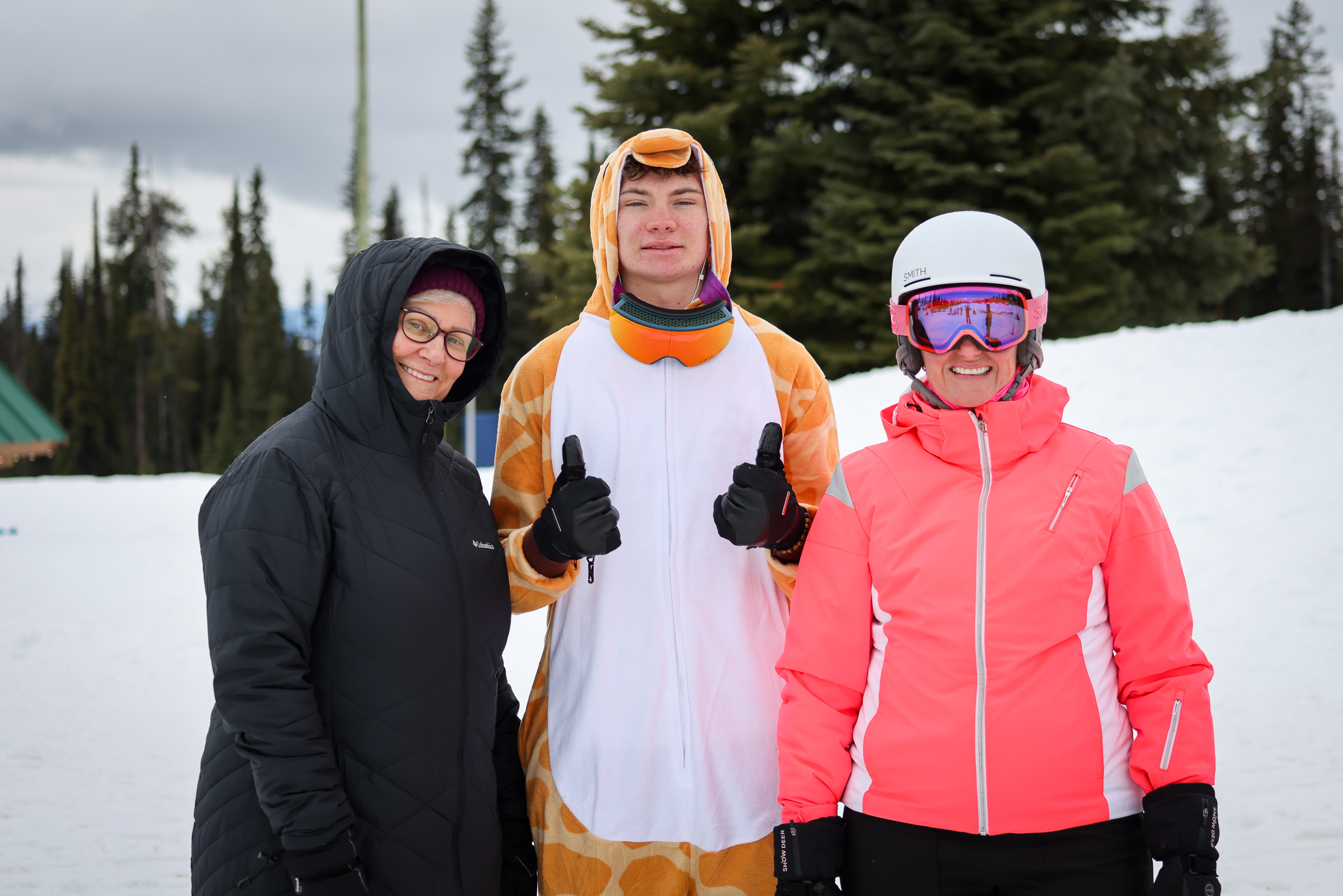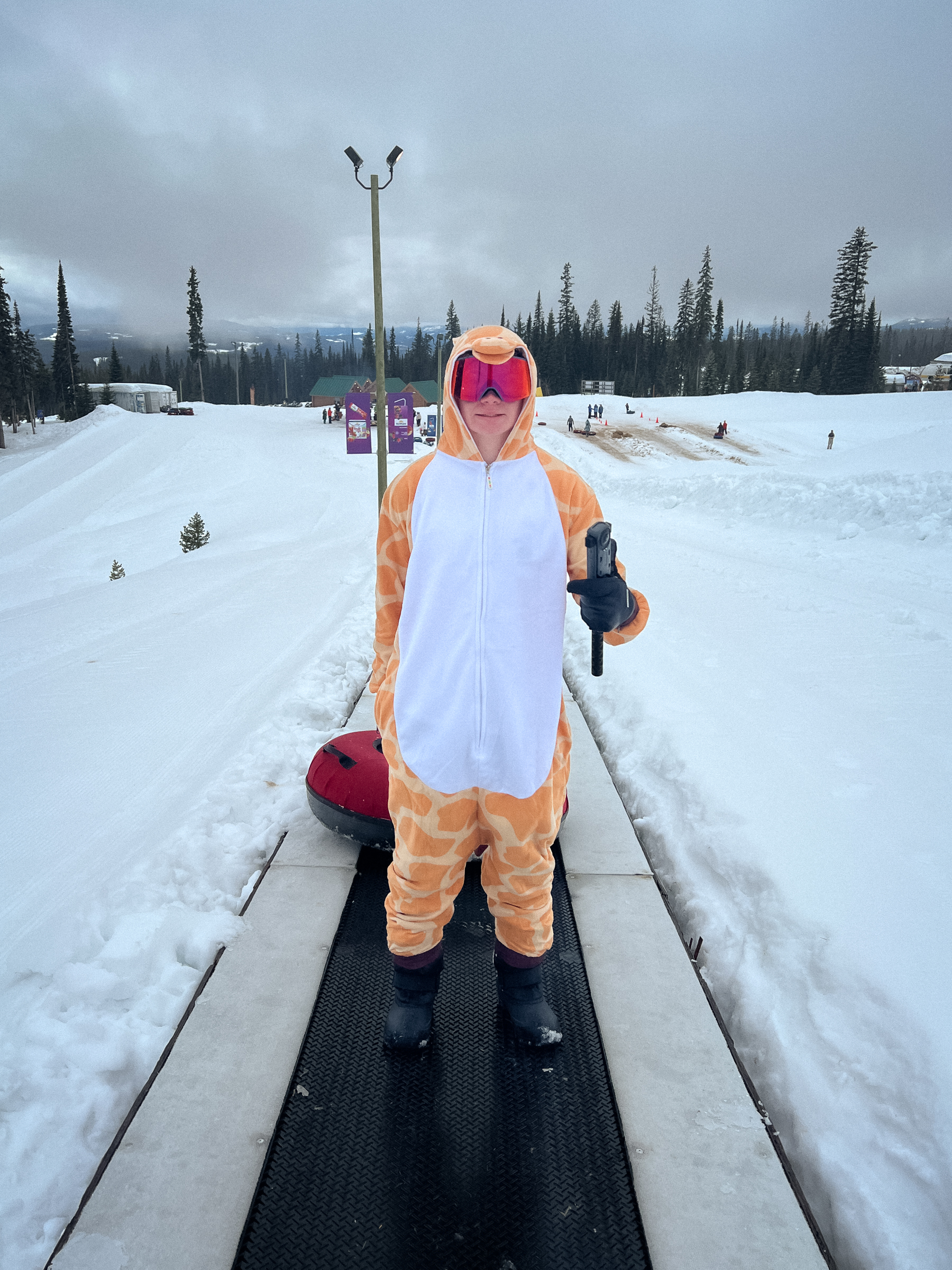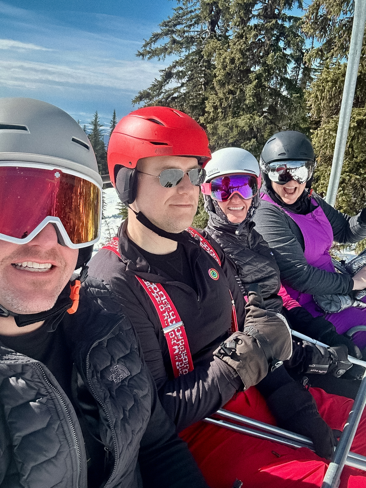 Again, we ticked all the usual boxes – Easter egg hunt, lots of great meals, Josh making churros, making puzzles, tubing in Happy Valley… and we added a few new ones, like attending the last Quiz Night of the season (we didn’t win 🙁 ), having a few apres ski sessions at the Woods pub in the village, and we managed to visit a bit with a few friends we don’t normally see like the Matthews, Suzy & Jim, the Orchards, and the Carrs (all have a current or former connection to Bermuda). Some of us also skiied in a few areas we hadn’t before, like the Cliff and a secret spot with a beer can Christmas tree… Jenn also mixed it up a bit with a few sessions of cross-country skiing to keep her fitness up for an upcoming trip to Japan! One other fun addition was that we wore some silly costumes on the ski hill for a day, it was dino-mite! 😉
