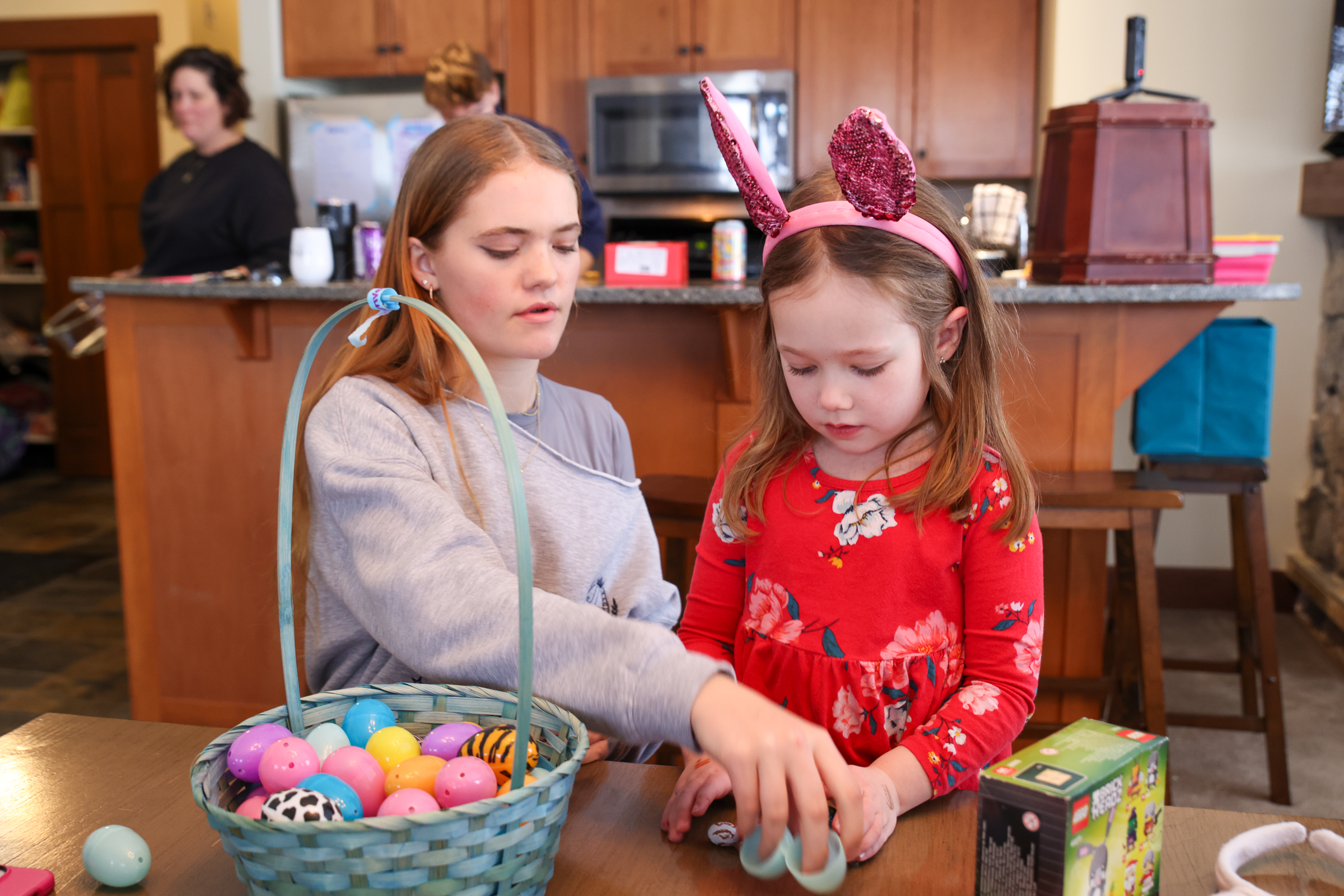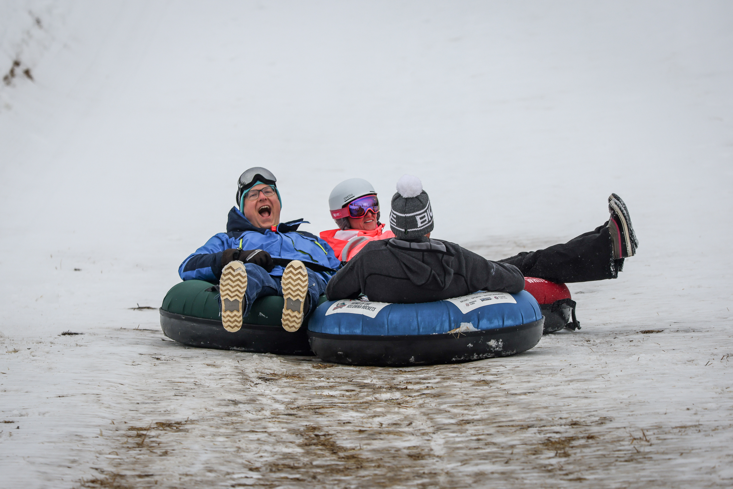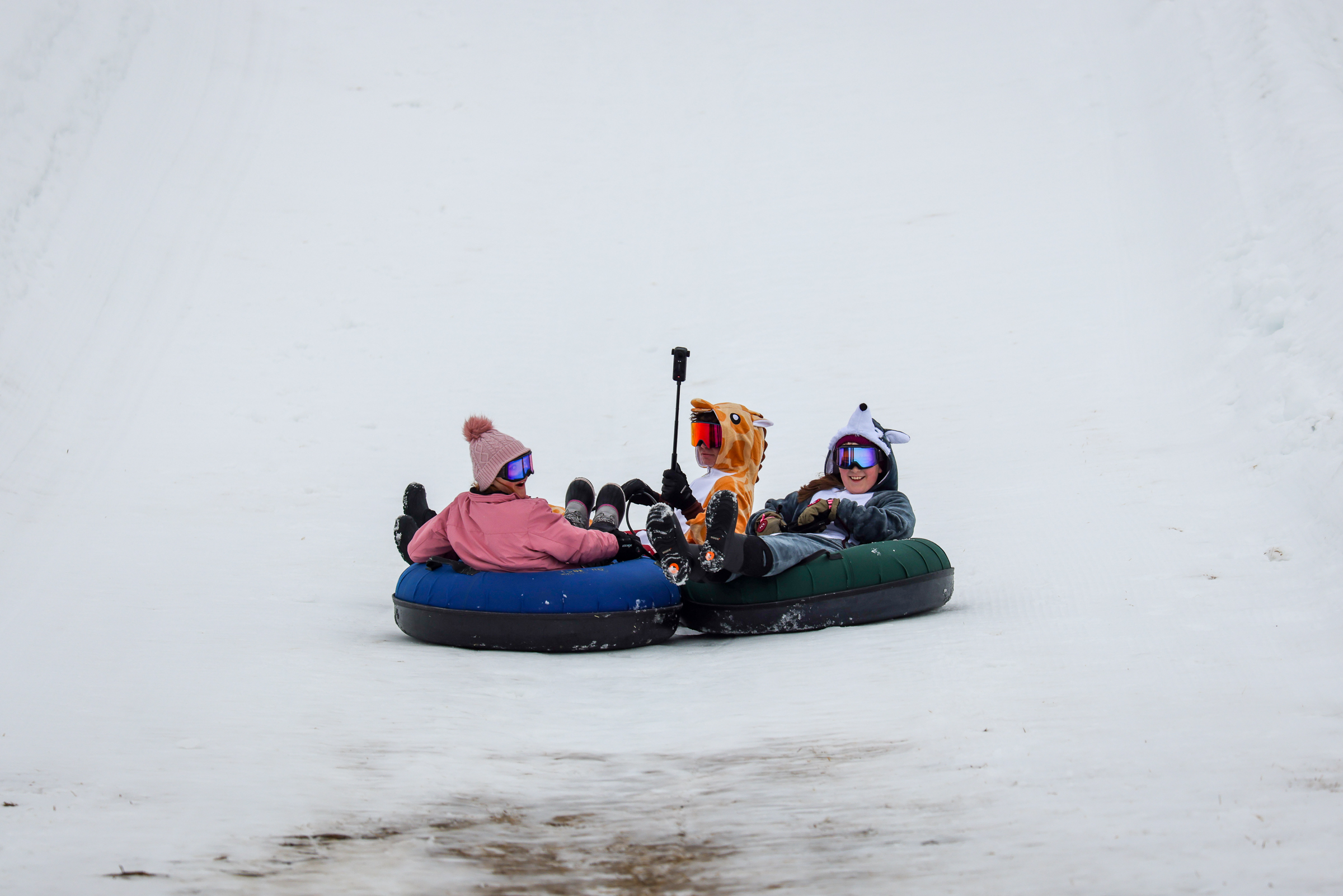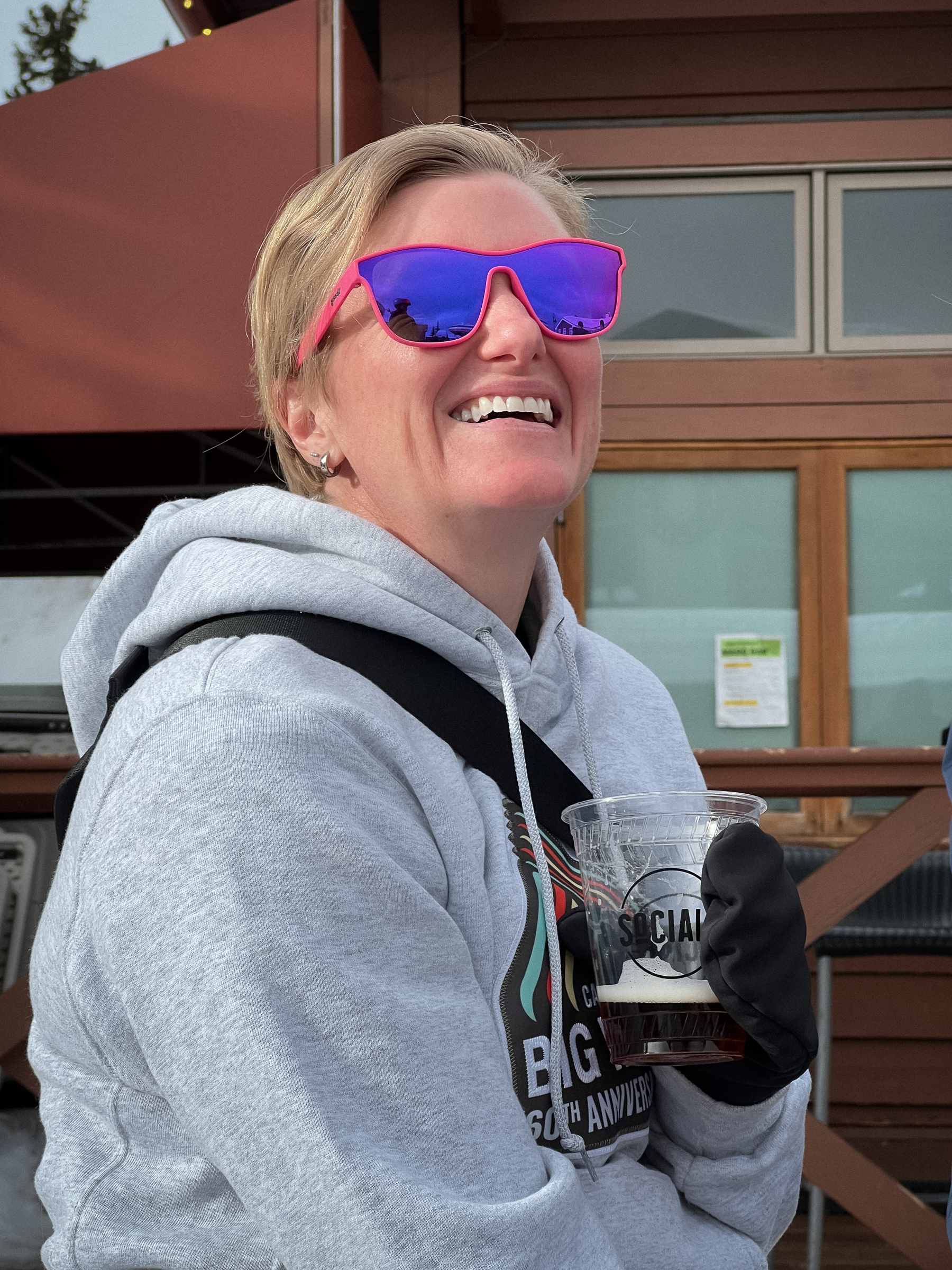 Again, we ticked all the usual boxes – Easter egg hunt, lots of great meals, Josh making churros, making puzzles, tubing in Happy Valley… and we added a few new ones, like attending the last Quiz Night of the season (we didn’t win 🙁 ), having a few apres ski sessions at the Woods pub in the village, and we managed to visit a bit with a few friends we don’t normally see like the Matthews, Suzy & Jim, the Orchards, and the Carrs (all have a current or former connection to Bermuda). Some of us also skiied in a few areas we hadn’t before, like the Cliff and a secret spot with a beer can Christmas tree… Jenn also mixed it up a bit with a few sessions of cross-country skiing to keep her fitness up for an upcoming trip to Japan! One other fun addition was that we wore some silly costumes on the ski hill for a day, it was dino-mite! 😉