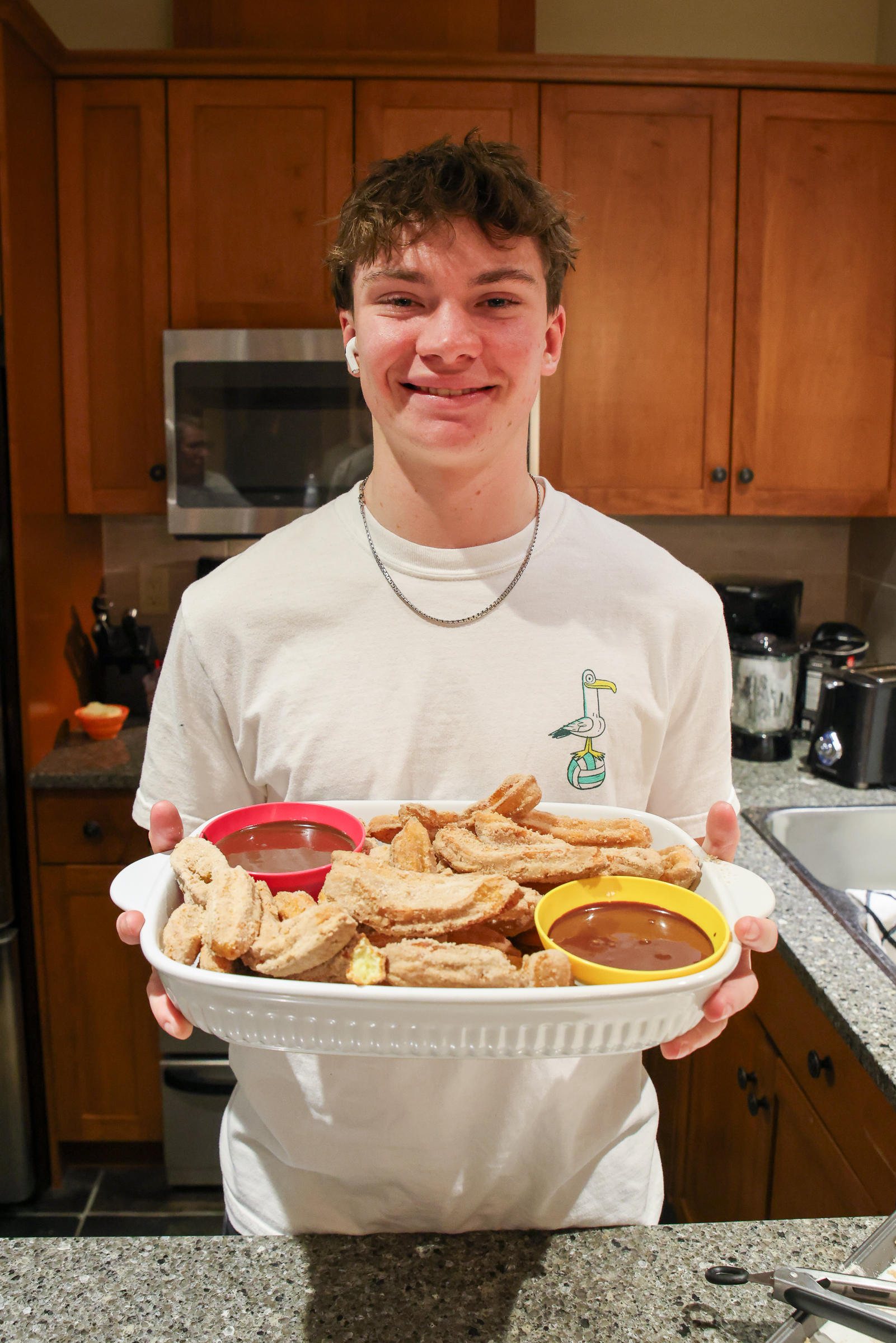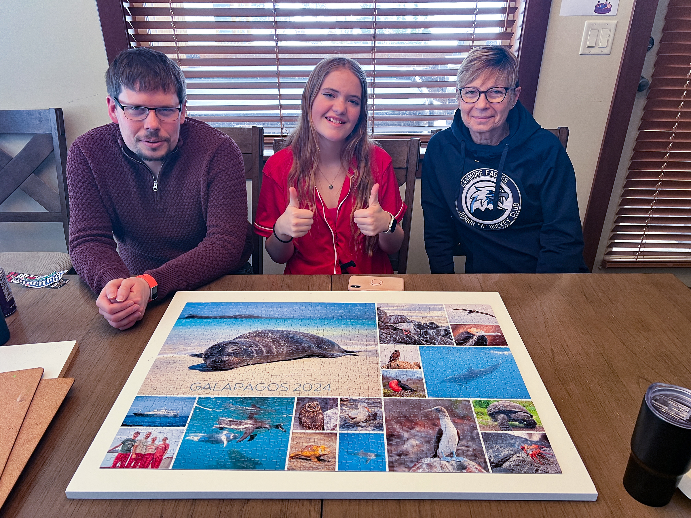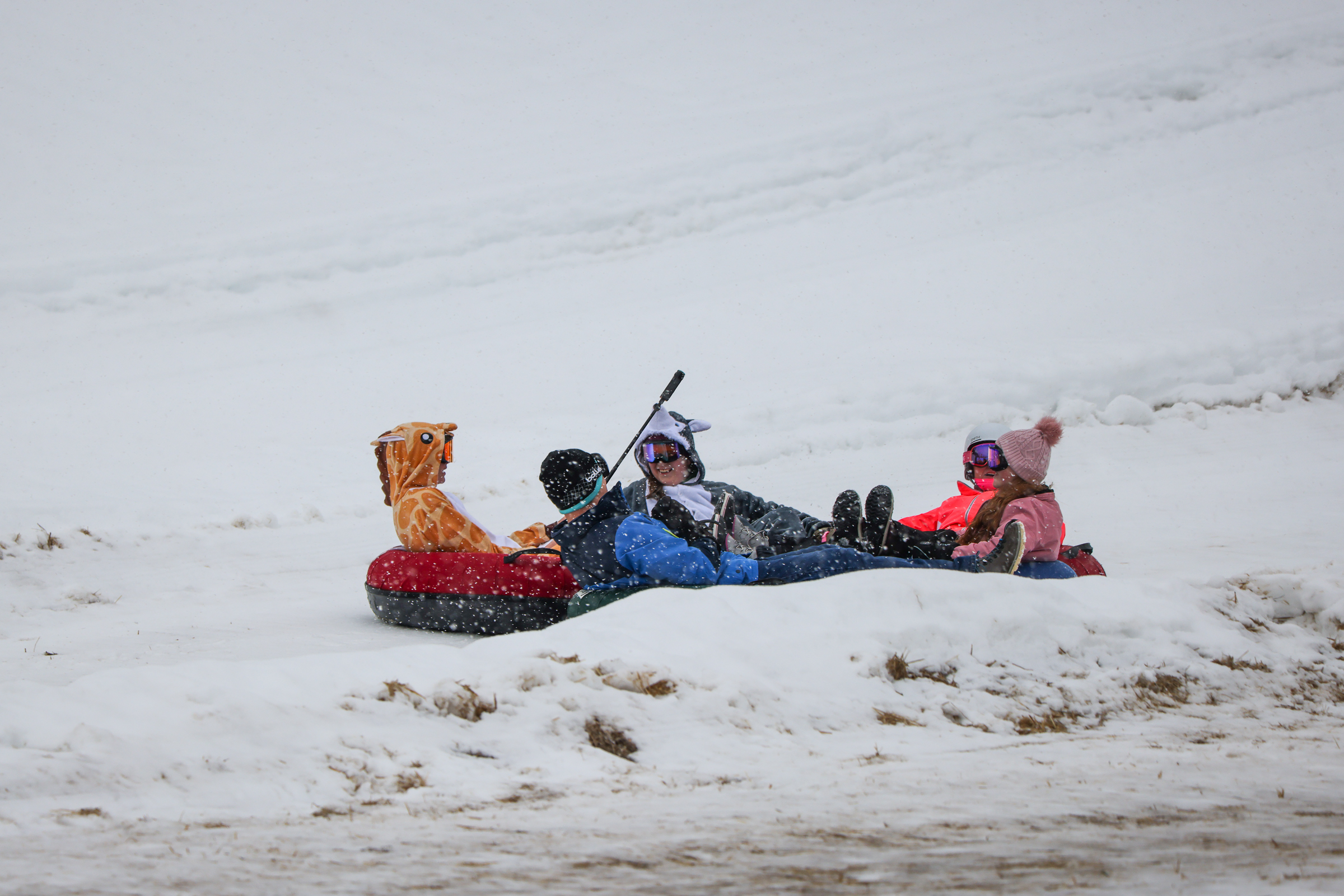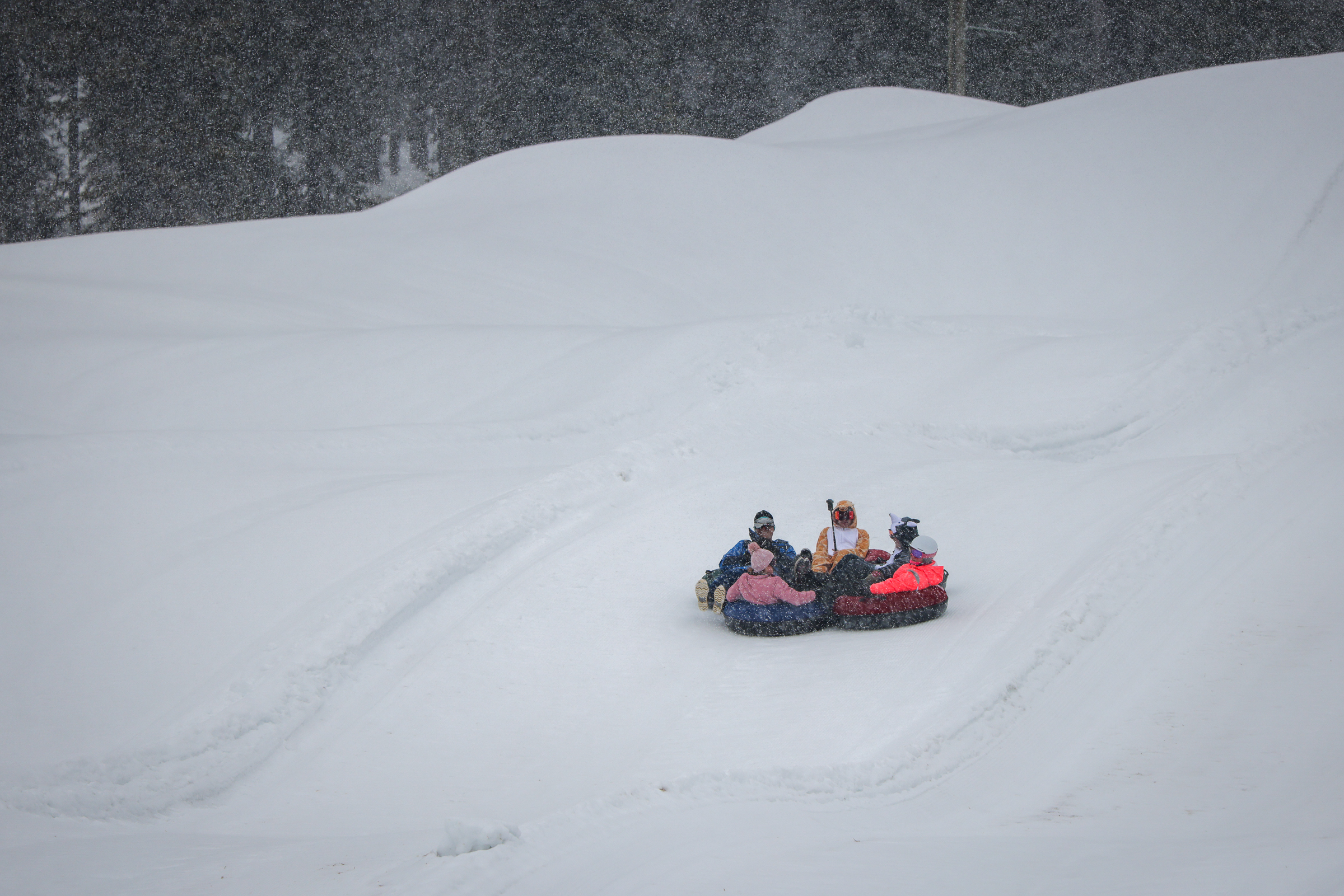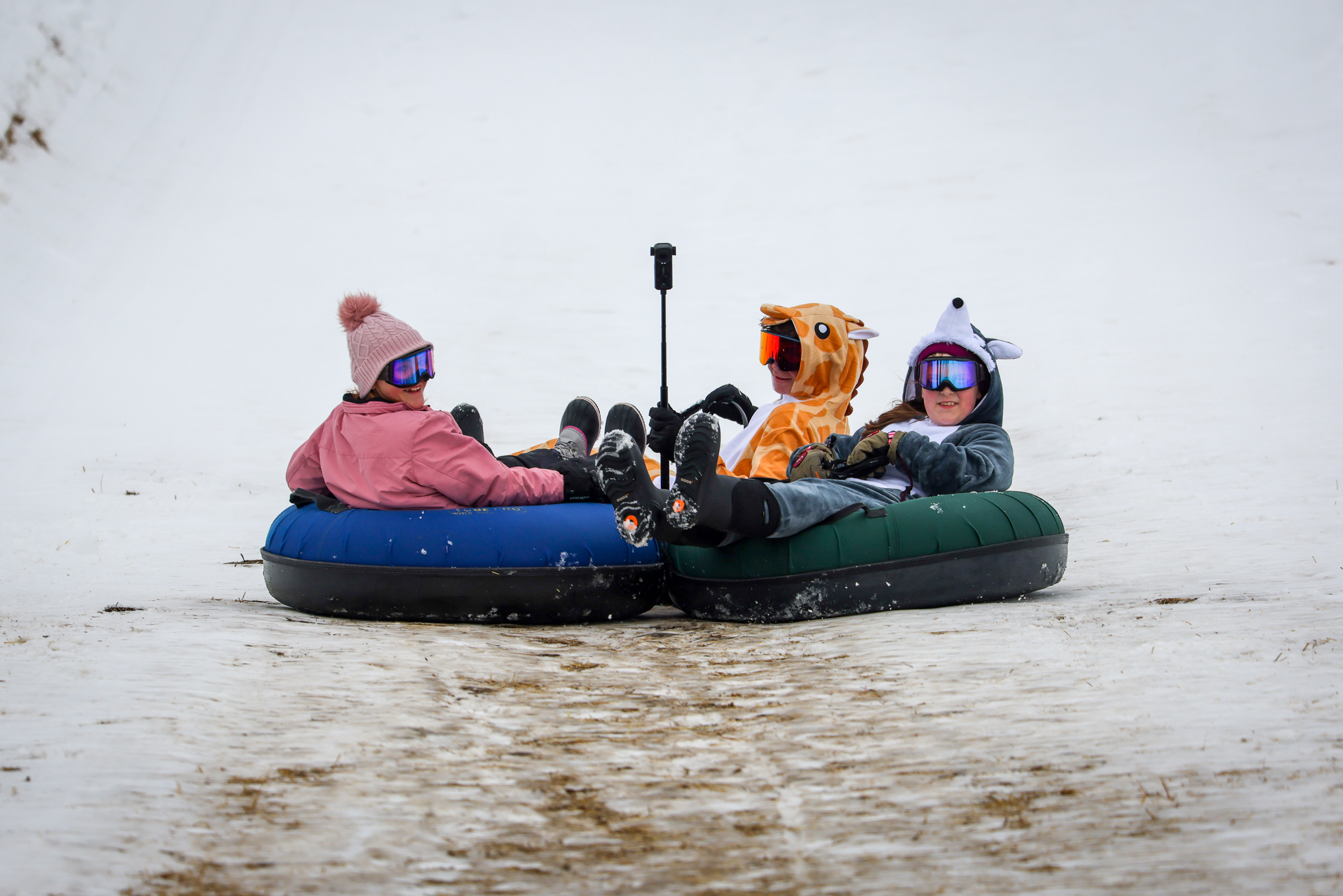 Again, we ticked all the usual boxes – Easter egg hunt, lots of great meals, Josh making churros, making puzzles, tubing in Happy Valley… and we added a few new ones, like attending the last Quiz Night of the season (we didn’t win 🙁 ), having a few apres ski sessions at the Woods pub in the village, and we managed to visit a bit with a few friends we don’t normally see like the Matthews, Suzy & Jim, the Orchards, and the Carrs (all have a current or former connection to Bermuda). Some of us also skiied in a few areas we hadn’t before, like the Cliff and a secret spot with a beer can Christmas tree… Jenn also mixed it up a bit with a few sessions of cross-country skiing to keep her fitness up for an upcoming trip to Japan! One other fun addition was that we wore some silly costumes on the ski hill for a day, it was dino-mite! 😉