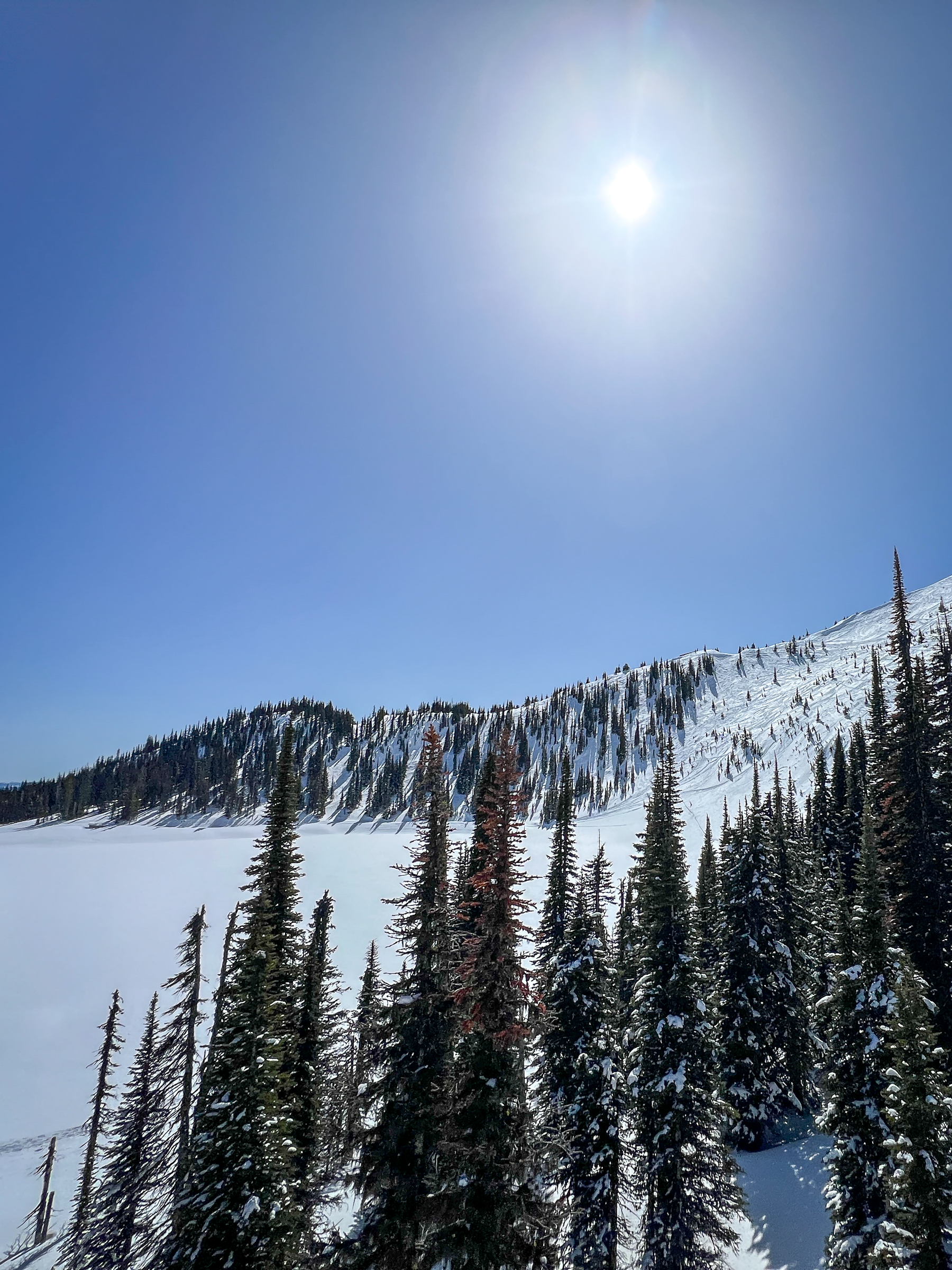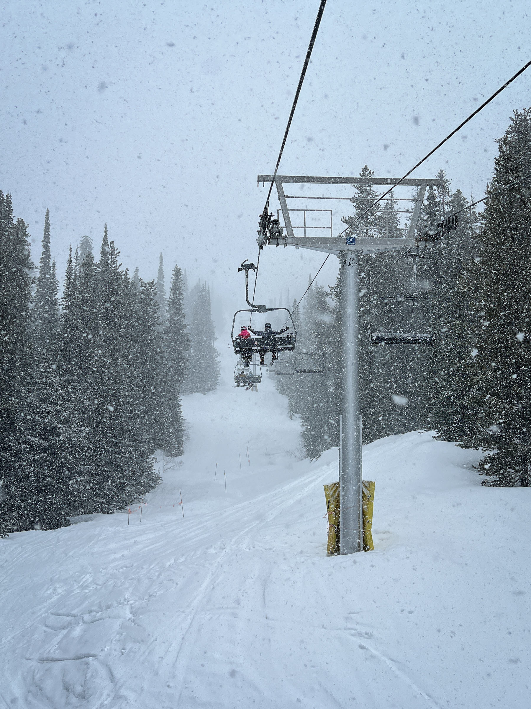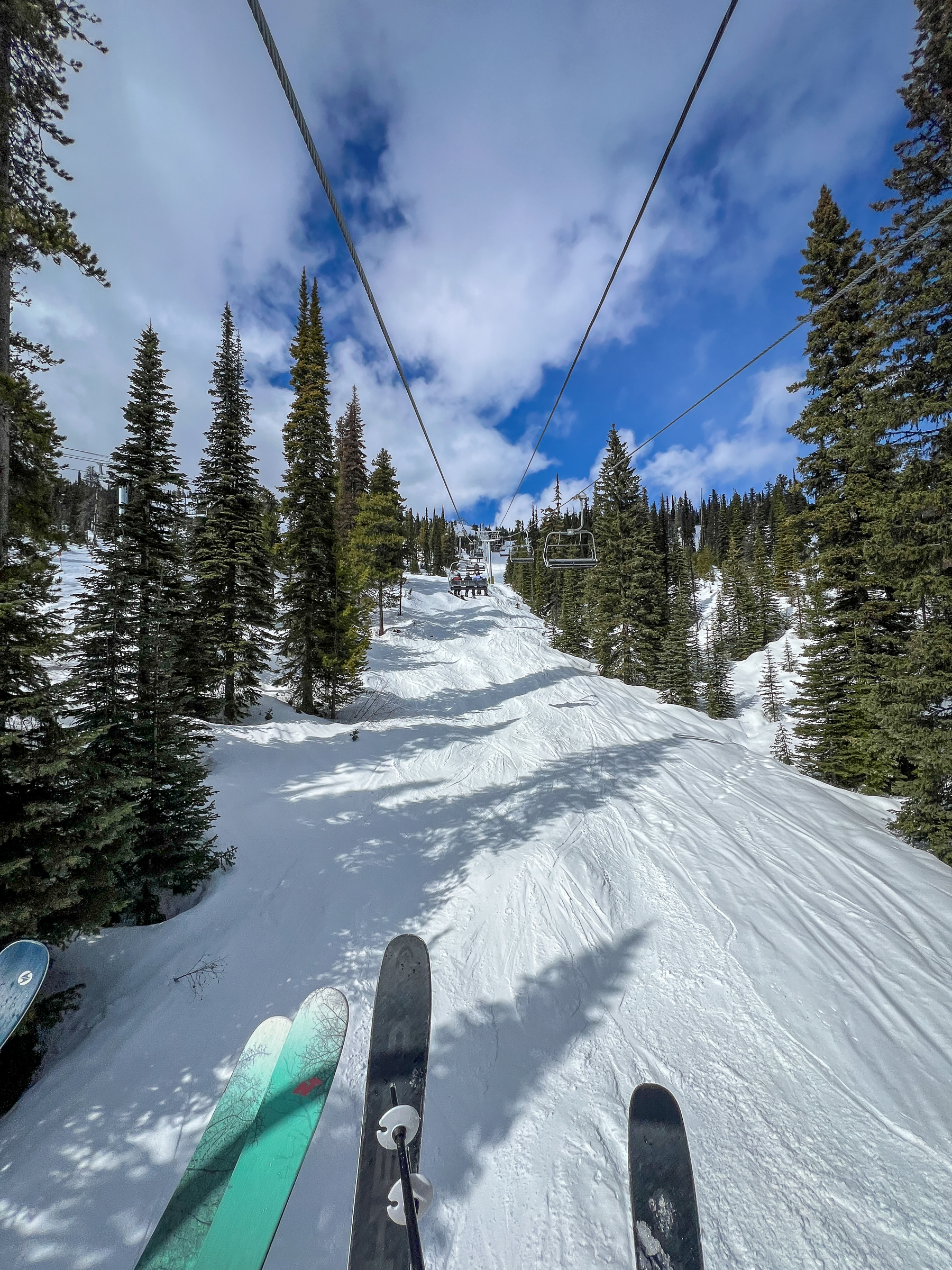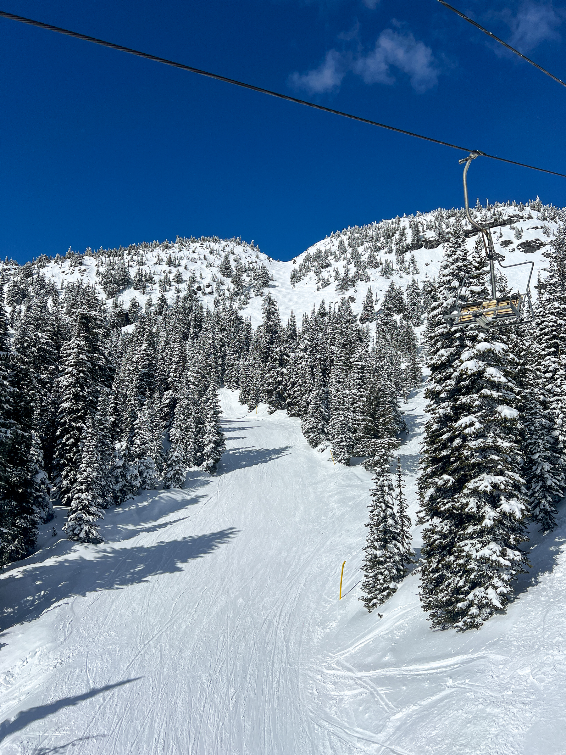 Eventually the seemingly endless snow and overcast skies gave way to some very warm bluebird days – a bit too warm actually, as it was getting pretty sticky on much of the mountain. Only for a few afternoons, though, so can’t really complain!