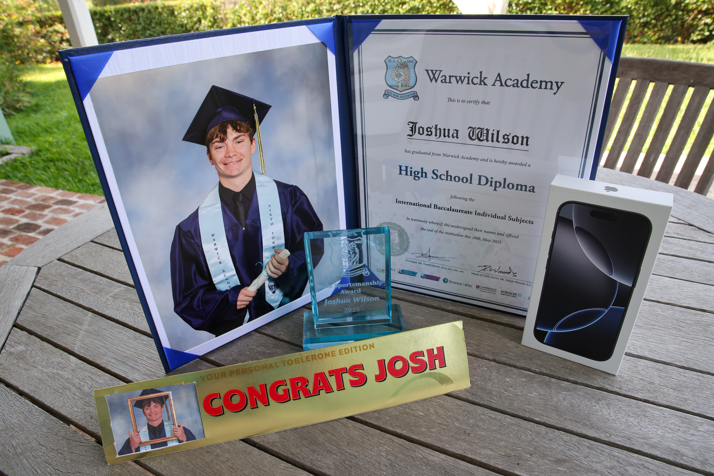 Well, it’s official – Josh is a high school graduate! 13 years at Warwick Academy, done and dusted. He accomplished much over his school career, and in his final year along with his High School Diploma (International Baccalaureate Individual Subjects), he was the school’s Sports Leader, achieved Second Honors in Academics, Principal’s List in Sport, and he won the Sportsman of the Year award. He also did very well with his volleyball, after a successful tournament in Boston, he won the MVP award for his U18 team.